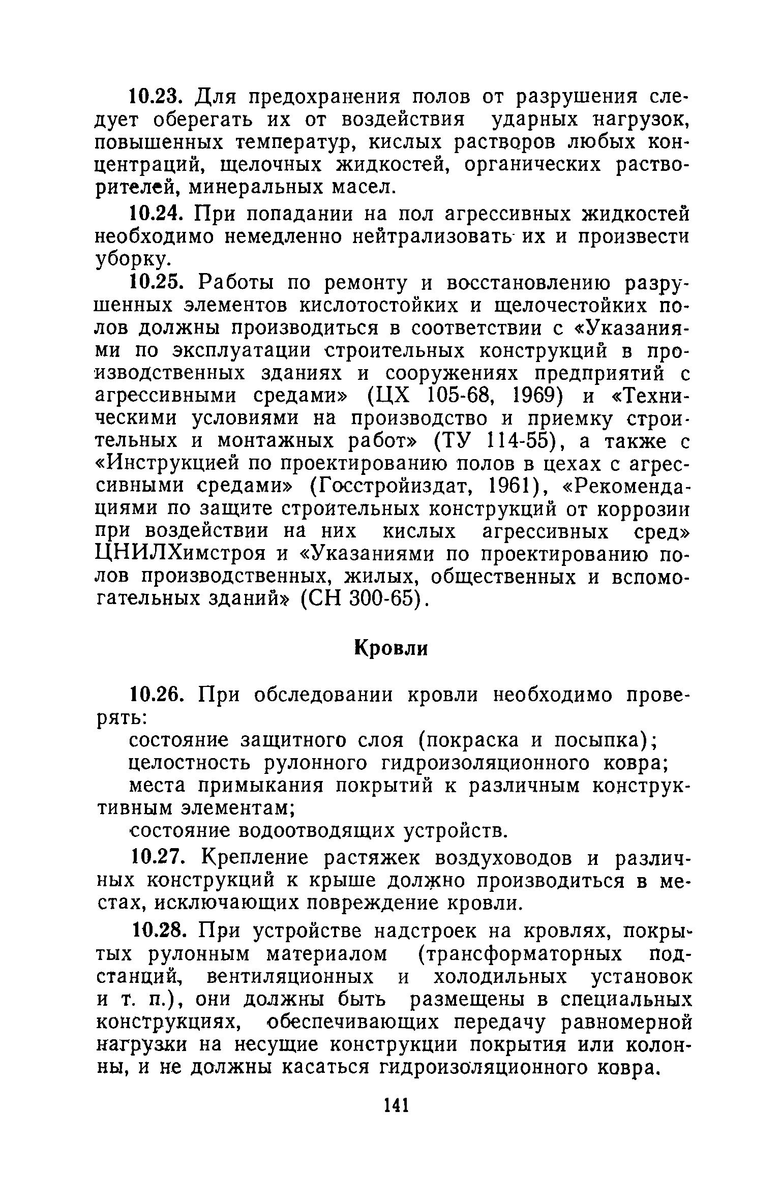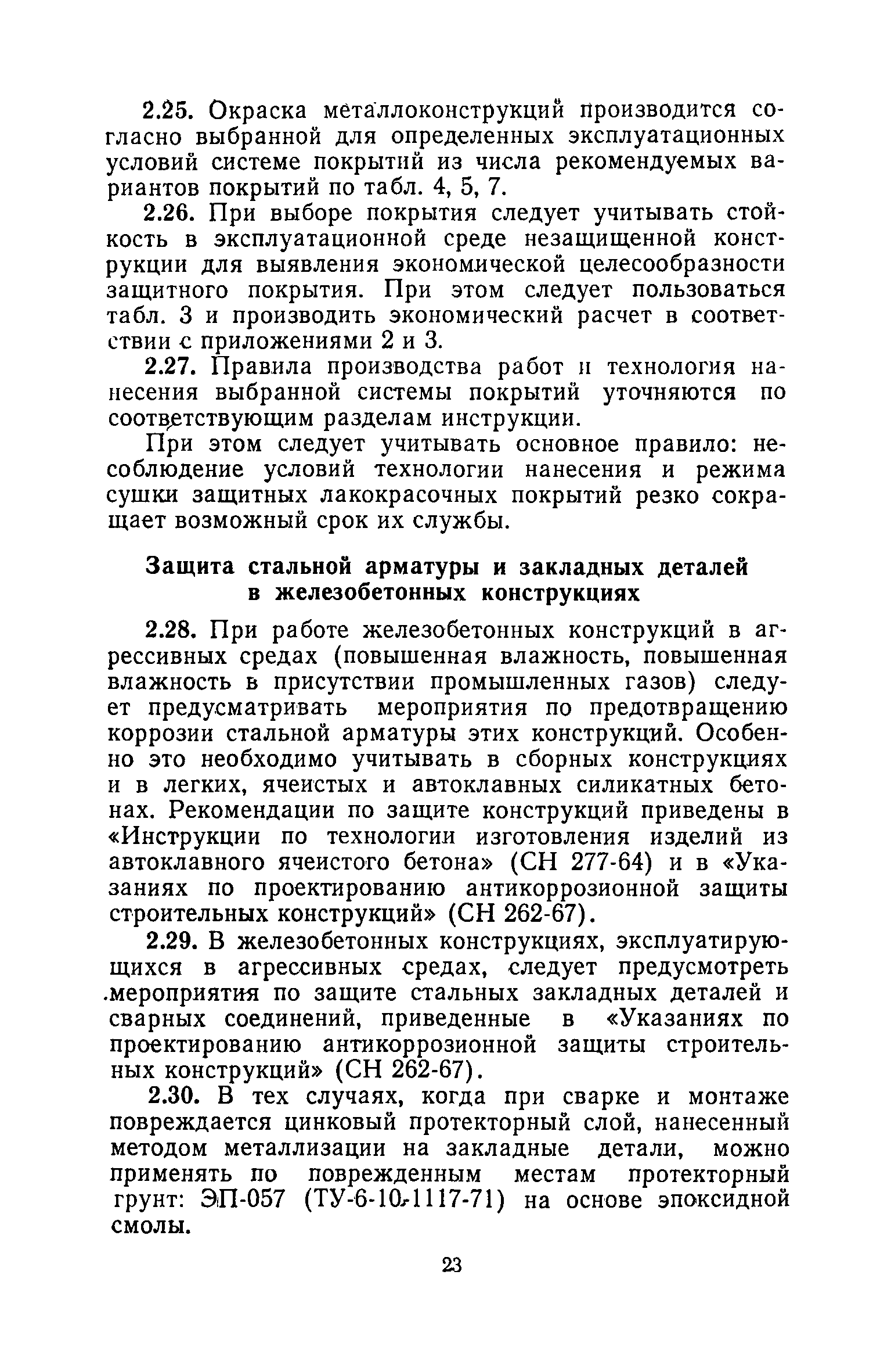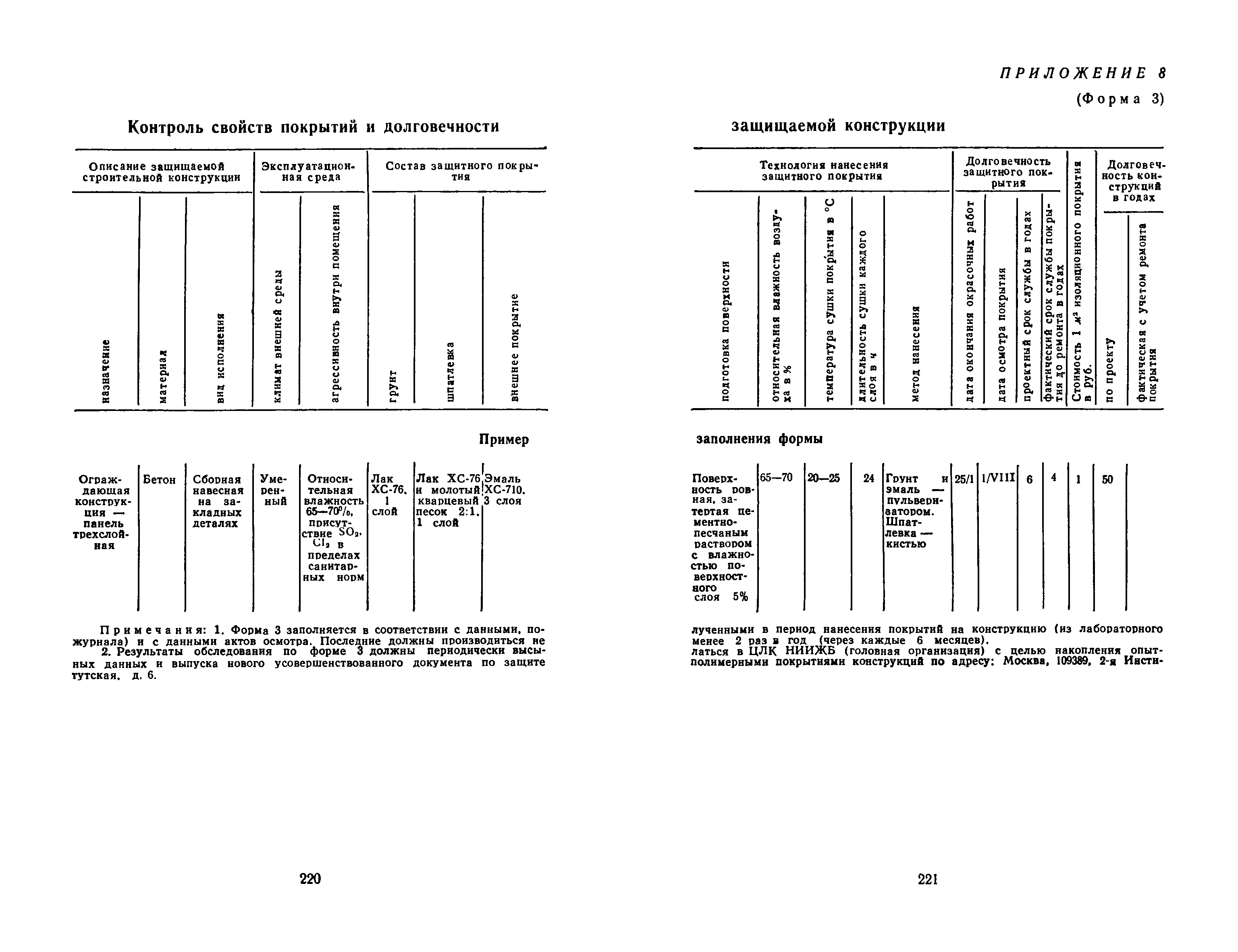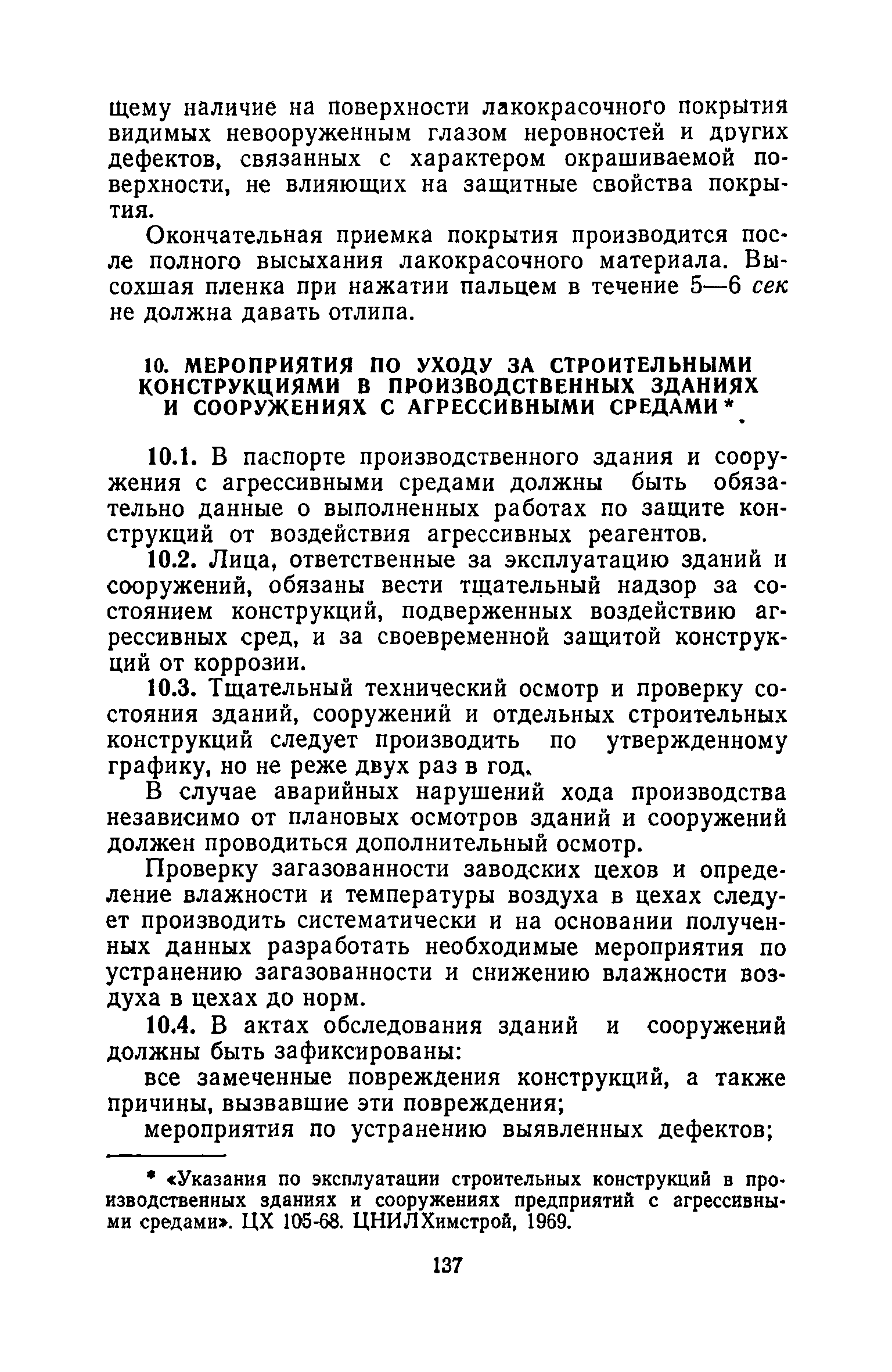 | Оглавление: | 1. Основные положения 2. Защита поверхности стальных конструкций З. Защита поверхности бетона и железобетона 4. Свойства, область применения, приготовление рабочих составов и технология нанесения лакокрасочных органических составов 5. Комбинированные покрытия 6. Свойства, область применения, приготовление рабочих составов и технология нанесения неорганических составов 7. Основные правила производства работ 8. Механизация работ по подготовке поверхности и нанесению защитных лакокрасочных покрытий на строительные конструкции 9. Контроль качества исходных материалов и покрытий 10. Мероприятия по уходу за строительными конструкциями в производственных зданиях и сооружениях с агрессивными средами 11. Основные правила по технике безопасности и охране труда при работе с лакокрасочными, комбинированными и гидрофобизирующими составами 12. Основные правила пожарной безопасности Приложение 1. Виды и технические характеристики оборудования, применяемого при производстве антикоррозионных работ Приложение 2. Пример расчета экономически эффективного варианта антикоррозионной защиты стальных ферм лакокрасочными материалами Приложение 3. Исходные данные и результаты расчета экономической эффективности защиты металлоконструкций химически стойкими лакокрасочными покрытиями с предварительной очисткой поверхности Приложение 4. Ориентировочный расход и стоимость лакокрасочных материалов и покрытий Приложение 5. Состав и область применения растворителей для лакокрасочных материалов Приложение 6. Контроль лакокрасочных материалов, используемых для защитных покрытий Приложение 7. Контроль технологического процесса нанесения покрытия на защищаемую поверхность Приложение 8. Контроль свойств покрытий и долговечности защищаемой конструкции |