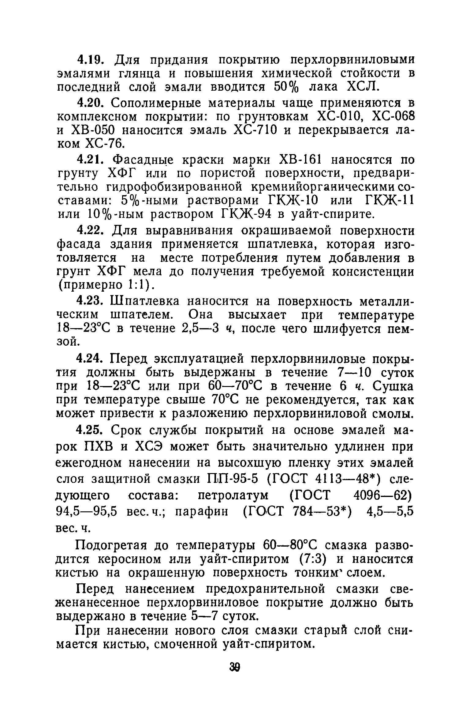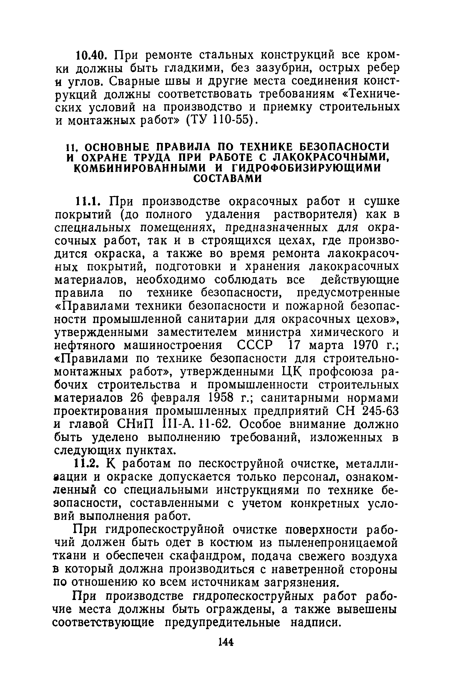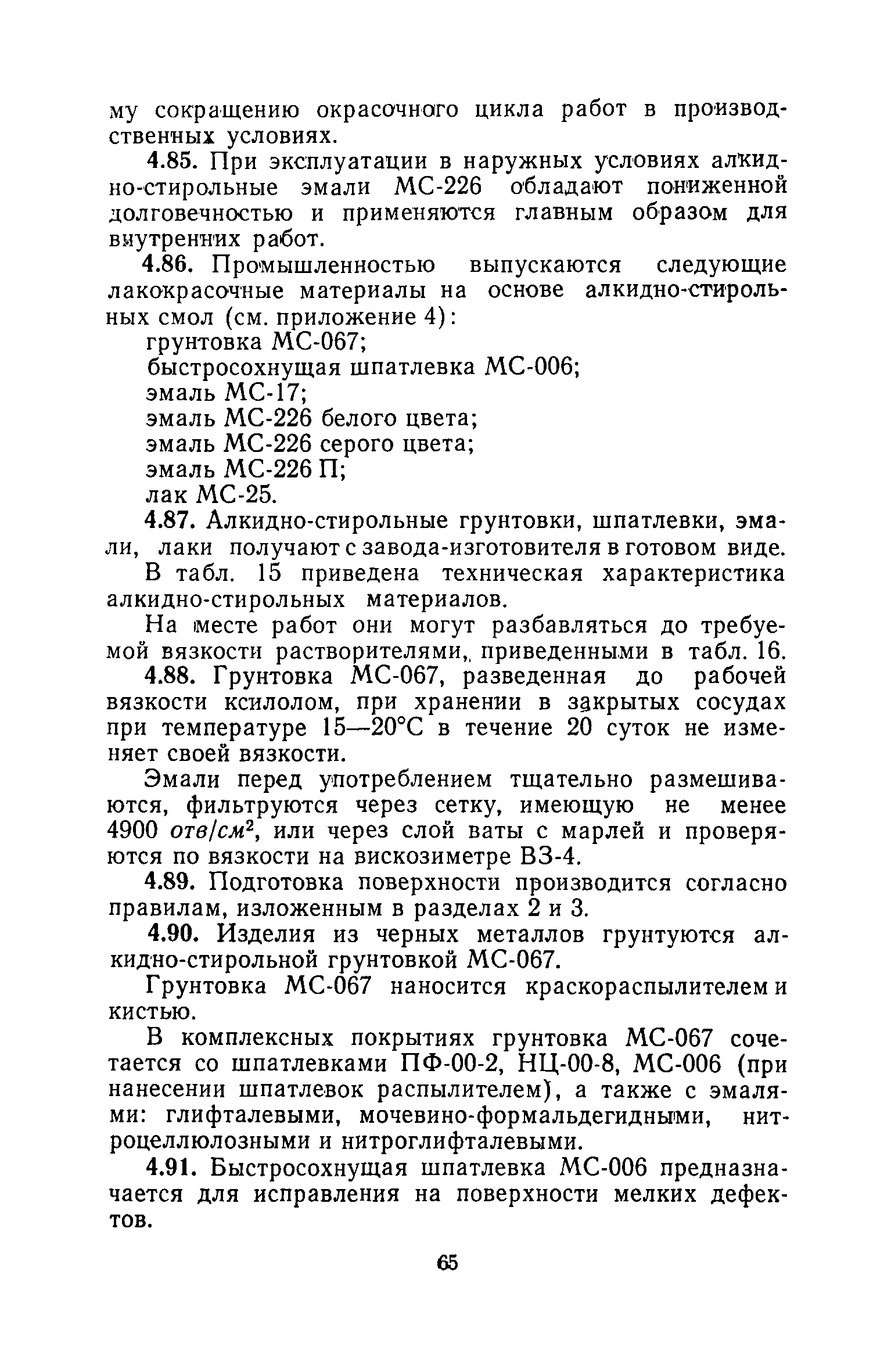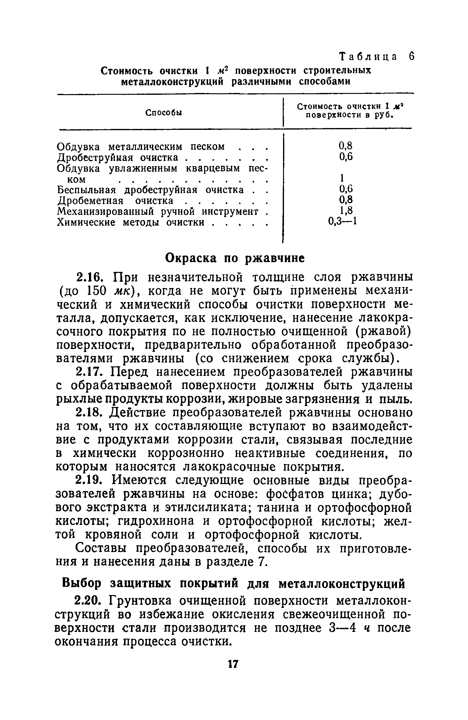 | Оглавление: | 1. Основные положения 2. Защита поверхности стальных конструкций З. Защита поверхности бетона и железобетона 4. Свойства, область применения, приготовление рабочих составов и технология нанесения лакокрасочных органических составов 5. Комбинированные покрытия 6. Свойства, область применения, приготовление рабочих составов и технология нанесения неорганических составов 7. Основные правила производства работ 8. Механизация работ по подготовке поверхности и нанесению защитных лакокрасочных покрытий на строительные конструкции 9. Контроль качества исходных материалов и покрытий 10. Мероприятия по уходу за строительными конструкциями в производственных зданиях и сооружениях с агрессивными средами 11. Основные правила по технике безопасности и охране труда при работе с лакокрасочными, комбинированными и гидрофобизирующими составами 12. Основные правила пожарной безопасности Приложение 1. Виды и технические характеристики оборудования, применяемого при производстве антикоррозионных работ Приложение 2. Пример расчета экономически эффективного варианта антикоррозионной защиты стальных ферм лакокрасочными материалами Приложение 3. Исходные данные и результаты расчета экономической эффективности защиты металлоконструкций химически стойкими лакокрасочными покрытиями с предварительной очисткой поверхности Приложение 4. Ориентировочный расход и стоимость лакокрасочных материалов и покрытий Приложение 5. Состав и область применения растворителей для лакокрасочных материалов Приложение 6. Контроль лакокрасочных материалов, используемых для защитных покрытий Приложение 7. Контроль технологического процесса нанесения покрытия на защищаемую поверхность Приложение 8. Контроль свойств покрытий и долговечности защищаемой конструкции |