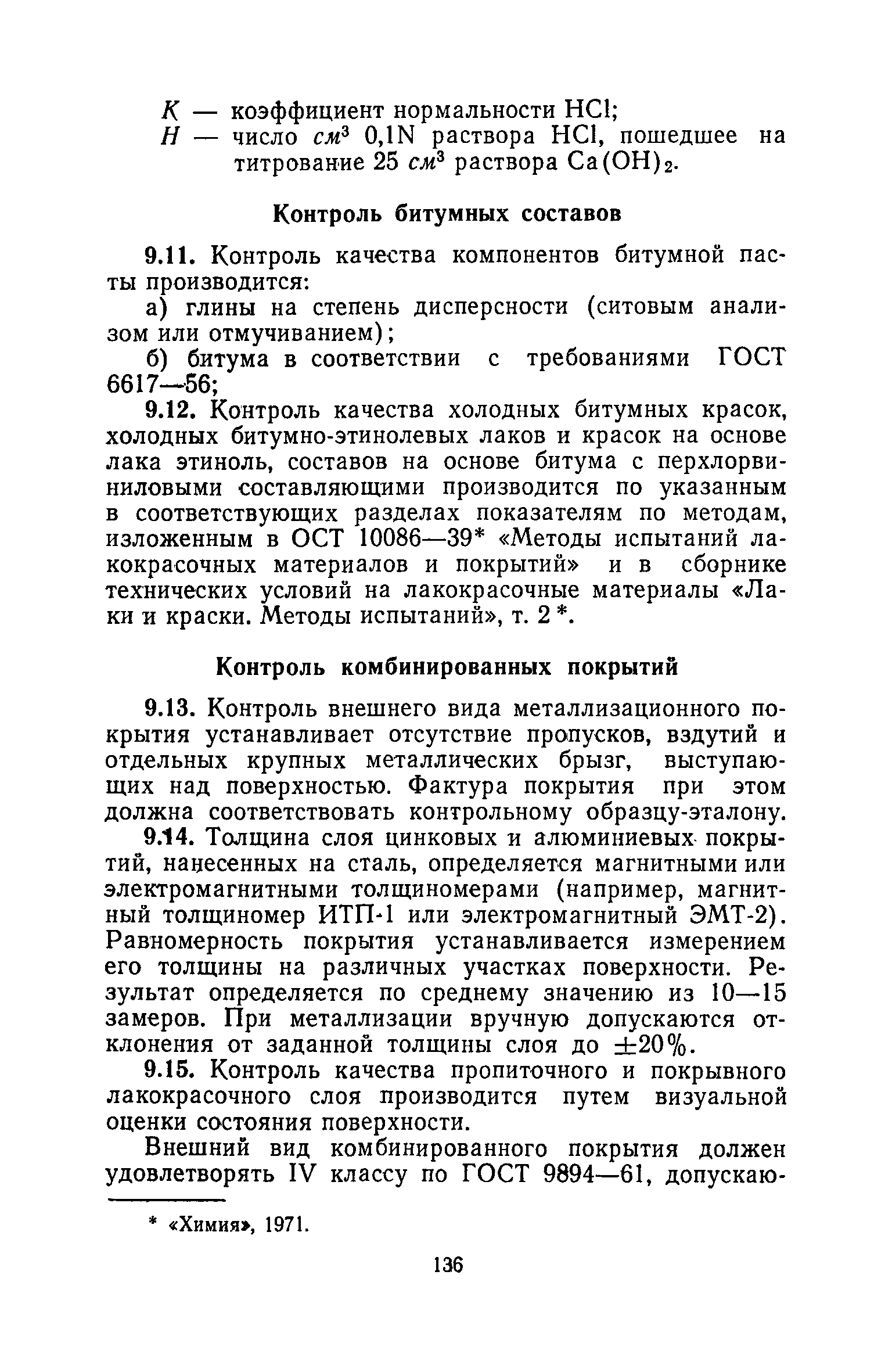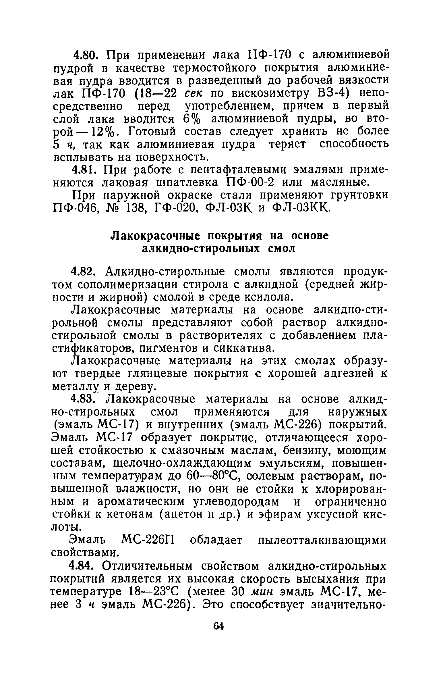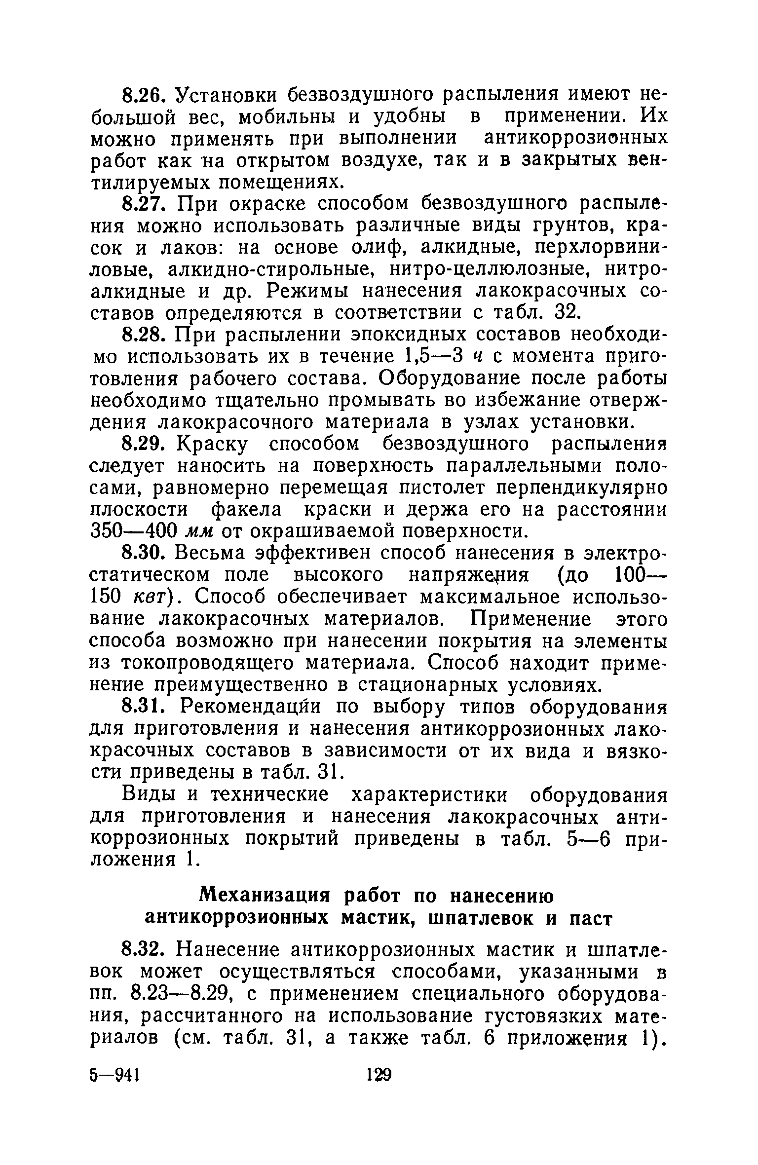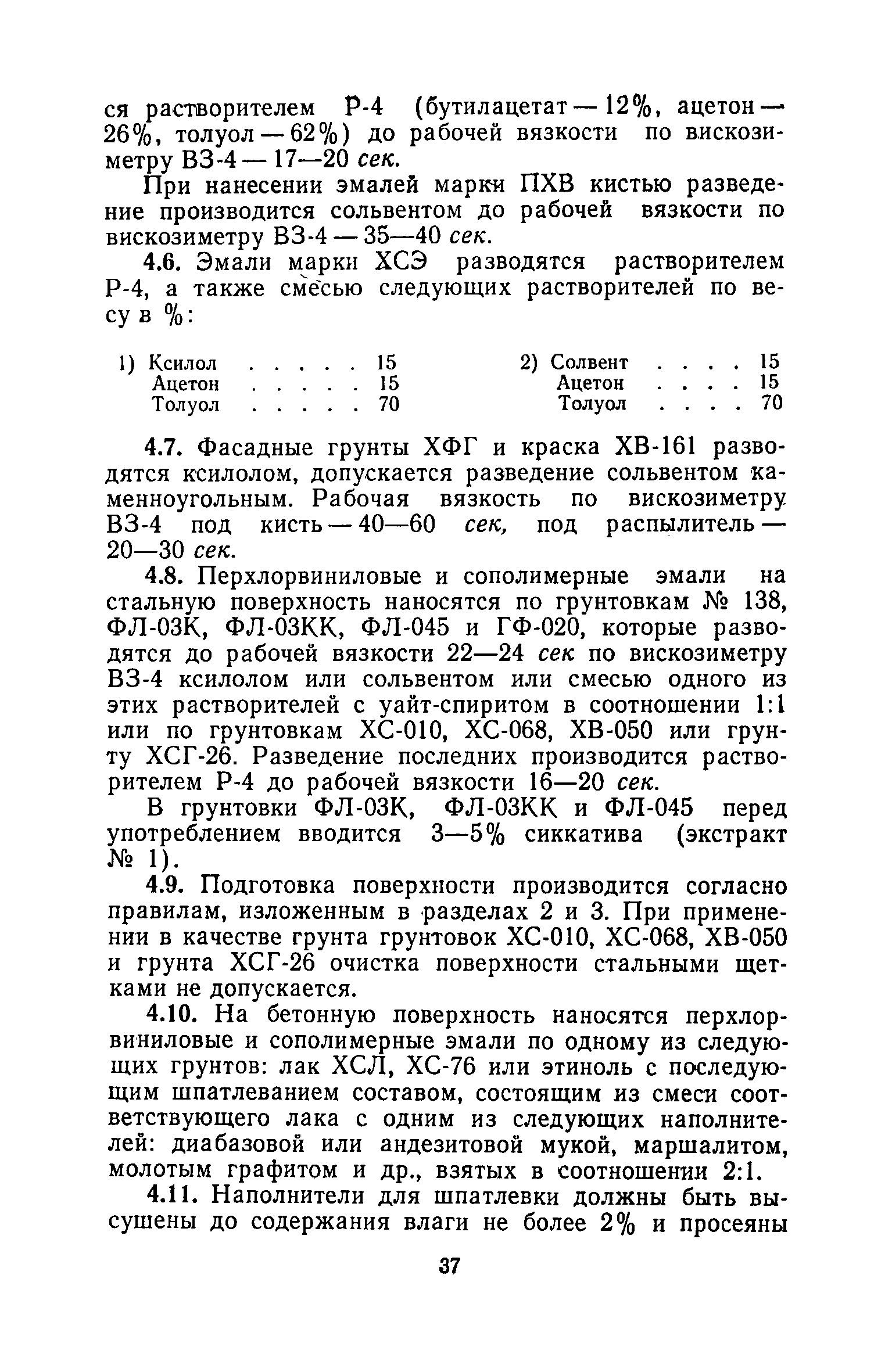| Оглавление: | 1. Основные положения 2. Защита поверхности стальных конструкций З. Защита поверхности бетона и железобетона 4. Свойства, область применения, приготовление рабочих составов и технология нанесения лакокрасочных органических составов 5. Комбинированные покрытия 6. Свойства, область применения, приготовление рабочих составов и технология нанесения неорганических составов 7. Основные правила производства работ 8. Механизация работ по подготовке поверхности и нанесению защитных лакокрасочных покрытий на строительные конструкции 9. Контроль качества исходных материалов и покрытий 10. Мероприятия по уходу за строительными конструкциями в производственных зданиях и сооружениях с агрессивными средами 11. Основные правила по технике безопасности и охране труда при работе с лакокрасочными, комбинированными и гидрофобизирующими составами 12. Основные правила пожарной безопасности Приложение 1. Виды и технические характеристики оборудования, применяемого при производстве антикоррозионных работ Приложение 2. Пример расчета экономически эффективного варианта антикоррозионной защиты стальных ферм лакокрасочными материалами Приложение 3. Исходные данные и результаты расчета экономической эффективности защиты металлоконструкций химически стойкими лакокрасочными покрытиями с предварительной очисткой поверхности Приложение 4. Ориентировочный расход и стоимость лакокрасочных материалов и покрытий Приложение 5. Состав и область применения растворителей для лакокрасочных материалов Приложение 6. Контроль лакокрасочных материалов, используемых для защитных покрытий Приложение 7. Контроль технологического процесса нанесения покрытия на защищаемую поверхность Приложение 8. Контроль свойств покрытий и долговечности защищаемой конструкции |