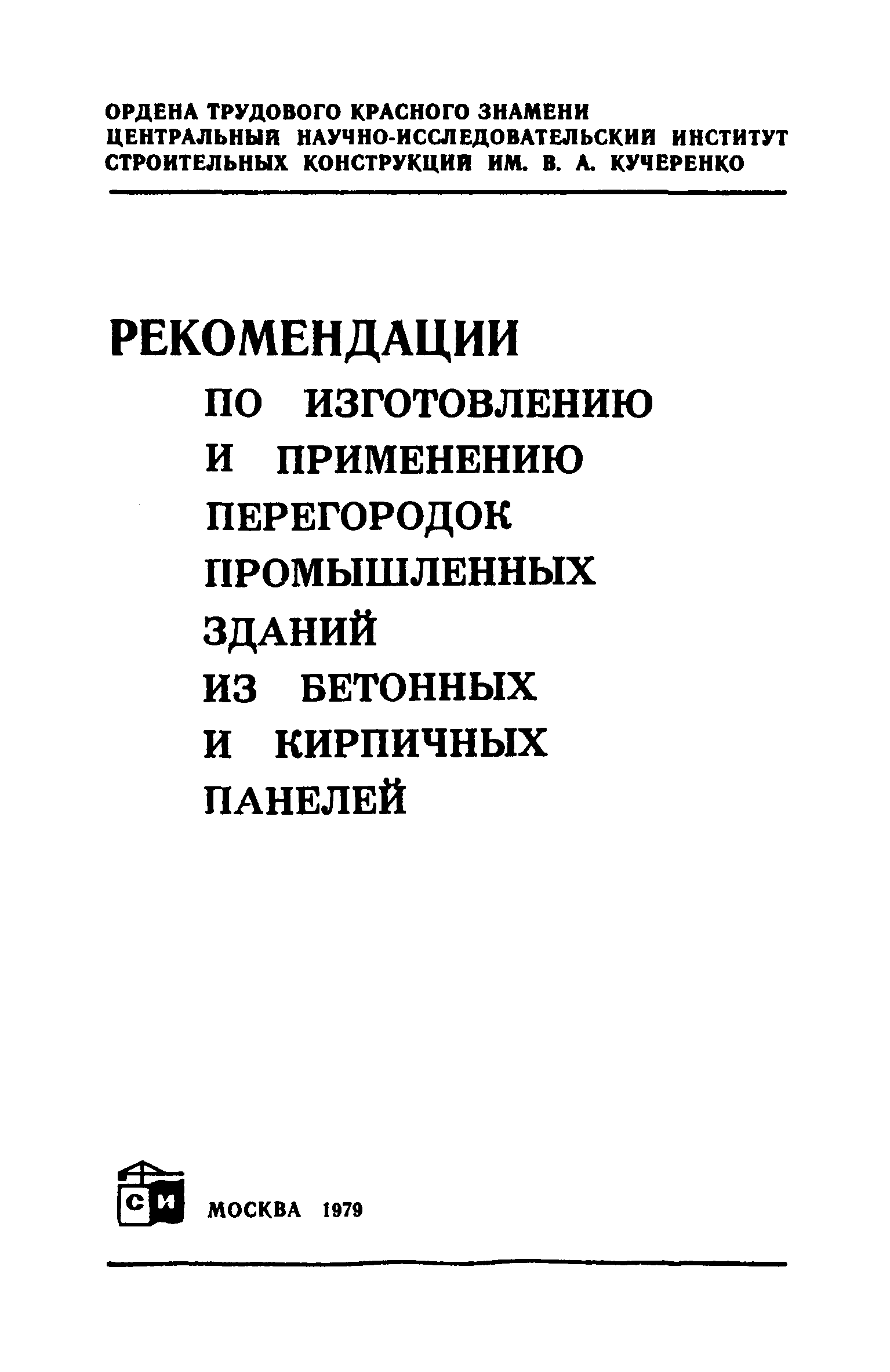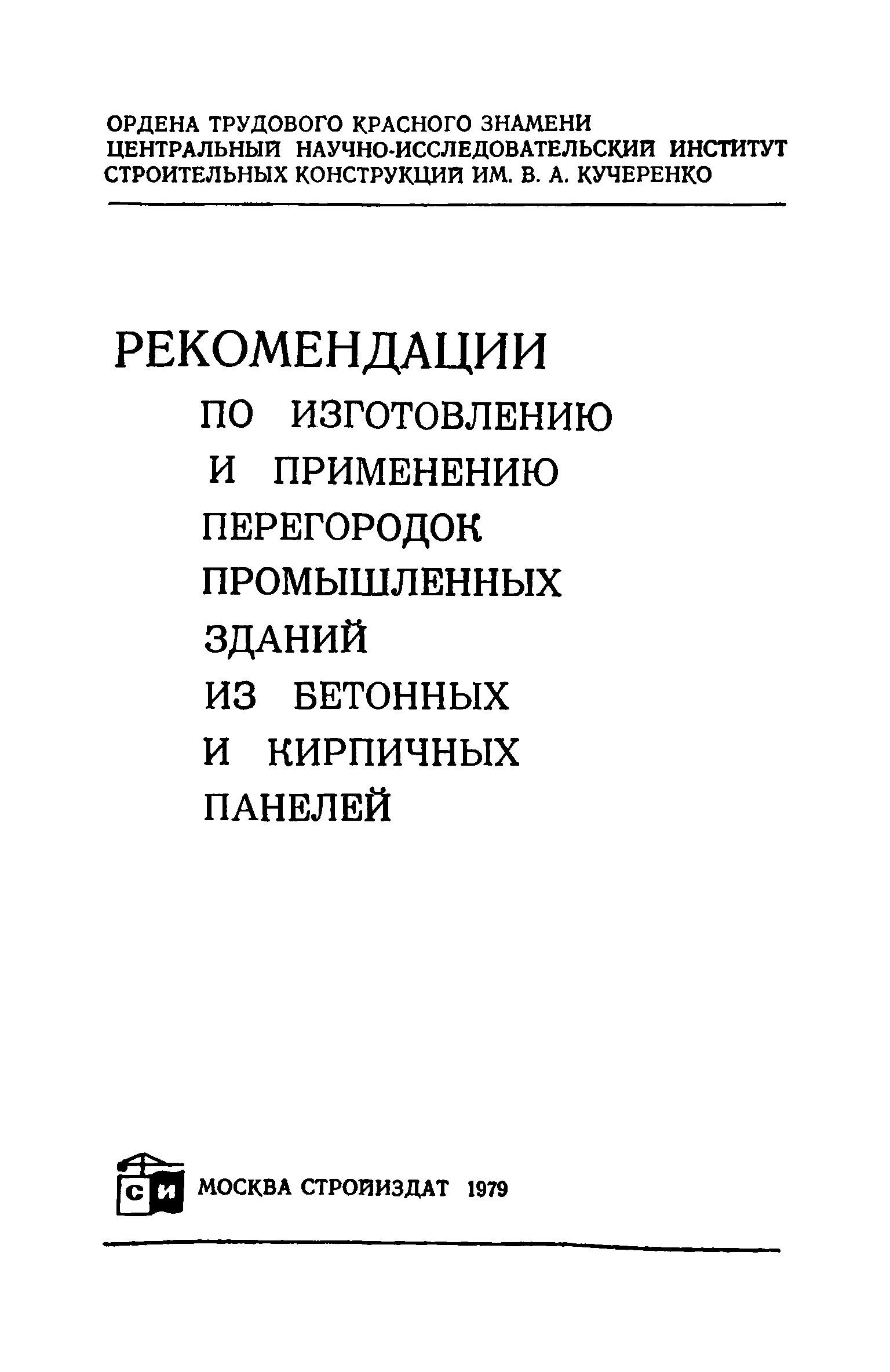 | Название рус.: | Рекомендации по изготовлению и применению перегородок промышленных зданий из бетонных и кирпичных панелей |