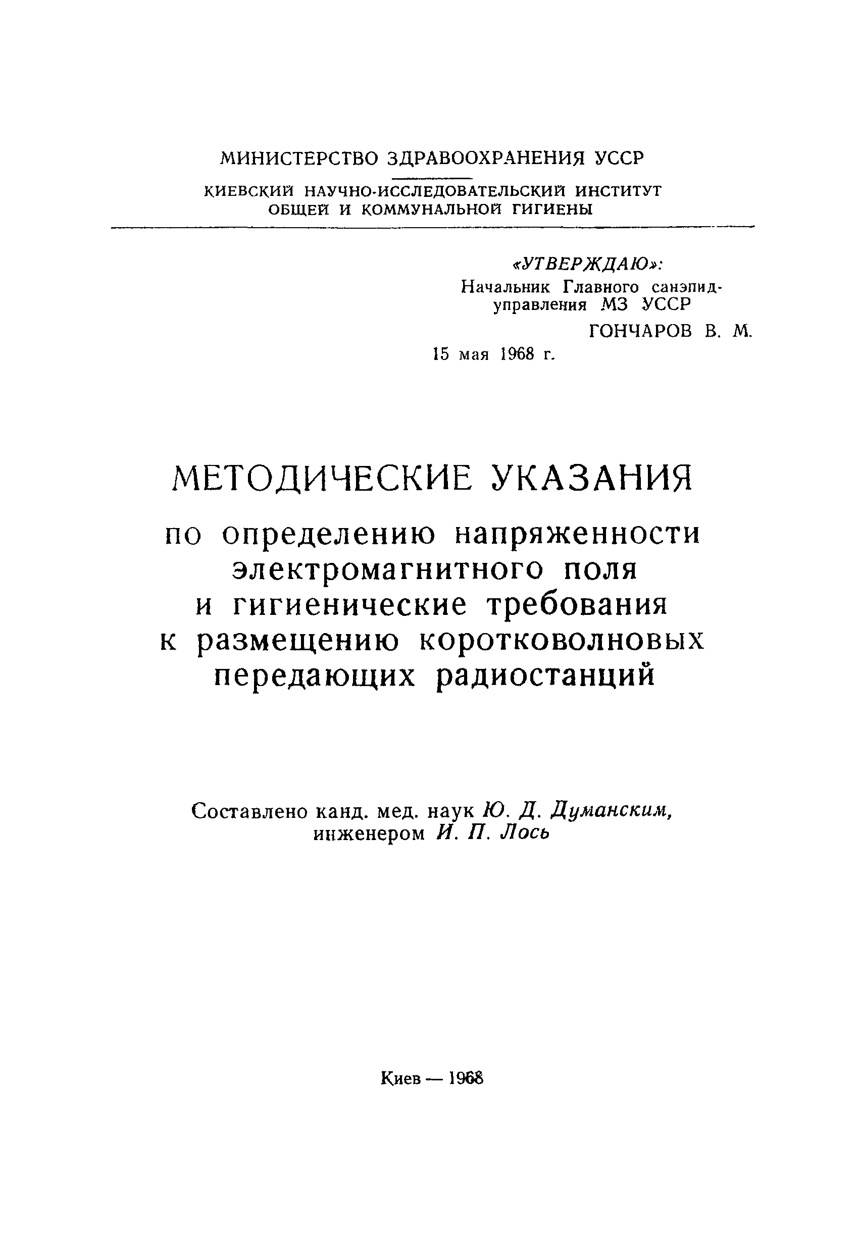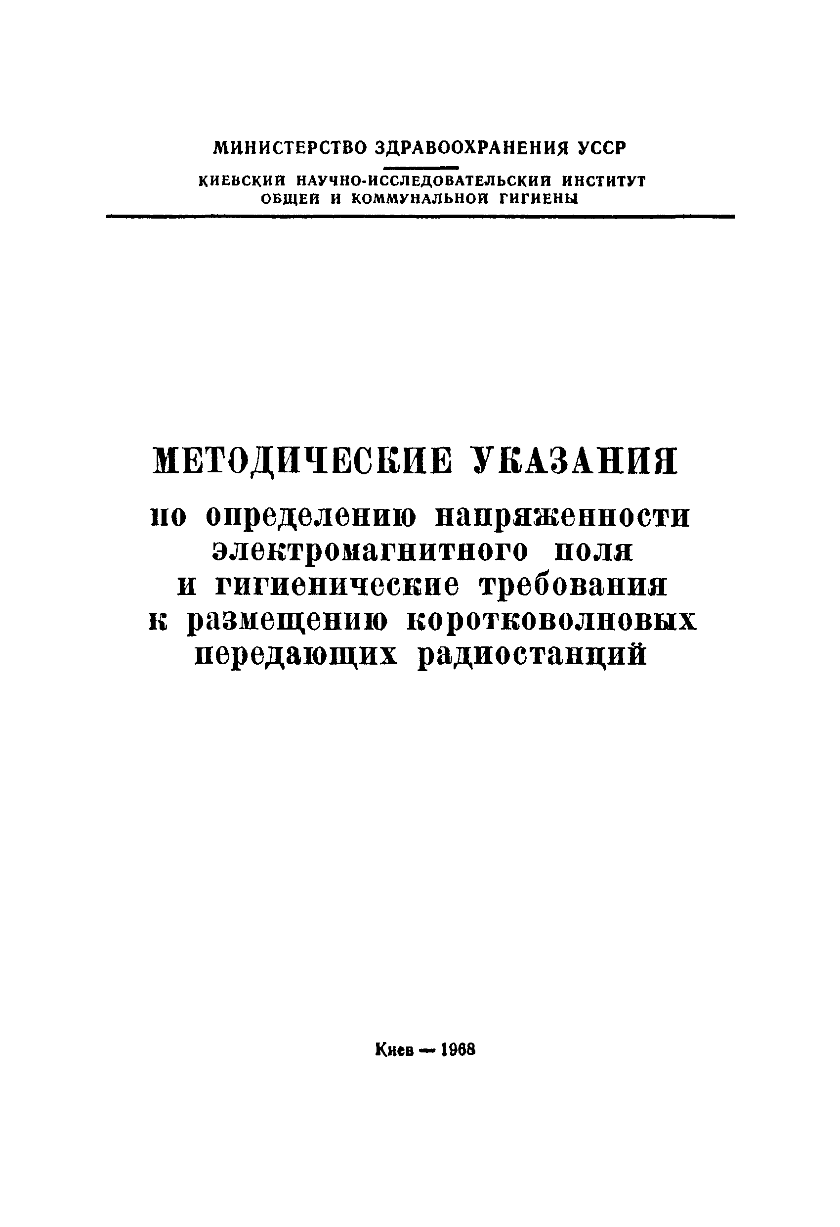 | Название рус.: | Методические указания по определению напряженности электромагнитного поля и гигиенические требования к размещению коротковолновых передающих радиостанций |