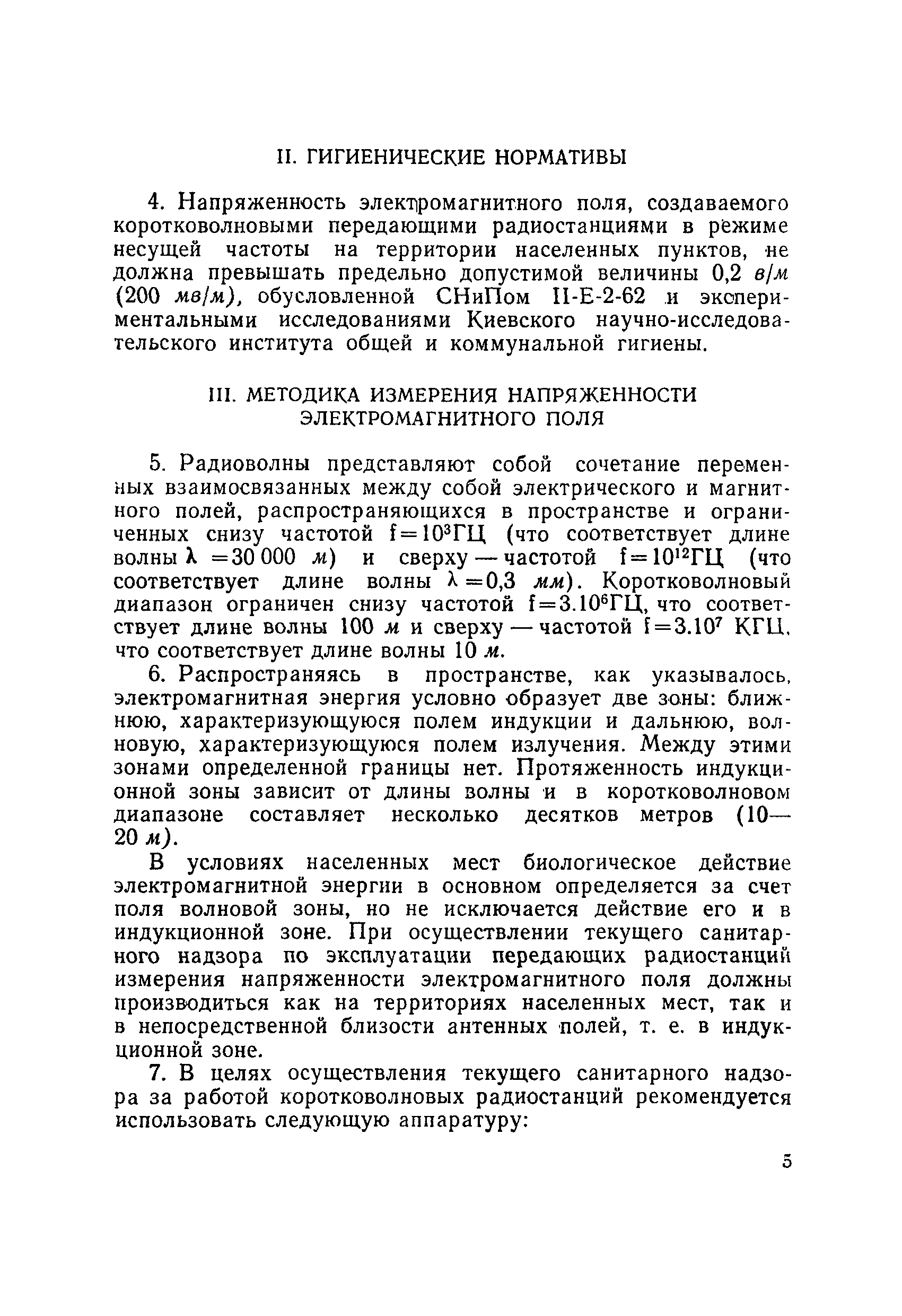 | Оглавление: | I Общие положения II Гигиенические нормативы III Методика измерения напряженности электромагнитного поля IV Методика расчета напряженности электромагнитного поля V Требования к размещению и эксплуатации коротковолновых передающих радиостанции |