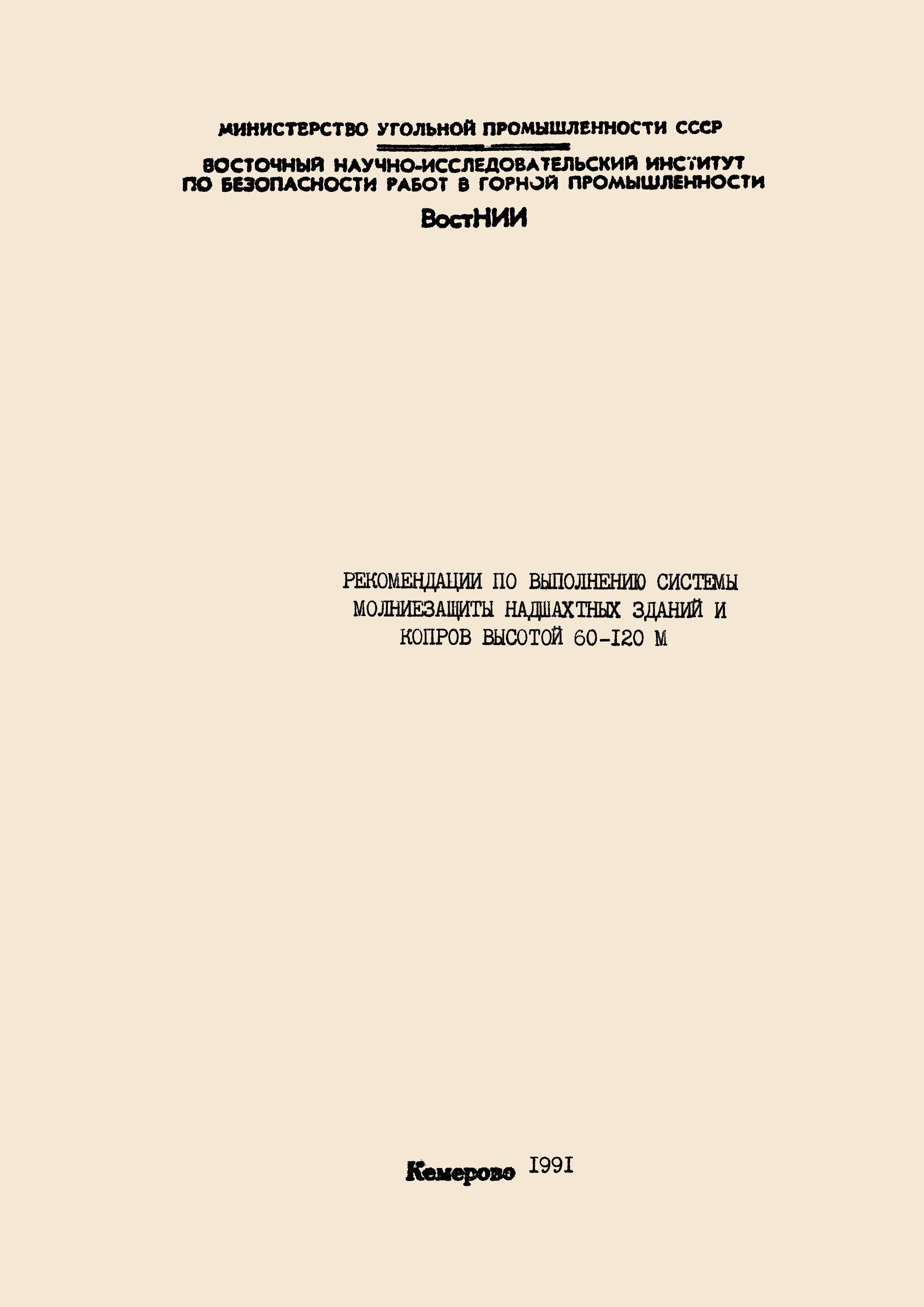 | Название рус.: | Рекомендации по выполнению системы молниезащиты надшахтных зданий и копров высотой 60 - 120 м |