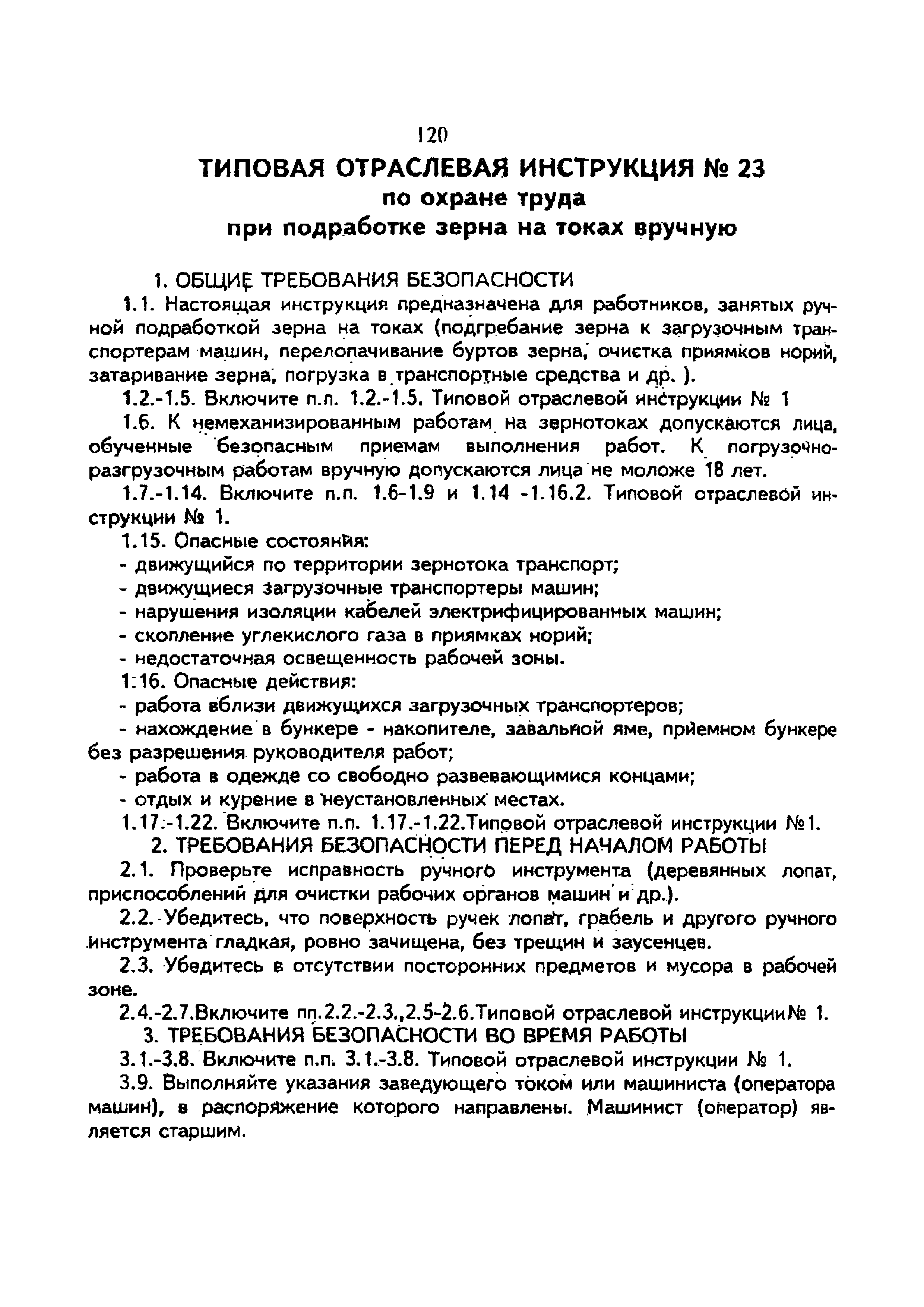| Название рус.: | Типовая отраслевая инструкция № 23 по охране труда при подработке зерна на токах вручную |