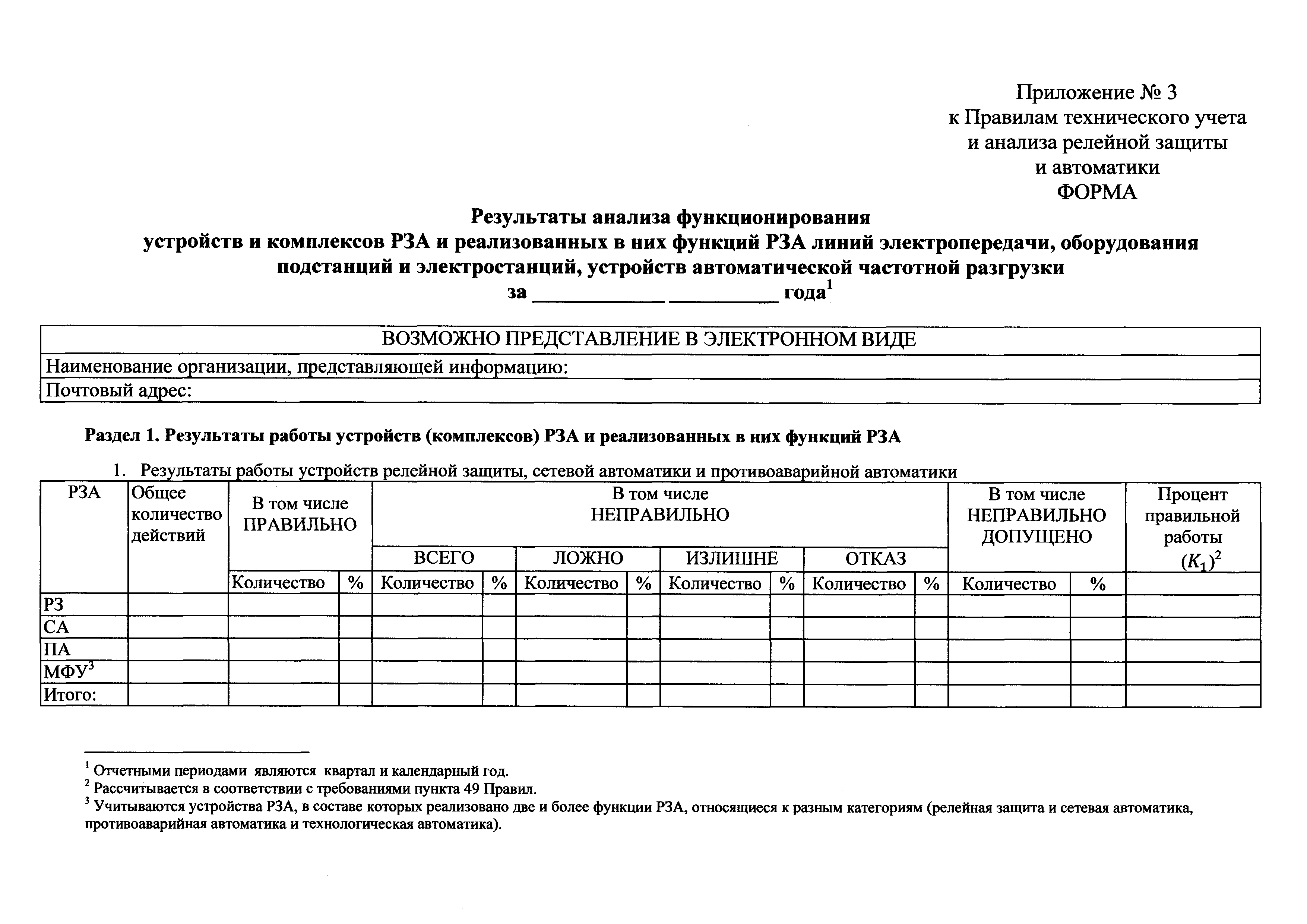 | Оглавление: | I. Общие положения II. Общие требования к техническому учету III. Требования к оценке работы устройств (комплексов) релейной защиты и автоматики и реализованных в их составе функций релейной защиты и автоматики при проведении технического учета IV. Учет и распределение случаев неправильной работы релейной защиты и автоматики по видам причин V. Общие требования к анализу функционирования устройств (комплексов) релейной защиты и автоматики VI. Определение показателей работы устройств (комплексов) релейной защиты и автоматики и реализованных в их составе функций релейной защиты и автоматики Приложение № 1. Термины и определения, используемые в Правилах технического учета и анализа функционирования релейной защиты и автоматики Приложение № 2. Форма данных технического учета устройств и комплексов РЗА и реализованных в них функций РЗА линий электропередачи, оборудования подстанций и электростанций, устройств автоматической частотной разгрузки Приложение № 3. Форма результатов анализа функционирования устройств и комплексов РЗА и реализованных в них функций РЗА линий электропередачи, оборудования подстанций и электростанций, устройств автоматической частотной разгрузки Приложение № 4. Таблицы |