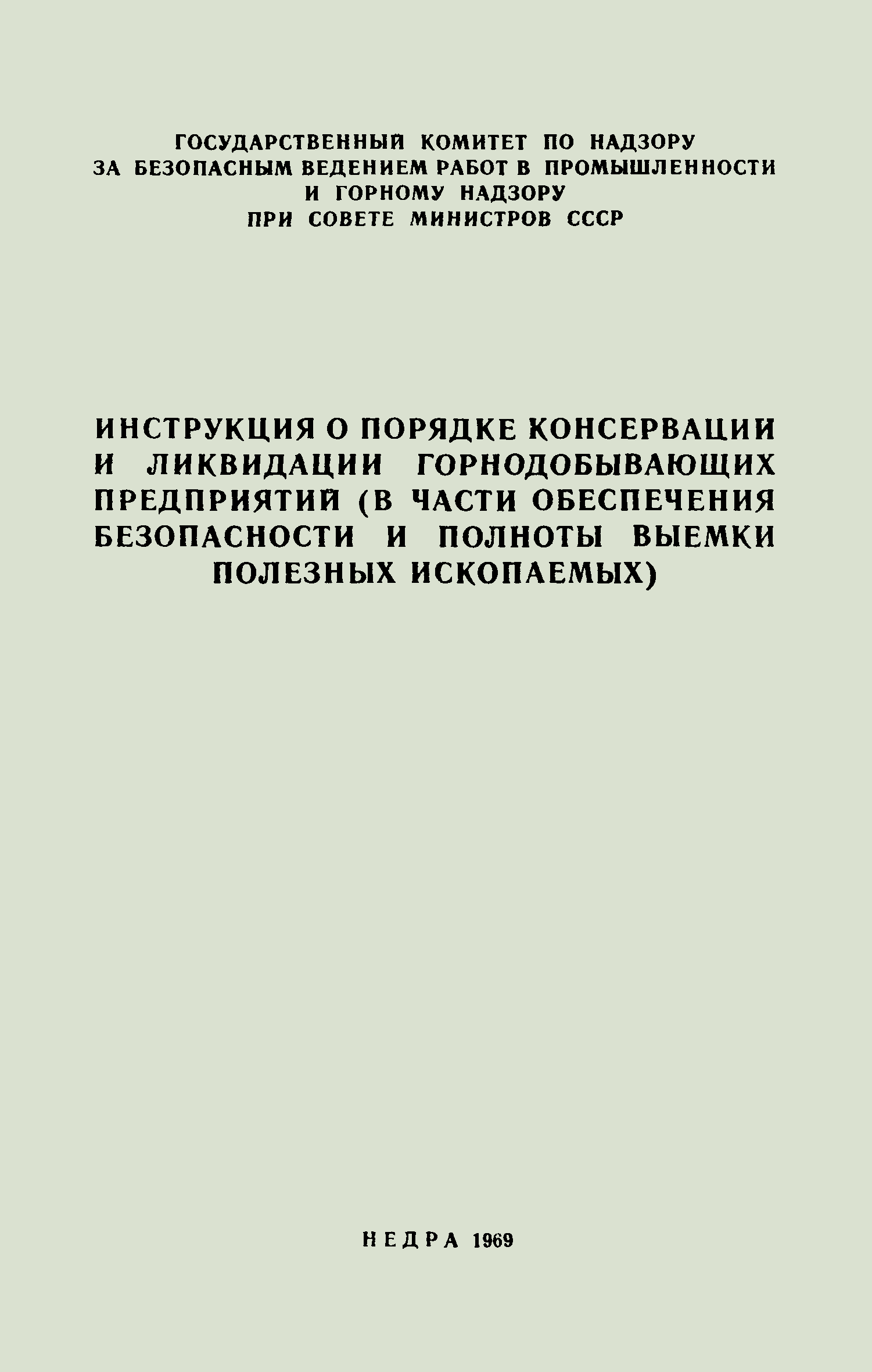 | Название рус.: | Инструкция о порядке консервации и ликвидации горнодобывающих предприятий (в части обеспечения безопасности и полноты выемки полезных ископаемых) (издание 1969) |