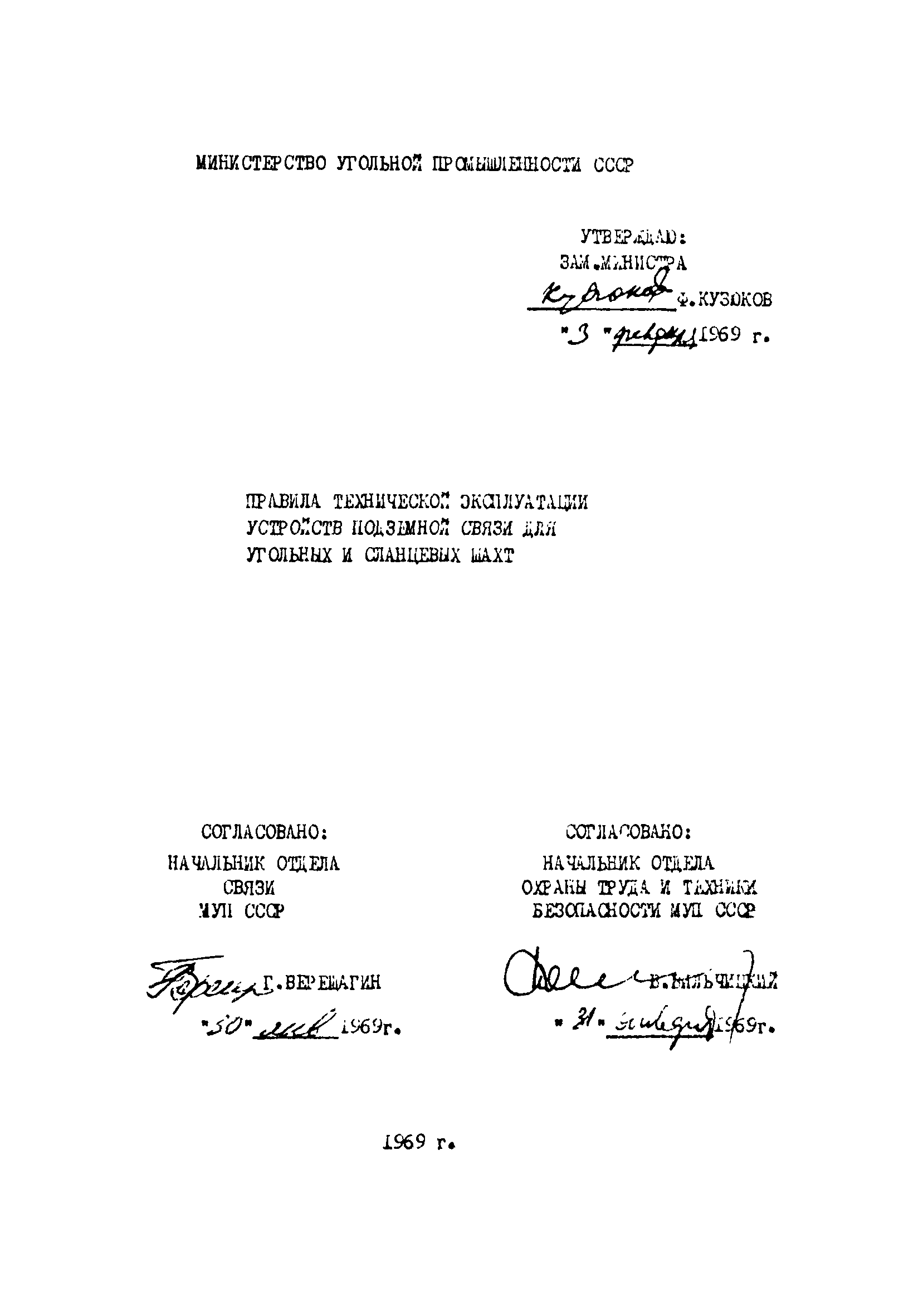 | Принят: | 31.01.1969 Отдел охраны труда и техники безопасности МУП СССР 30.01.1969 Отдел связи МУП СССР