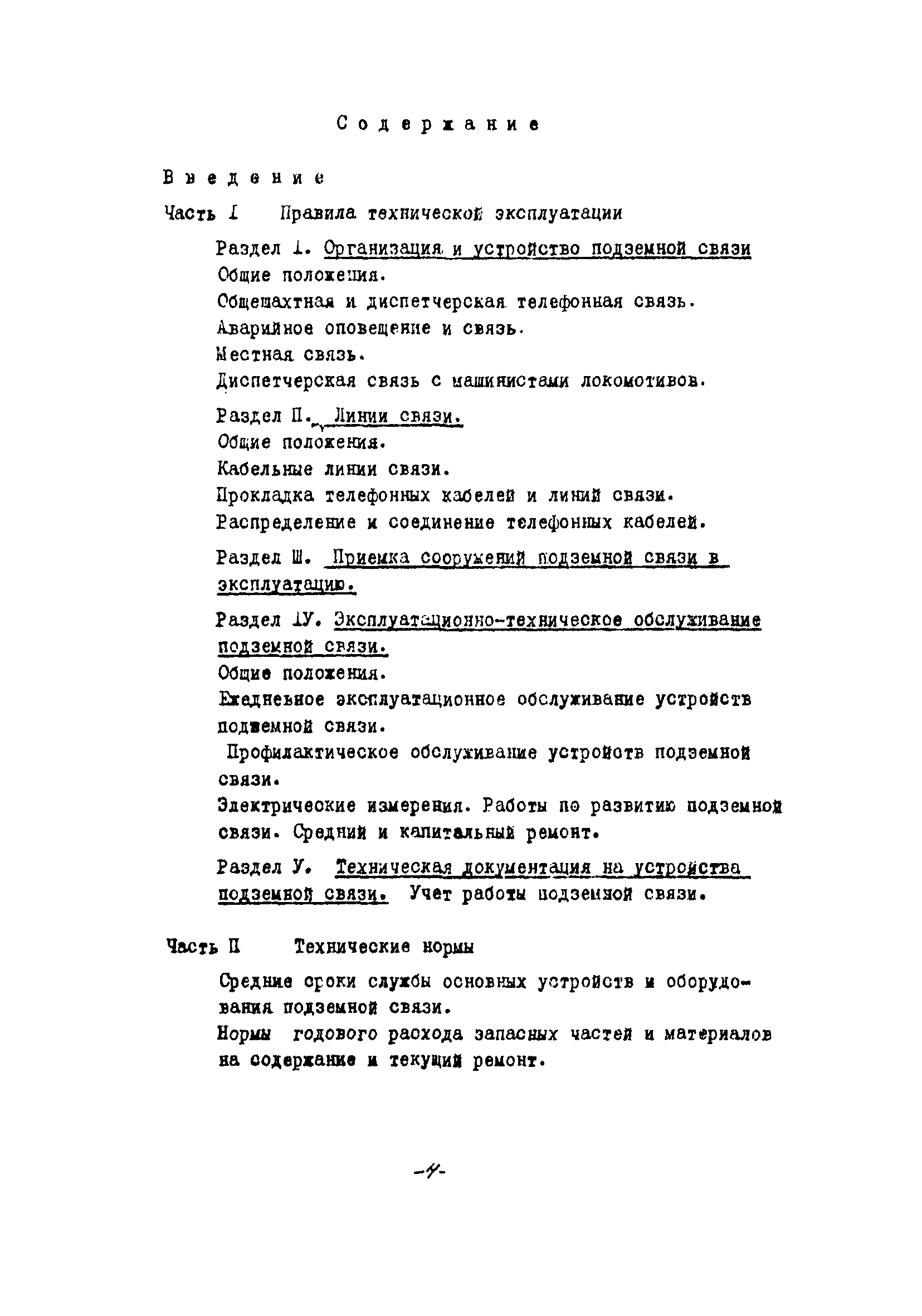 | Оглавление: | Часть I. Правила технической эксплуатации Раздел I. Организация и устройство подземной связи Раздел II. Длина связи Раздел III. Приемка сооружений подземной связи в эксплуатацию Раздел IV. Эксплуатационно-техническое обслуживание подземной связи Раздел V. Техническая документация на устройства подземной связи. Учет работы подземной связи Часть II. Технические нормы |