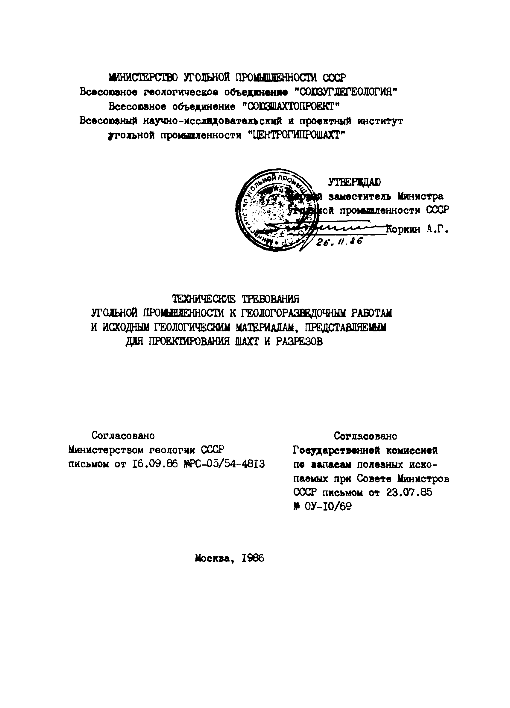 | | Утверждён: | 26.11.1986 Министерство угольной промышленности СССР (USSR Ministry of the Coal Industry )