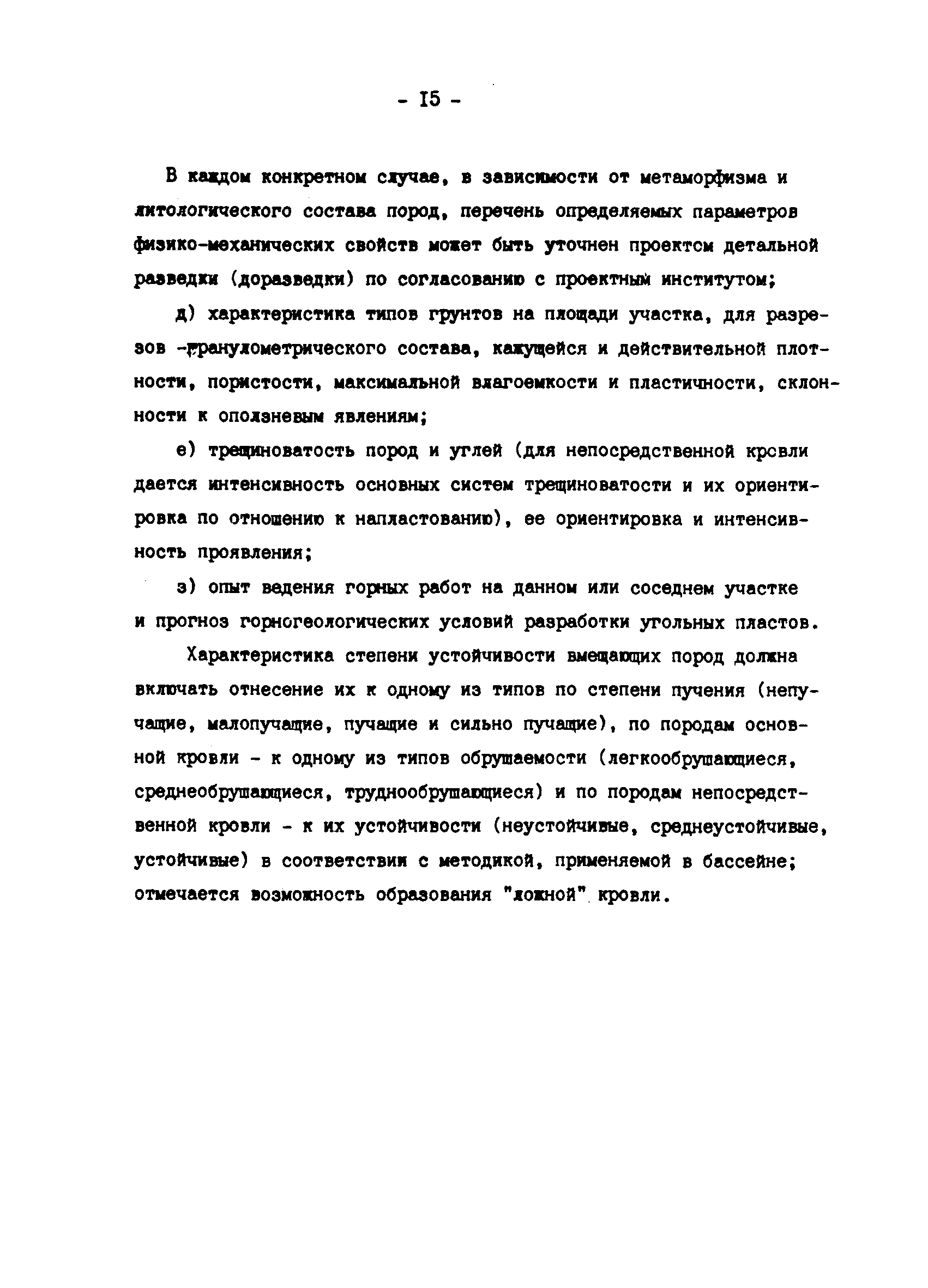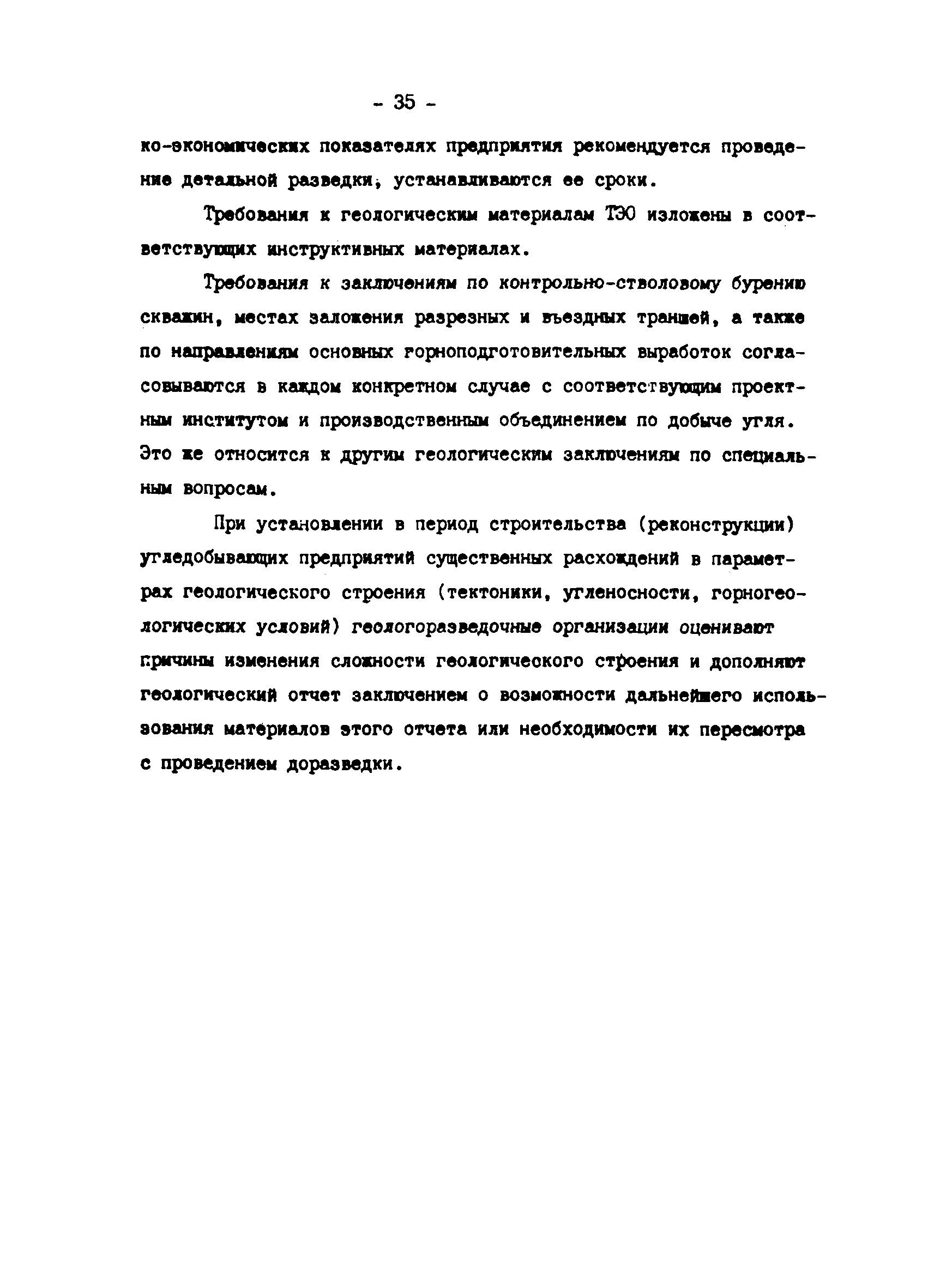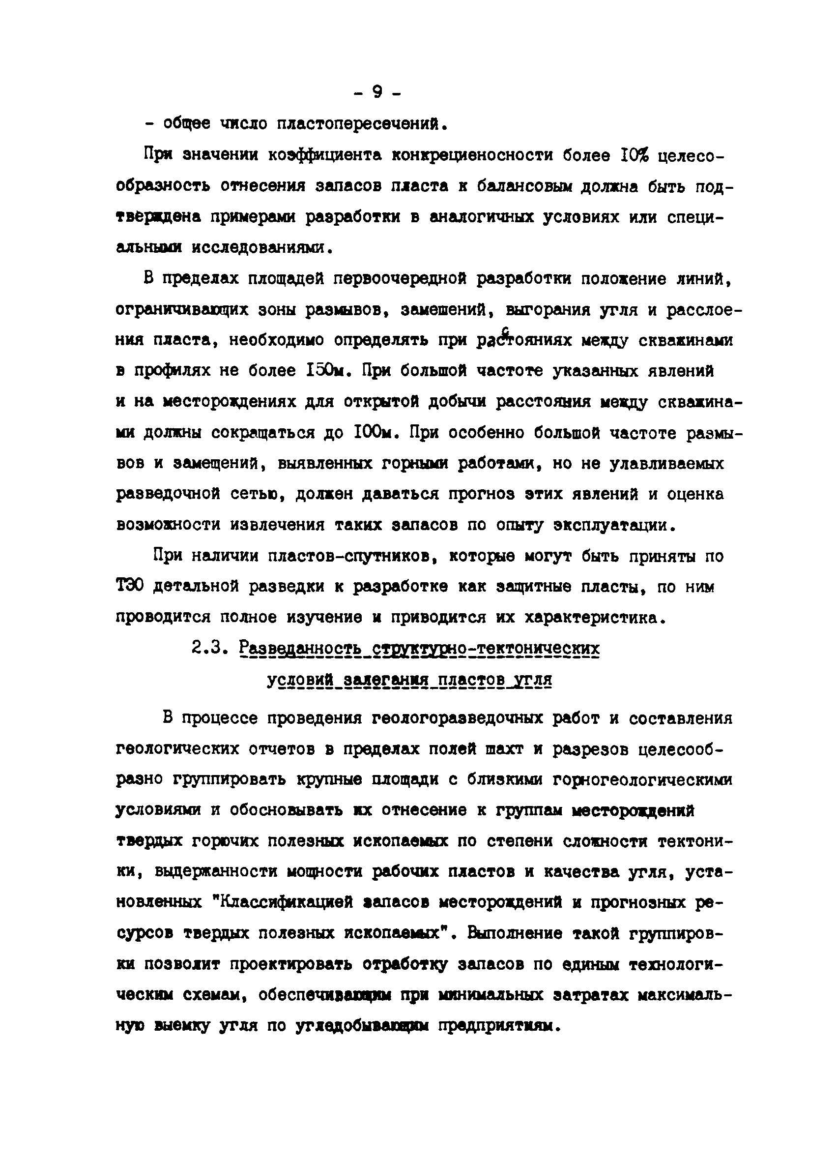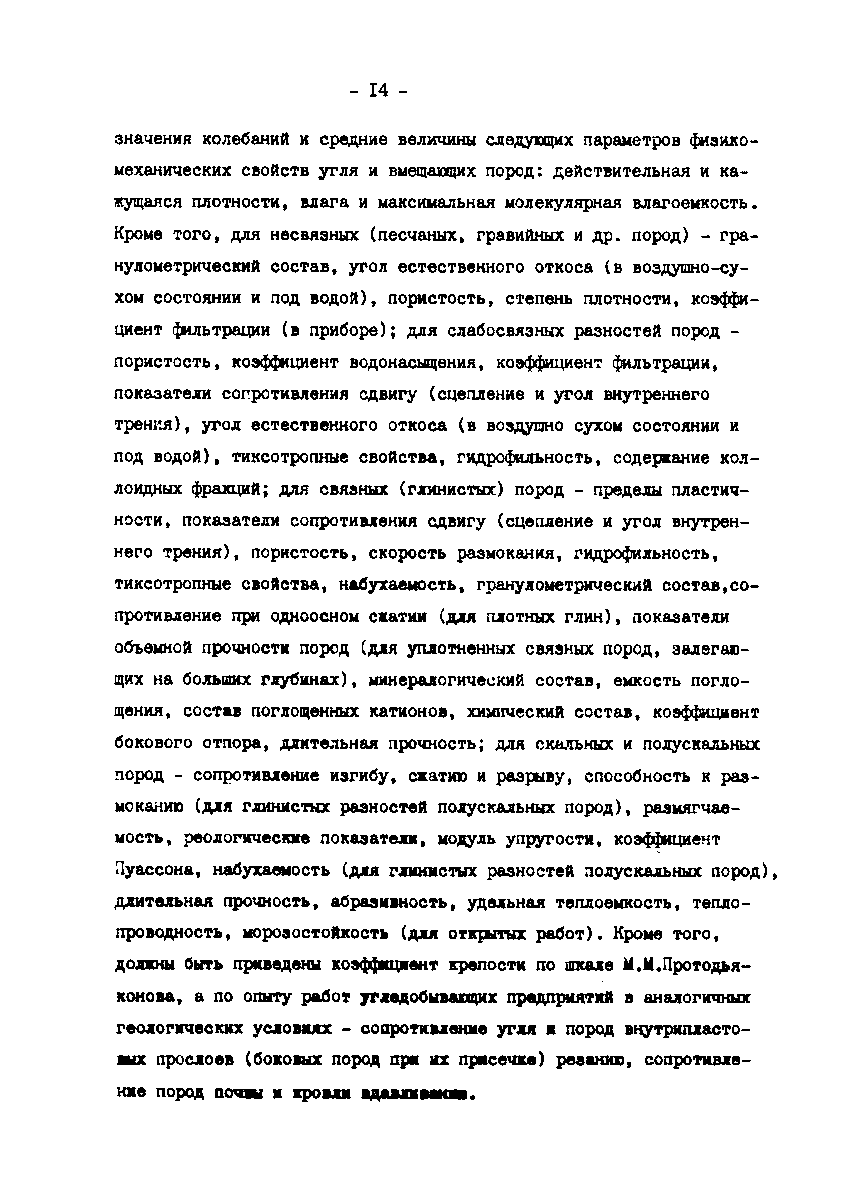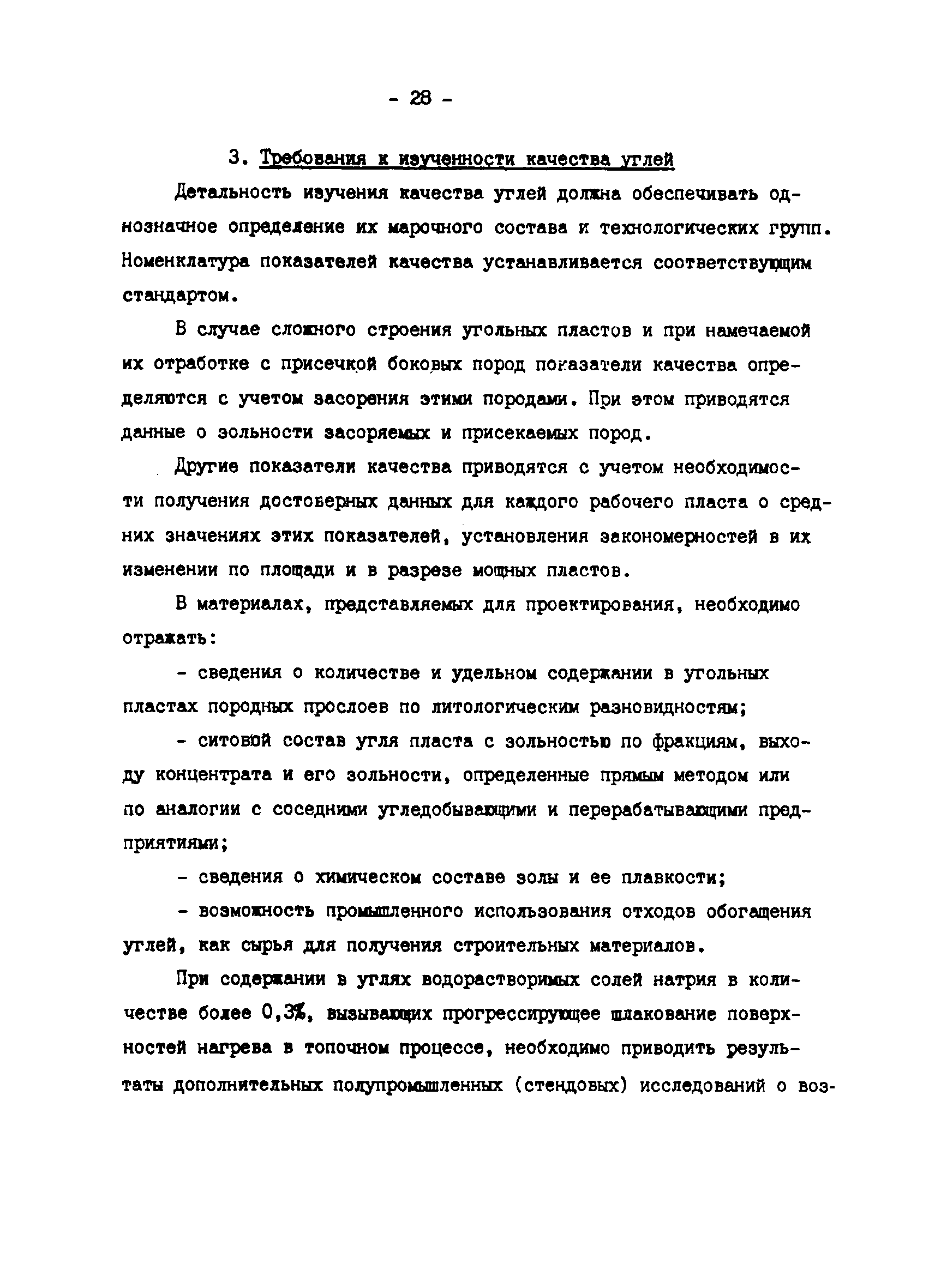 Технические требования угольной промышленности к геологоразведочными работам и исходным геологическим материалам, представляемым для проектирования шахт и разрезов| Статус: | справочные материалы, мп, тпр | | Название рус.: | Технические требования угольной промышленности к геологоразведочными работам и исходным геологическим материалам, представляемым для проектирования шахт и разрезов | | Дата добавления в базу: | 01.02.2020 | | Дата актуализации: | 01.01.2021 | | Область применения: | Документ предназначен для использования проектными институтами, геологоразведочными организациями, шахтами и разрезами при проектировании и выполнении геологоразведочных работ, составлении геологических отчетов и заключений, разработке проектов строительства (реконструкции) угледобывающих предприятий и приемке разведанных месторождений в промышленное использование. Документ распространяется как на угольные, так и на сланцевые месторождения. | | Оглавление: | Введение 1. Основные положения для оценки подготовленности разведанных участков (полей) угольных месторождений для проектирования 2. Требования к изученности горногеологических условий строительства и эксплуатации 2.1. Размещение и распределение разведанных запасов на участке 2.2. Разведанность строения и мощности пласта угля 2.3. Разведанность структурно-тектонических условий залегания пластов угля 2.4. Изучение литологического состава, физико-механических свойств вмещающих пород и прогноз степени их устойчивости в горных выработках 2.5. Изучение гидрогеологических условий разработки пластов угля и притока воды в горные выработки, методы осушения 2.6. Прогноз газоносности, выбросоопасности, опасности по горным ударам, склонности угля к самовозгоранию, взрывоопасности угольной пыли и силикозоопасности пород 2.7. Геотермические условия 3. Требования к изучению качества углей 4. Охрана недр и окружающей среды 5. Прочие учитываемые факторы освоения 6. Требования к качеству геологической документации, передаваемой для проектирования шахт и разрезов 7. Основные требования к другим геологическим материалам, используемым для проектирования | | Разработан: | Центрогипрошахт Союзшахтопроект Союзуглегеология