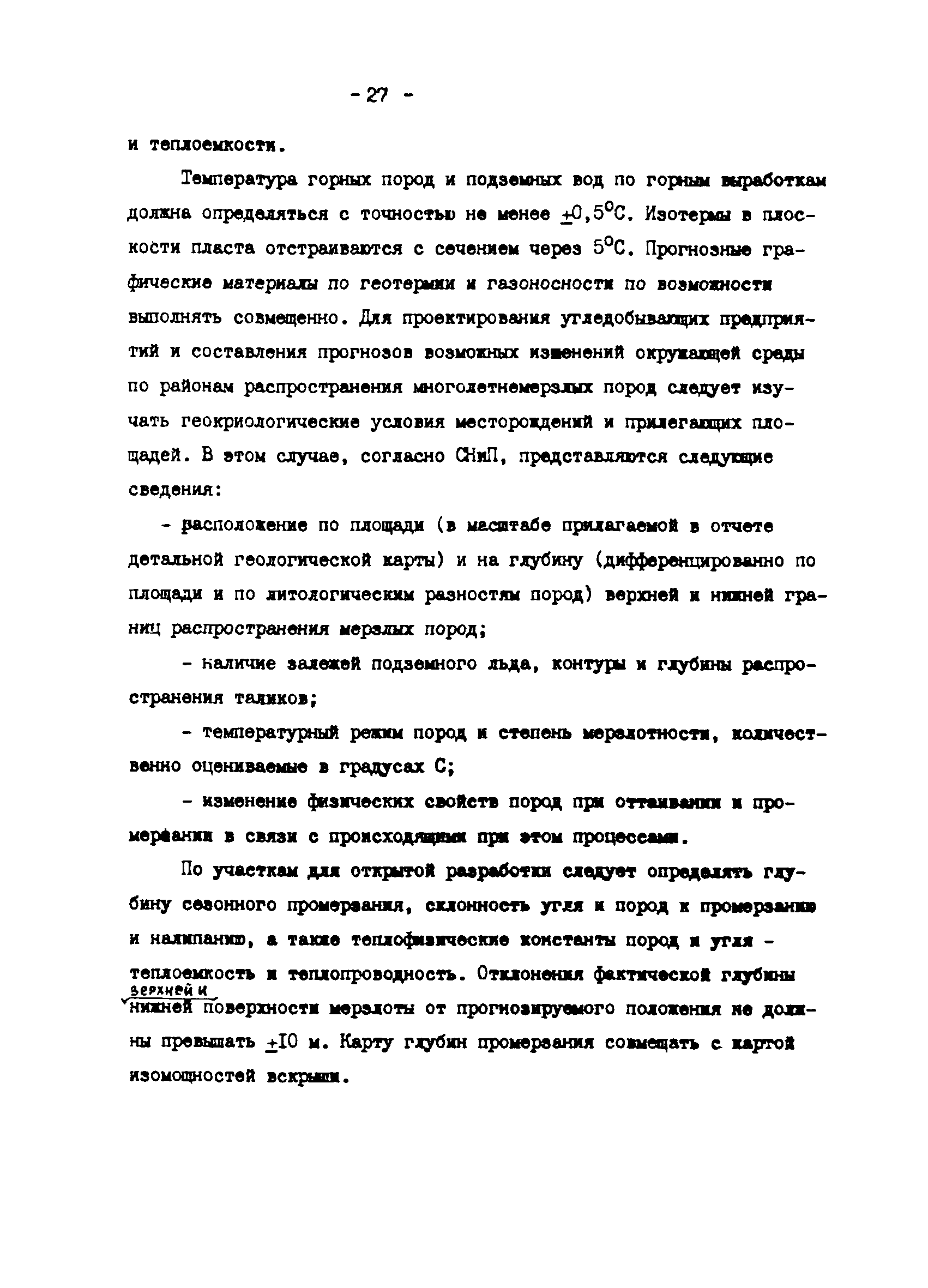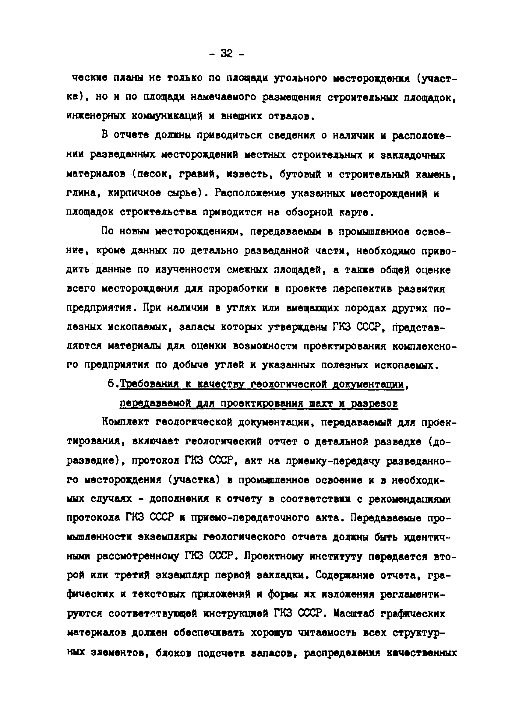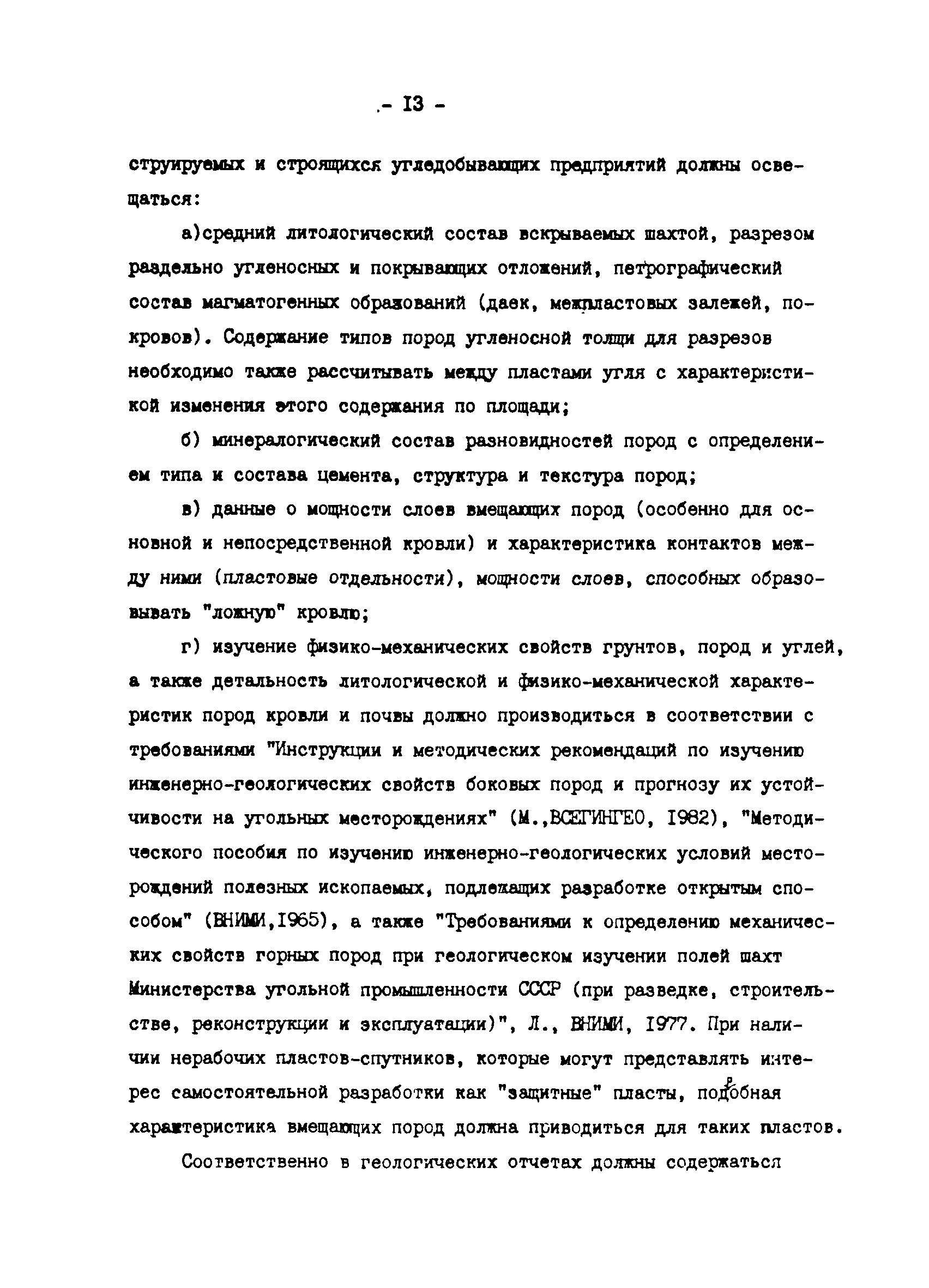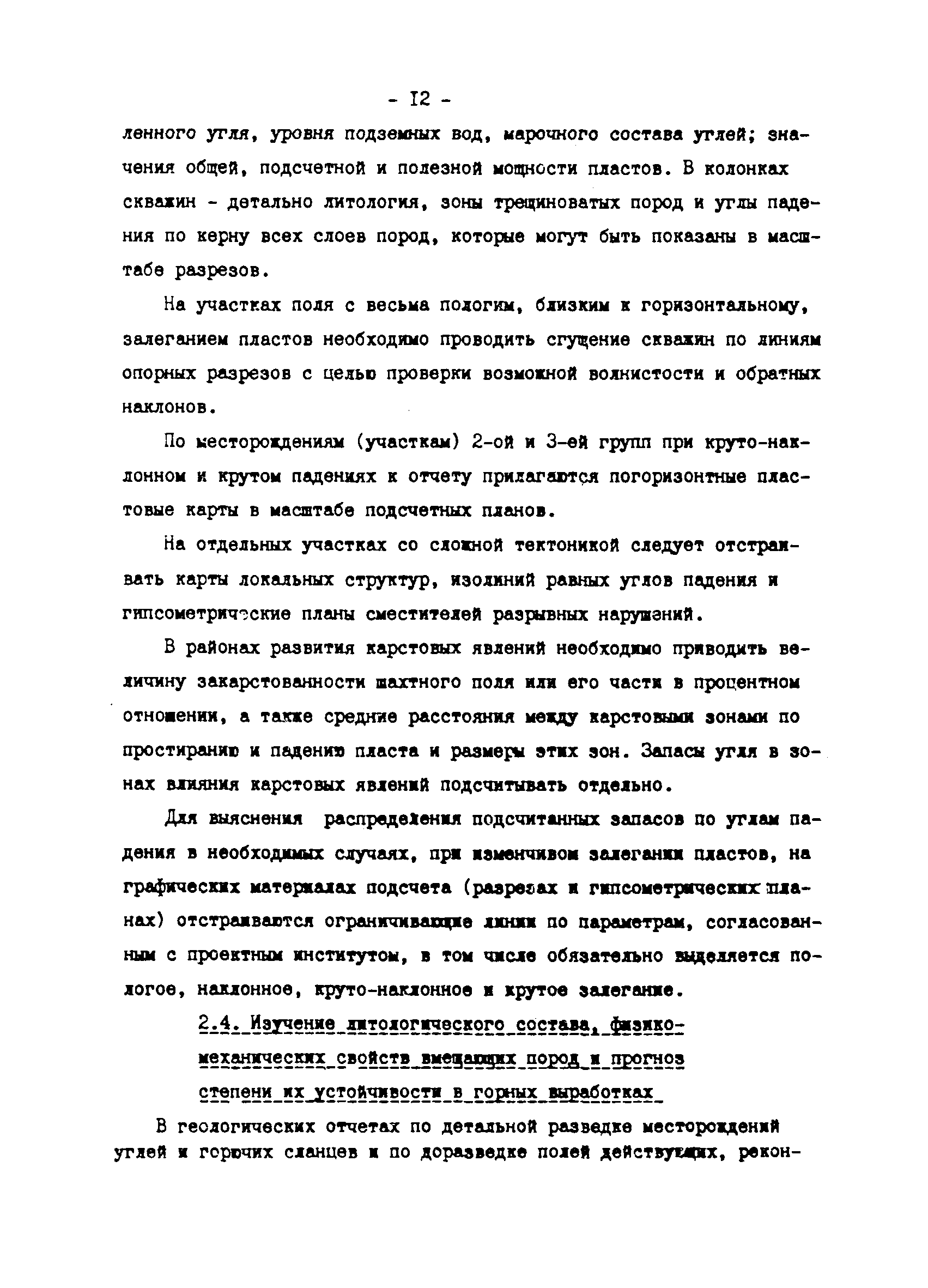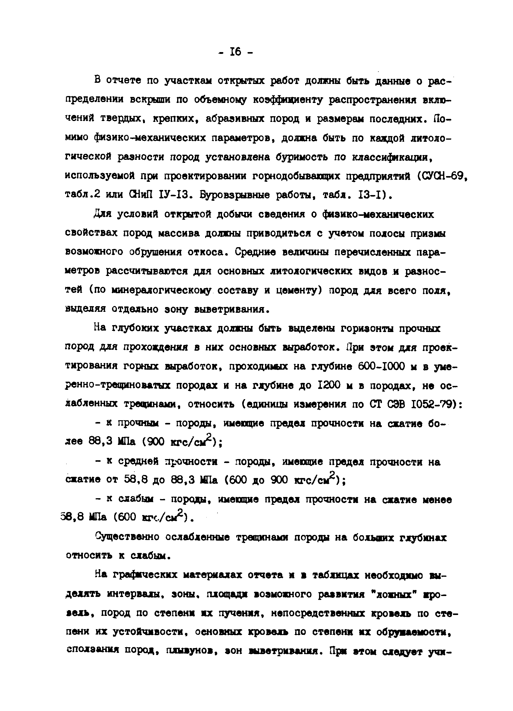 Технические требования угольной промышленности к геологоразведочными работам и исходным геологическим материалам, представляемым для проектирования шахт и разрезов| Статус: | справочные материалы, мп, тпр | | Название рус.: | Технические требования угольной промышленности к геологоразведочными работам и исходным геологическим материалам, представляемым для проектирования шахт и разрезов | | Дата добавления в базу: | 01.02.2020 | | Дата актуализации: | 01.01.2021 | | Область применения: | Документ предназначен для использования проектными институтами, геологоразведочными организациями, шахтами и разрезами при проектировании и выполнении геологоразведочных работ, составлении геологических отчетов и заключений, разработке проектов строительства (реконструкции) угледобывающих предприятий и приемке разведанных месторождений в промышленное использование. Документ распространяется как на угольные, так и на сланцевые месторождения. | | Оглавление: | Введение 1. Основные положения для оценки подготовленности разведанных участков (полей) угольных месторождений для проектирования 2. Требования к изученности горногеологических условий строительства и эксплуатации 2.1. Размещение и распределение разведанных запасов на участке 2.2. Разведанность строения и мощности пласта угля 2.3. Разведанность структурно-тектонических условий залегания пластов угля 2.4. Изучение литологического состава, физико-механических свойств вмещающих пород и прогноз степени их устойчивости в горных выработках 2.5. Изучение гидрогеологических условий разработки пластов угля и притока воды в горные выработки, методы осушения 2.6. Прогноз газоносности, выбросоопасности, опасности по горным ударам, склонности угля к самовозгоранию, взрывоопасности угольной пыли и силикозоопасности пород 2.7. Геотермические условия 3. Требования к изучению качества углей 4. Охрана недр и окружающей среды 5. Прочие учитываемые факторы освоения 6. Требования к качеству геологической документации, передаваемой для проектирования шахт и разрезов 7. Основные требования к другим геологическим материалам, используемым для проектирования | | Разработан: | Центрогипрошахт Союзшахтопроект Союзуглегеология