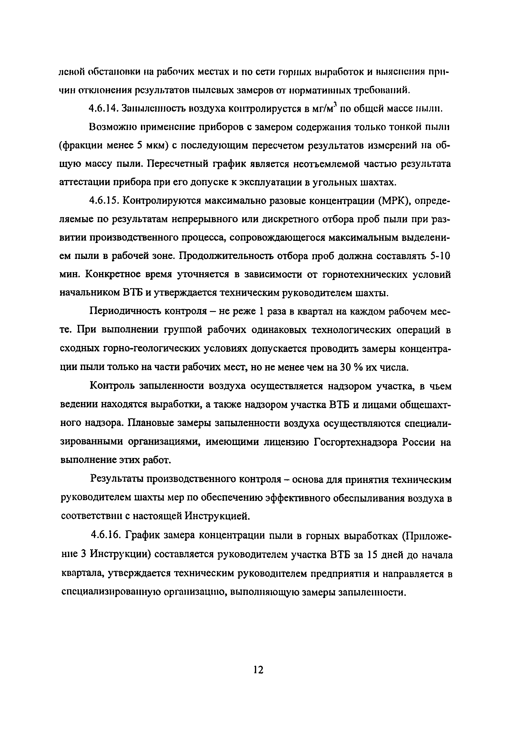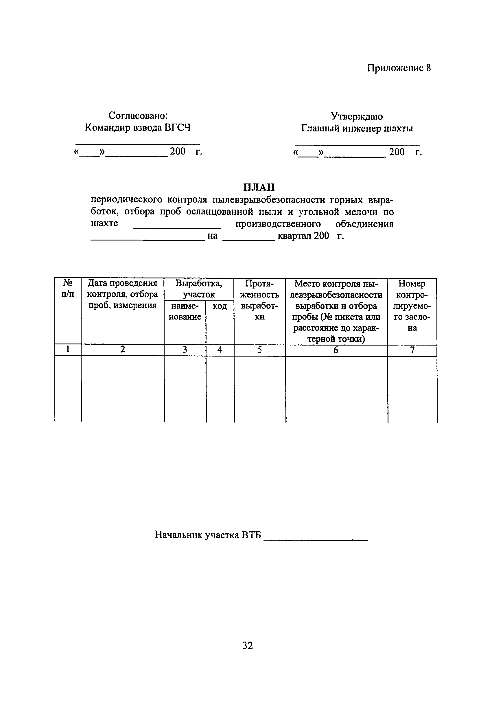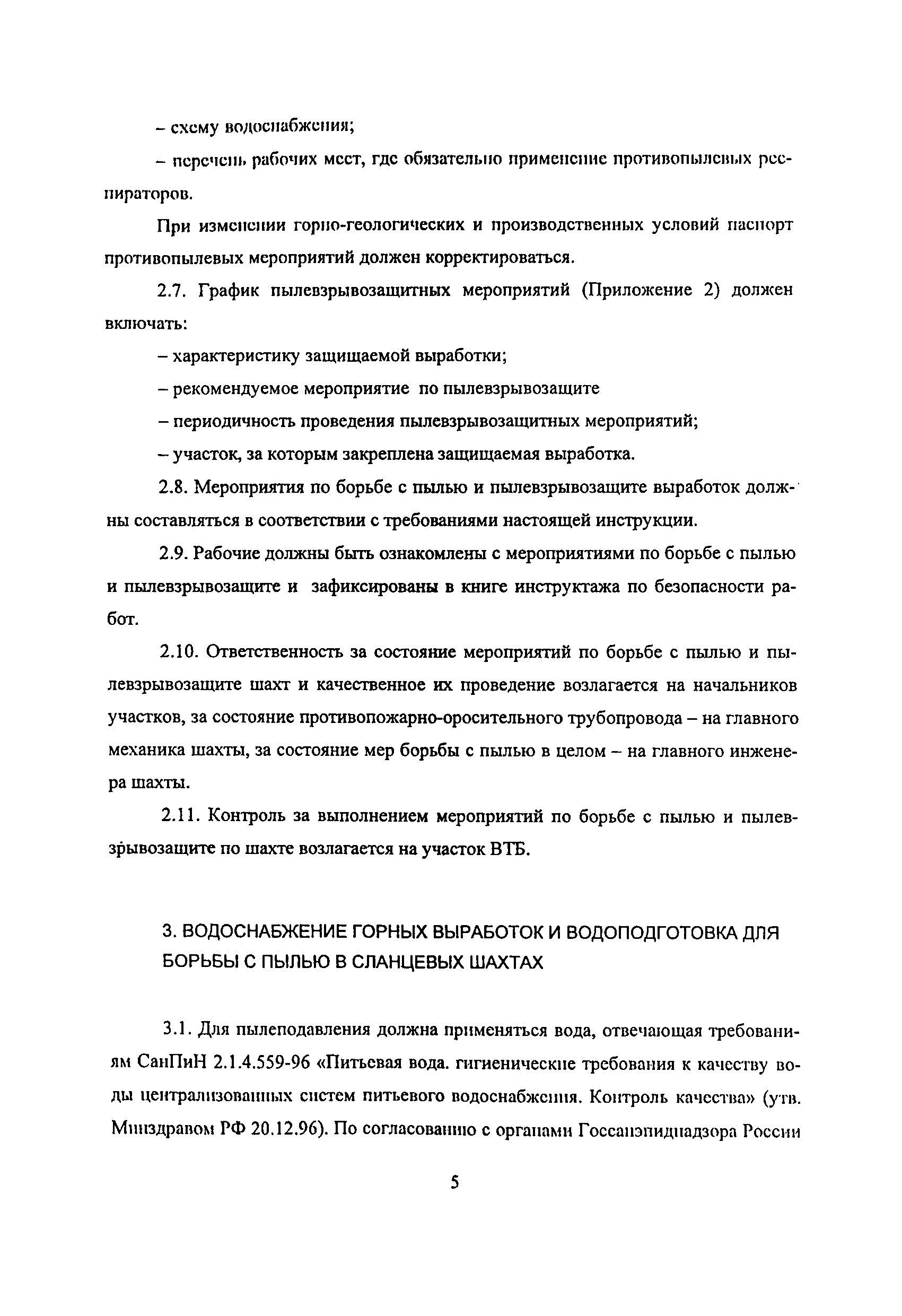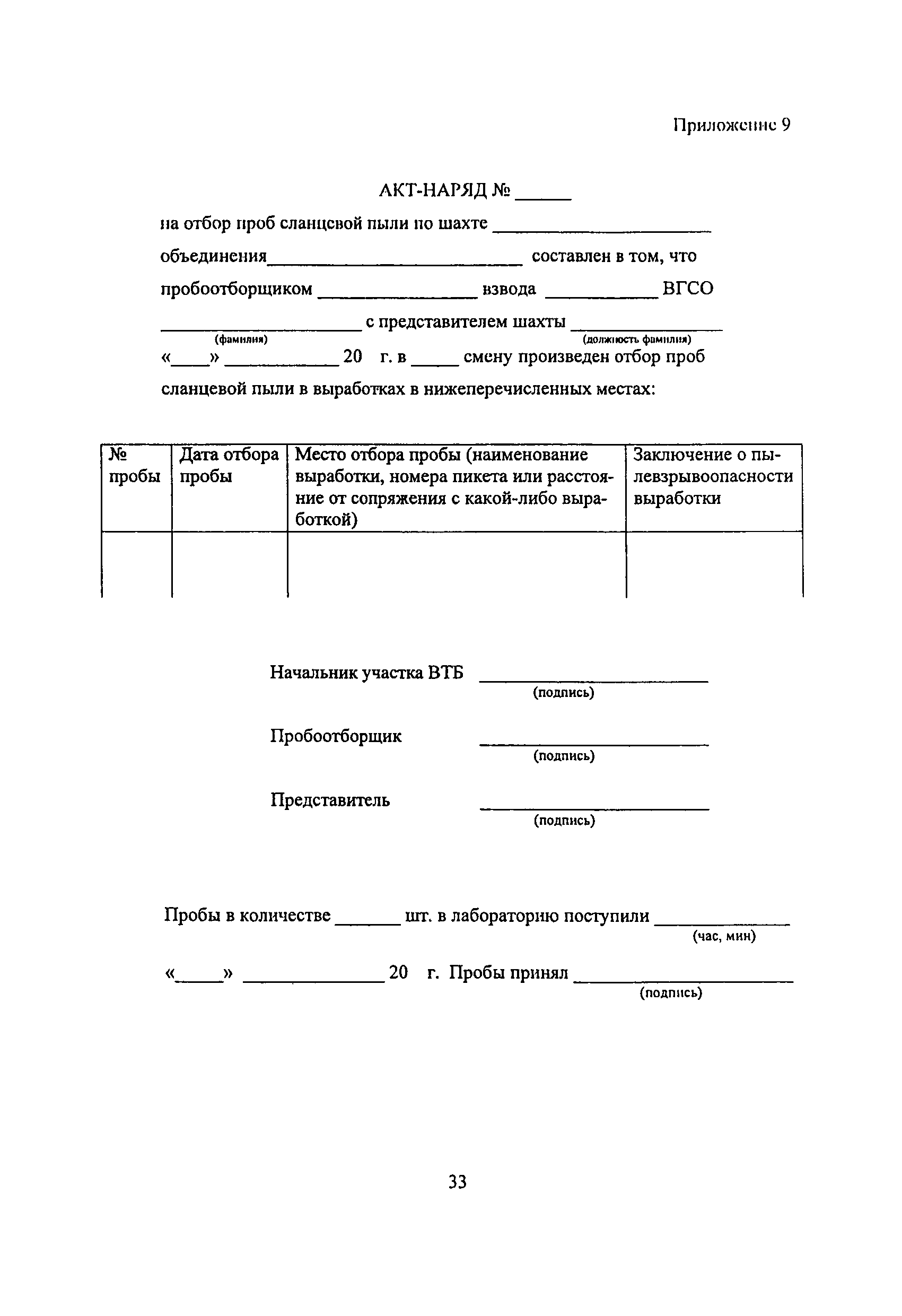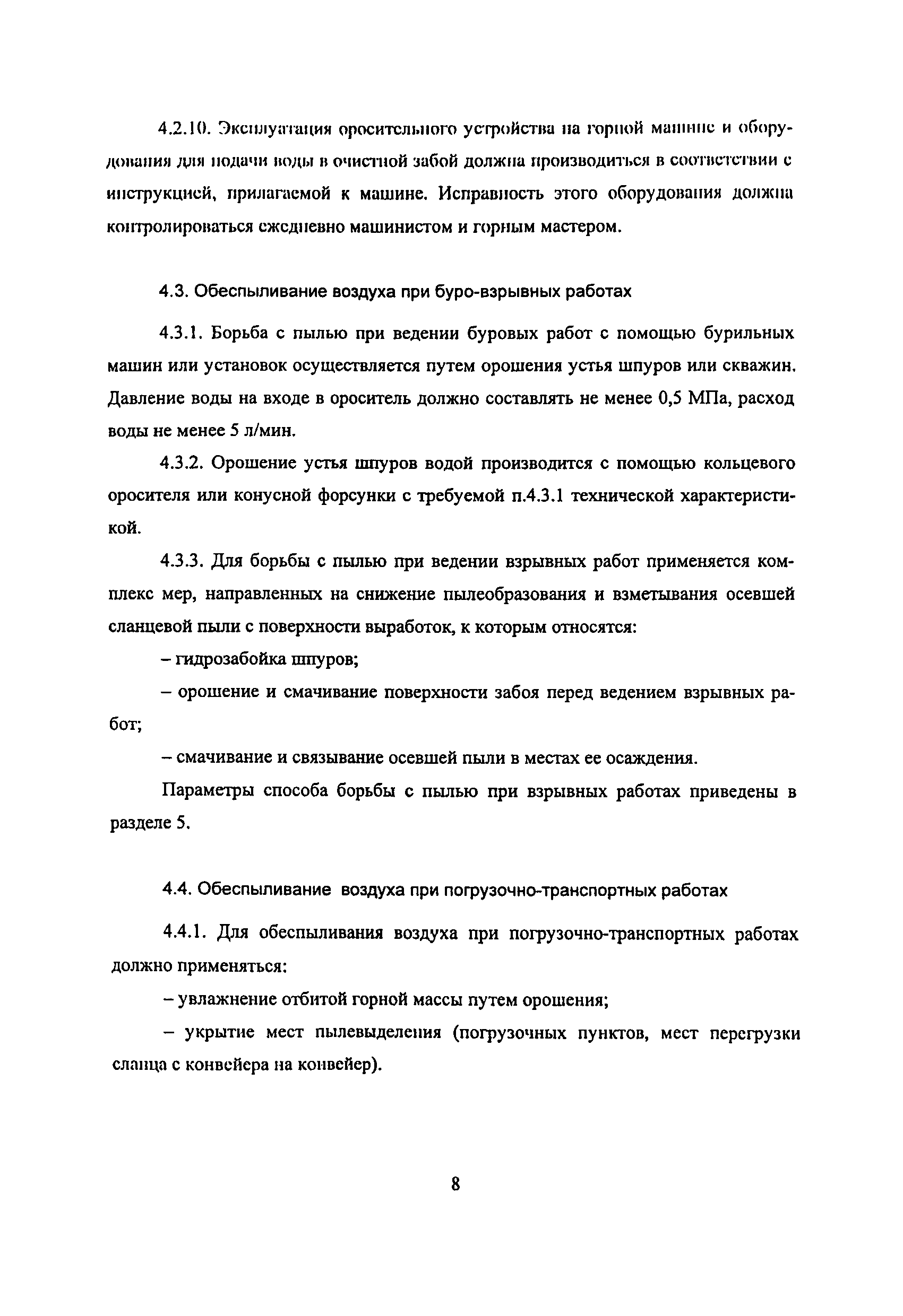 | Оглавление: | 1 Особенности разработки месторождения 2 Общие положения 3 Водоснабжение горных выработок и водоподготовка для борьбы с пылью в сланцевых шахтах 4 Комплексное обеспыливание воздуха при различных производственных процессах 5 Пылевзрывозащита горных выработок сланцевых щахт 6 Организация работ по пылевэрывозащите выработок 7 Контроль пылевзрывобезопасности горных выработок сланцевых шахт Приложение 1. Паспорт противопылевых мероприятий участка Приложение 2. График проведения пылевзрывозащитных мероприятий по шахте Приложение 3. График замера концентрации пыли в горных выработках шахты Приложение 4. Акт-наряд на измерение концентрации пыли Приложение 5. Форма извещения Приложение 6. Журнал учета концентрации пыли в горных выработках шахты Приложение 7. Книга контроля состояния мероприятий по предупреждению взрывов сланцевой пыли Приложение 8. План периодического контроля пылевзрывобезопасности горных выработок, отбора проб осланцованной пыли и угольной мелочи по шахте Приложение 9. Акт-наряд на отбор проб сланцевой пыли по шахте Приложение 10. Результаты контроля взрывобезопасности горных выработок и анализа проб сланцевой пыли |