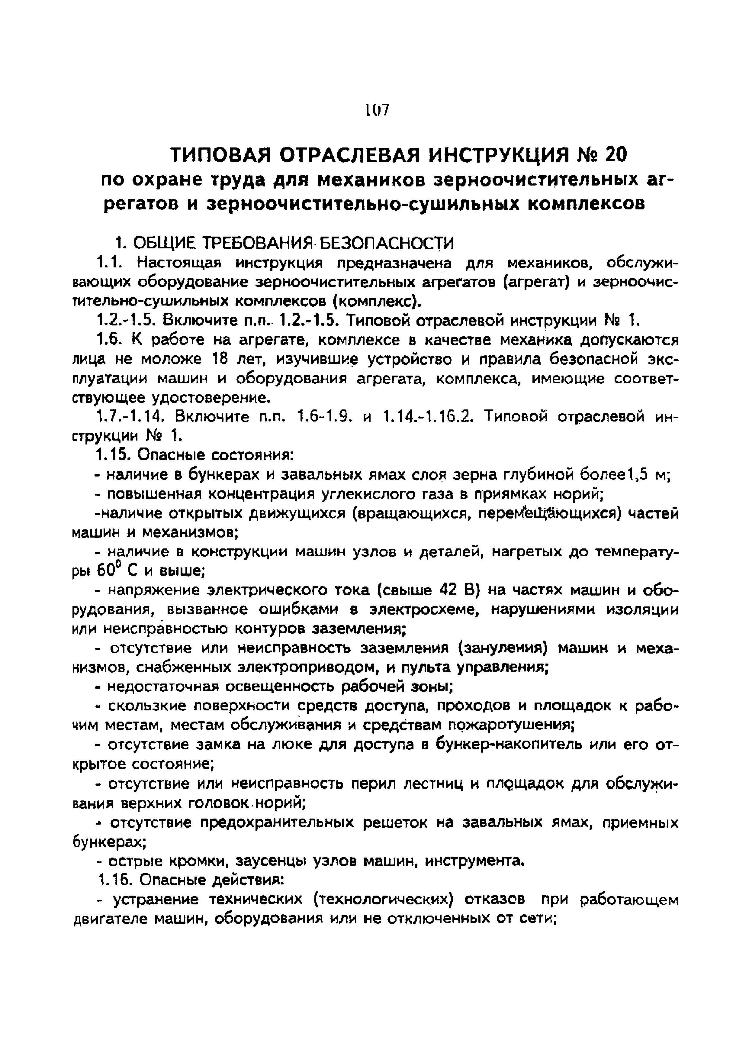 | Название рус.: | Типовая отраслевая инструкция № 20 по охране труда для механиков зерноочистительных агрегатов и зерноочистительно-сушильных комплексов |