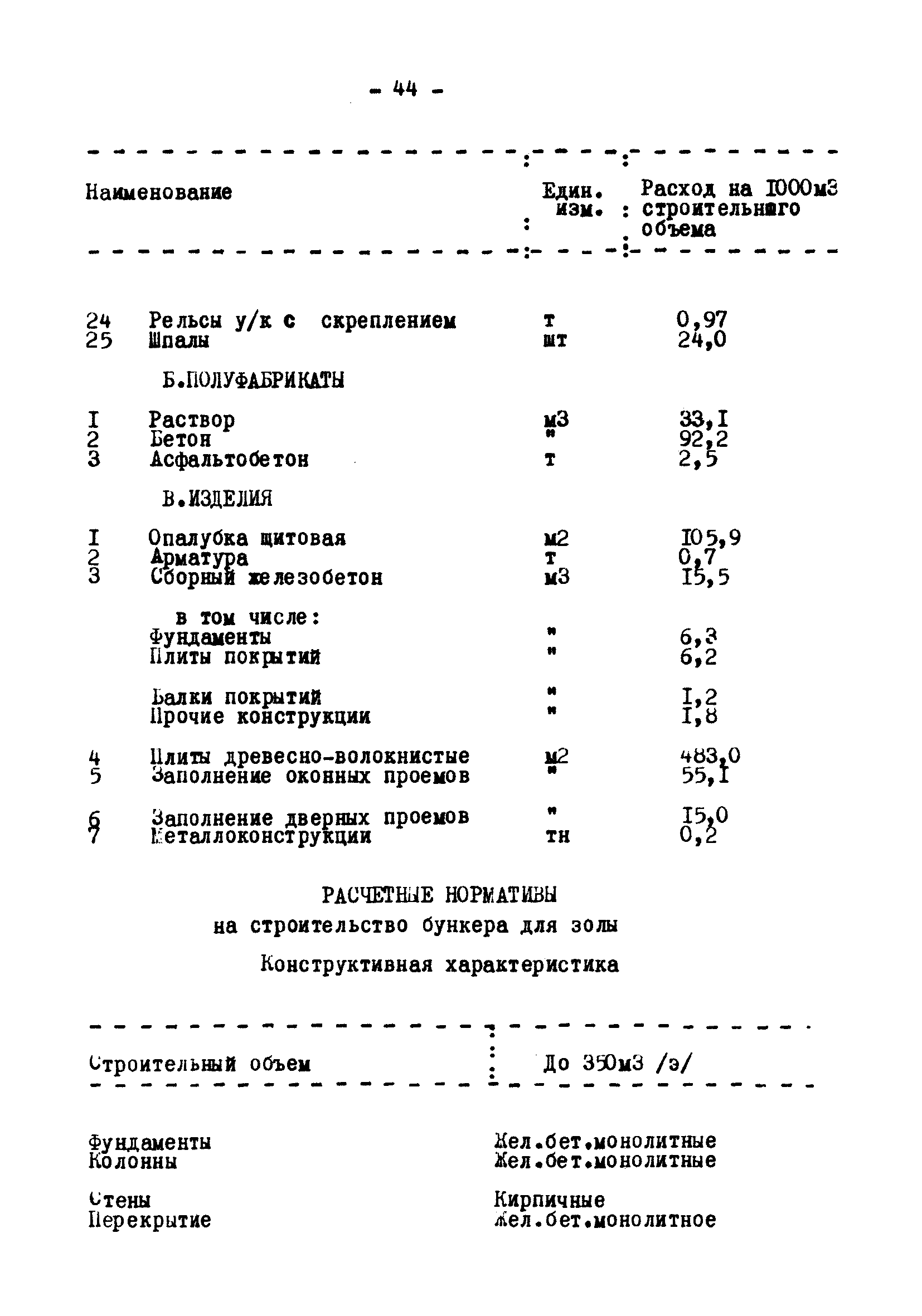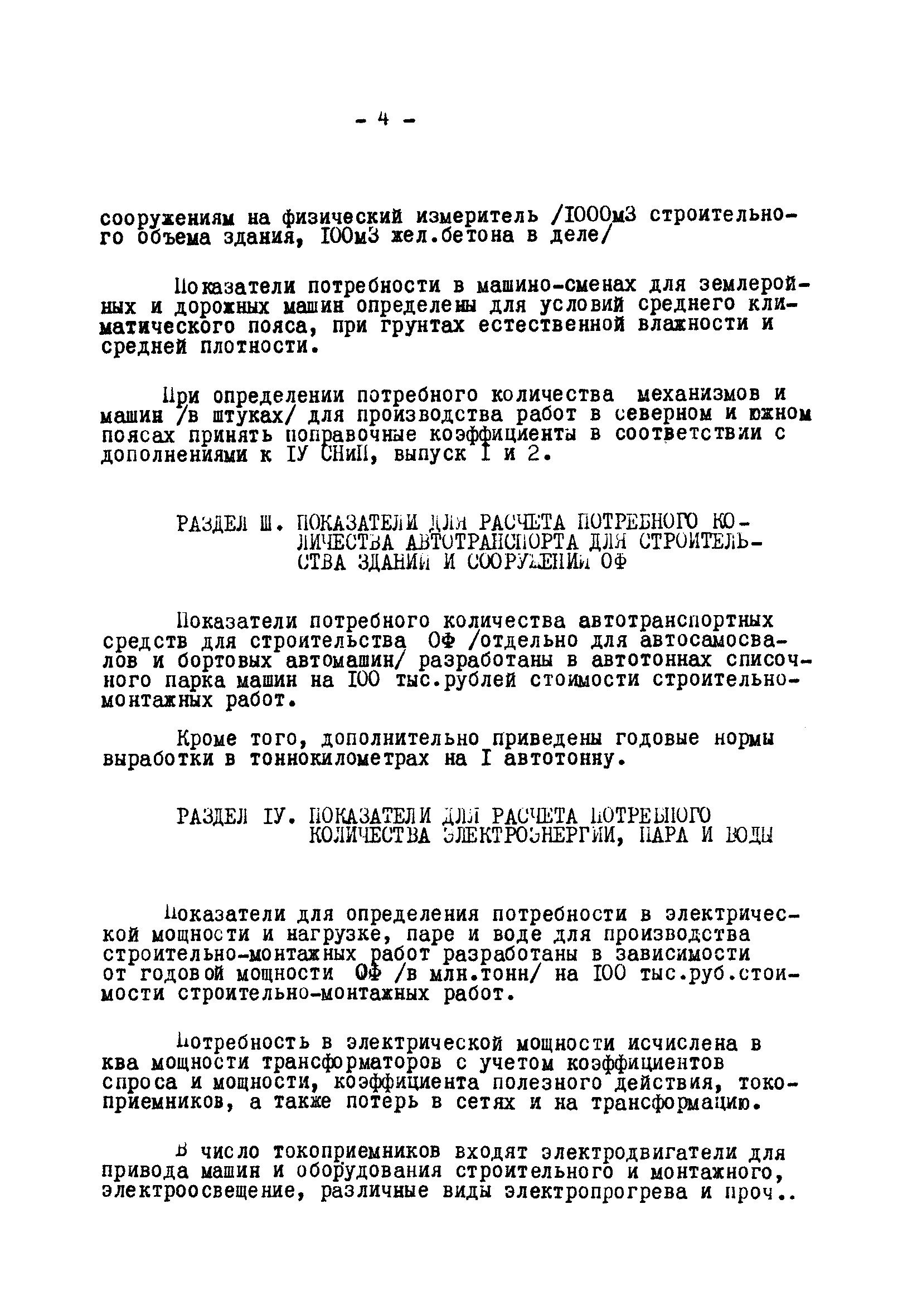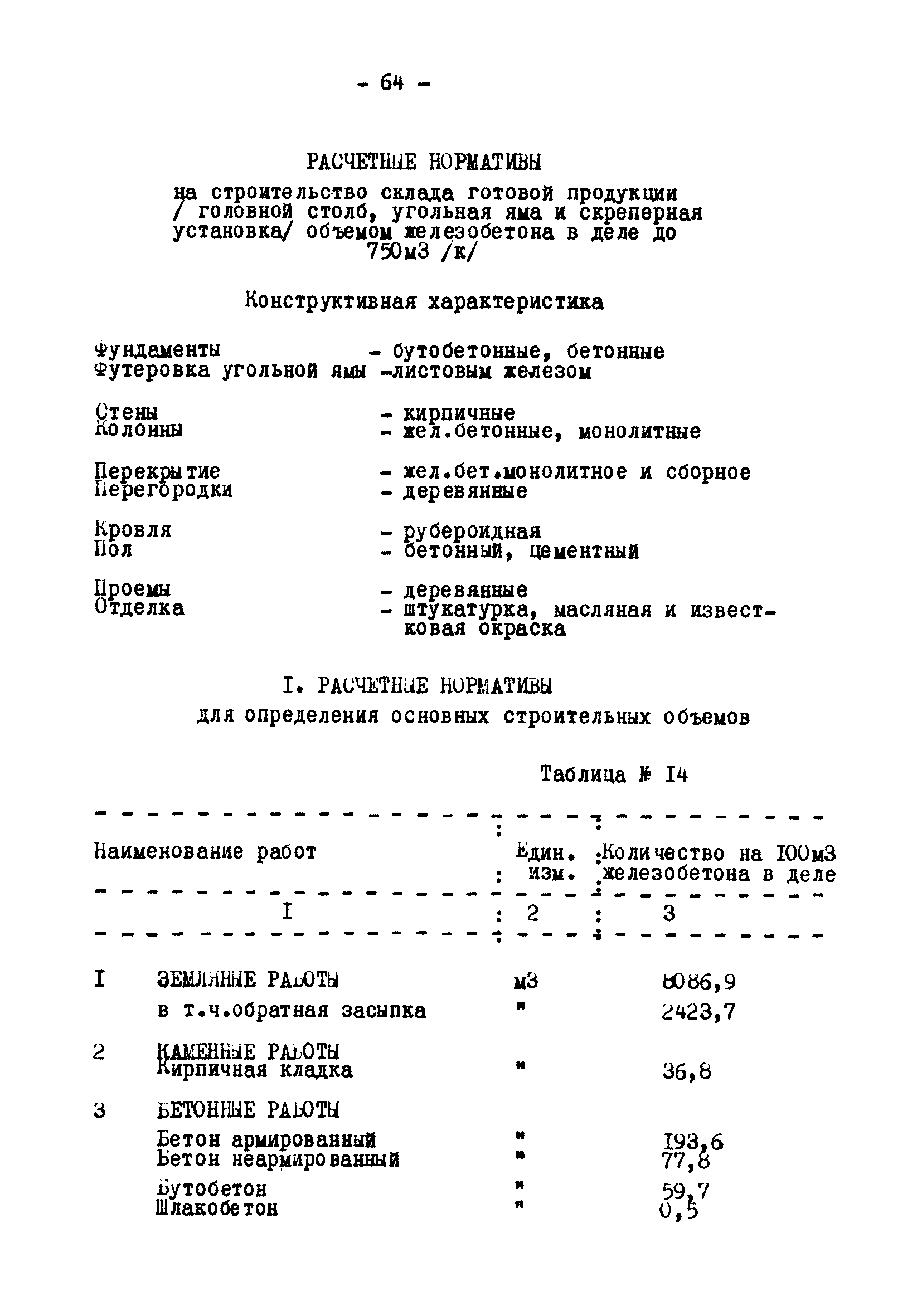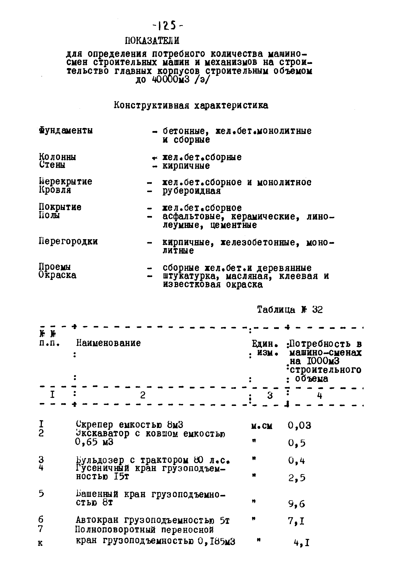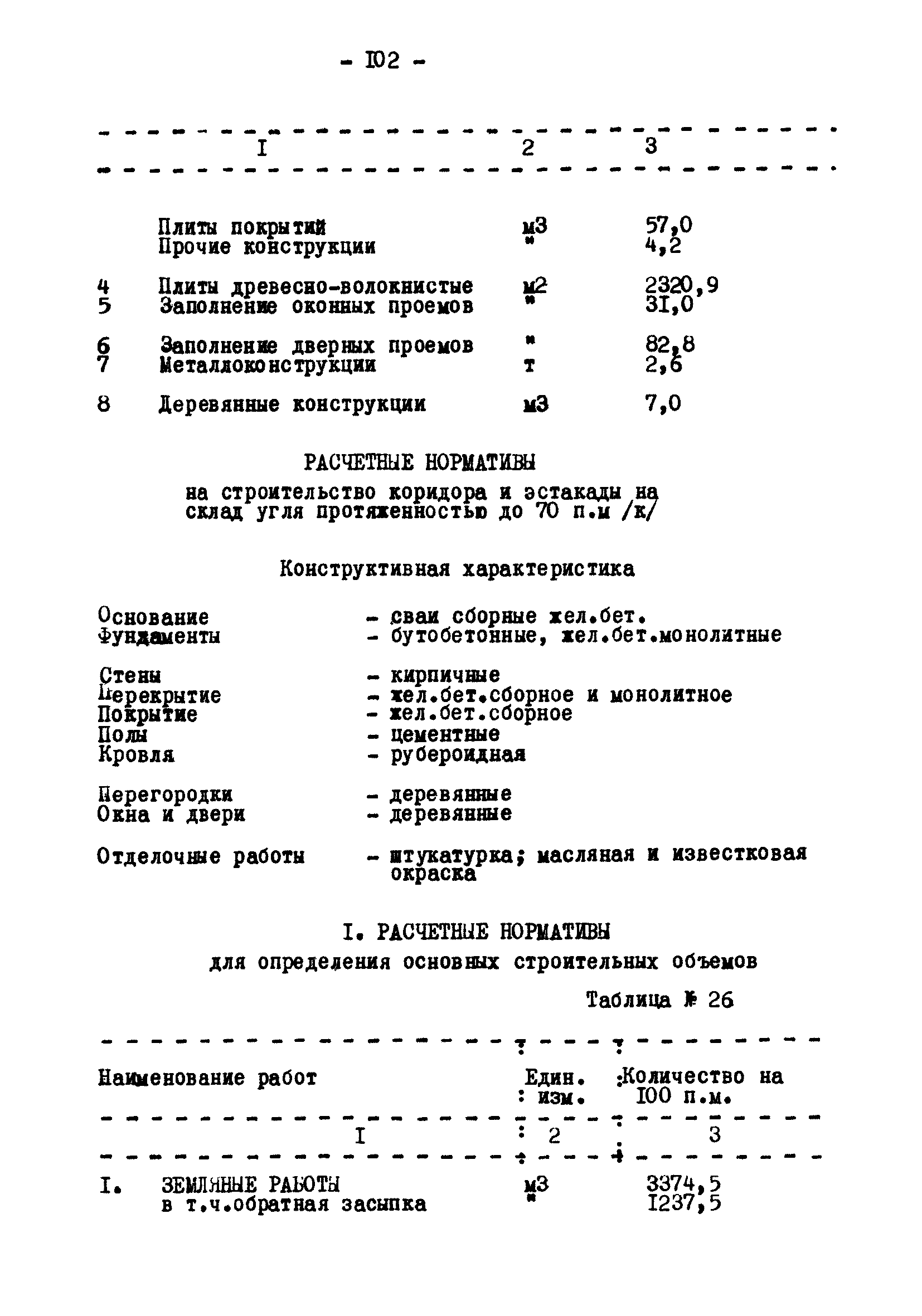 Расчетные нормативы для составления проектов организации строительства углеобогатительных фабрик| Статус: | справочные материалы, мп, тпр | | Название рус.: | Расчетные нормативы для составления проектов организации строительства углеобогатительных фабрик | | Дата добавления в базу: | 01.02.2020 | | Дата актуализации: | 01.01.2021 | | Область применения: | Нормативы предназначены для определения объемов основных работ и материально-технических ресурсов при составлении разделов "Организация строительства" проектного задания углеобогатительных фабрик | | Оглавление: | Раздел 1. Расчетные нормативы на строительство зданий и сооружений обогатительных фабрик 1 Главные корпусы ОФ объемом до 40000 м3, до 100000 м3 2 Корпус сушки объемом до 14000 м3 3 Здание радиальных сгустителей объемом до 35000 м3 4 Погрузочные пункты объемом до 3500 м3, 10500 м3 5 Перегрузочные пункты объемом до 950 м3, до 2500 м3 6 Шламовые бассейны объемом до 5600 м3 7 Контора с химлабораторией объемом до 2500 м3 8 Котельная объемом до 850 м3 9 Бункеры для золы объемом до 350 м3 10 Углеприемная яма объемом до 1600 м3, до 6500 м3 11 Материальный склад объемом до 3000 м3 12 Здание паровозо-ремонтного депо объемом до 8000 м3 13 Здание маневровой лебедки объемом до 650 м3 14 Оклад готовой продукции объемом до 750 м3 15 Склад реагентов и ГСМ объемом до 550 м3 16 Здание экспедиции объемом до 305 м3 17 Пункт технического осмотра вагонов объемом до 850 м3 18 Здание путевых рабочих объемом до 175 м3 19 Здание товарной конторы объемом до 300 м3 20 Насосная станция осветленных вод у шламонакопителя объемом до 170 м3 21 Шламопровод длиной до 70 м 22 Трубопровод осветленной воды длиной до 600 м 23 Металлическая эстакада весом металлоконструкций до 22 т 24 Металлическая галерея весом металлоконструкций до 65 т 25 Коридор и тоннель для подачи угля от здания перегрузки на погрузочные бункеры длиной до 40 м 26 Коридор и эстакада от перегрузки на склад длиной до 70 м 27 Кирпичный коридор и эстакада от главного корпуса на здание перегрузки длиной до 30 п.м. 28 Тоннель, коридор и эстакада подачи угля от склада на перегрузку длиной до 100 п.м. 29 Тоннель и коридор от ямы привозных углей объемом до 330 м3 30 Металлическая эстакада от главного корпуса к радиальным сгустителям весом металлоконструкций до 16,5 т 31 Металлическая эстакада от ямы привозных углей до дробильно-сортировочного отделения весом металлоконструкции до 56 т Раздел 2. Показатели для расчета потребного количества машино-смен основных машин и механизмов для производства общестроительных работ 32 Главные корпусы объемом до 40000 м3 33 То же, объемом до 100000 м3 34 Корпус сушки объемом до 14000 м3 35 Тоже, объемом до 23000 м3 36 Здание радиальных сгустителей объемом до 35000 м3 37 Здание погрузочных бункеров объемом до 3500 м3 38 Тоже, объемом до 10500 м3 39 Перегрузочные пункты объемом до 950 м3, 2500 м3 40 Шламовые бассейны до 5600 м3, до 24500 м3 41 Контора с химлабораторией объемом до 2500 м3 42 Углеприемная яма объемом до 1600 м3, до 6500 м3 43 Склад готовой продукции объемом жел. Бет. В деле до 750 м3 44 Склад реагентов и смазочных материалов объемом до 550 м3 Раздел 3. Показатели для расчета потребного количества автотранспорта для строительства зданий и сооружений ОФ 45 Показатели для определения потребного списочного парка автомашин при строительстве ОФ Раздел 4. Показатели для расчета потребного количества электроэнергии, пара и воды для строительства зданий и сооружений ОФ 46 Показате