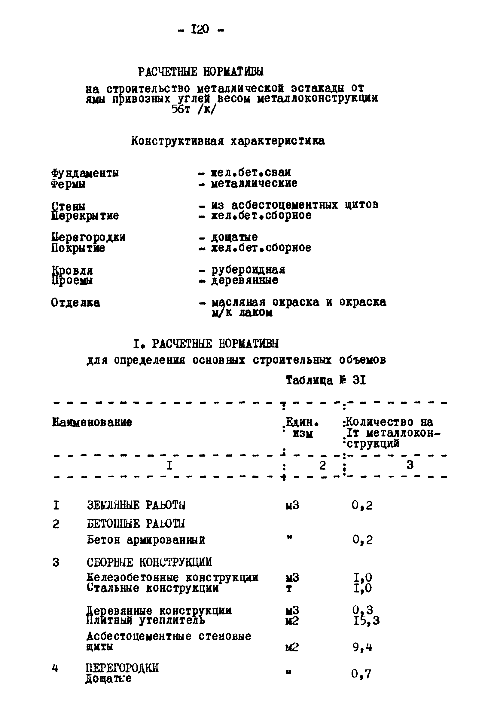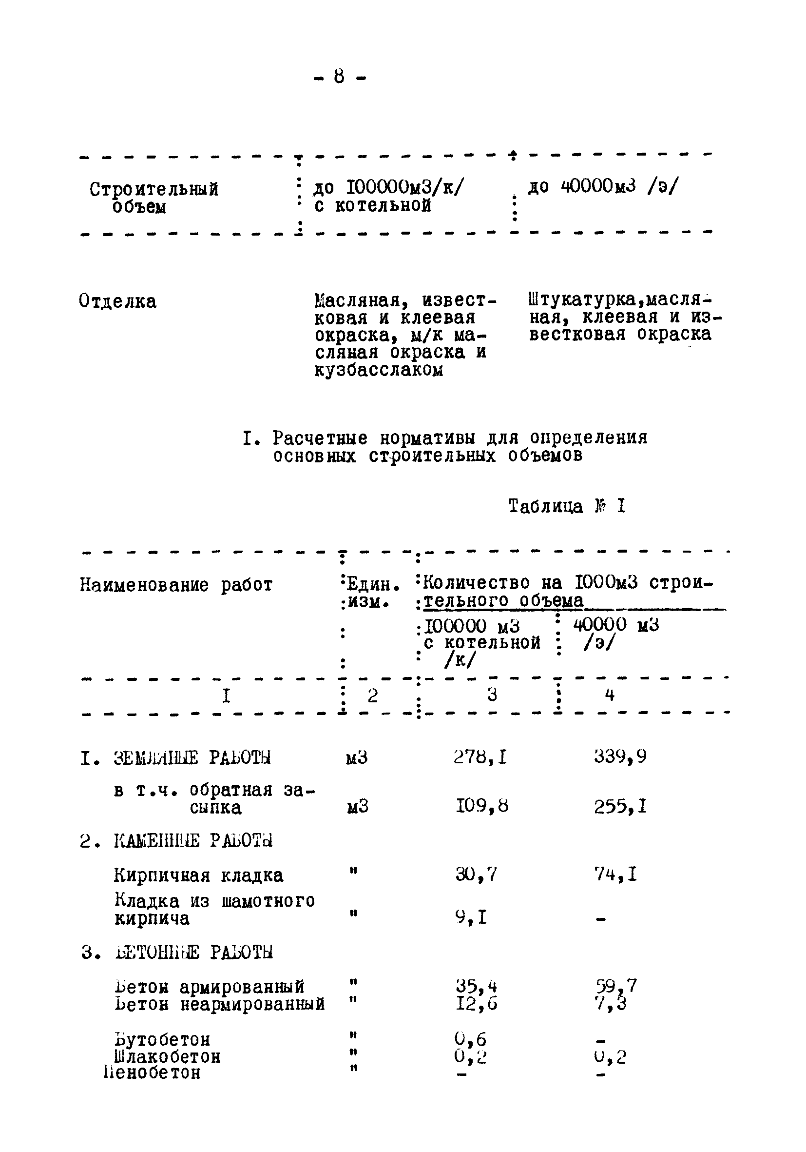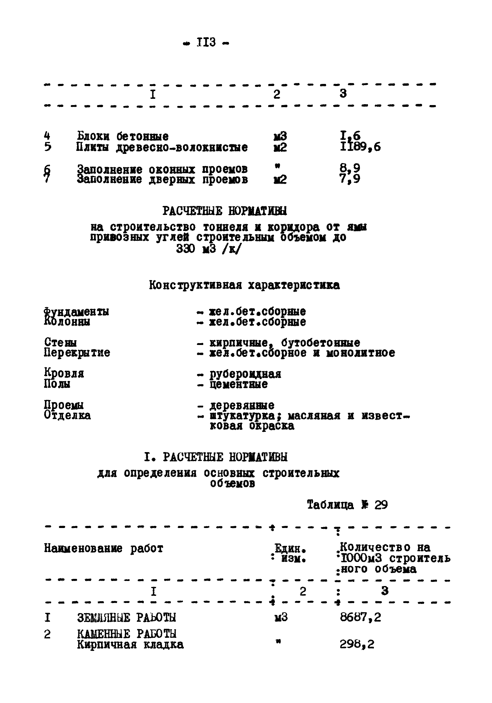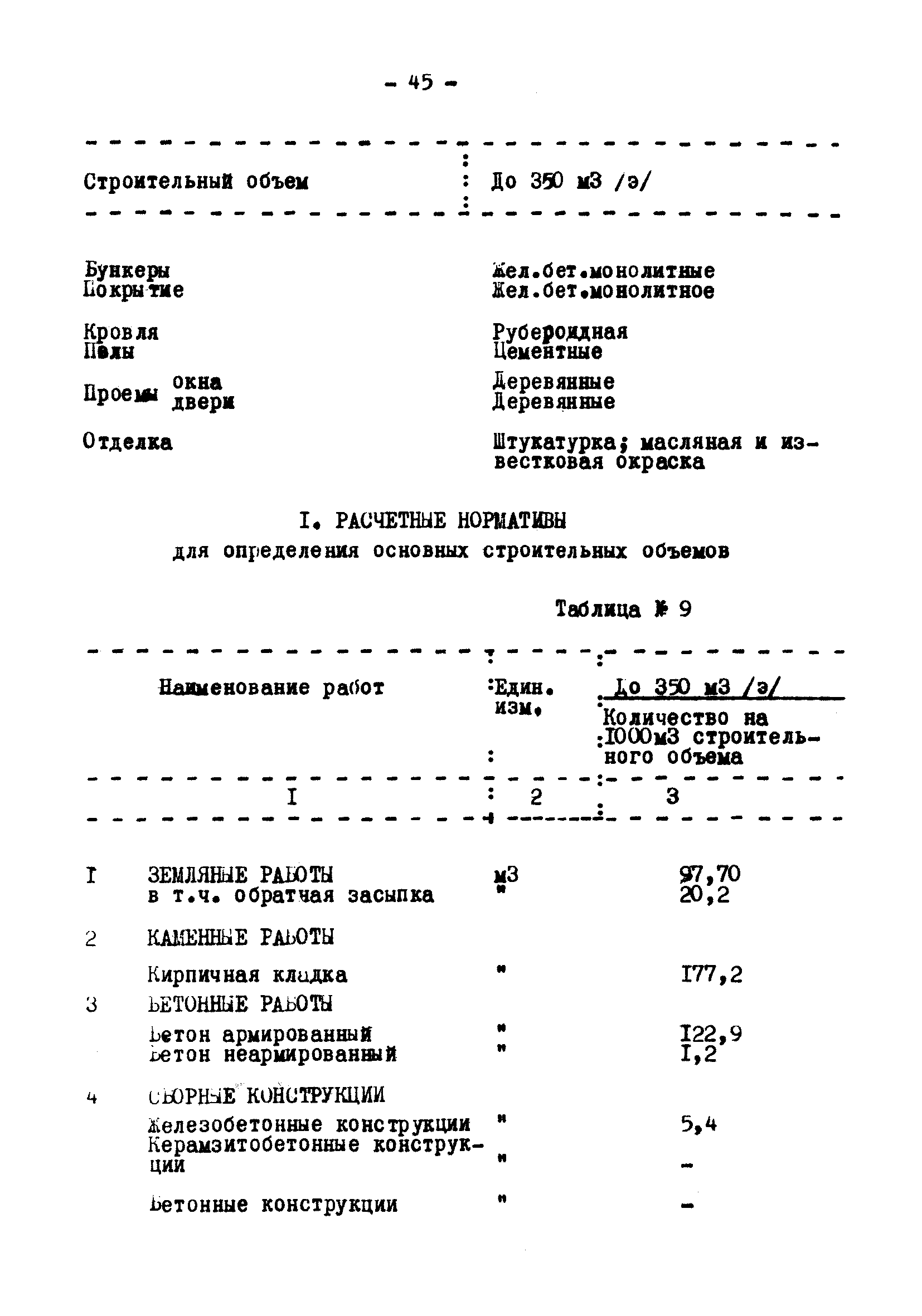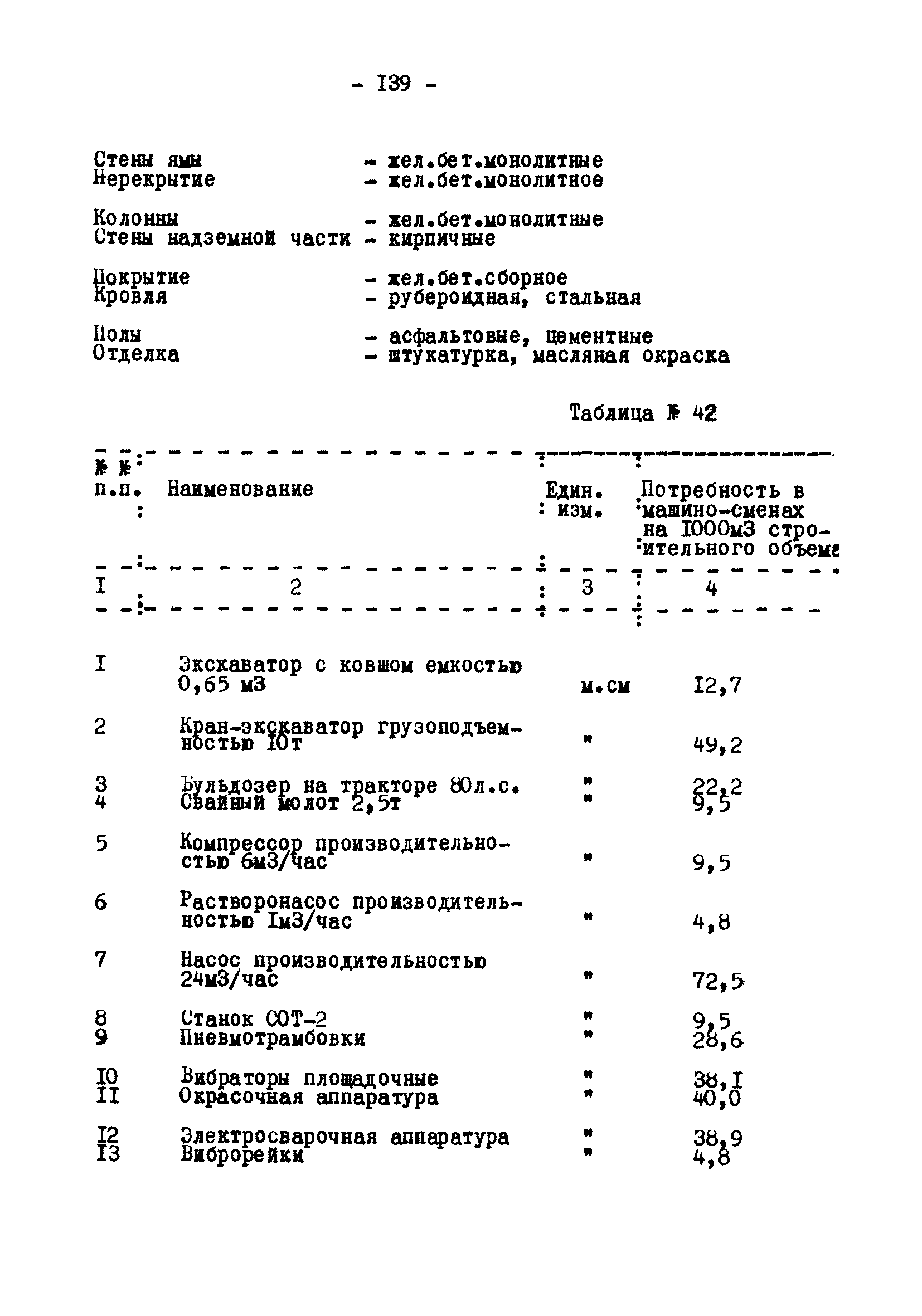 Расчетные нормативы для составления проектов организации строительства углеобогатительных фабрик| Статус: | справочные материалы, мп, тпр | | Название рус.: | Расчетные нормативы для составления проектов организации строительства углеобогатительных фабрик | | Дата добавления в базу: | 01.02.2020 | | Дата актуализации: | 01.01.2021 | | Область применения: | Нормативы предназначены для определения объемов основных работ и материально-технических ресурсов при составлении разделов "Организация строительства" проектного задания углеобогатительных фабрик | | Оглавление: | Раздел 1. Расчетные нормативы на строительство зданий и сооружений обогатительных фабрик 1 Главные корпусы ОФ объемом до 40000 м3, до 100000 м3 2 Корпус сушки объемом до 14000 м3 3 Здание радиальных сгустителей объемом до 35000 м3 4 Погрузочные пункты объемом до 3500 м3, 10500 м3 5 Перегрузочные пункты объемом до 950 м3, до 2500 м3 6 Шламовые бассейны объемом до 5600 м3 7 Контора с химлабораторией объемом до 2500 м3 8 Котельная объемом до 850 м3 9 Бункеры для золы объемом до 350 м3 10 Углеприемная яма объемом до 1600 м3, до 6500 м3 11 Материальный склад объемом до 3000 м3 12 Здание паровозо-ремонтного депо объемом до 8000 м3 13 Здание маневровой лебедки объемом до 650 м3 14 Оклад готовой продукции объемом до 750 м3 15 Склад реагентов и ГСМ объемом до 550 м3 16 Здание экспедиции объемом до 305 м3 17 Пункт технического осмотра вагонов объемом до 850 м3 18 Здание путевых рабочих объемом до 175 м3 19 Здание товарной конторы объемом до 300 м3 20 Насосная станция осветленных вод у шламонакопителя объемом до 170 м3 21 Шламопровод длиной до 70 м 22 Трубопровод осветленной воды длиной до 600 м 23 Металлическая эстакада весом металлоконструкций до 22 т 24 Металлическая галерея весом металлоконструкций до 65 т 25 Коридор и тоннель для подачи угля от здания перегрузки на погрузочные бункеры длиной до 40 м 26 Коридор и эстакада от перегрузки на склад длиной до 70 м 27 Кирпичный коридор и эстакада от главного корпуса на здание перегрузки длиной до 30 п.м. 28 Тоннель, коридор и эстакада подачи угля от склада на перегрузку длиной до 100 п.м. 29 Тоннель и коридор от ямы привозных углей объемом до 330 м3 30 Металлическая эстакада от главного корпуса к радиальным сгустителям весом металлоконструкций до 16,5 т 31 Металлическая эстакада от ямы привозных углей до дробильно-сортировочного отделения весом металлоконструкции до 56 т Раздел 2. Показатели для расчета потребного количества машино-смен основных машин и механизмов для производства общестроительных работ 32 Главные корпусы объемом до 40000 м3 33 То же, объемом до 100000 м3 34 Корпус сушки объемом до 14000 м3 35 Тоже, объемом до 23000 м3 36 Здание радиальных сгустителей объемом до 35000 м3 37 Здание погрузочных бункеров объемом до 3500 м3 38 Тоже, объемом до 10500 м3 39 Перегрузочные пункты объемом до 950 м3, 2500 м3 40 Шламовые бассейны до 5600 м3, до 24500 м3 41 Контора с химлабораторией объемом до 2500 м3 42 Углеприемная яма объемом до 1600 м3, до 6500 м3 43 Склад готовой продукции объемом жел. Бет. В деле до 750 м3 44 Склад реагентов и смазочных материалов объемом до 550 м3 Раздел 3. Показатели для расчета потребного количества автотранспорта для строительства зданий и сооружений ОФ 45 Показатели для определения потребного списочного парка автомашин при строительстве ОФ Раздел 4. Показатели для расчета потребного количества электроэнергии, пара и воды для строительства зданий и сооружений ОФ 46 Показате