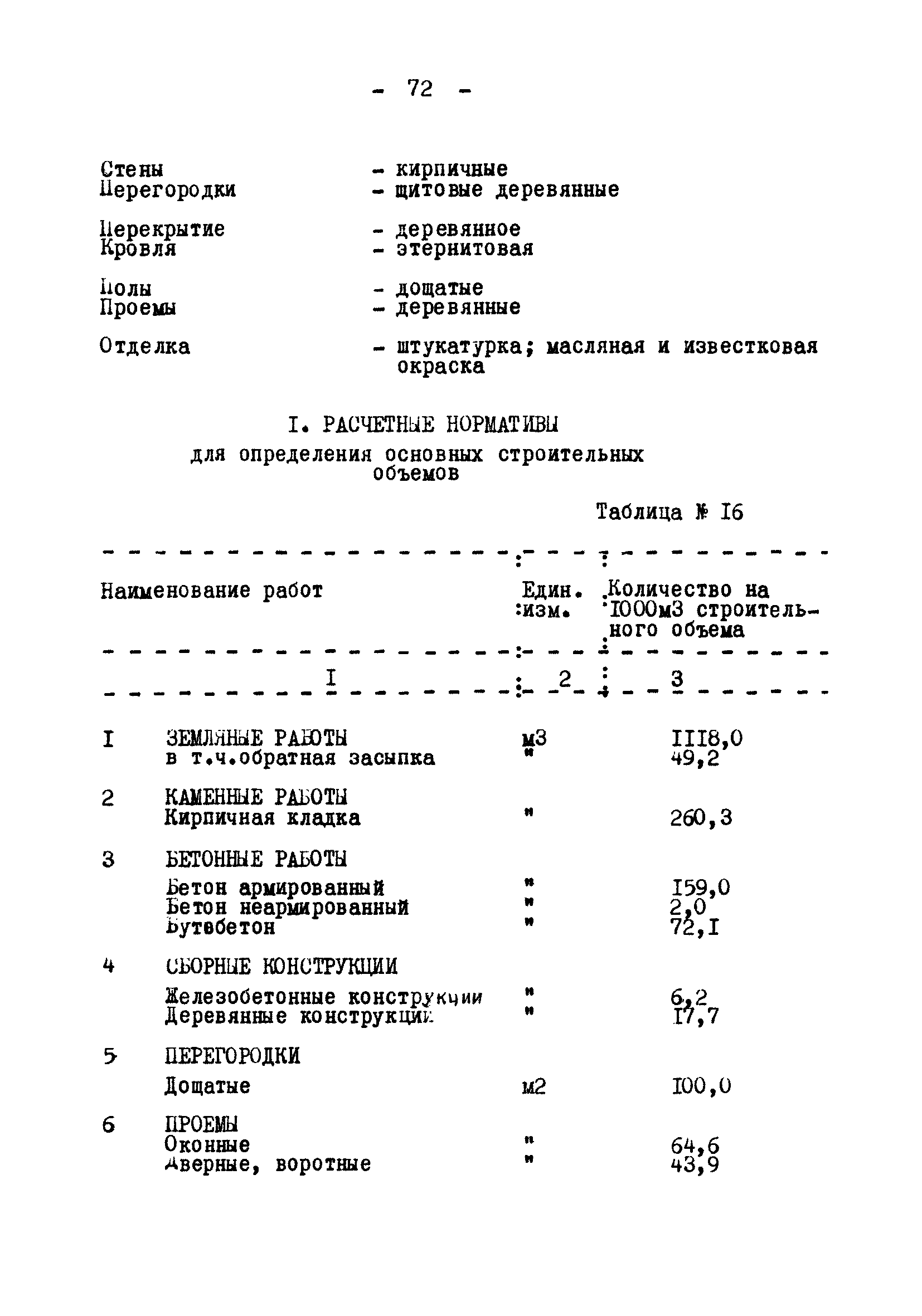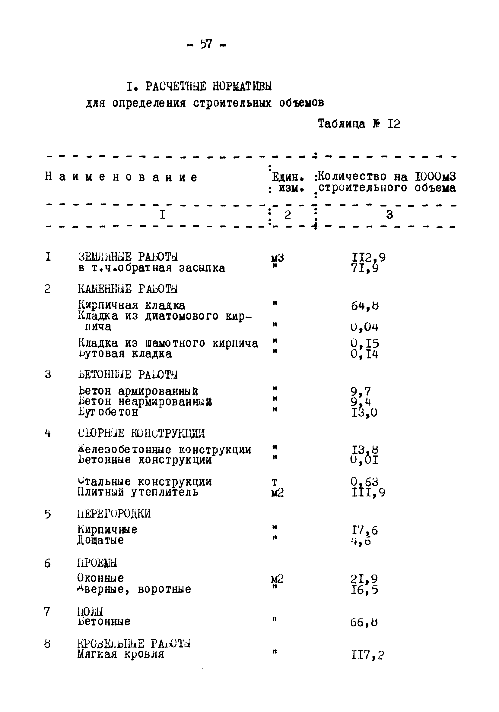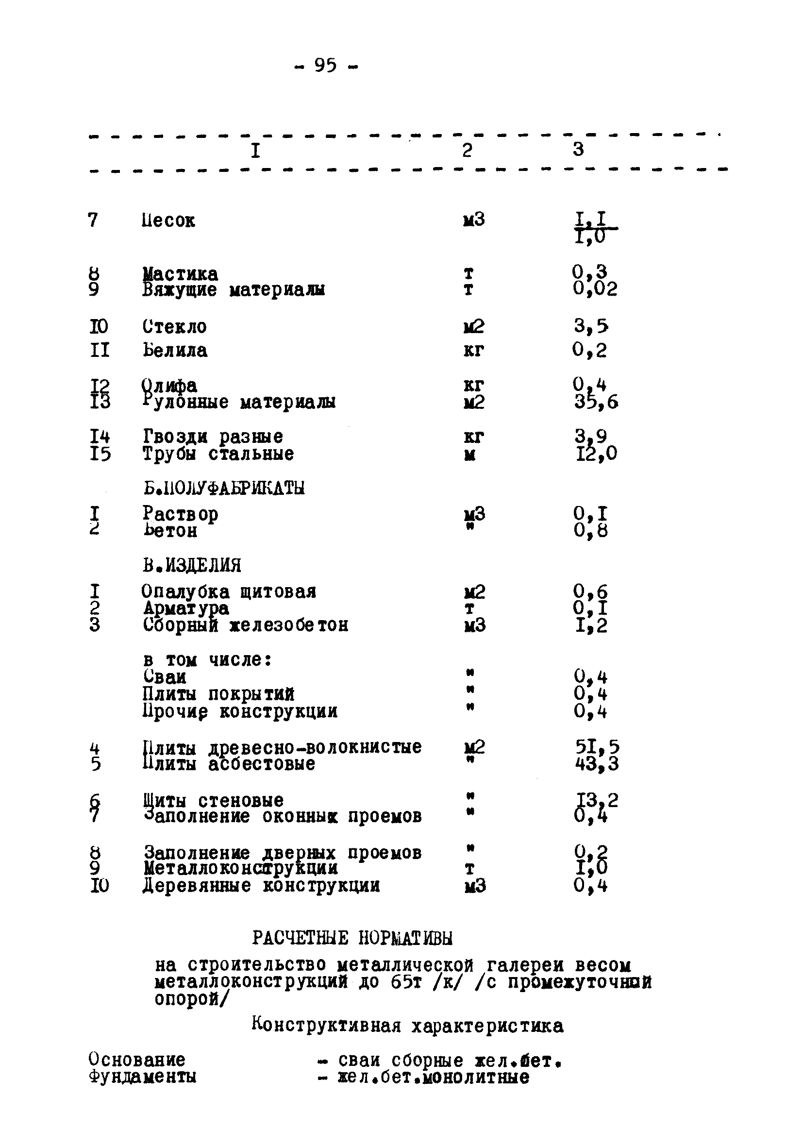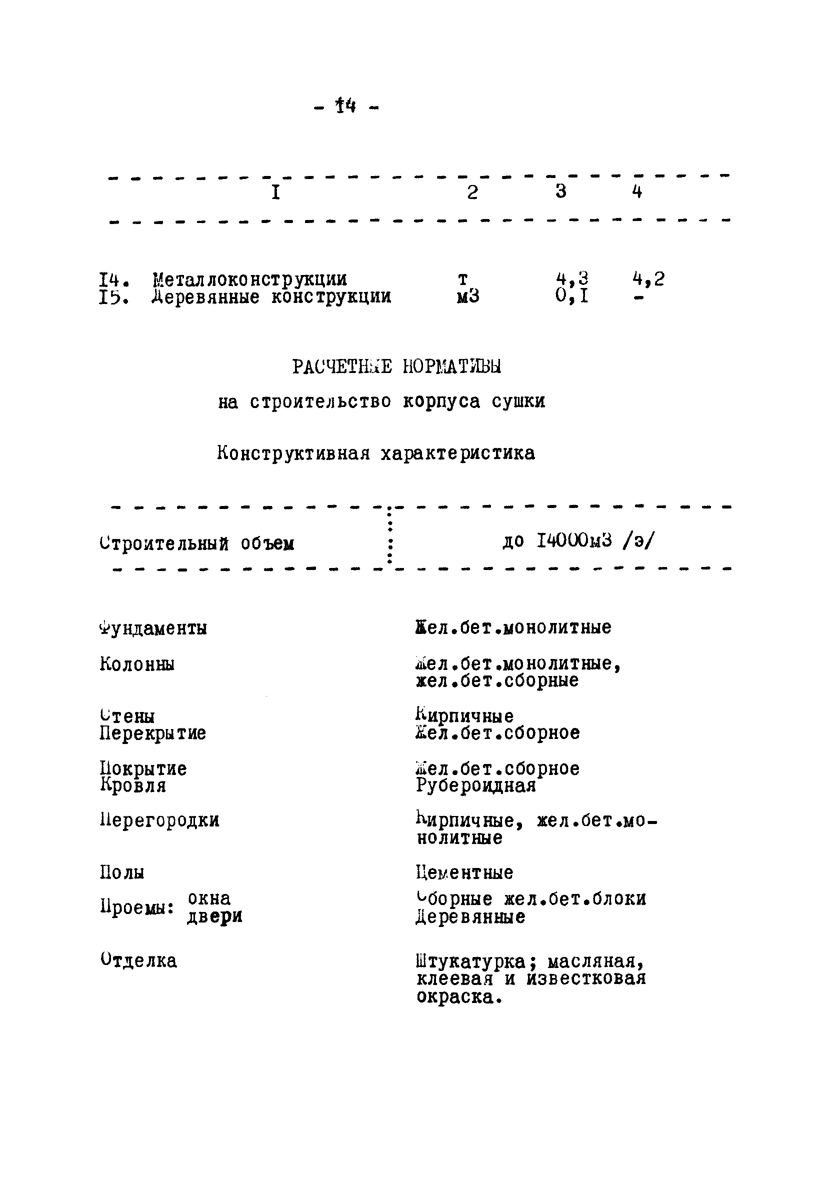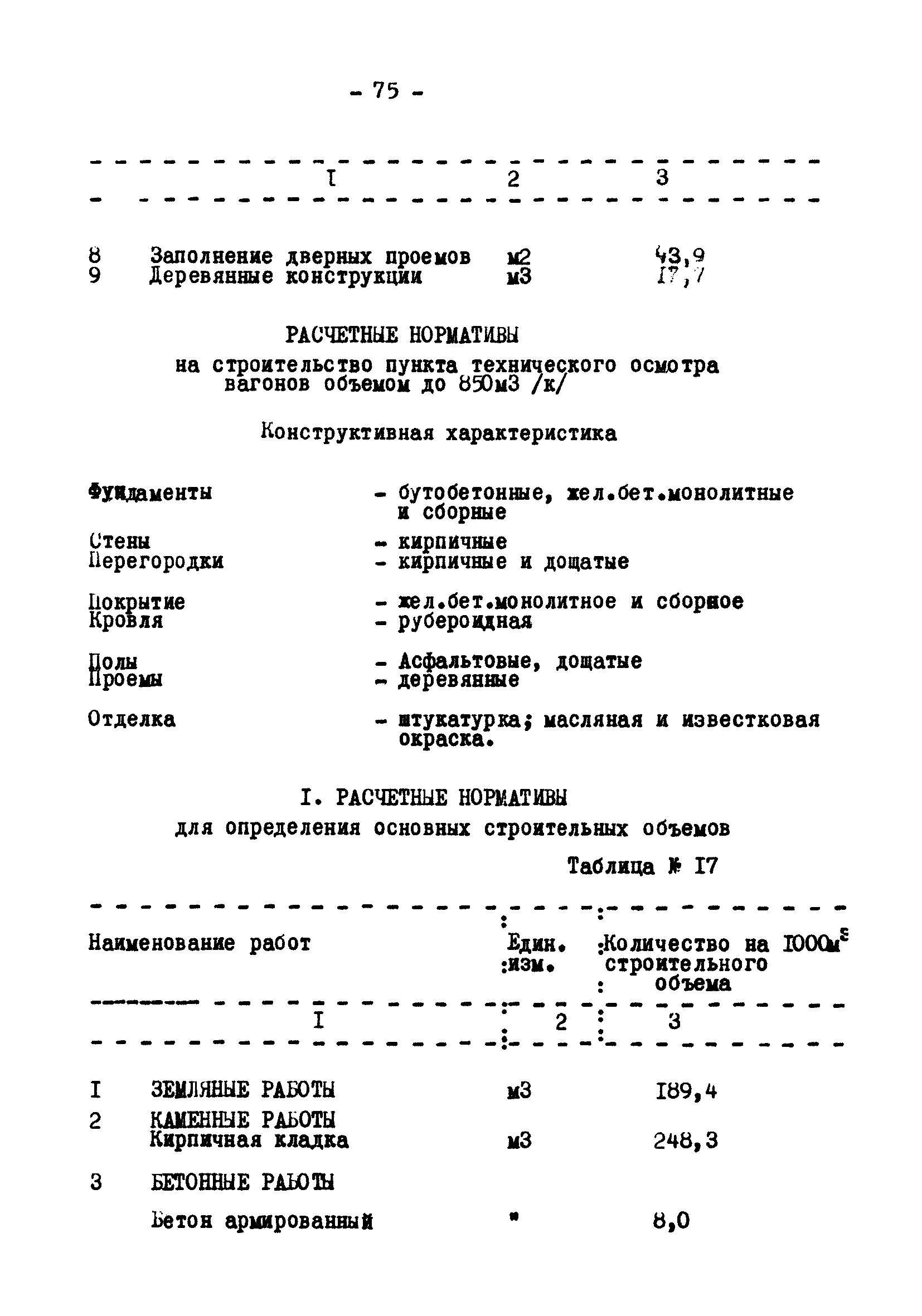 Расчетные нормативы для составления проектов организации строительства углеобогатительных фабрик| Статус: | справочные материалы, мп, тпр | | Название рус.: | Расчетные нормативы для составления проектов организации строительства углеобогатительных фабрик | | Дата добавления в базу: | 01.02.2020 | | Дата актуализации: | 01.01.2021 | | Область применения: | Нормативы предназначены для определения объемов основных работ и материально-технических ресурсов при составлении разделов "Организация строительства" проектного задания углеобогатительных фабрик | | Оглавление: | Раздел 1. Расчетные нормативы на строительство зданий и сооружений обогатительных фабрик 1 Главные корпусы ОФ объемом до 40000 м3, до 100000 м3 2 Корпус сушки объемом до 14000 м3 3 Здание радиальных сгустителей объемом до 35000 м3 4 Погрузочные пункты объемом до 3500 м3, 10500 м3 5 Перегрузочные пункты объемом до 950 м3, до 2500 м3 6 Шламовые бассейны объемом до 5600 м3 7 Контора с химлабораторией объемом до 2500 м3 8 Котельная объемом до 850 м3 9 Бункеры для золы объемом до 350 м3 10 Углеприемная яма объемом до 1600 м3, до 6500 м3 11 Материальный склад объемом до 3000 м3 12 Здание паровозо-ремонтного депо объемом до 8000 м3 13 Здание маневровой лебедки объемом до 650 м3 14 Оклад готовой продукции объемом до 750 м3 15 Склад реагентов и ГСМ объемом до 550 м3 16 Здание экспедиции объемом до 305 м3 17 Пункт технического осмотра вагонов объемом до 850 м3 18 Здание путевых рабочих объемом до 175 м3 19 Здание товарной конторы объемом до 300 м3 20 Насосная станция осветленных вод у шламонакопителя объемом до 170 м3 21 Шламопровод длиной до 70 м 22 Трубопровод осветленной воды длиной до 600 м 23 Металлическая эстакада весом металлоконструкций до 22 т 24 Металлическая галерея весом металлоконструкций до 65 т 25 Коридор и тоннель для подачи угля от здания перегрузки на погрузочные бункеры длиной до 40 м 26 Коридор и эстакада от перегрузки на склад длиной до 70 м 27 Кирпичный коридор и эстакада от главного корпуса на здание перегрузки длиной до 30 п.м. 28 Тоннель, коридор и эстакада подачи угля от склада на перегрузку длиной до 100 п.м. 29 Тоннель и коридор от ямы привозных углей объемом до 330 м3 30 Металлическая эстакада от главного корпуса к радиальным сгустителям весом металлоконструкций до 16,5 т 31 Металлическая эстакада от ямы привозных углей до дробильно-сортировочного отделения весом металлоконструкции до 56 т Раздел 2. Показатели для расчета потребного количества машино-смен основных машин и механизмов для производства общестроительных работ 32 Главные корпусы объемом до 40000 м3 33 То же, объемом до 100000 м3 34 Корпус сушки объемом до 14000 м3 35 Тоже, объемом до 23000 м3 36 Здание радиальных сгустителей объемом до 35000 м3 37 Здание погрузочных бункеров объемом до 3500 м3 38 Тоже, объемом до 10500 м3 39 Перегрузочные пункты объемом до 950 м3, 2500 м3 40 Шламовые бассейны до 5600 м3, до 24500 м3 41 Контора с химлабораторией объемом до 2500 м3 42 Углеприемная яма объемом до 1600 м3, до 6500 м3 43 Склад готовой продукции объемом жел. Бет. В деле до 750 м3 44 Склад реагентов и смазочных материалов объемом до 550 м3 Раздел 3. Показатели для расчета потребного количества автотранспорта для строительства зданий и сооружений ОФ 45 Показатели для определения потребного списочного парка автомашин при строительстве ОФ Раздел 4. Показатели для расчета потребного количества электроэнергии, пара и воды для строительства зданий и сооружений ОФ 46 Показате