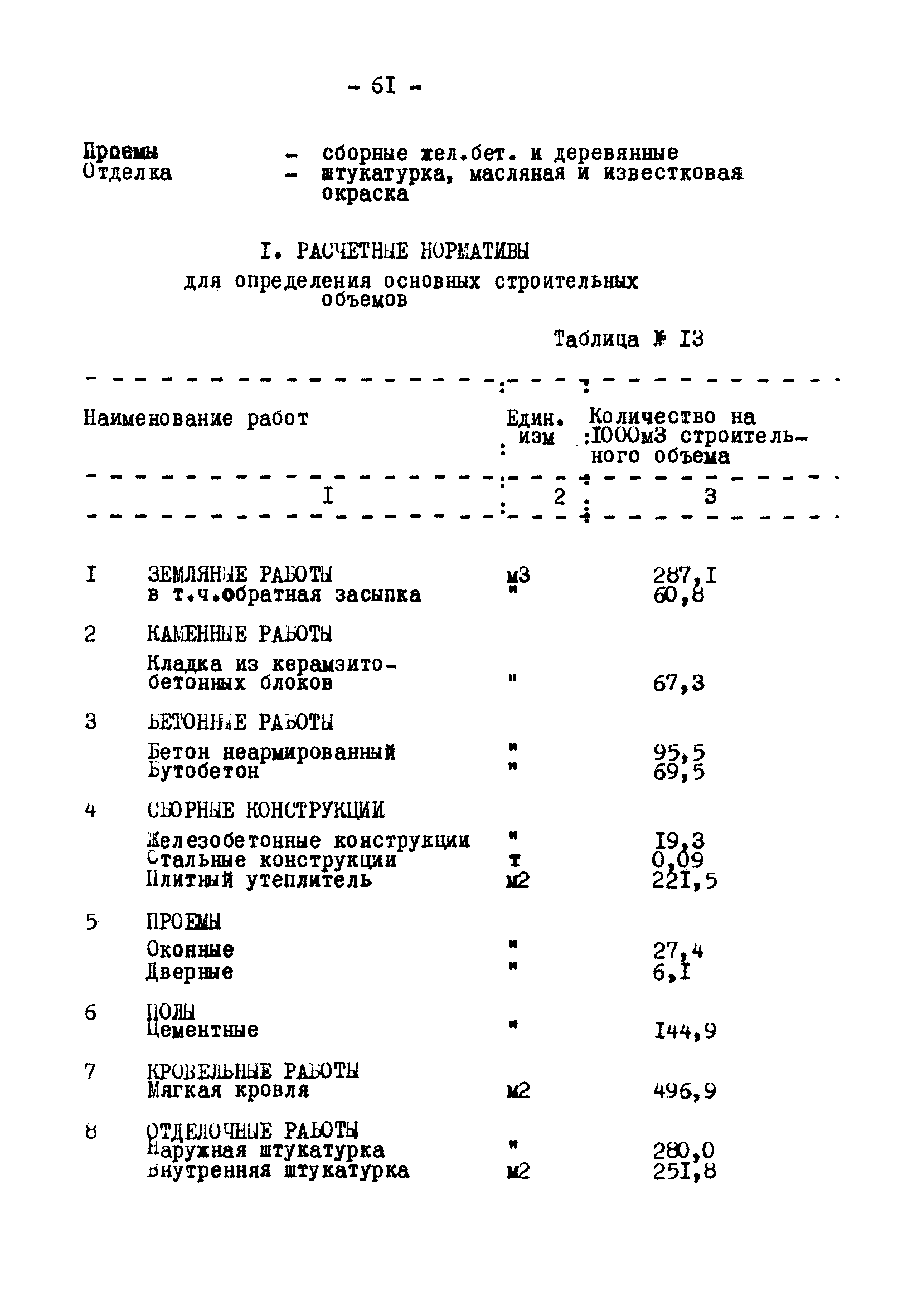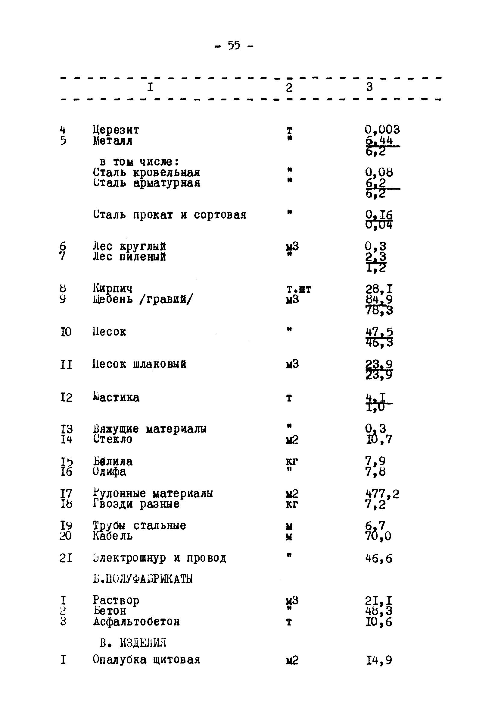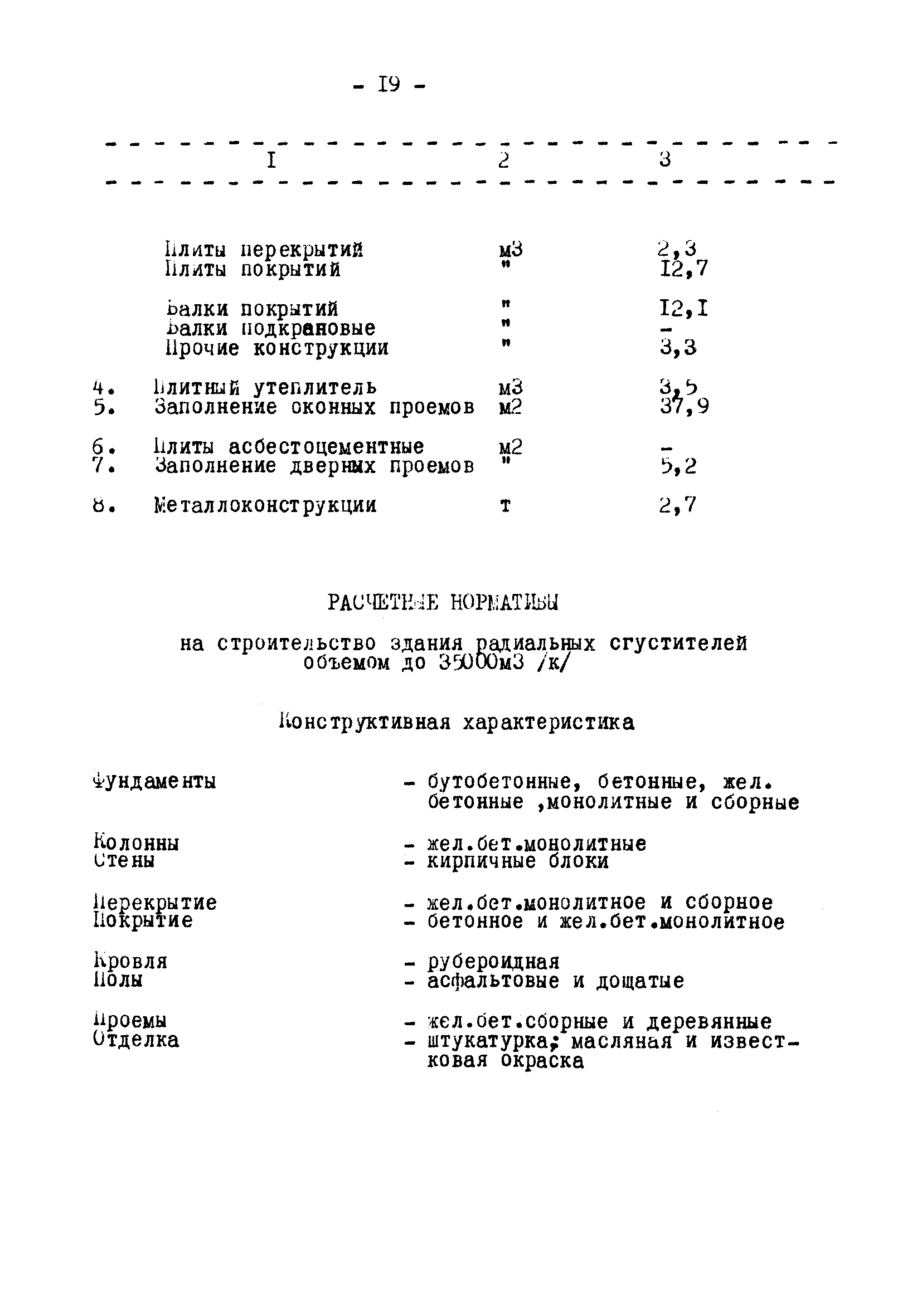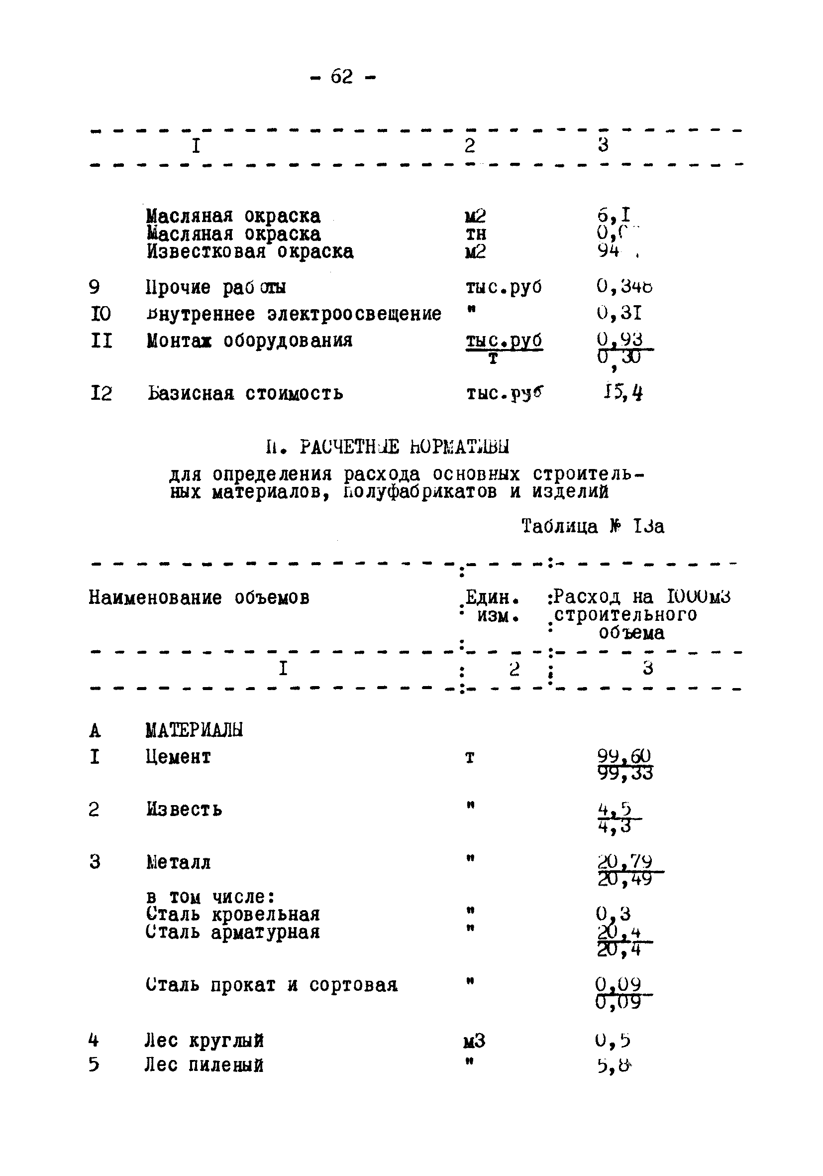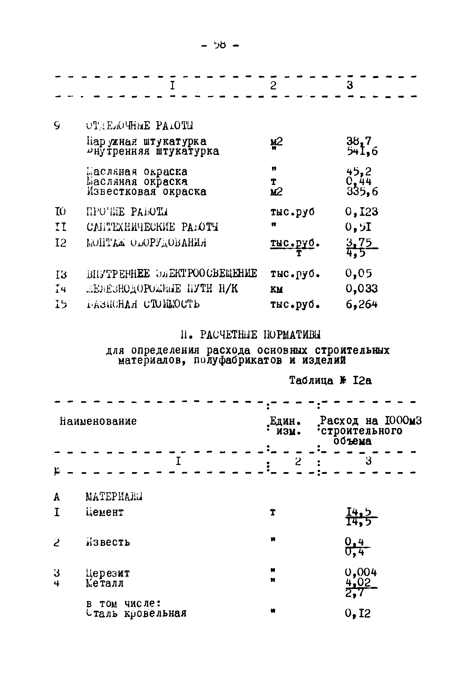 Расчетные нормативы для составления проектов организации строительства углеобогатительных фабрик| Статус: | справочные материалы, мп, тпр | | Название рус.: | Расчетные нормативы для составления проектов организации строительства углеобогатительных фабрик | | Дата добавления в базу: | 01.02.2020 | | Дата актуализации: | 01.01.2021 | | Область применения: | Нормативы предназначены для определения объемов основных работ и материально-технических ресурсов при составлении разделов "Организация строительства" проектного задания углеобогатительных фабрик | | Оглавление: | Раздел 1. Расчетные нормативы на строительство зданий и сооружений обогатительных фабрик 1 Главные корпусы ОФ объемом до 40000 м3, до 100000 м3 2 Корпус сушки объемом до 14000 м3 3 Здание радиальных сгустителей объемом до 35000 м3 4 Погрузочные пункты объемом до 3500 м3, 10500 м3 5 Перегрузочные пункты объемом до 950 м3, до 2500 м3 6 Шламовые бассейны объемом до 5600 м3 7 Контора с химлабораторией объемом до 2500 м3 8 Котельная объемом до 850 м3 9 Бункеры для золы объемом до 350 м3 10 Углеприемная яма объемом до 1600 м3, до 6500 м3 11 Материальный склад объемом до 3000 м3 12 Здание паровозо-ремонтного депо объемом до 8000 м3 13 Здание маневровой лебедки объемом до 650 м3 14 Оклад готовой продукции объемом до 750 м3 15 Склад реагентов и ГСМ объемом до 550 м3 16 Здание экспедиции объемом до 305 м3 17 Пункт технического осмотра вагонов объемом до 850 м3 18 Здание путевых рабочих объемом до 175 м3 19 Здание товарной конторы объемом до 300 м3 20 Насосная станция осветленных вод у шламонакопителя объемом до 170 м3 21 Шламопровод длиной до 70 м 22 Трубопровод осветленной воды длиной до 600 м 23 Металлическая эстакада весом металлоконструкций до 22 т 24 Металлическая галерея весом металлоконструкций до 65 т 25 Коридор и тоннель для подачи угля от здания перегрузки на погрузочные бункеры длиной до 40 м 26 Коридор и эстакада от перегрузки на склад длиной до 70 м 27 Кирпичный коридор и эстакада от главного корпуса на здание перегрузки длиной до 30 п.м. 28 Тоннель, коридор и эстакада подачи угля от склада на перегрузку длиной до 100 п.м. 29 Тоннель и коридор от ямы привозных углей объемом до 330 м3 30 Металлическая эстакада от главного корпуса к радиальным сгустителям весом металлоконструкций до 16,5 т 31 Металлическая эстакада от ямы привозных углей до дробильно-сортировочного отделения весом металлоконструкции до 56 т Раздел 2. Показатели для расчета потребного количества машино-смен основных машин и механизмов для производства общестроительных работ 32 Главные корпусы объемом до 40000 м3 33 То же, объемом до 100000 м3 34 Корпус сушки объемом до 14000 м3 35 Тоже, объемом до 23000 м3 36 Здание радиальных сгустителей объемом до 35000 м3 37 Здание погрузочных бункеров объемом до 3500 м3 38 Тоже, объемом до 10500 м3 39 Перегрузочные пункты объемом до 950 м3, 2500 м3 40 Шламовые бассейны до 5600 м3, до 24500 м3 41 Контора с химлабораторией объемом до 2500 м3 42 Углеприемная яма объемом до 1600 м3, до 6500 м3 43 Склад готовой продукции объемом жел. Бет. В деле до 750 м3 44 Склад реагентов и смазочных материалов объемом до 550 м3 Раздел 3. Показатели для расчета потребного количества автотранспорта для строительства зданий и сооружений ОФ 45 Показатели для определения потребного списочного парка автомашин при строительстве ОФ Раздел 4. Показатели для расчета потребного количества электроэнергии, пара и воды для строительства зданий и сооружений ОФ 46 Показате