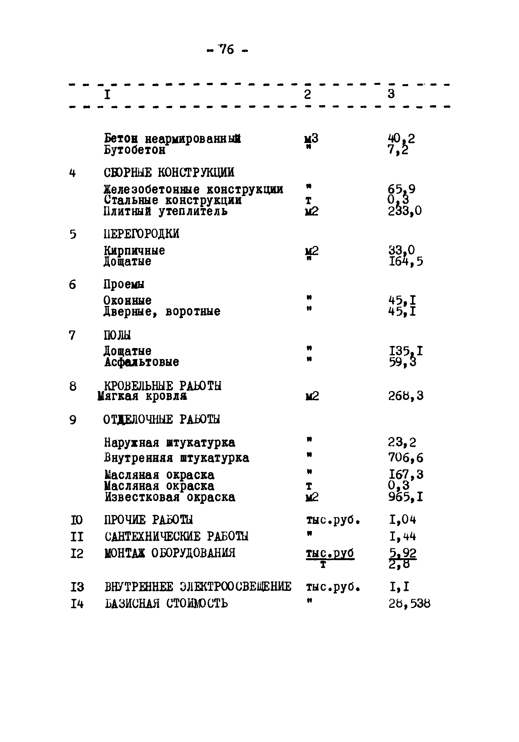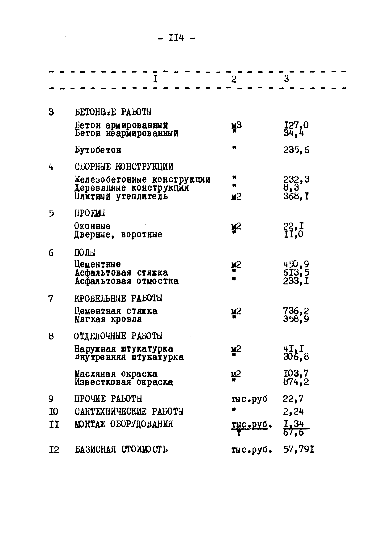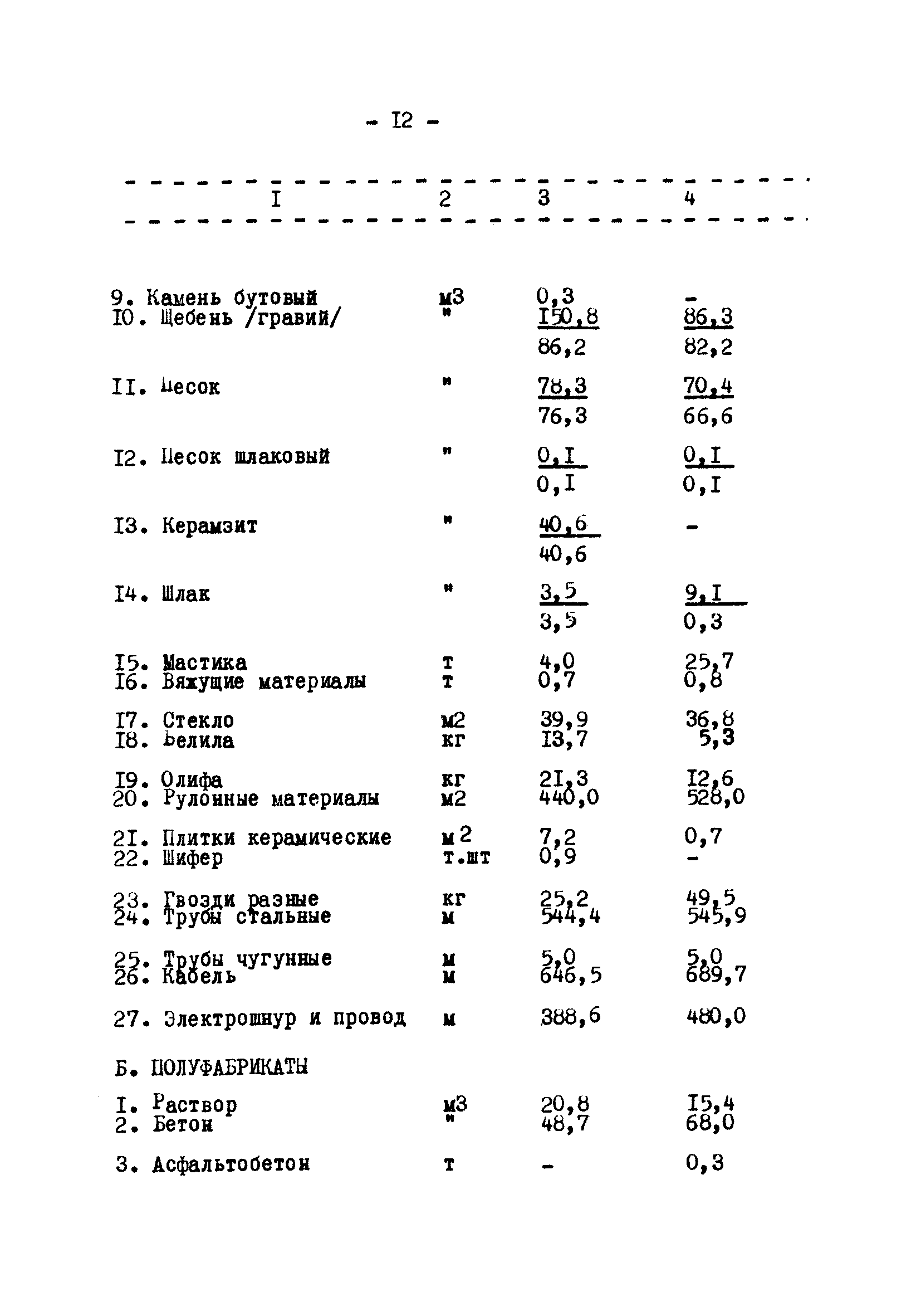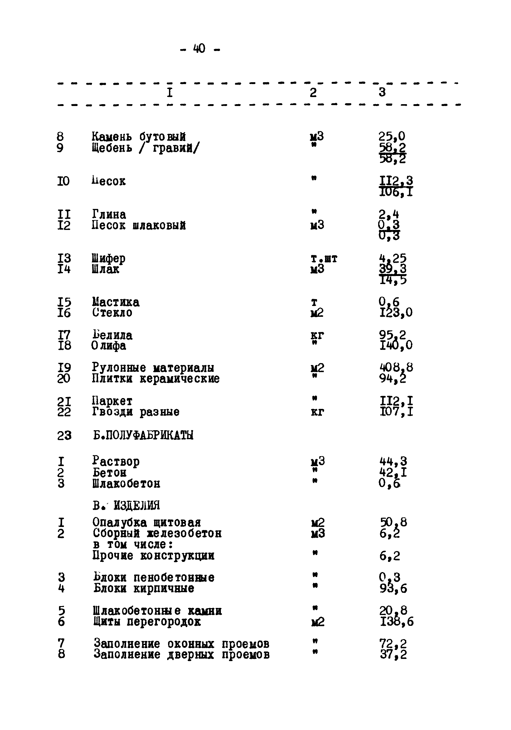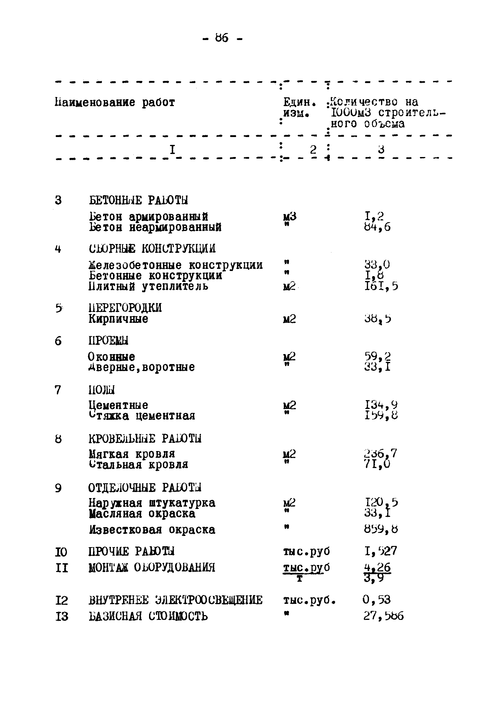 Расчетные нормативы для составления проектов организации строительства углеобогатительных фабрик| Статус: | справочные материалы, мп, тпр | | Название рус.: | Расчетные нормативы для составления проектов организации строительства углеобогатительных фабрик | | Дата добавления в базу: | 01.02.2020 | | Дата актуализации: | 01.01.2021 | | Область применения: | Нормативы предназначены для определения объемов основных работ и материально-технических ресурсов при составлении разделов "Организация строительства" проектного задания углеобогатительных фабрик | | Оглавление: | Раздел 1. Расчетные нормативы на строительство зданий и сооружений обогатительных фабрик 1 Главные корпусы ОФ объемом до 40000 м3, до 100000 м3 2 Корпус сушки объемом до 14000 м3 3 Здание радиальных сгустителей объемом до 35000 м3 4 Погрузочные пункты объемом до 3500 м3, 10500 м3 5 Перегрузочные пункты объемом до 950 м3, до 2500 м3 6 Шламовые бассейны объемом до 5600 м3 7 Контора с химлабораторией объемом до 2500 м3 8 Котельная объемом до 850 м3 9 Бункеры для золы объемом до 350 м3 10 Углеприемная яма объемом до 1600 м3, до 6500 м3 11 Материальный склад объемом до 3000 м3 12 Здание паровозо-ремонтного депо объемом до 8000 м3 13 Здание маневровой лебедки объемом до 650 м3 14 Оклад готовой продукции объемом до 750 м3 15 Склад реагентов и ГСМ объемом до 550 м3 16 Здание экспедиции объемом до 305 м3 17 Пункт технического осмотра вагонов объемом до 850 м3 18 Здание путевых рабочих объемом до 175 м3 19 Здание товарной конторы объемом до 300 м3 20 Насосная станция осветленных вод у шламонакопителя объемом до 170 м3 21 Шламопровод длиной до 70 м 22 Трубопровод осветленной воды длиной до 600 м 23 Металлическая эстакада весом металлоконструкций до 22 т 24 Металлическая галерея весом металлоконструкций до 65 т 25 Коридор и тоннель для подачи угля от здания перегрузки на погрузочные бункеры длиной до 40 м 26 Коридор и эстакада от перегрузки на склад длиной до 70 м 27 Кирпичный коридор и эстакада от главного корпуса на здание перегрузки длиной до 30 п.м. 28 Тоннель, коридор и эстакада подачи угля от склада на перегрузку длиной до 100 п.м. 29 Тоннель и коридор от ямы привозных углей объемом до 330 м3 30 Металлическая эстакада от главного корпуса к радиальным сгустителям весом металлоконструкций до 16,5 т 31 Металлическая эстакада от ямы привозных углей до дробильно-сортировочного отделения весом металлоконструкции до 56 т Раздел 2. Показатели для расчета потребного количества машино-смен основных машин и механизмов для производства общестроительных работ 32 Главные корпусы объемом до 40000 м3 33 То же, объемом до 100000 м3 34 Корпус сушки объемом до 14000 м3 35 Тоже, объемом до 23000 м3 36 Здание радиальных сгустителей объемом до 35000 м3 37 Здание погрузочных бункеров объемом до 3500 м3 38 Тоже, объемом до 10500 м3 39 Перегрузочные пункты объемом до 950 м3, 2500 м3 40 Шламовые бассейны до 5600 м3, до 24500 м3 41 Контора с химлабораторией объемом до 2500 м3 42 Углеприемная яма объемом до 1600 м3, до 6500 м3 43 Склад готовой продукции объемом жел. Бет. В деле до 750 м3 44 Склад реагентов и смазочных материалов объемом до 550 м3 Раздел 3. Показатели для расчета потребного количества автотранспорта для строительства зданий и сооружений ОФ 45 Показатели для определения потребного списочного парка автомашин при строительстве ОФ Раздел 4. Показатели для расчета потребного количества электроэнергии, пара и воды для строительства зданий и сооружений ОФ 46 Показате
