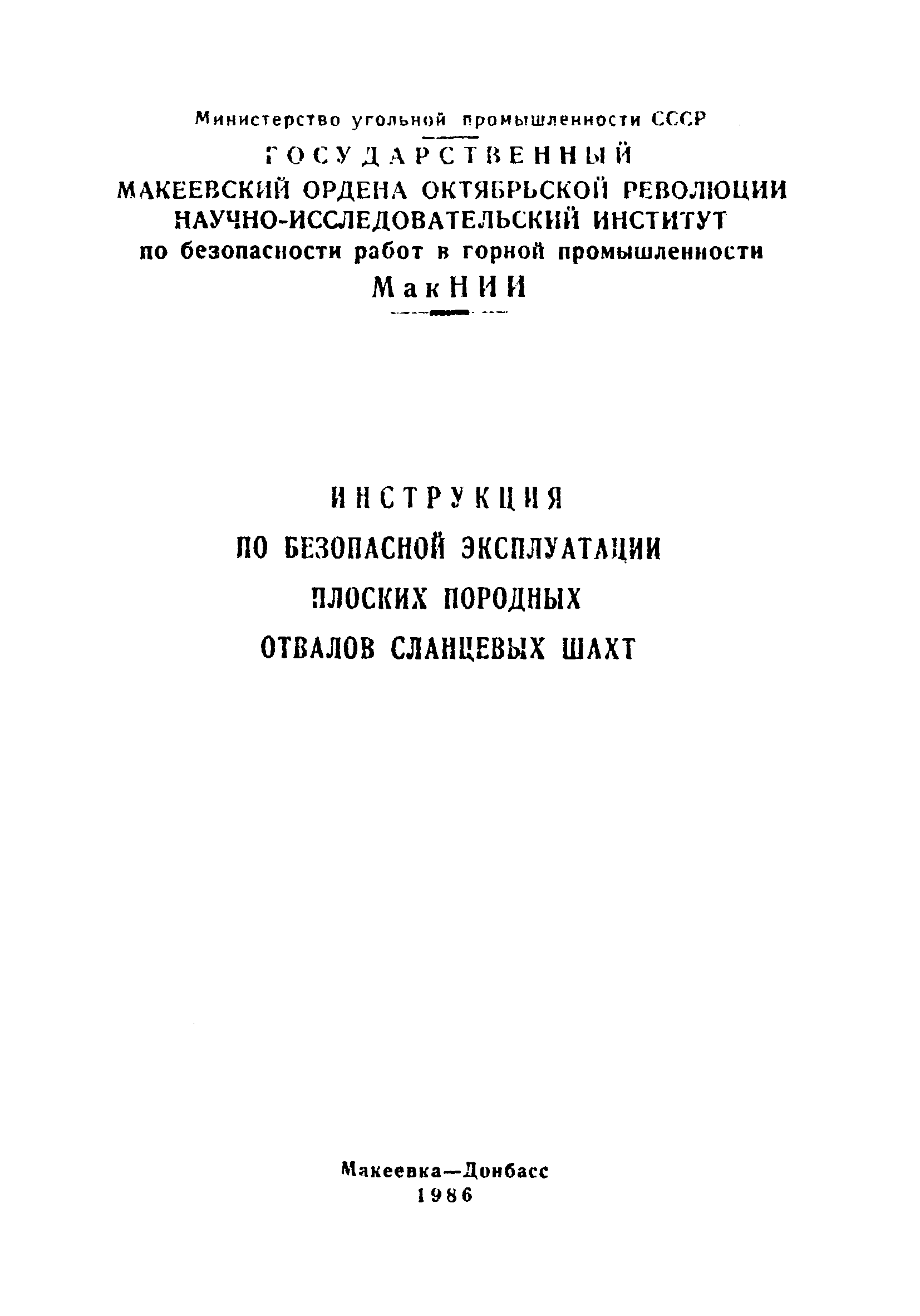 | Название рус.: | Инструкция по безопасной эксплуатации плоских породных отвалов сланцевых шахт |