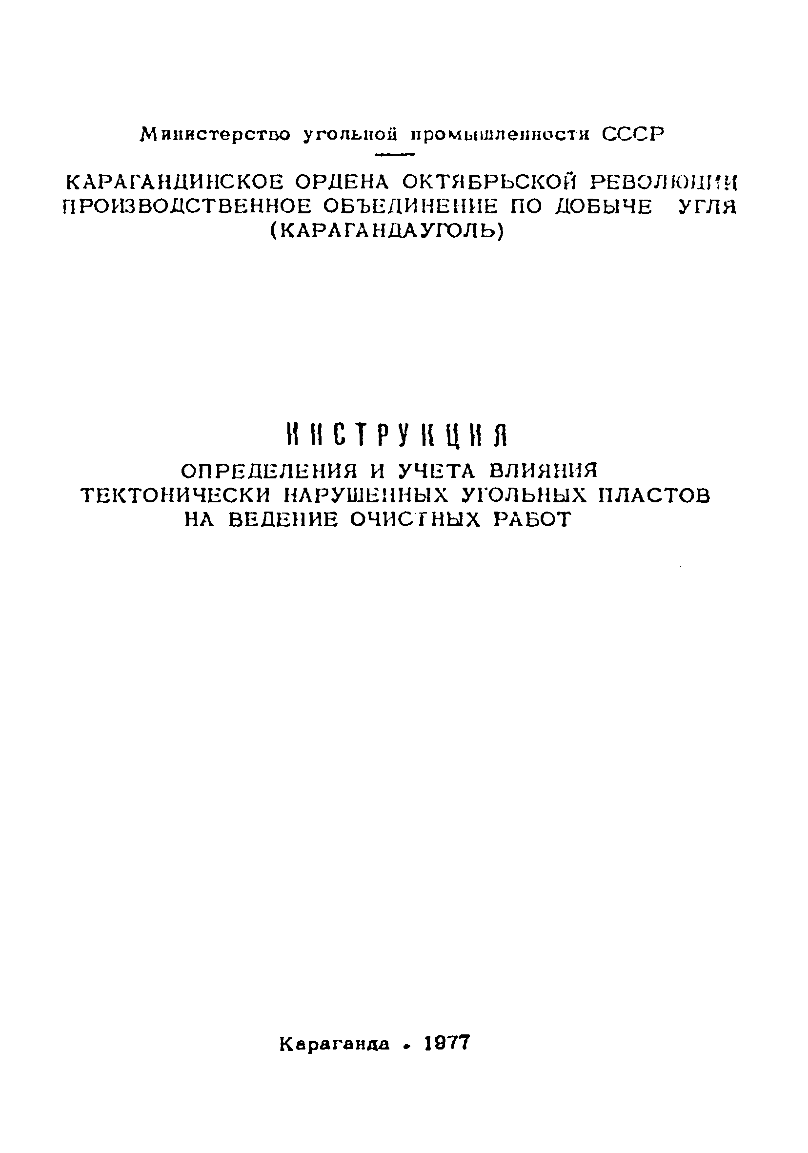 | Название рус.: | Инструкция определения и учета влияния тектонически нарушенных угольных пластов на ведение очистных работ |