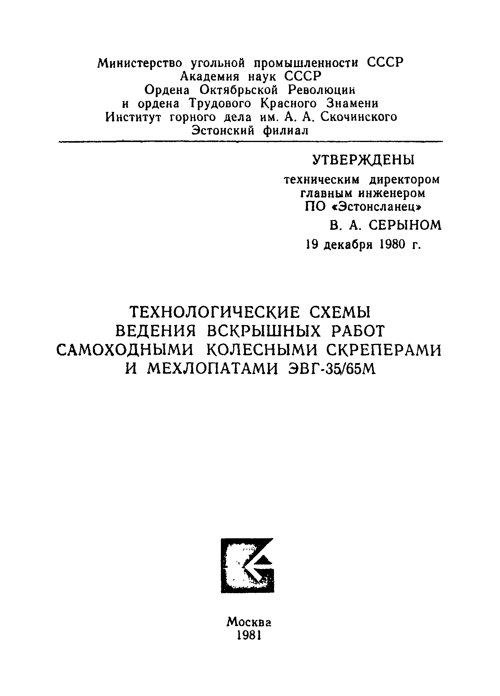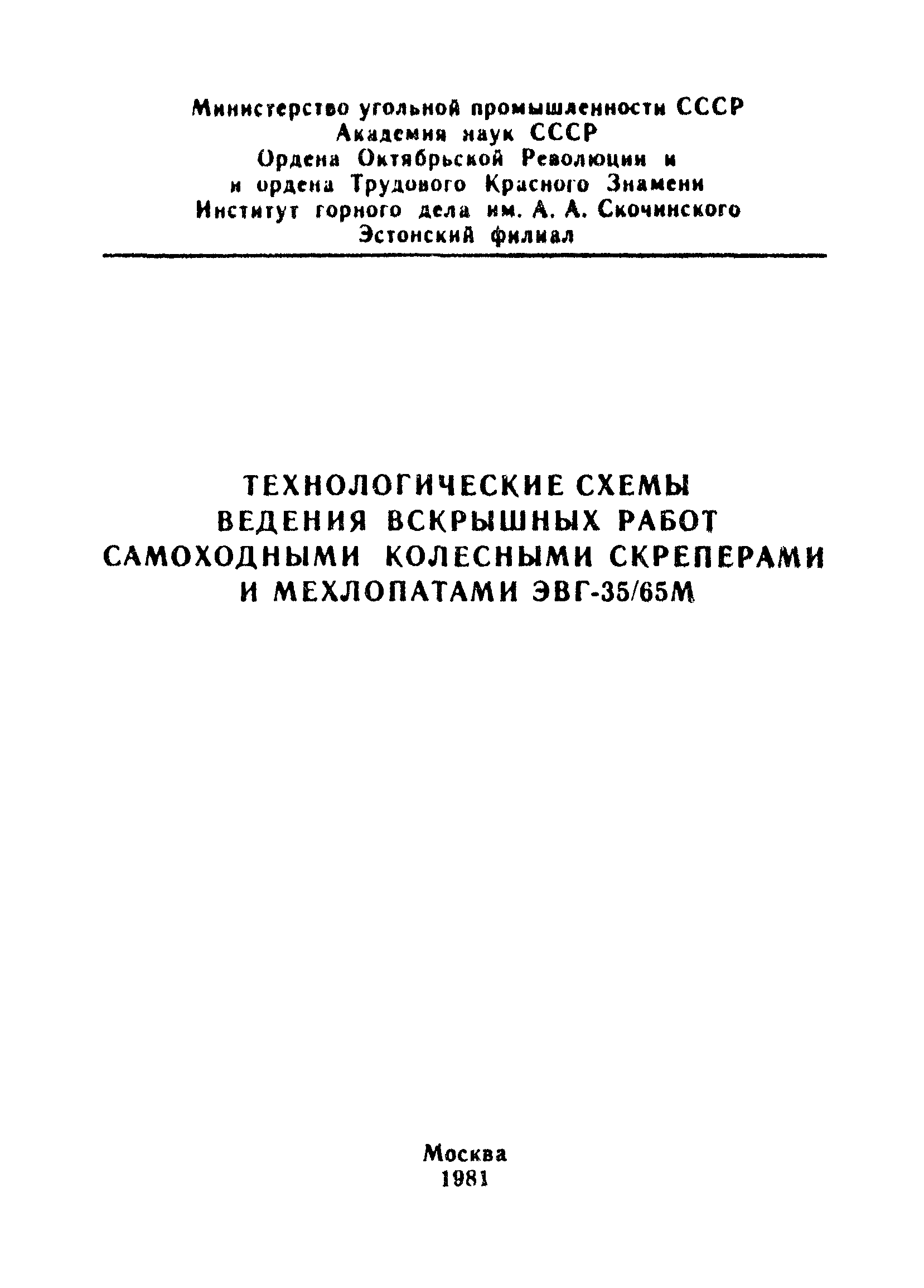 | Название рус.: | Технологические схемы ведения вскрышных работ самоходными колесными скреперами и мехлопатами ЭВГ-35/65М |