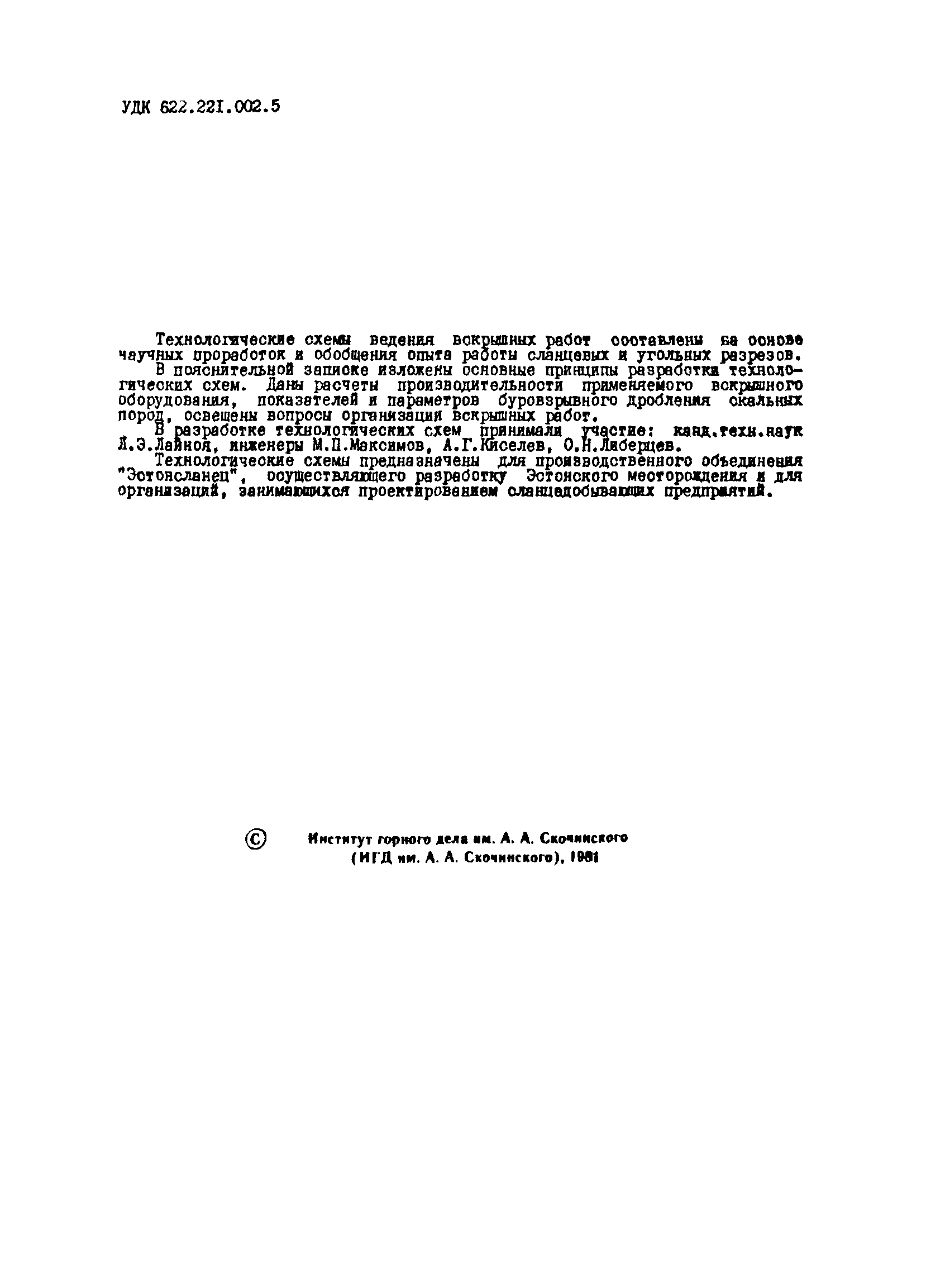 | Разработан: | Эстонский филиал ИГД им. А.А. Скочинского
