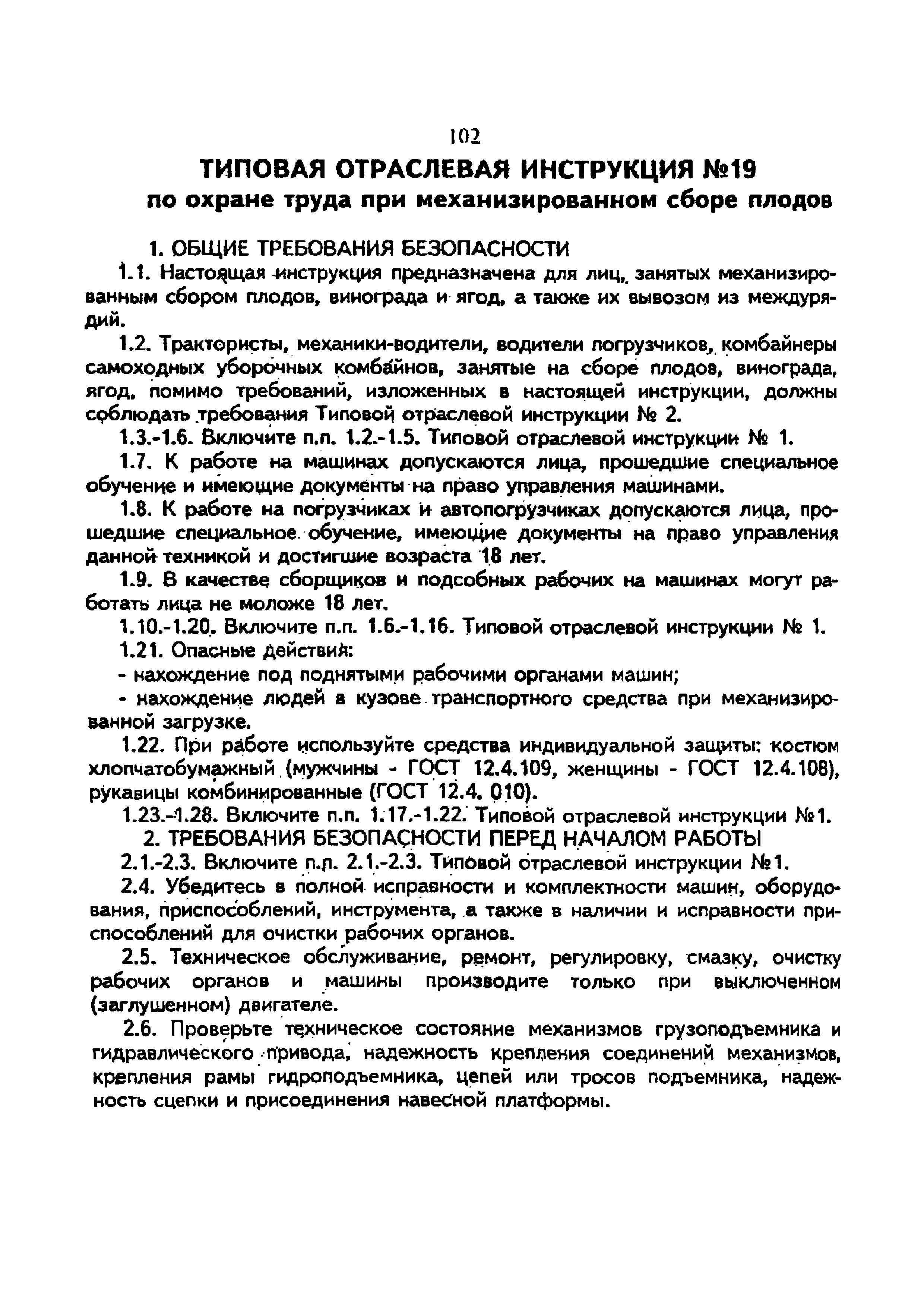 | Название рус.: | Типовая отраслевая инструкция № 19 по охране труда при механизированном сборе плодов |