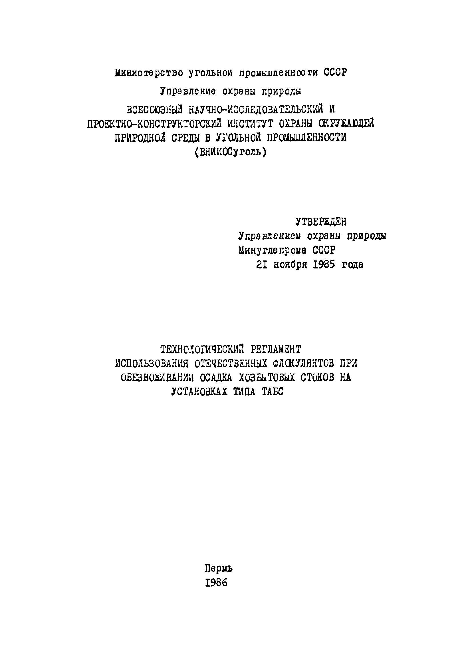 | Утверждён: | 21.11.1985 Минуглепром СССР (USSR Minugleprom )