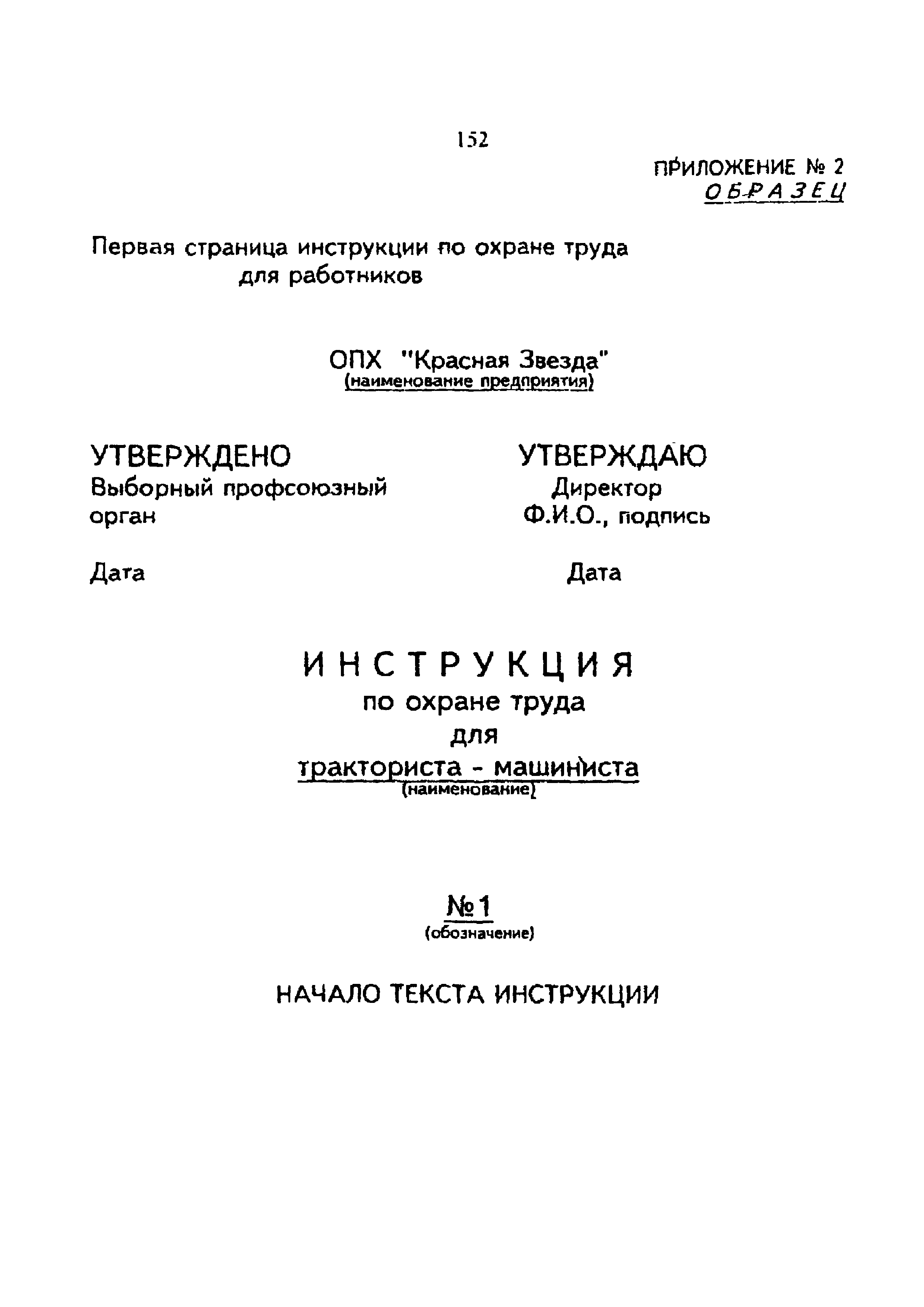 | Оглавление: | Введение 1. Общие требования безопасности 2. Требования безопасности перед началом работы 3. Требования безопасности во время работы 4. Требования безопасности в аварийных ситуациях 5. Требования безопасности по окончании работы Приложение 1. Обложка инструкции по охране труда для работников Приложение 2. Первая страница инструкции по охране труда для работников Приложение 3. Последняя страница инструкции по охране труда для работников Приложение 4 (рекомендуемое). Форма журнала учета выдачи инструкций по охране труда для работников подразделениям (службам) предприятия |