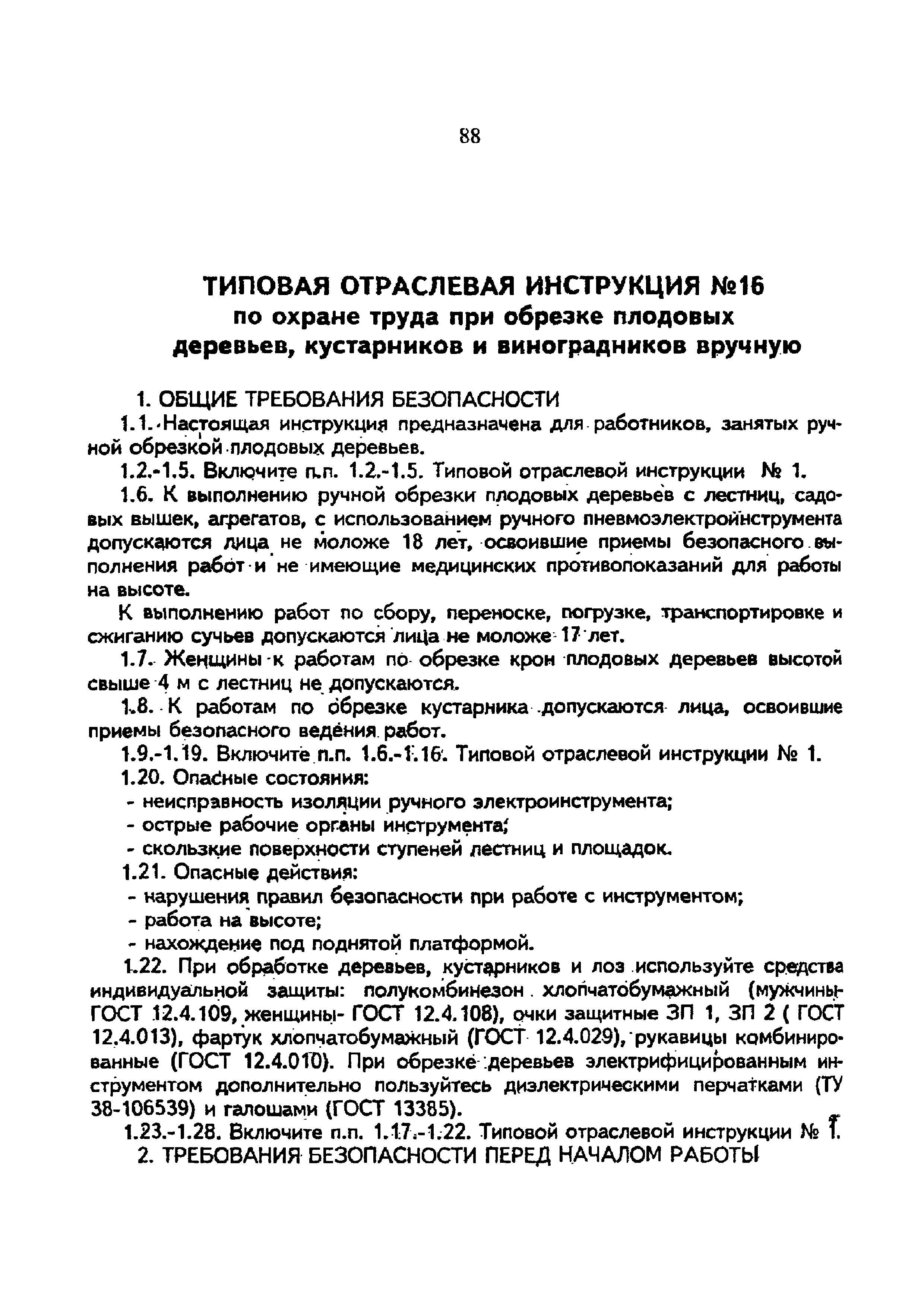 | Название рус.: | Типовая отраслевая инструкция № 16 по охране труда при обрезке плодовых деревьев, кустарников и виноградников вручную |