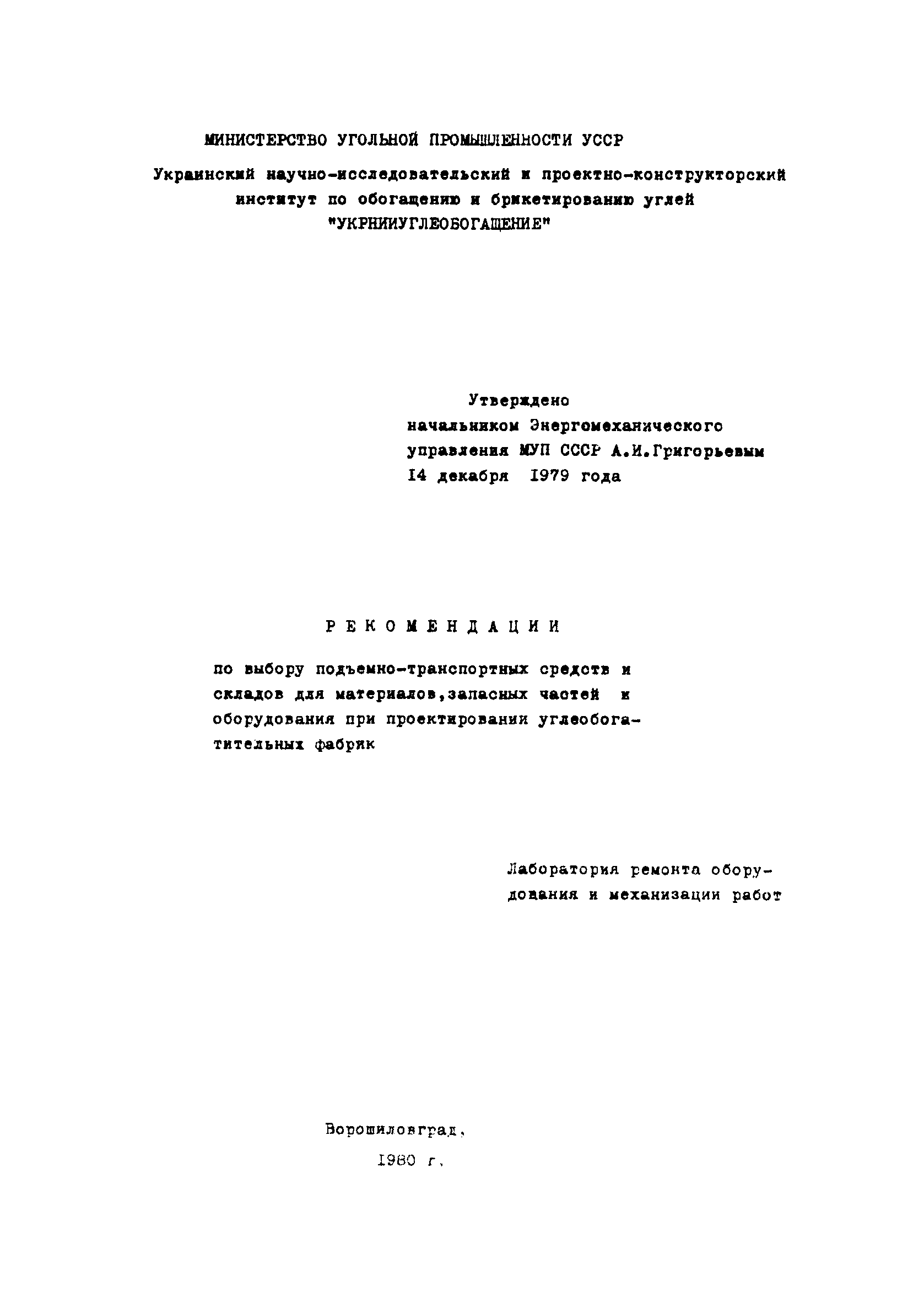 | | Утверждён: | 14.12.1979 Министерство угольной промышленности СССР (USSR Ministry of the Coal Industry )