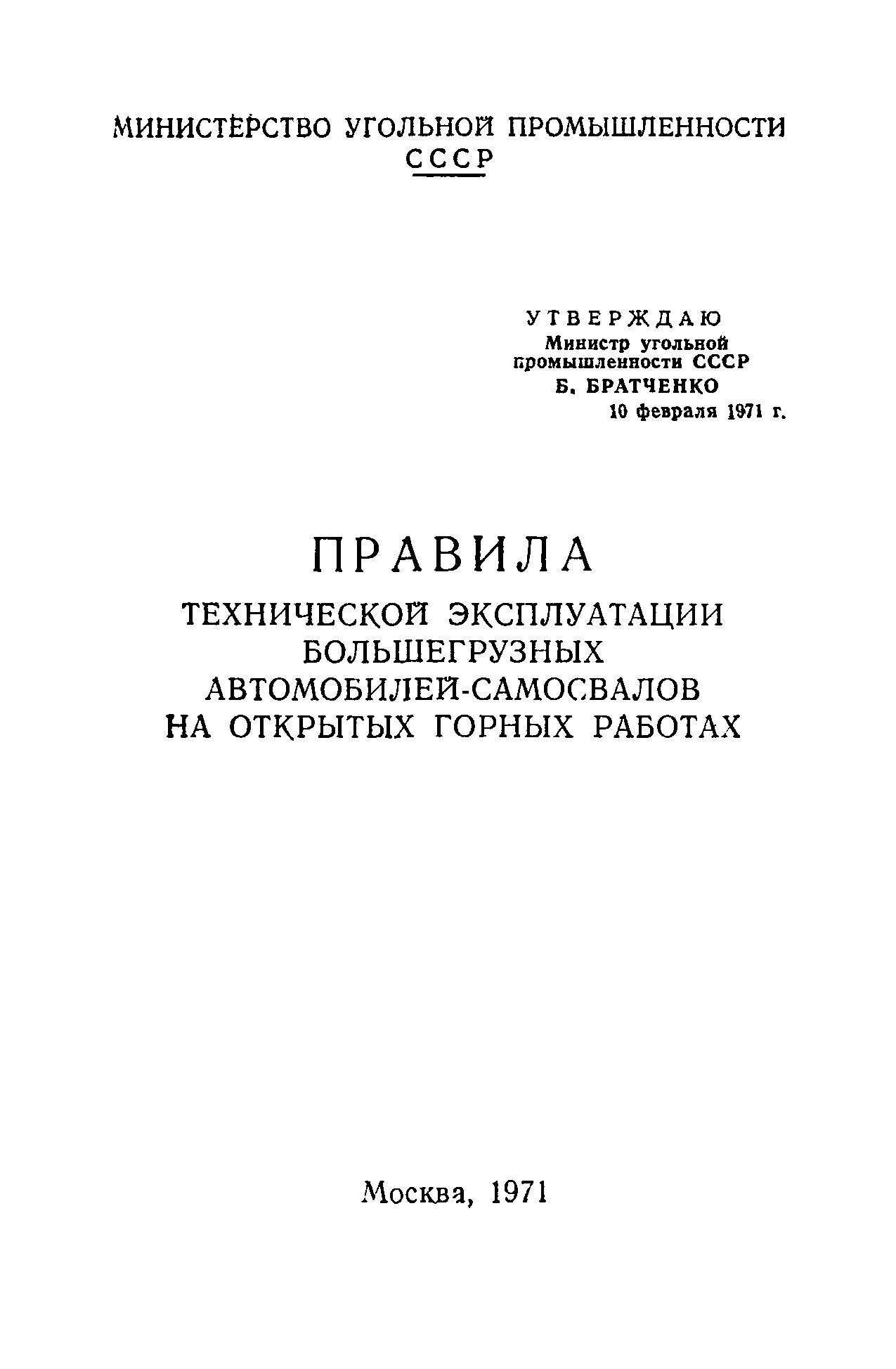 | | Утверждён: | 10.02.1971 Министерство угольной промышленности СССР (USSR Ministry of the Coal Industry )