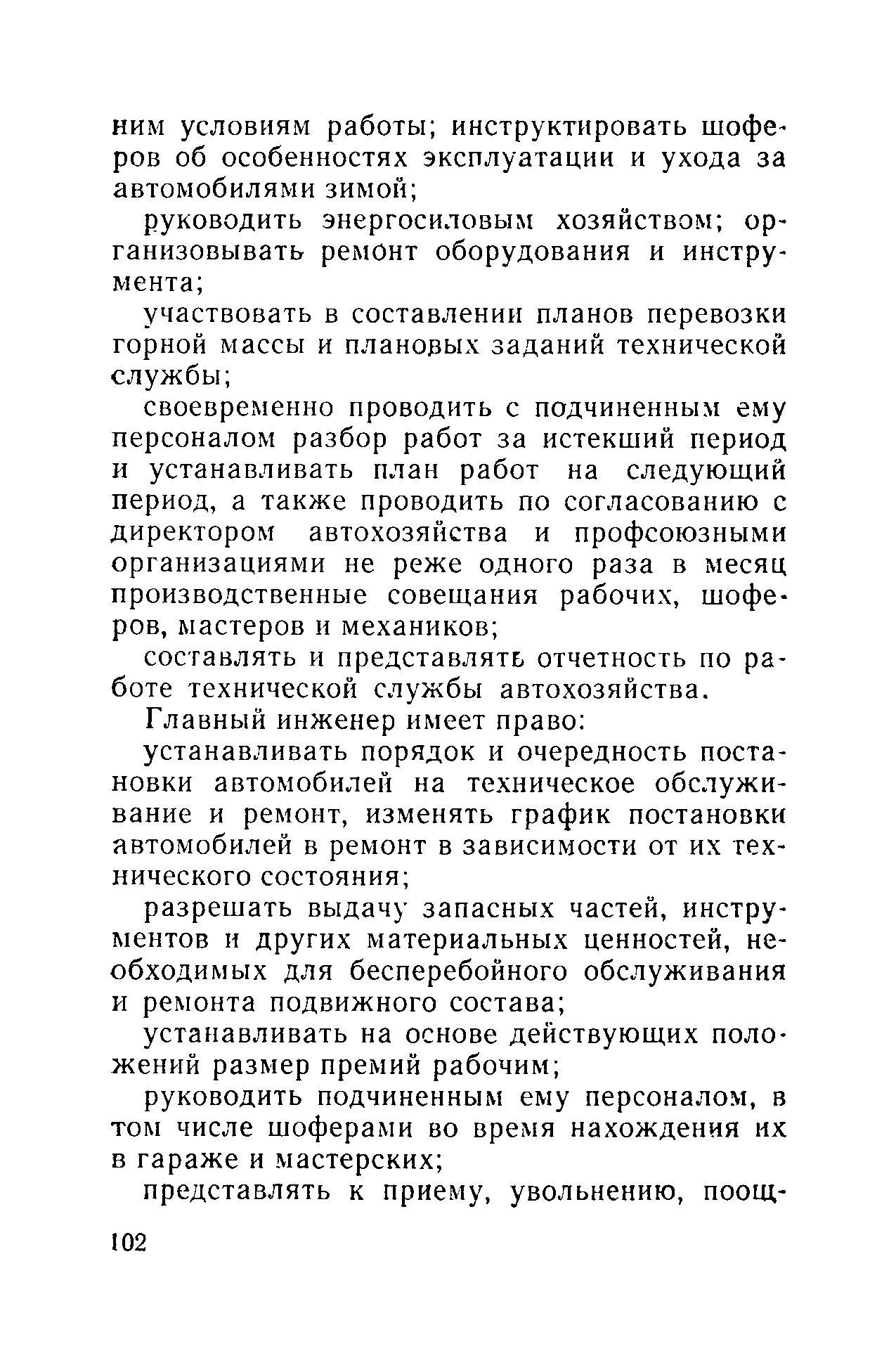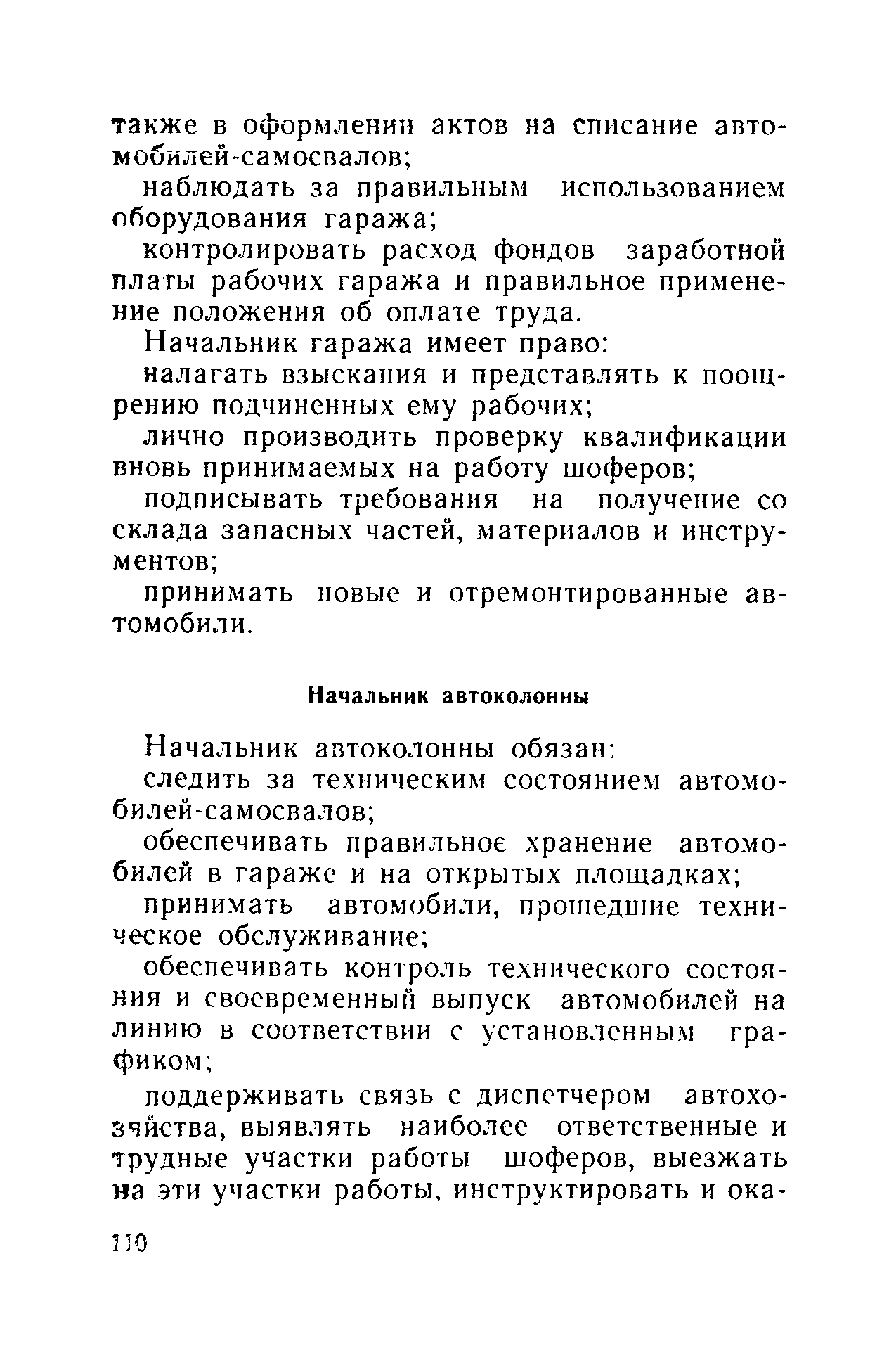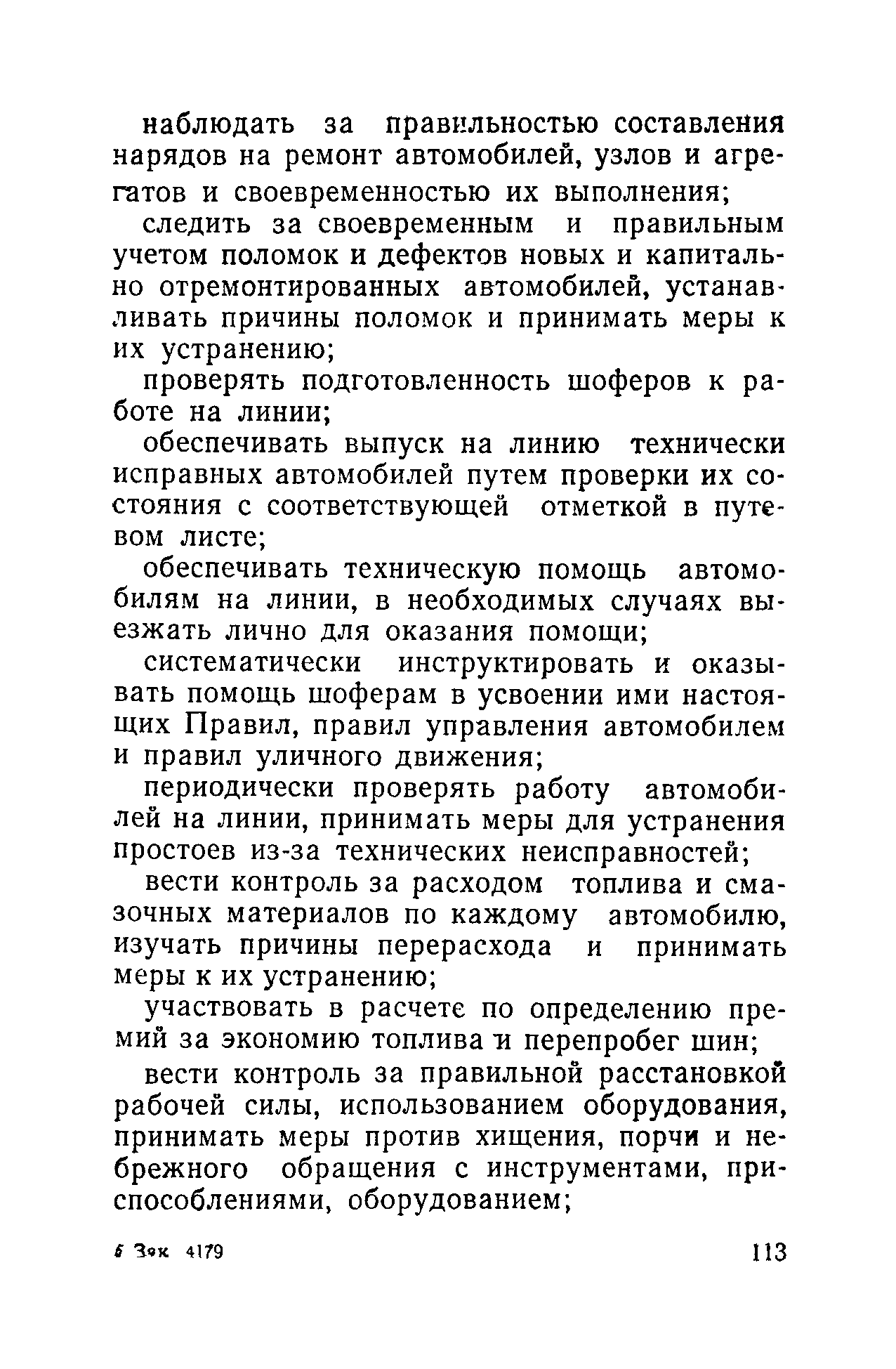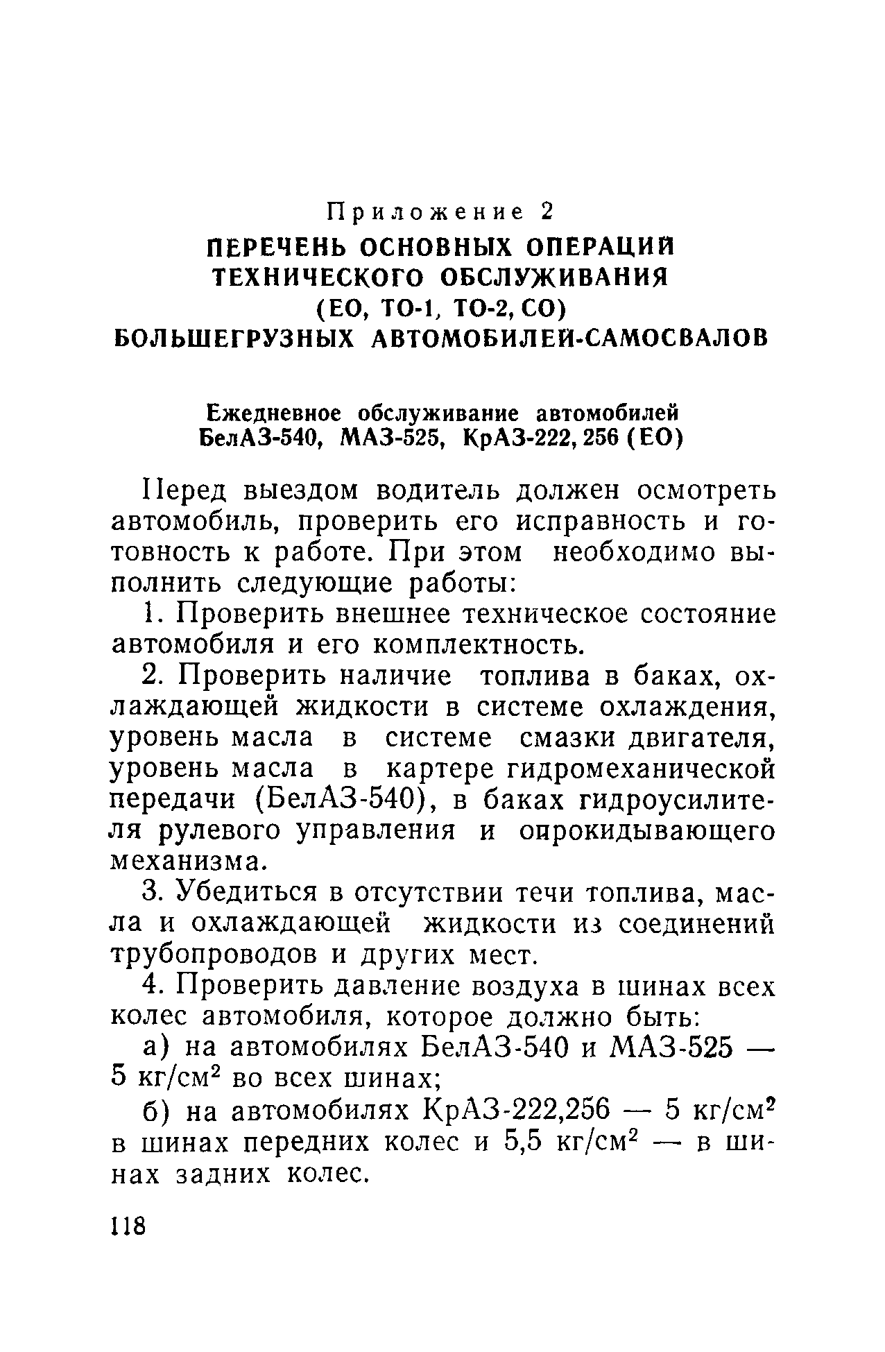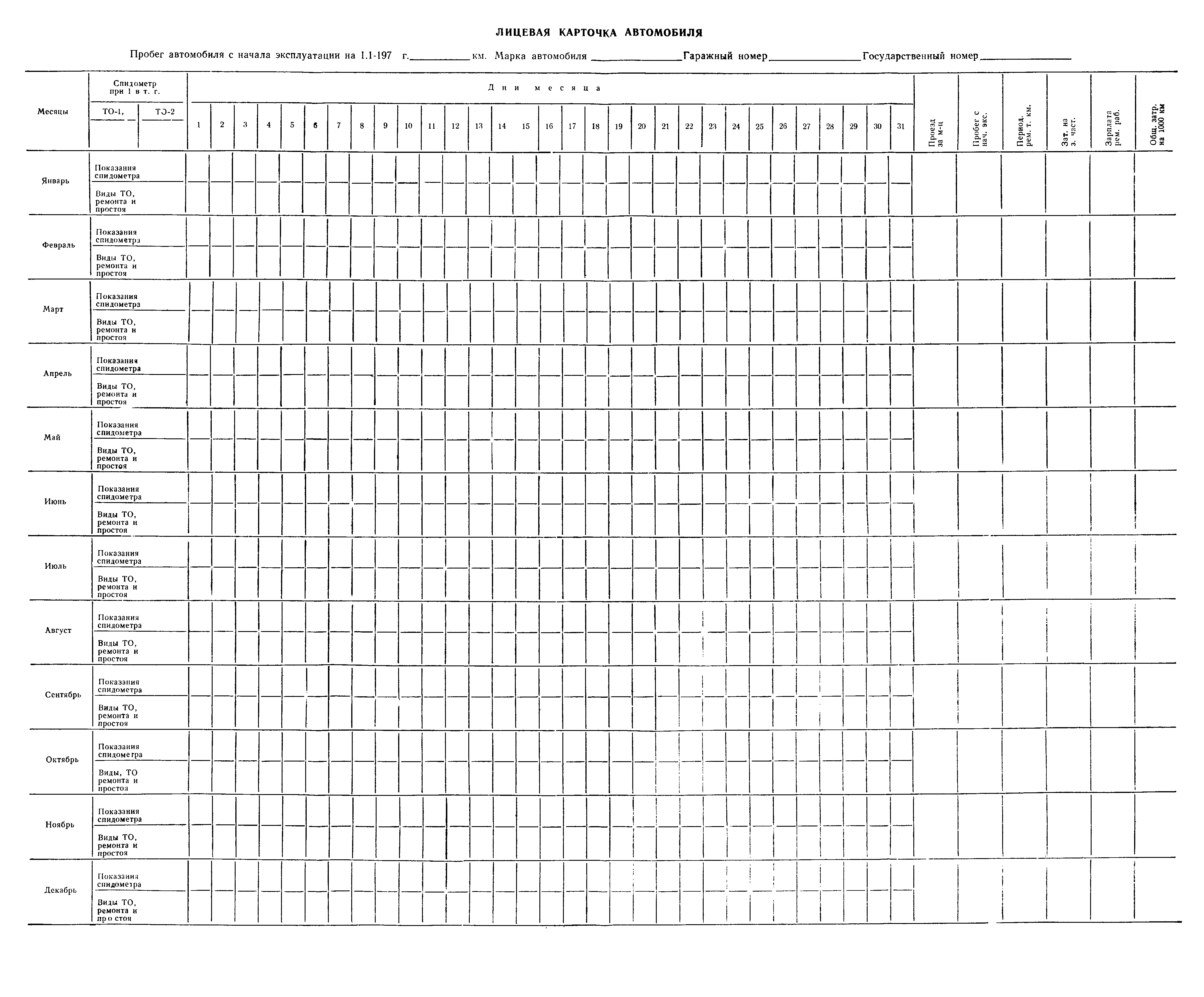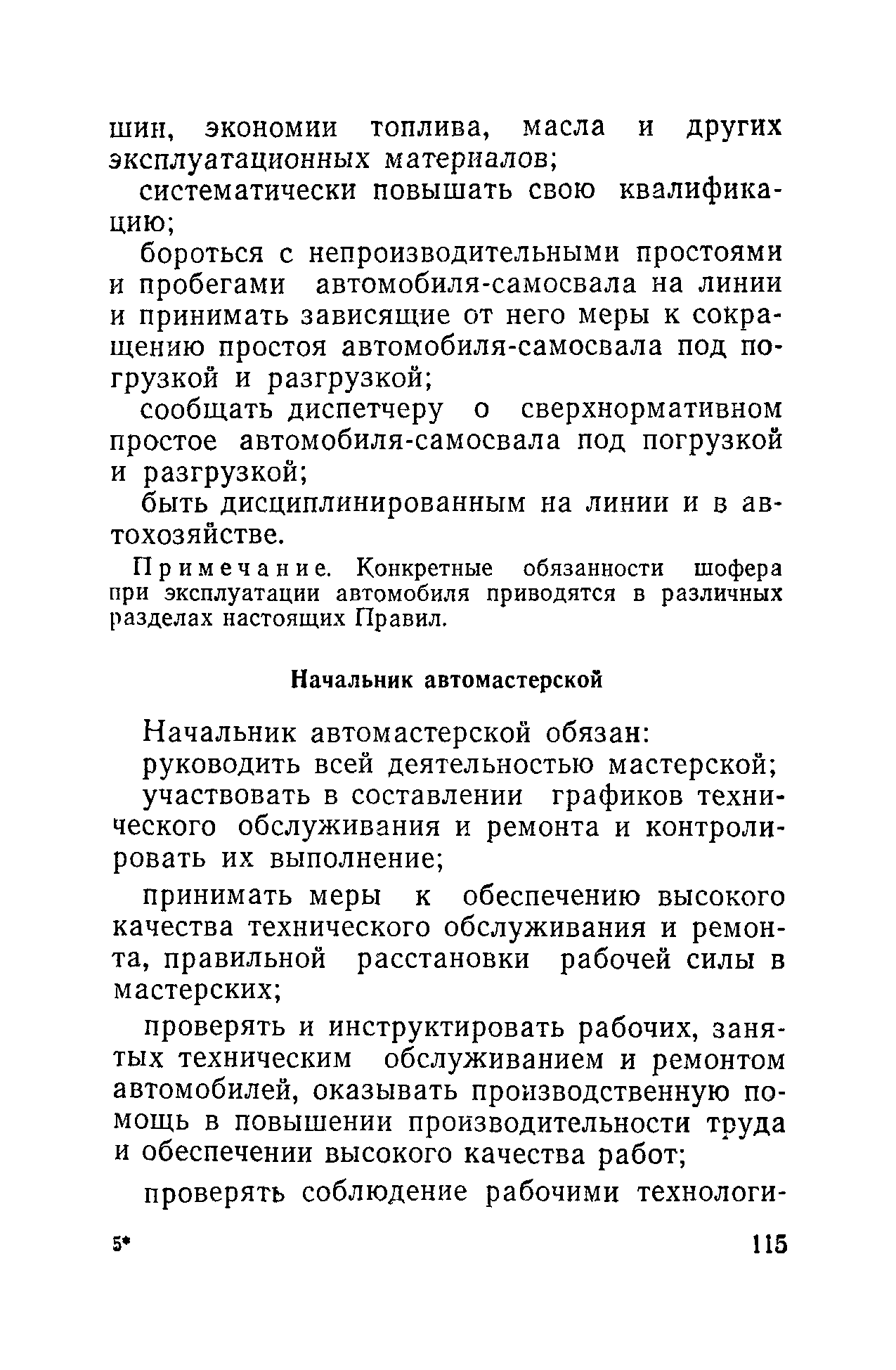 д) основные обязанности работников автомобильного транспорта. | | Оглавление: | Общие положения Раздел I Автомобильная служба на открытых горных работах и специфика подготовки шоферов к эксплуатации большегрузных автомобилей Глава 1. Общая структура автомобильной службы па открытых горных работах Глава 2. Техническая подготовка шоферов к эксплуатации большегрузных автомобилей-самосвалов Раздел II Подвижной состав технологического автомобильного транспорта Глава 1. Общие требования к подвижному составу Глава 2. Приемка автомобилей-самосвалов Глава 3. Регистрация и учет автомобилей-самосвалов Глава 4. Требования к техническому состоянию автомобилей-самосвалов, находящихся в эксплуатации Раздел III Профилактика и ремонт подвижного состава автомобильного транспорта Глава 1. Общие положения Глава 2. Профилактика подвижного состава Глава 3. Ремонт подвижного состава Глава 4. Порядок сдачи в капитальный ремонт и приема из ремонта автомобилей и агрегатов Глава 5. Организация профилактики и ремонта в автотранспортных предприятиях Глава 6. Устранение неисправностей подвижного состава на линии . Раздел IV Эксплуатационные материалы, аккумуляторные батареи и шины Глава 1. Топливо и смазочные материалы Глава 2. Охлаждающие жидкости Глава 3. Аккумуляторные батареи Глава 4. Автомобильные шины Раздел V Особенности подготовки и эксплуатации автомобилей-самосвалов в зимних условиях Раздел VI Здания, сооружения и технические средства автотранспортного предприятия Глава 1. Общие положения Глава 2. Сооружения для хранения автомобилей-самосвалов Глава 3. Сооружения для технического обслуживания и ремонта автомобилей-самосвалов Глава 4. Складские помещения Глава 5. Сооружения для обслуживания личного состава Раздел VII Автомобильные дороги разрезов Глава 1. Общие положения Глава 2. Устройство и обслуживание автомобильных дорог на разрезах Глава 3. Погрузочно-разгрузочные пункты Раздел VIII Работа подвижного состава на линии Глава 1. Общие положения Глава 2. Управление автомобилем Глава 3. диспетчерское руководство работой автомобилей-самосвалов на линии Раздел IХ Общие обязанности работников автотранспортного предприятия, обслуживающего разрезы Глава 1. Проверка знаний работников автотранспортного предприятия Глава 2. Общие обязанности работников автотранспортного предприятии Приложение 1. Типовые обязанности и права инженерно-технических работников технической службы, службы эксплуатации автохозяйства и шоферов большегрузных автомобилей-самосвалов Приложение 2. Перечень основных операций технического обслуживания (ЕО, ТО-1, ТО-2, СО) большегрузных автомобилей-самосвалов . . Приложение 3. Примерный перечень основных агрегатов, механизмов, соединений и деталей, техническое состояние которых отражается на безопасности движения Приложение 4. Примерный перечень узлов, приборов и механизмов автомобилей, рекомендуемых для включения в оборотный фонд при агрегатно-узловом методе ремонта Приложение 5. Номенклатура агрегатов и узлов, подлежащих ремонту на авторемонтных предприятиях в качестве товарной продукции Приложение 6. Ремонтный листок Приложение 7. Лицевая карточка автомобиля | | Разработан: | НИИОГР
