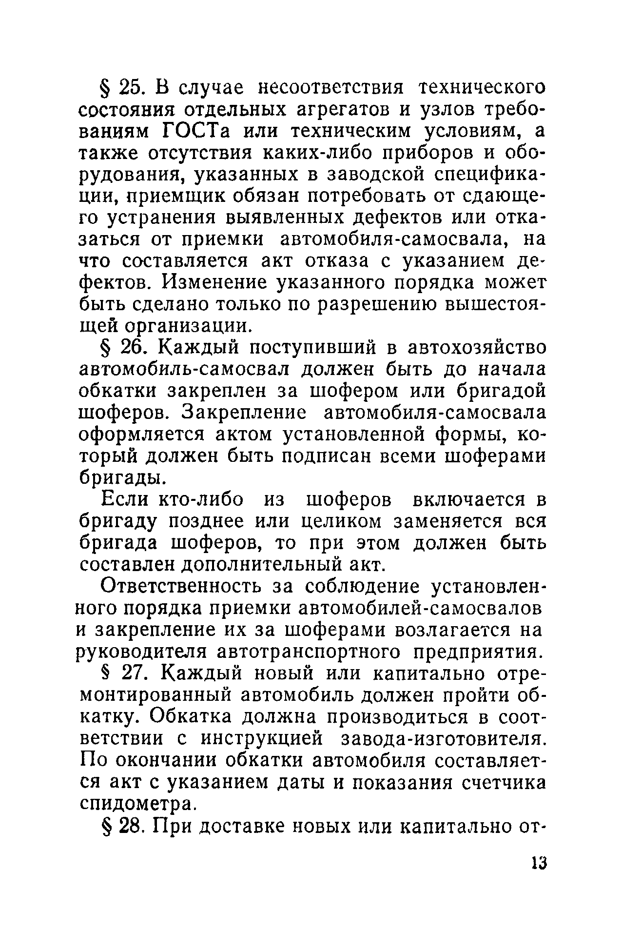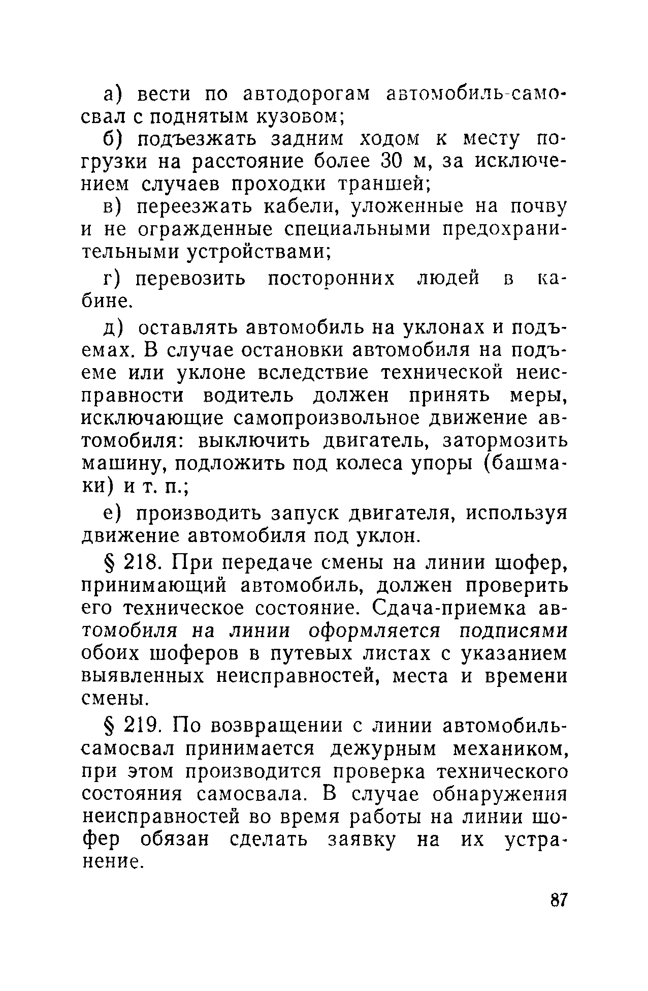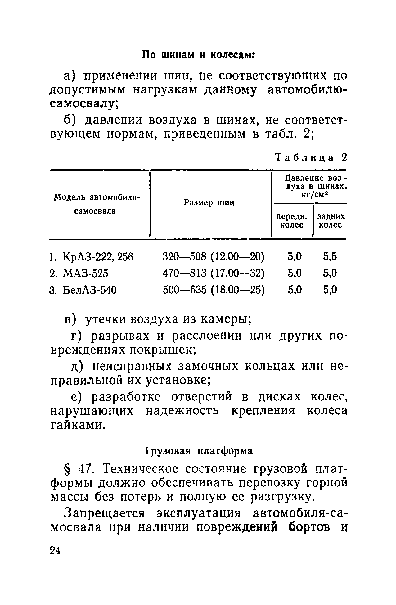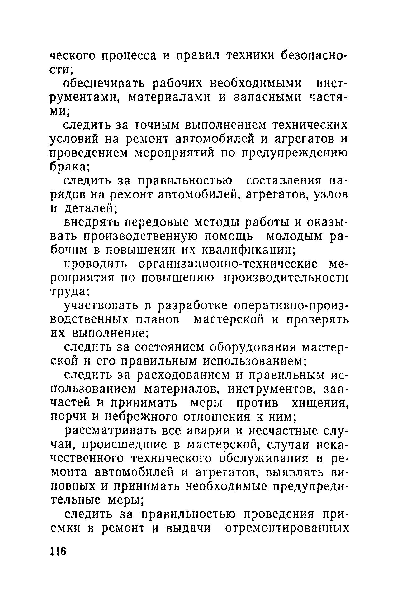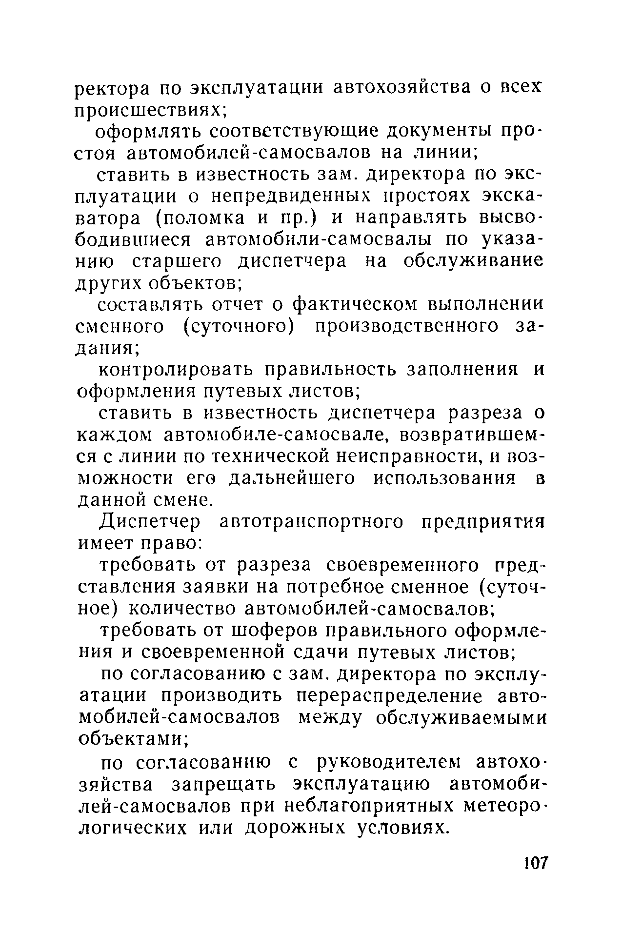 д) основные обязанности работников автомобильного транспорта. | | Оглавление: | Общие положения Раздел I Автомобильная служба на открытых горных работах и специфика подготовки шоферов к эксплуатации большегрузных автомобилей Глава 1. Общая структура автомобильной службы па открытых горных работах Глава 2. Техническая подготовка шоферов к эксплуатации большегрузных автомобилей-самосвалов Раздел II Подвижной состав технологического автомобильного транспорта Глава 1. Общие требования к подвижному составу Глава 2. Приемка автомобилей-самосвалов Глава 3. Регистрация и учет автомобилей-самосвалов Глава 4. Требования к техническому состоянию автомобилей-самосвалов, находящихся в эксплуатации Раздел III Профилактика и ремонт подвижного состава автомобильного транспорта Глава 1. Общие положения Глава 2. Профилактика подвижного состава Глава 3. Ремонт подвижного состава Глава 4. Порядок сдачи в капитальный ремонт и приема из ремонта автомобилей и агрегатов Глава 5. Организация профилактики и ремонта в автотранспортных предприятиях Глава 6. Устранение неисправностей подвижного состава на линии . Раздел IV Эксплуатационные материалы, аккумуляторные батареи и шины Глава 1. Топливо и смазочные материалы Глава 2. Охлаждающие жидкости Глава 3. Аккумуляторные батареи Глава 4. Автомобильные шины Раздел V Особенности подготовки и эксплуатации автомобилей-самосвалов в зимних условиях Раздел VI Здания, сооружения и технические средства автотранспортного предприятия Глава 1. Общие положения Глава 2. Сооружения для хранения автомобилей-самосвалов Глава 3. Сооружения для технического обслуживания и ремонта автомобилей-самосвалов Глава 4. Складские помещения Глава 5. Сооружения для обслуживания личного состава Раздел VII Автомобильные дороги разрезов Глава 1. Общие положения Глава 2. Устройство и обслуживание автомобильных дорог на разрезах Глава 3. Погрузочно-разгрузочные пункты Раздел VIII Работа подвижного состава на линии Глава 1. Общие положения Глава 2. Управление автомобилем Глава 3. диспетчерское руководство работой автомобилей-самосвалов на линии Раздел IХ Общие обязанности работников автотранспортного предприятия, обслуживающего разрезы Глава 1. Проверка знаний работников автотранспортного предприятия Глава 2. Общие обязанности работников автотранспортного предприятии Приложение 1. Типовые обязанности и права инженерно-технических работников технической службы, службы эксплуатации автохозяйства и шоферов большегрузных автомобилей-самосвалов Приложение 2. Перечень основных операций технического обслуживания (ЕО, ТО-1, ТО-2, СО) большегрузных автомобилей-самосвалов . . Приложение 3. Примерный перечень основных агрегатов, механизмов, соединений и деталей, техническое состояние которых отражается на безопасности движения Приложение 4. Примерный перечень узлов, приборов и механизмов автомобилей, рекомендуемых для включения в оборотный фонд при агрегатно-узловом методе ремонта Приложение 5. Номенклатура агрегатов и узлов, подлежащих ремонту на авторемонтных предприятиях в качестве товарной продукции Приложение 6. Ремонтный листок Приложение 7. Лицевая карточка автомобиля | | Разработан: | НИИОГР