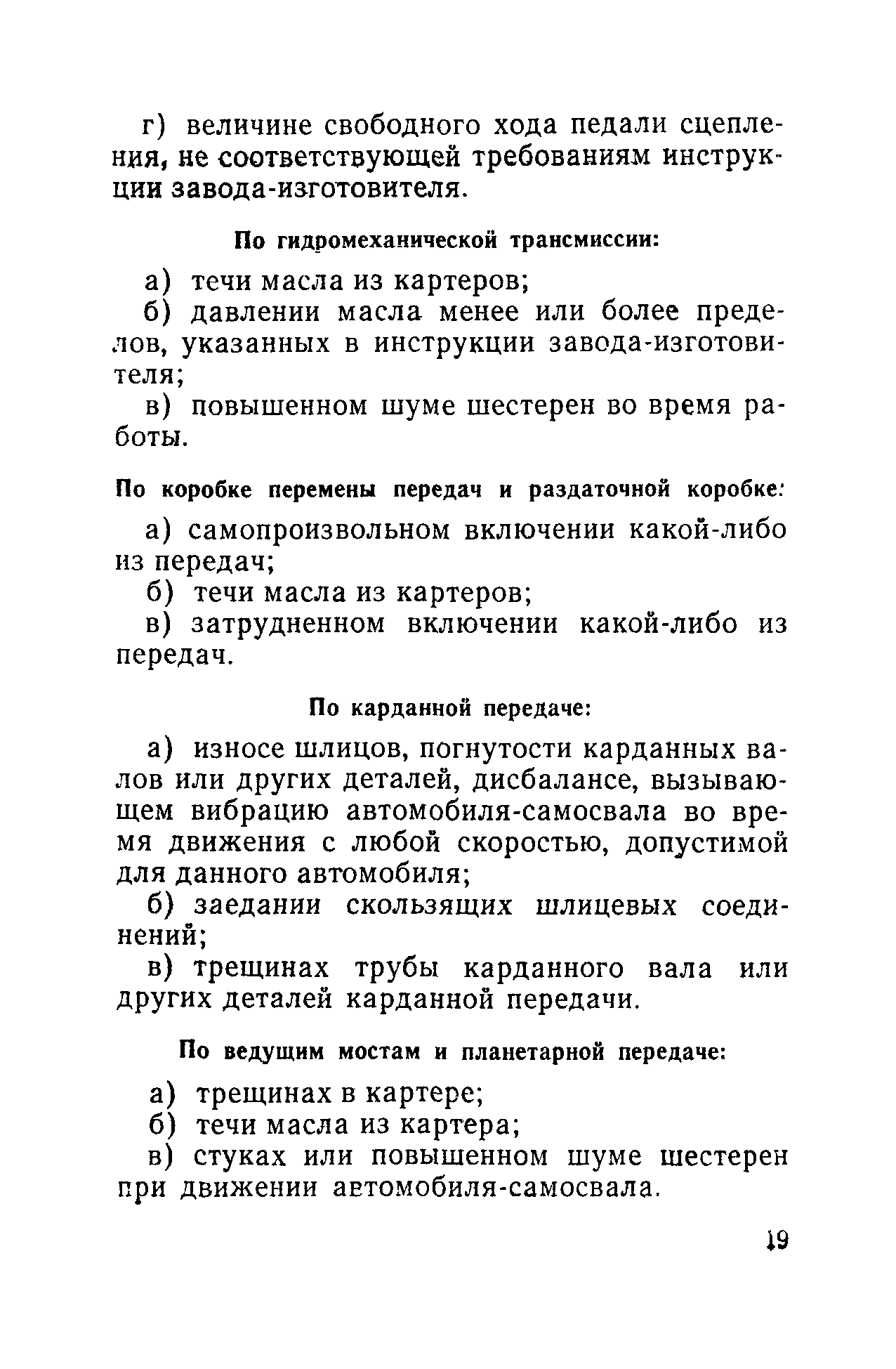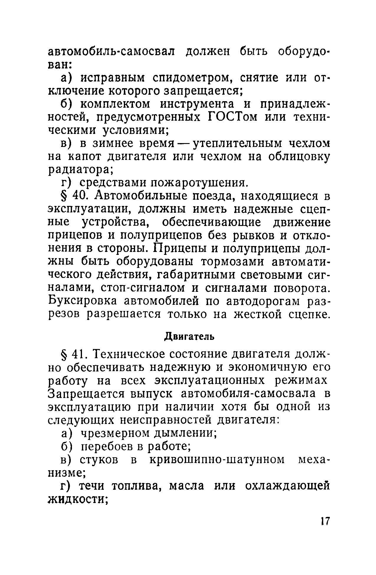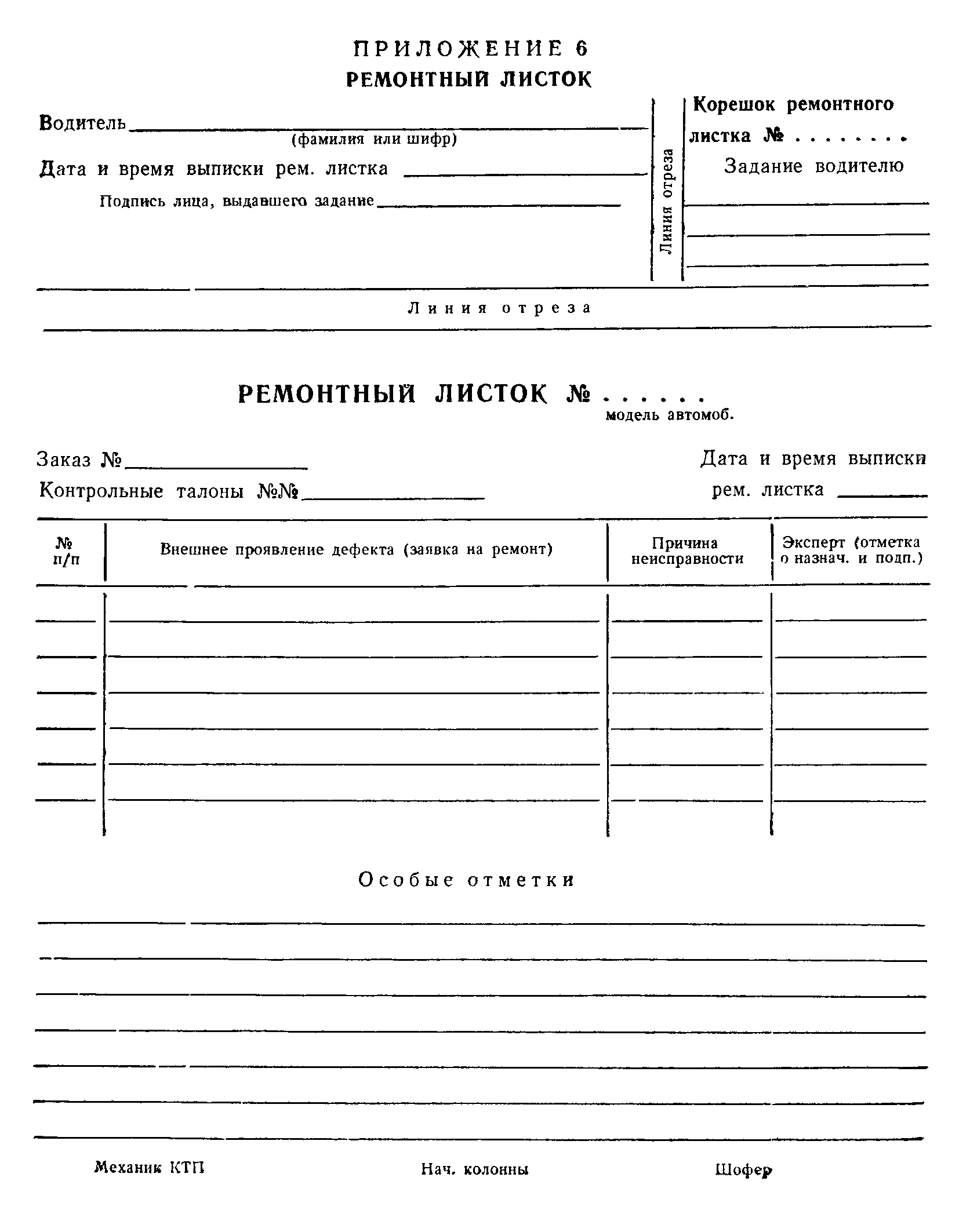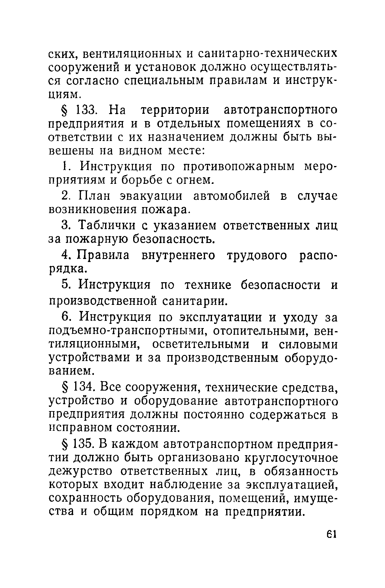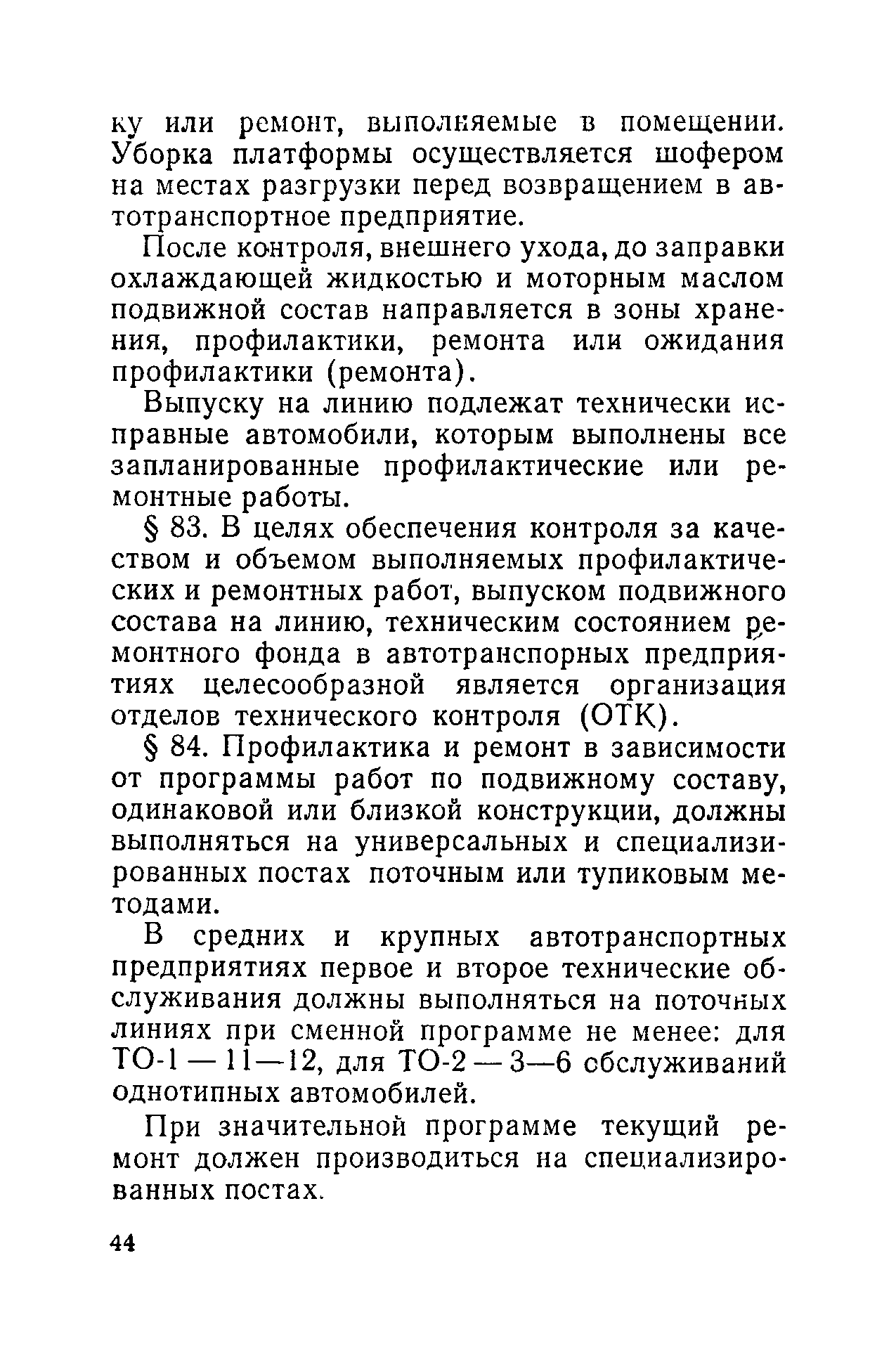 д) основные обязанности работников автомобильного транспорта. | | Оглавление: | Общие положения Раздел I Автомобильная служба на открытых горных работах и специфика подготовки шоферов к эксплуатации большегрузных автомобилей Глава 1. Общая структура автомобильной службы па открытых горных работах Глава 2. Техническая подготовка шоферов к эксплуатации большегрузных автомобилей-самосвалов Раздел II Подвижной состав технологического автомобильного транспорта Глава 1. Общие требования к подвижному составу Глава 2. Приемка автомобилей-самосвалов Глава 3. Регистрация и учет автомобилей-самосвалов Глава 4. Требования к техническому состоянию автомобилей-самосвалов, находящихся в эксплуатации Раздел III Профилактика и ремонт подвижного состава автомобильного транспорта Глава 1. Общие положения Глава 2. Профилактика подвижного состава Глава 3. Ремонт подвижного состава Глава 4. Порядок сдачи в капитальный ремонт и приема из ремонта автомобилей и агрегатов Глава 5. Организация профилактики и ремонта в автотранспортных предприятиях Глава 6. Устранение неисправностей подвижного состава на линии . Раздел IV Эксплуатационные материалы, аккумуляторные батареи и шины Глава 1. Топливо и смазочные материалы Глава 2. Охлаждающие жидкости Глава 3. Аккумуляторные батареи Глава 4. Автомобильные шины Раздел V Особенности подготовки и эксплуатации автомобилей-самосвалов в зимних условиях Раздел VI Здания, сооружения и технические средства автотранспортного предприятия Глава 1. Общие положения Глава 2. Сооружения для хранения автомобилей-самосвалов Глава 3. Сооружения для технического обслуживания и ремонта автомобилей-самосвалов Глава 4. Складские помещения Глава 5. Сооружения для обслуживания личного состава Раздел VII Автомобильные дороги разрезов Глава 1. Общие положения Глава 2. Устройство и обслуживание автомобильных дорог на разрезах Глава 3. Погрузочно-разгрузочные пункты Раздел VIII Работа подвижного состава на линии Глава 1. Общие положения Глава 2. Управление автомобилем Глава 3. диспетчерское руководство работой автомобилей-самосвалов на линии Раздел IХ Общие обязанности работников автотранспортного предприятия, обслуживающего разрезы Глава 1. Проверка знаний работников автотранспортного предприятия Глава 2. Общие обязанности работников автотранспортного предприятии Приложение 1. Типовые обязанности и права инженерно-технических работников технической службы, службы эксплуатации автохозяйства и шоферов большегрузных автомобилей-самосвалов Приложение 2. Перечень основных операций технического обслуживания (ЕО, ТО-1, ТО-2, СО) большегрузных автомобилей-самосвалов . . Приложение 3. Примерный перечень основных агрегатов, механизмов, соединений и деталей, техническое состояние которых отражается на безопасности движения Приложение 4. Примерный перечень узлов, приборов и механизмов автомобилей, рекомендуемых для включения в оборотный фонд при агрегатно-узловом методе ремонта Приложение 5. Номенклатура агрегатов и узлов, подлежащих ремонту на авторемонтных предприятиях в качестве товарной продукции Приложение 6. Ремонтный листок Приложение 7. Лицевая карточка автомобиля | | Разработан: | НИИОГР