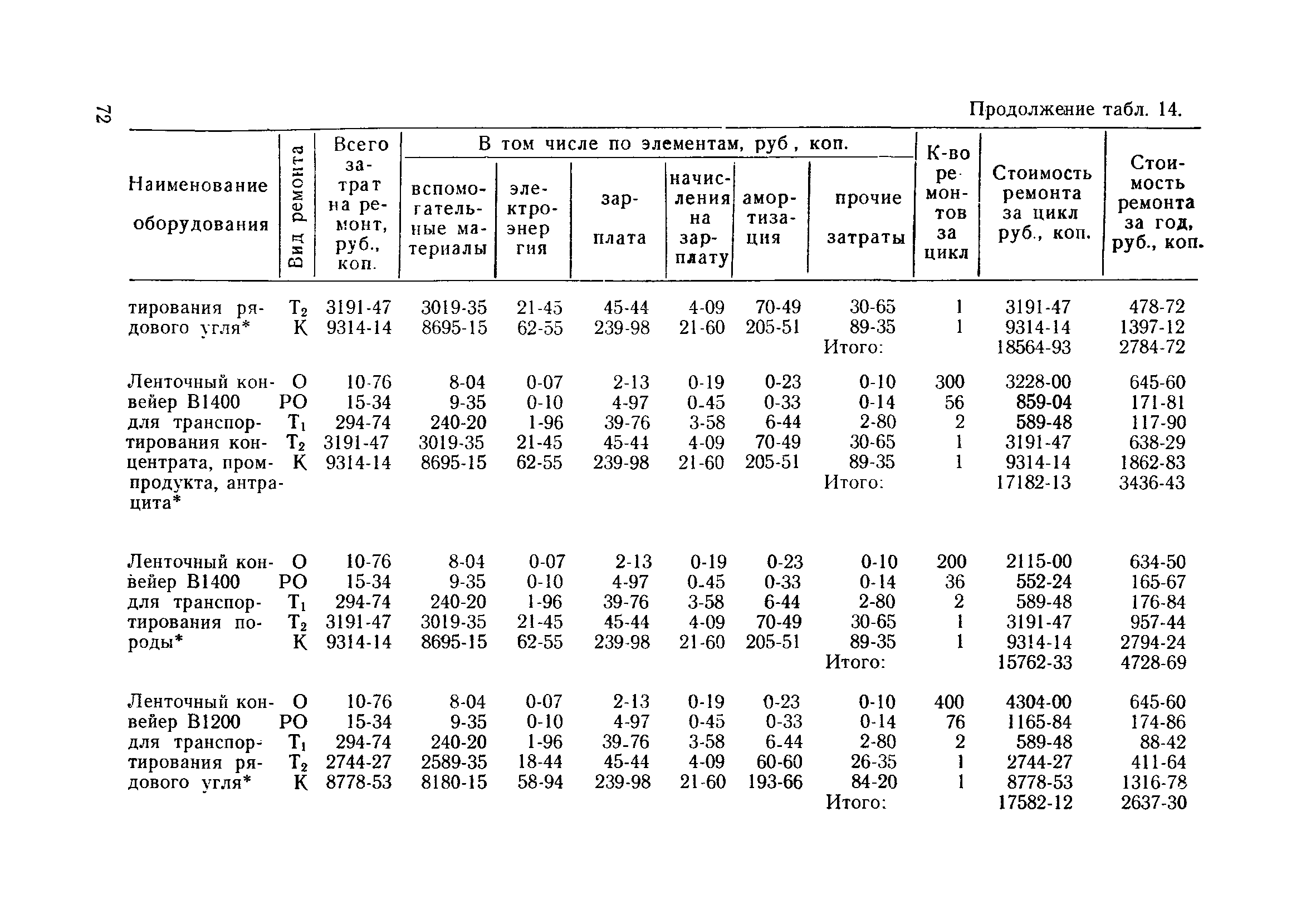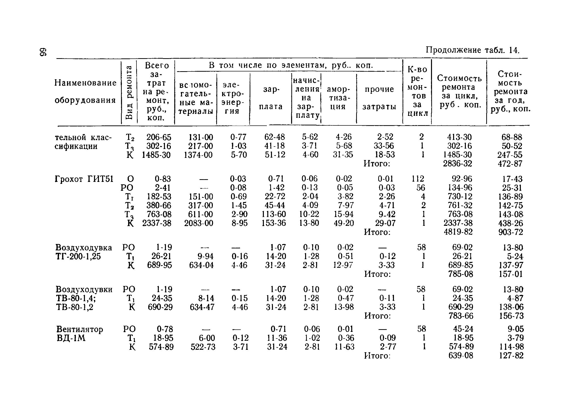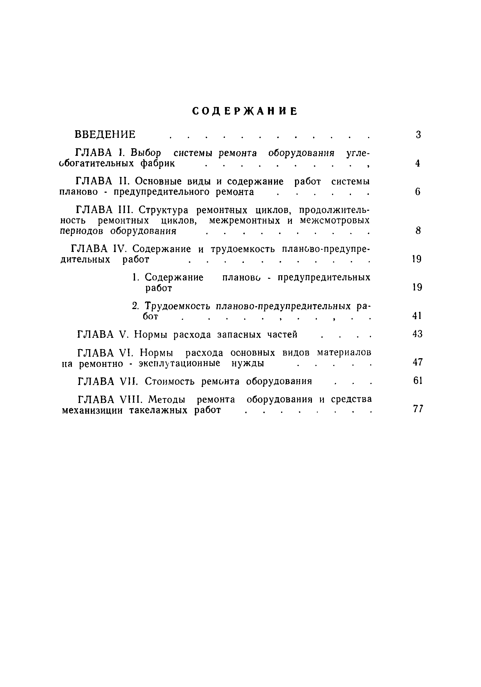 | Оглавление: | Введение Глава 1. Выбор системы ремонта оборудования углеобогатительных фабрик Глава 2. Основные виды и содержание работ системы планово-предупредительного ремонта Глава 3. Структура ремонтных циклов, продолжительность ремонтных циклов, межремонтных и межсмотровых периодов оборудования Глава 4. Содержание и трудоемкость планово-предупредительных работ 1. Содержание планово-предупредительных работ 2. Трудоемкость планово-предупредительных работ Глава 5. Нормы расхода запасных частей Глава 6. Нормы расхода основных видов материалов на ремонтно-эксплуатационные нужды Глава 7. Стоимость ремонта оборудования Глава 8. Методы ремонта оборудования и средства механизации такелажных работ |