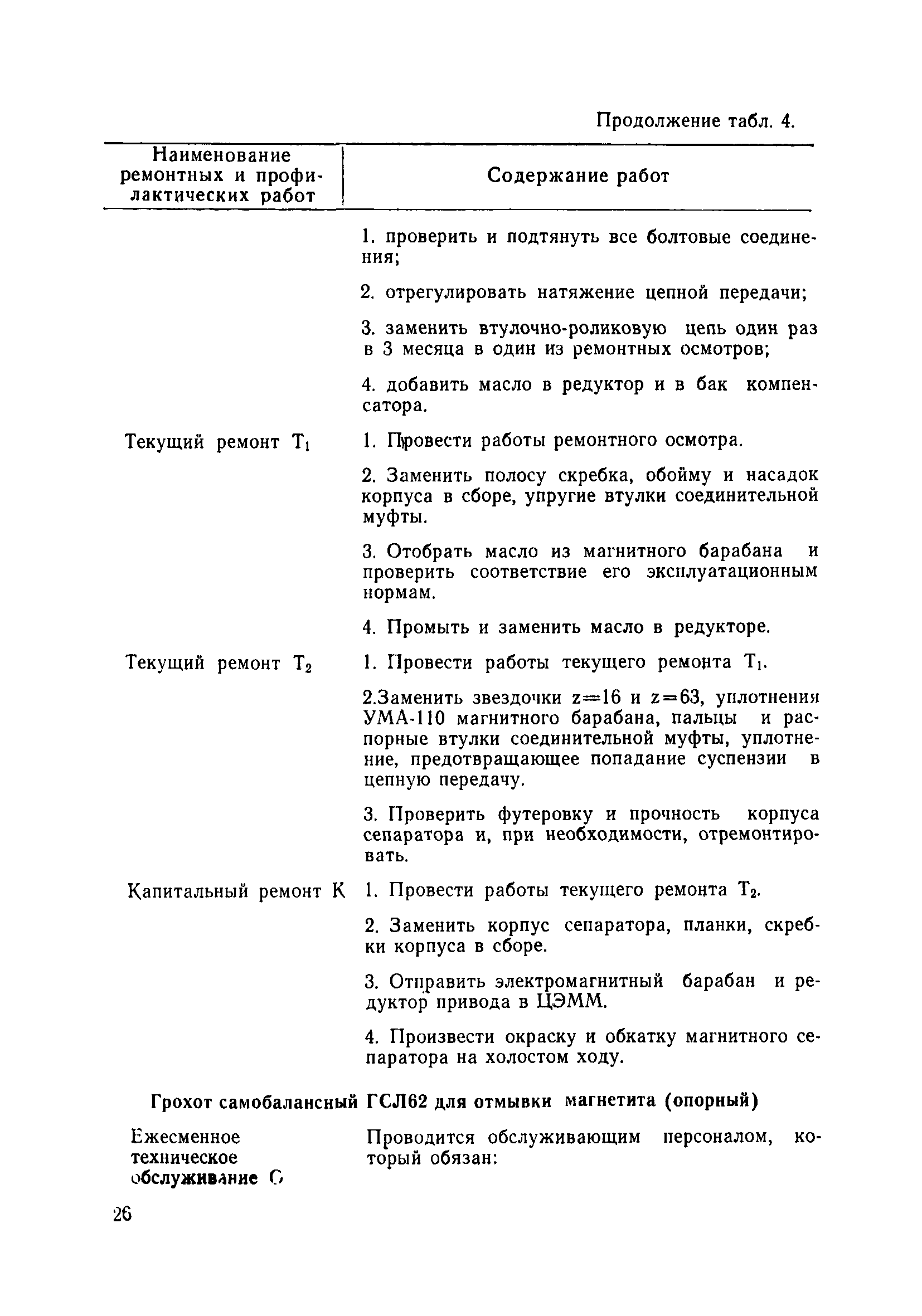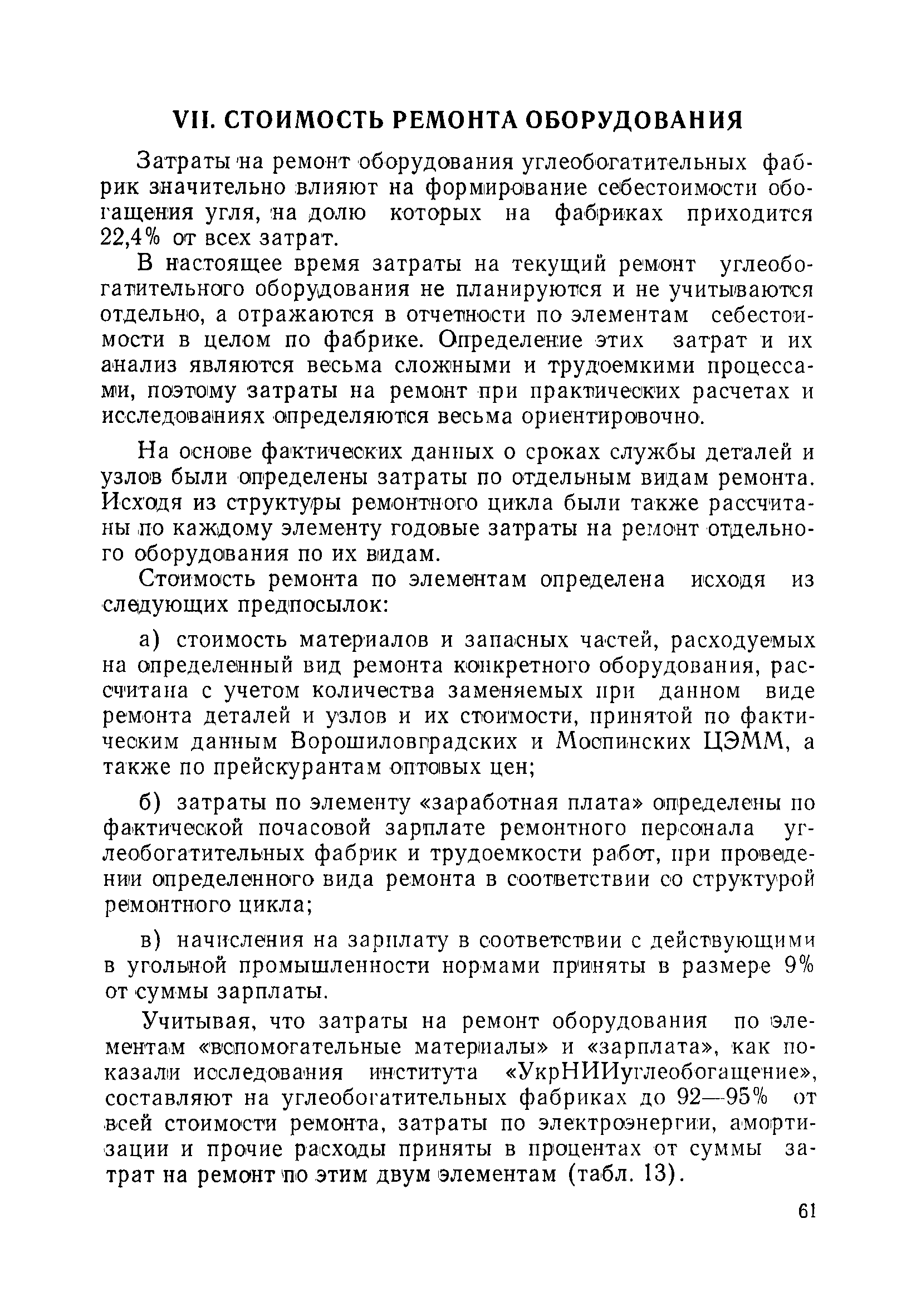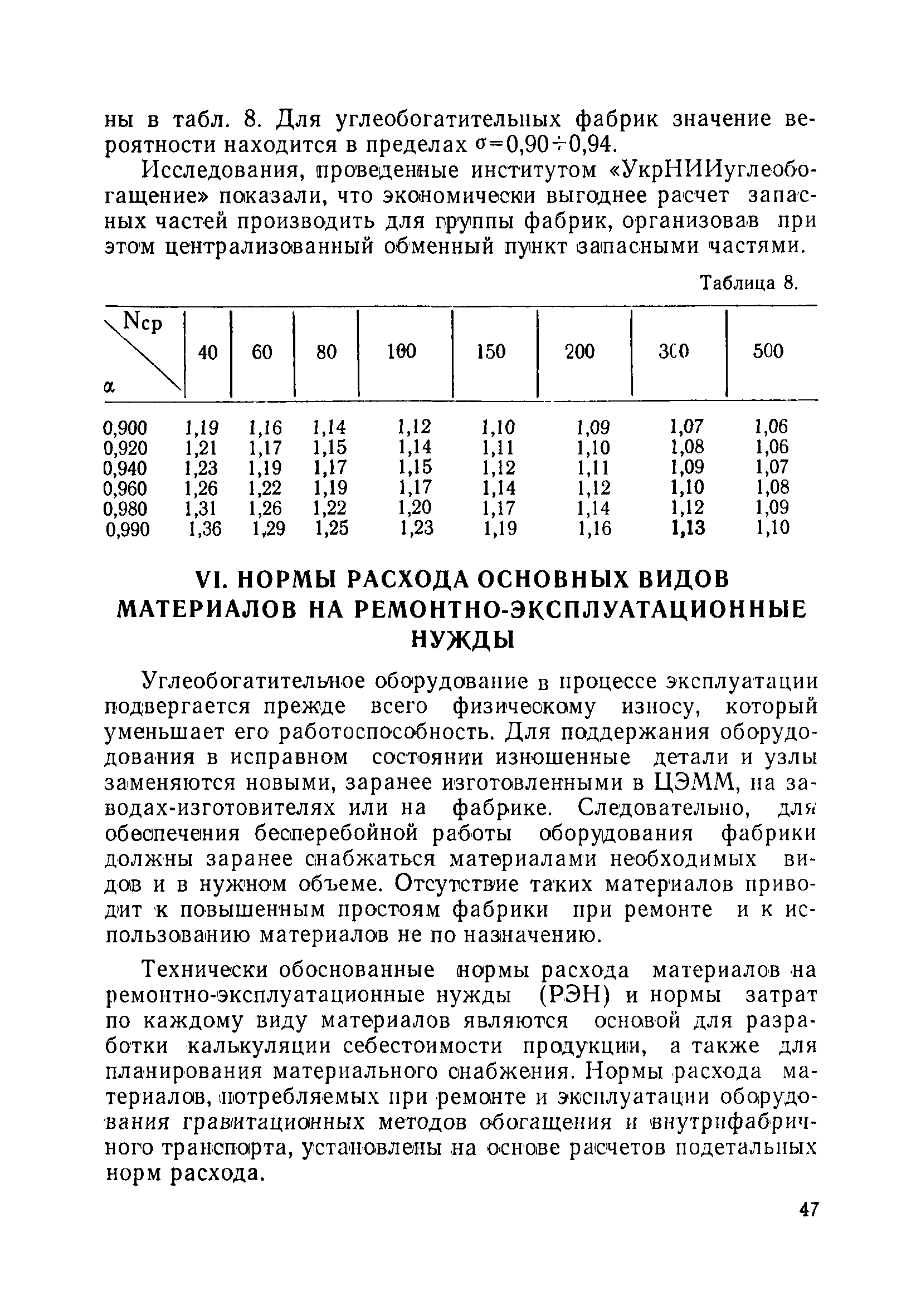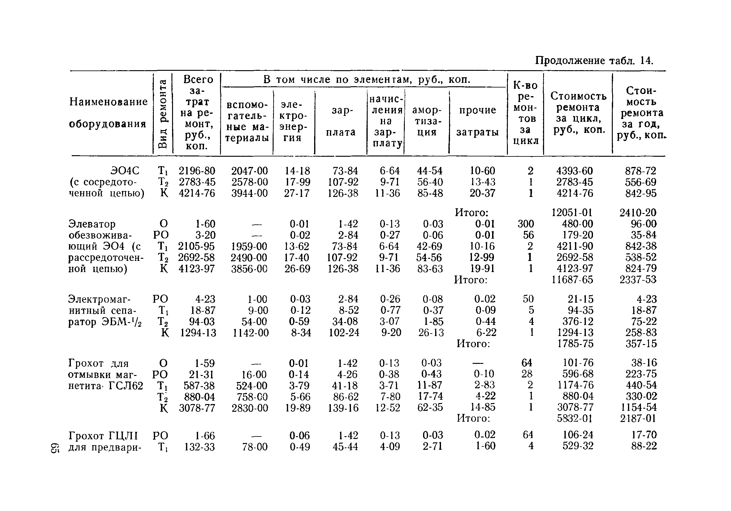 | Оглавление: | Введение Глава 1. Выбор системы ремонта оборудования углеобогатительных фабрик Глава 2. Основные виды и содержание работ системы планово-предупредительного ремонта Глава 3. Структура ремонтных циклов, продолжительность ремонтных циклов, межремонтных и межсмотровых периодов оборудования Глава 4. Содержание и трудоемкость планово-предупредительных работ 1. Содержание планово-предупредительных работ 2. Трудоемкость планово-предупредительных работ Глава 5. Нормы расхода запасных частей Глава 6. Нормы расхода основных видов материалов на ремонтно-эксплуатационные нужды Глава 7. Стоимость ремонта оборудования Глава 8. Методы ремонта оборудования и средства механизации такелажных работ |