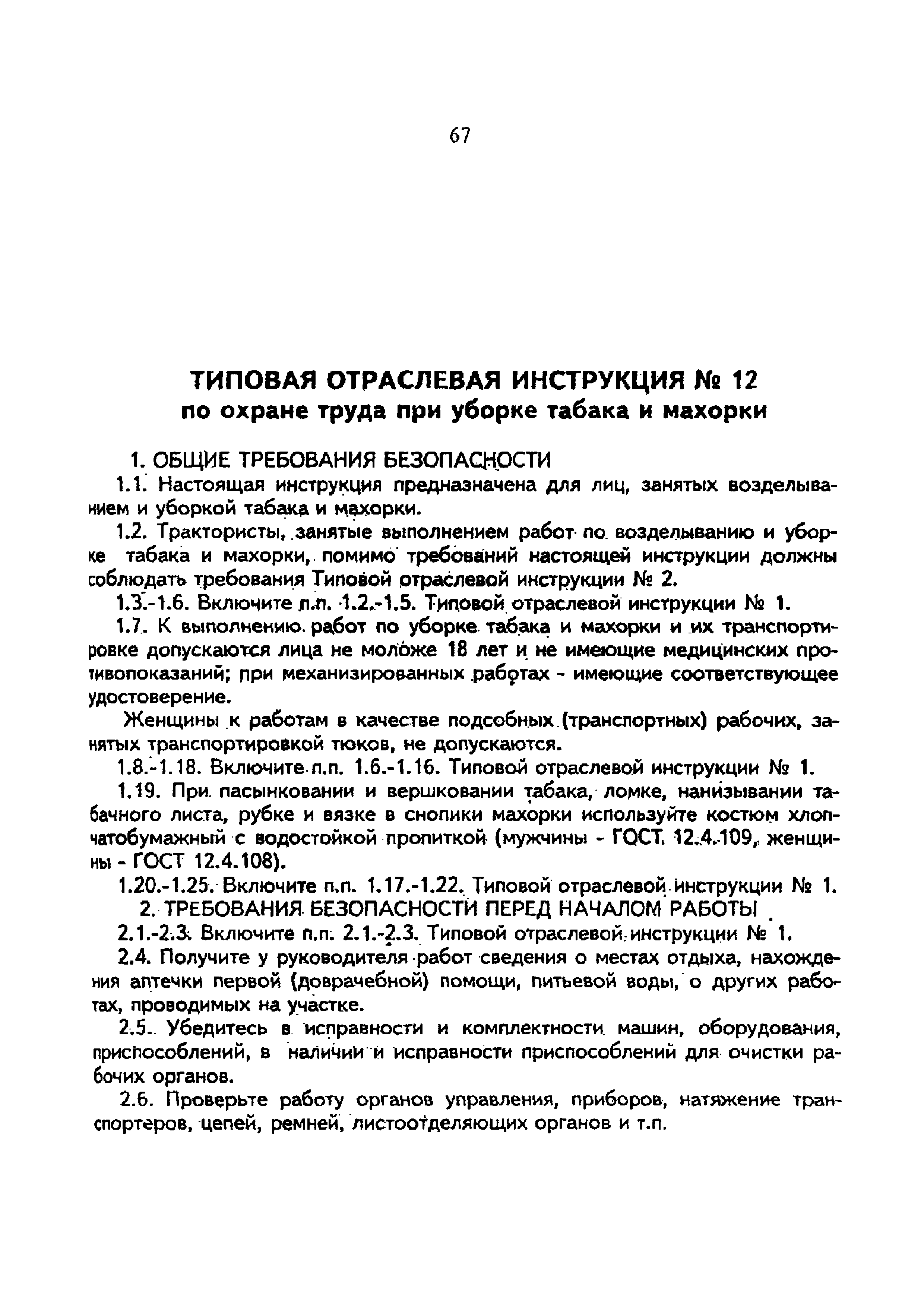 | Название рус.: | Типовая отраслевая инструкция № 12 по охране труда при уборке табака и махорки |