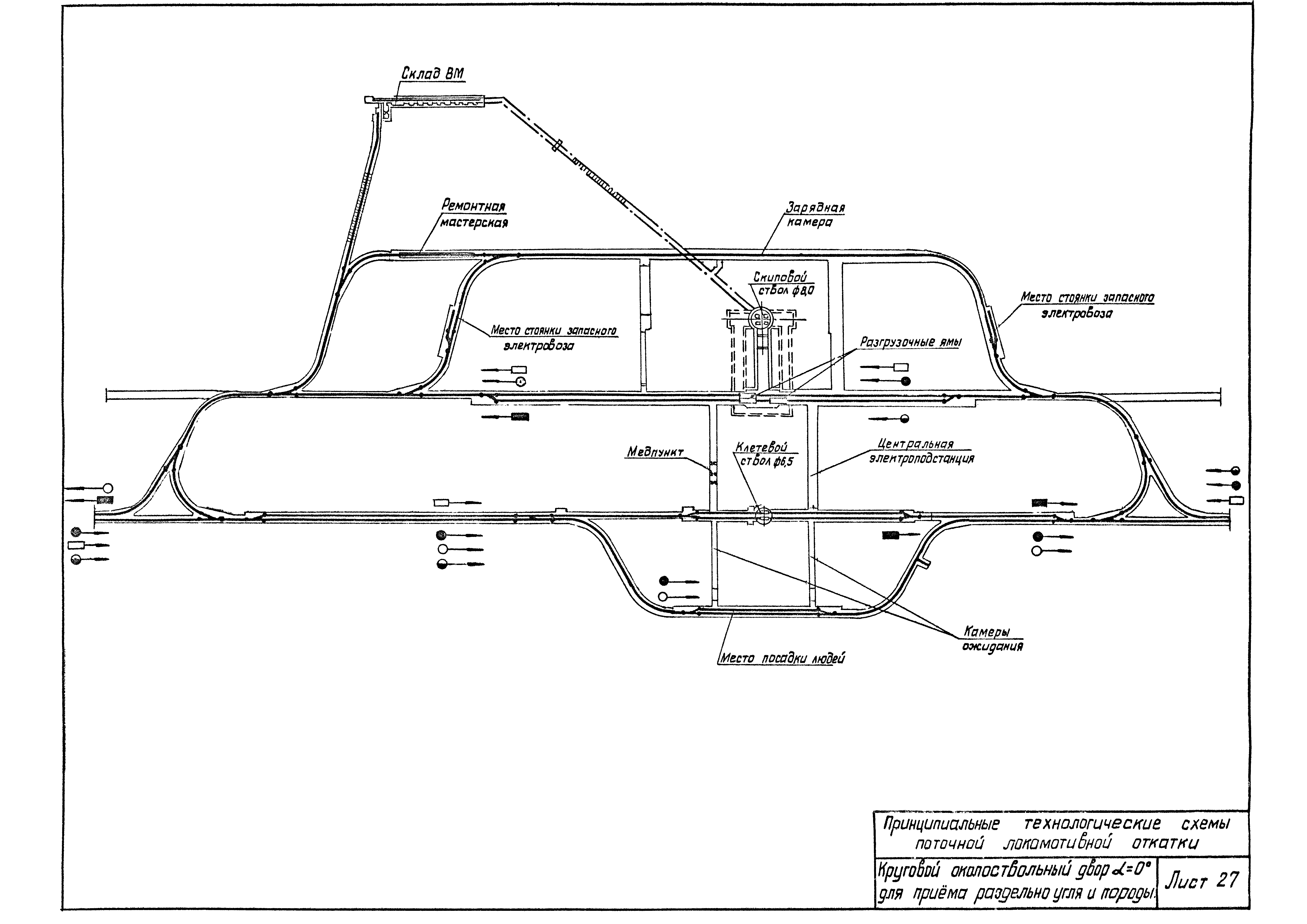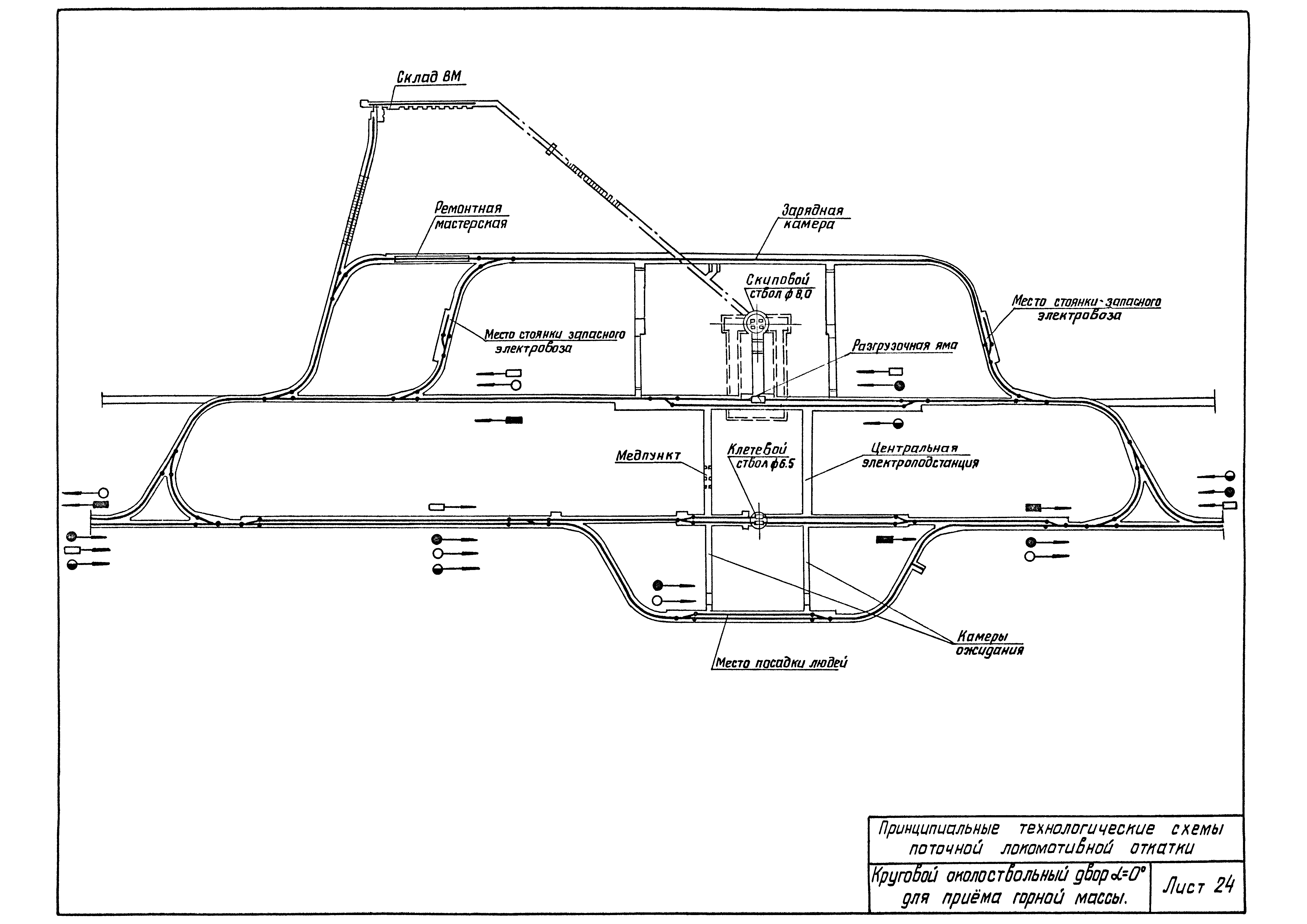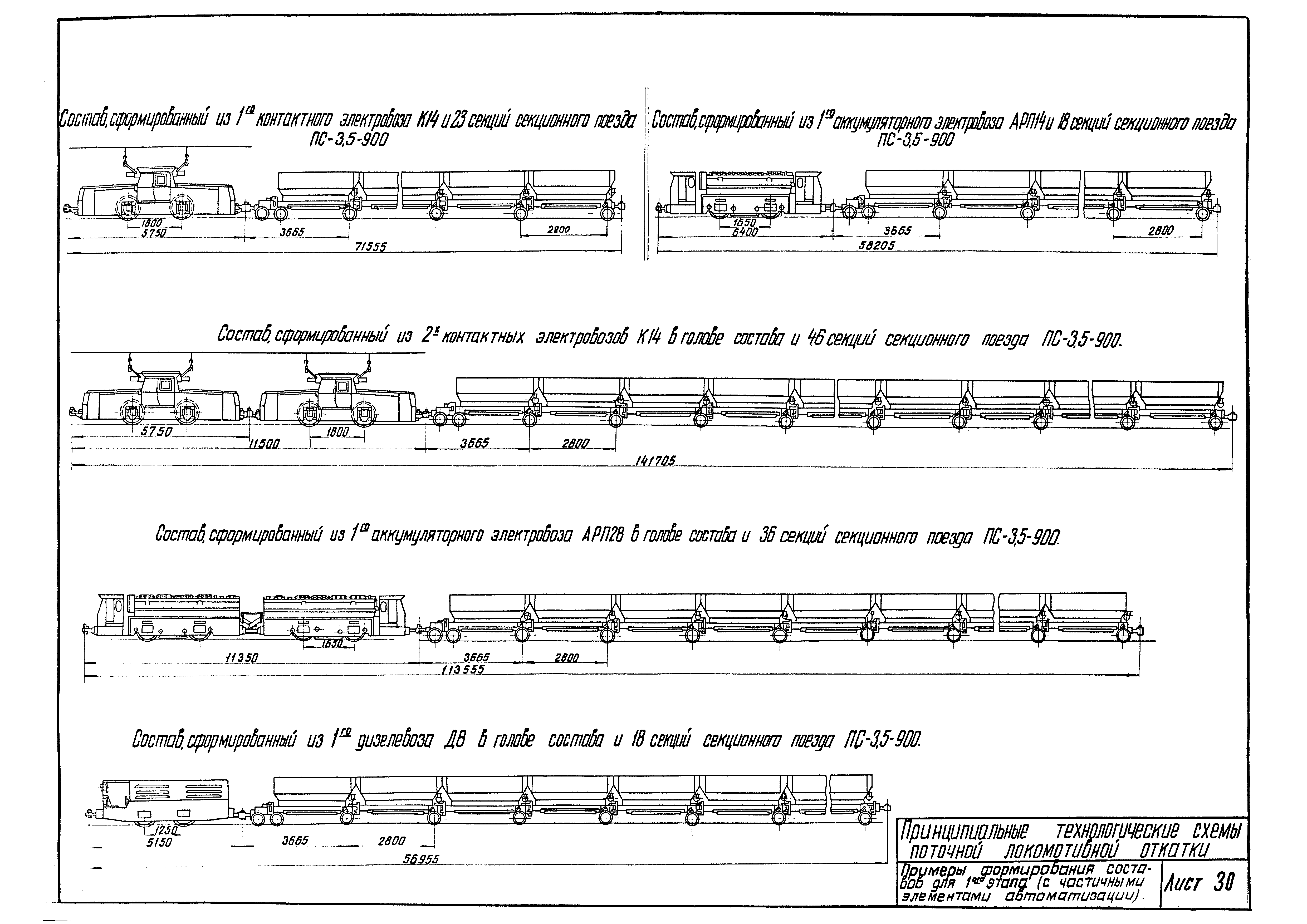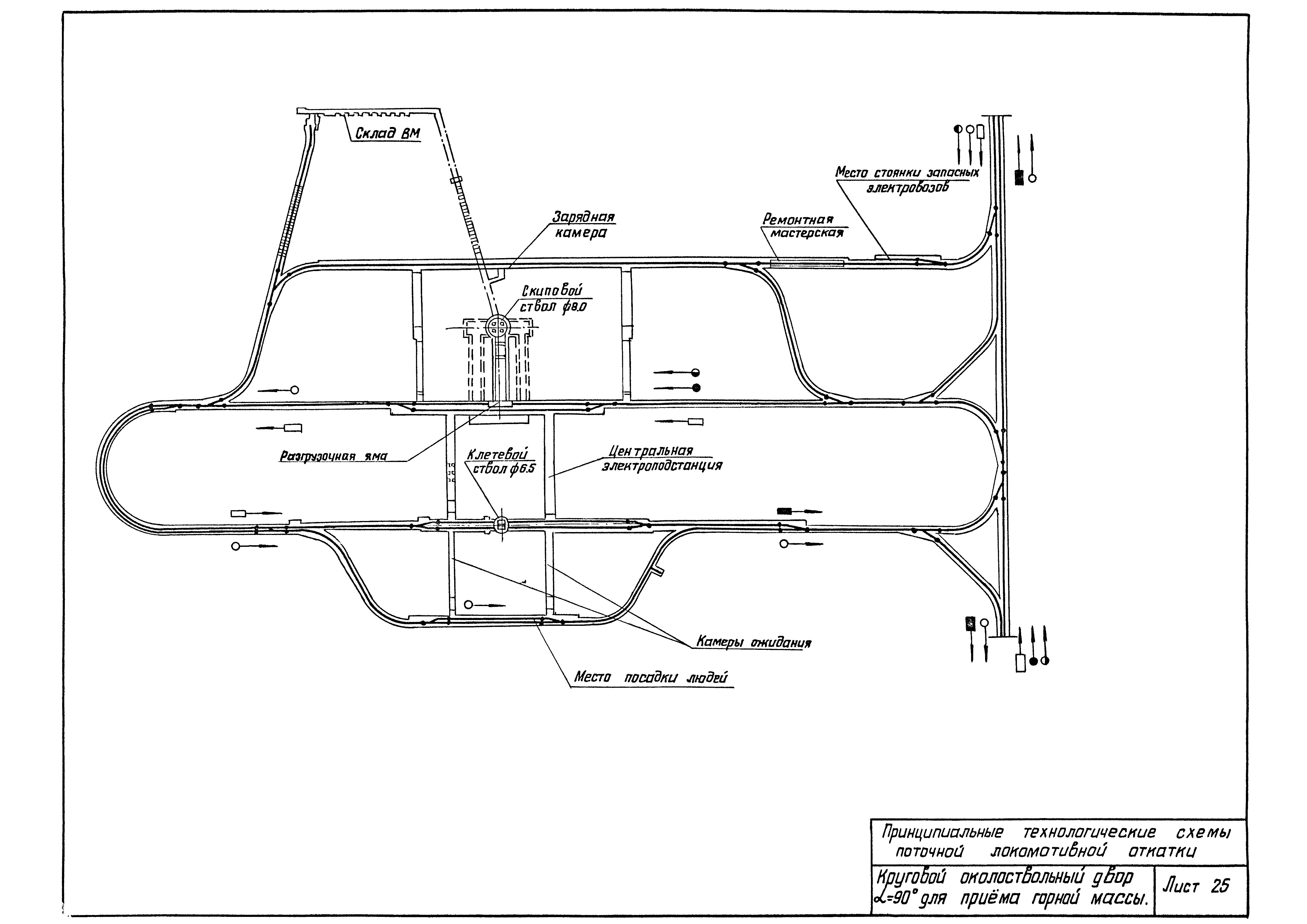 | Название рус.: | Принципиальные технологические схемы поточной локомотивной откатки (Временные) |