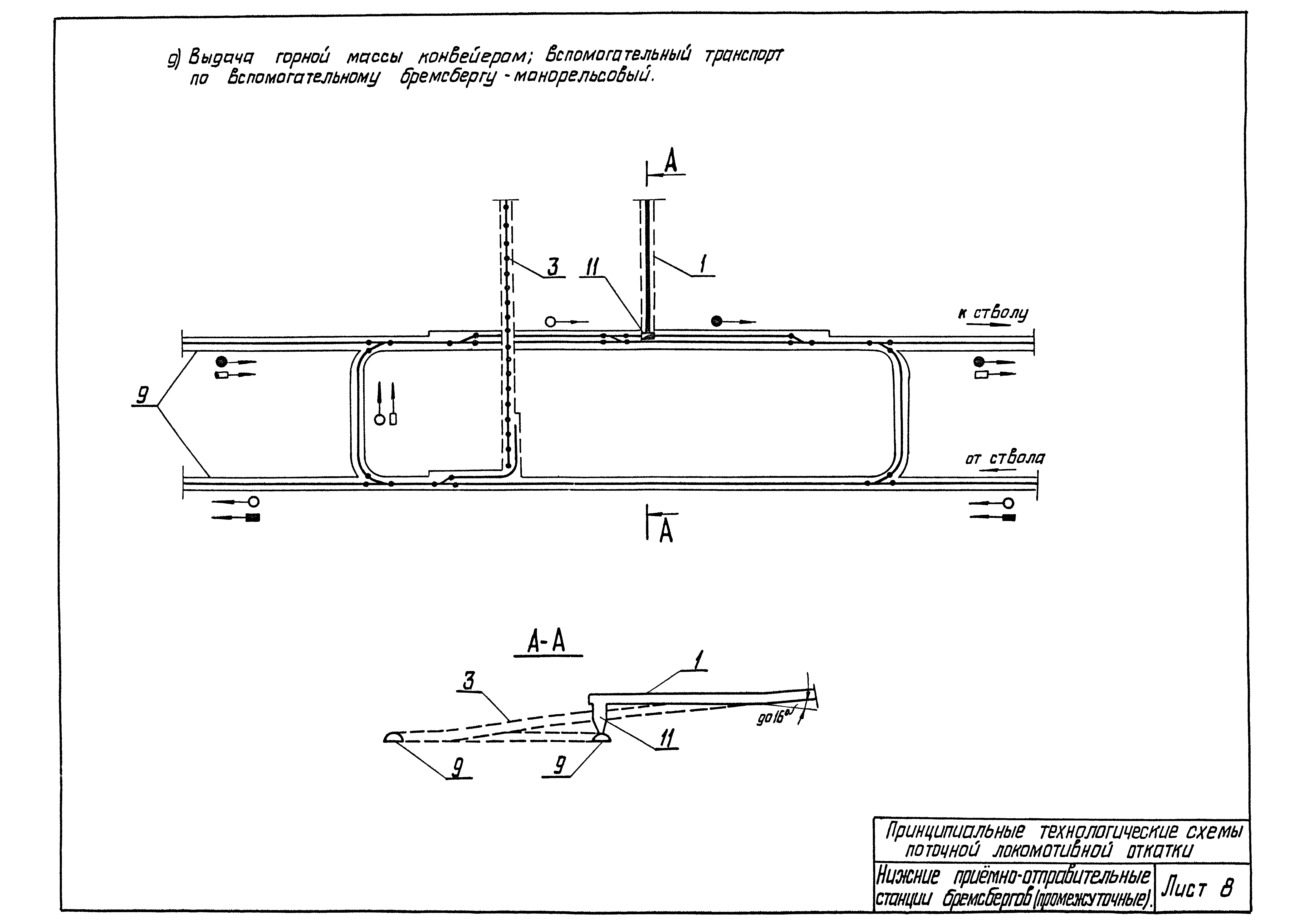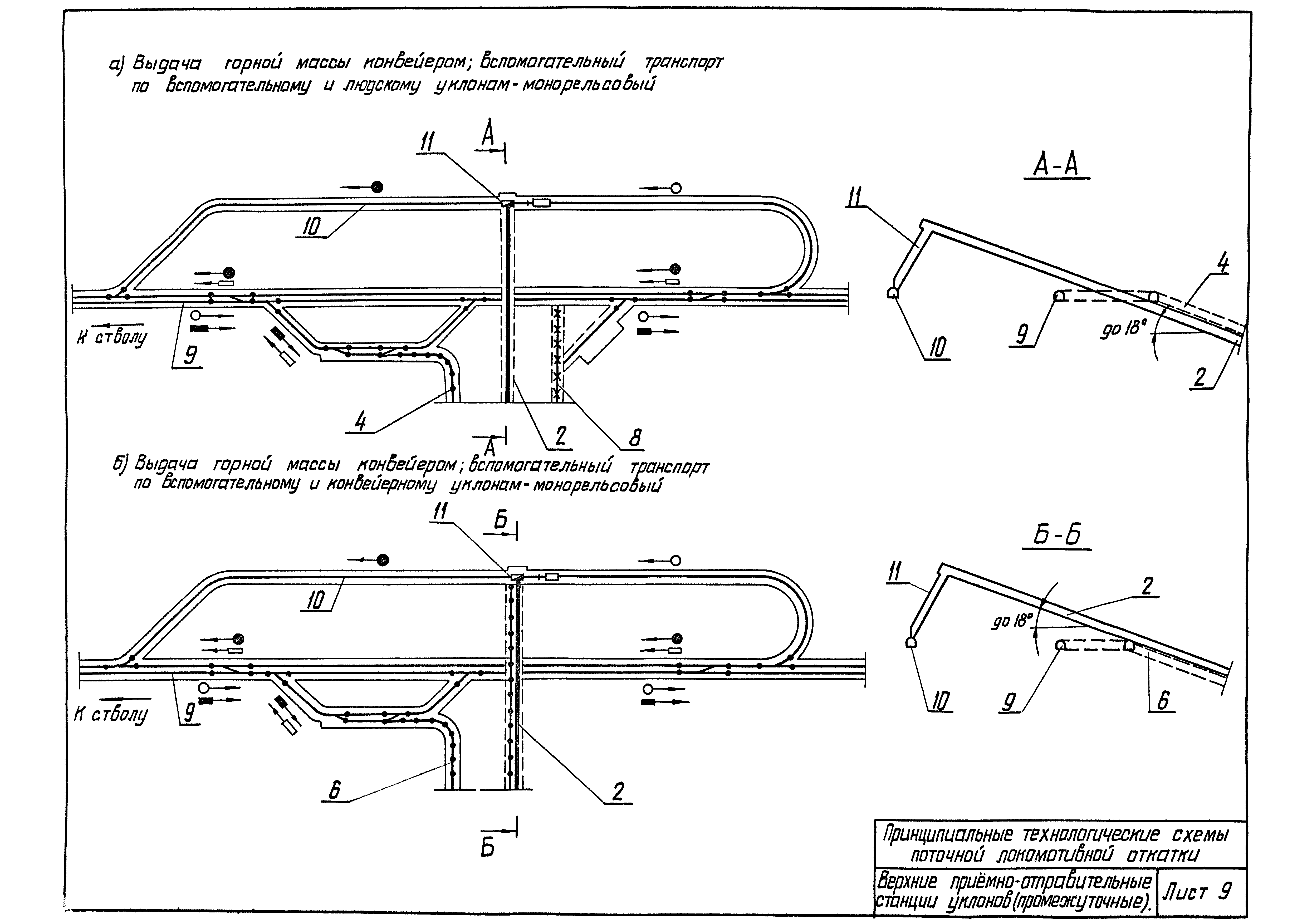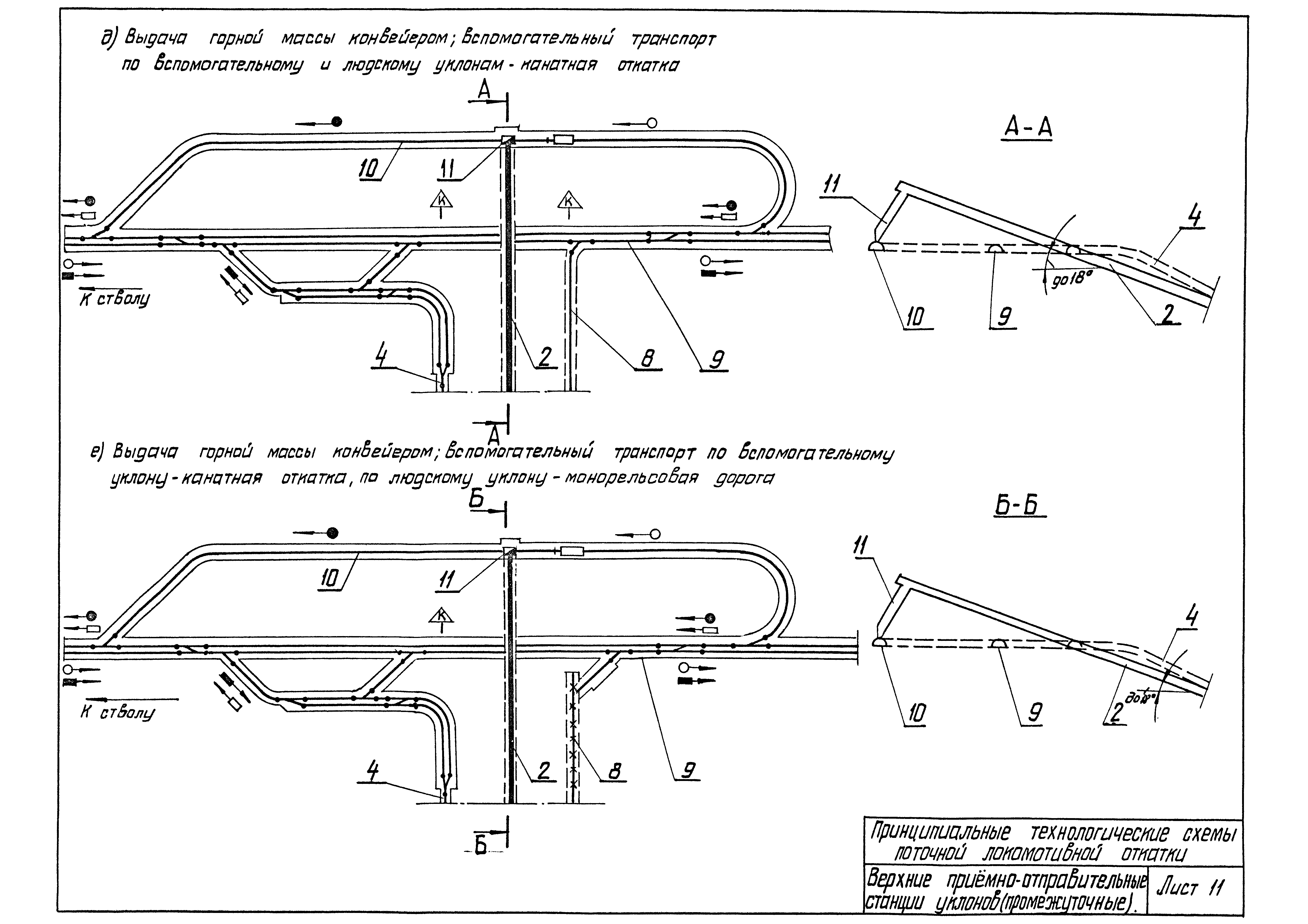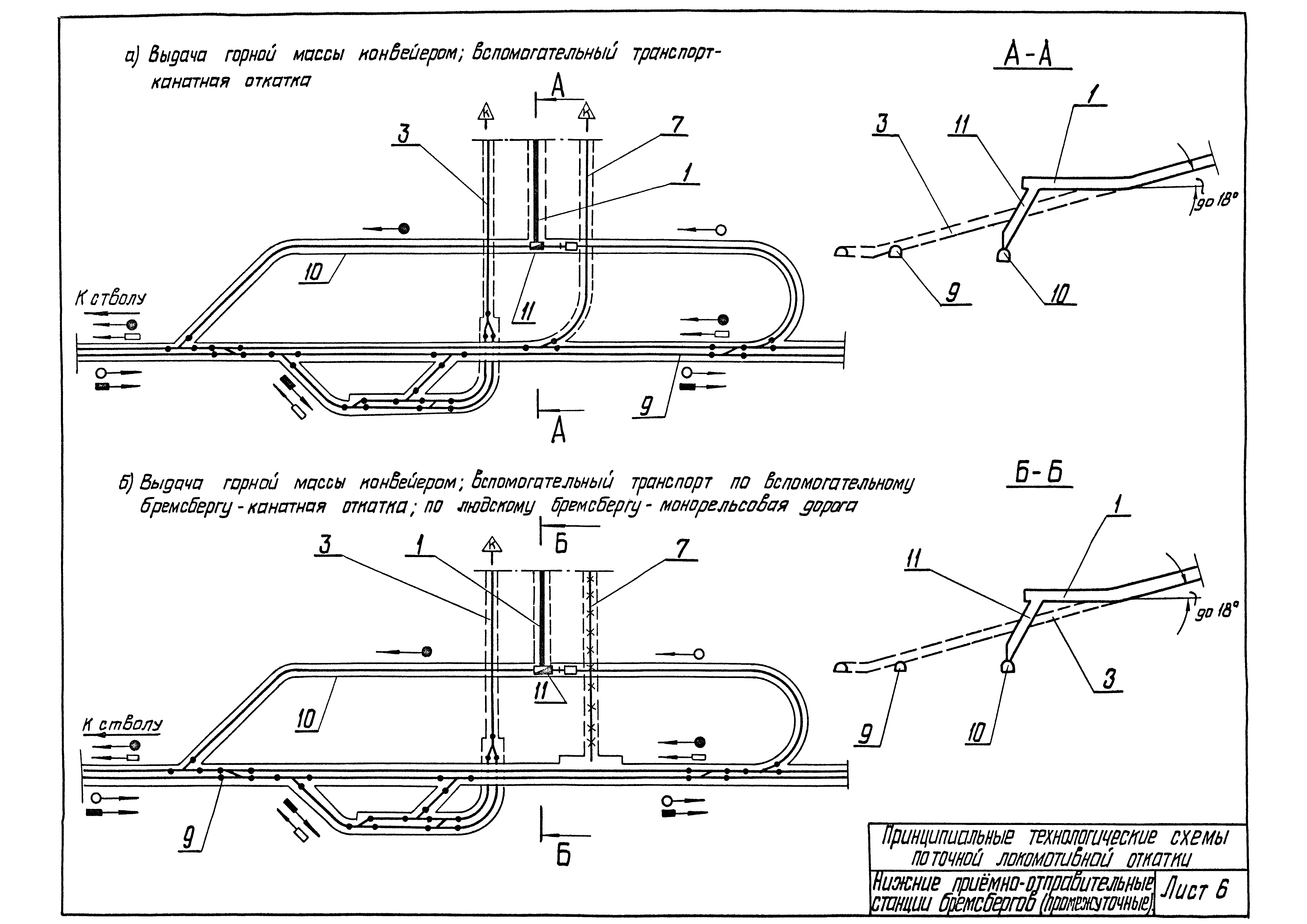 | Название рус.: | Принципиальные технологические схемы поточной локомотивной откатки (Временные) |