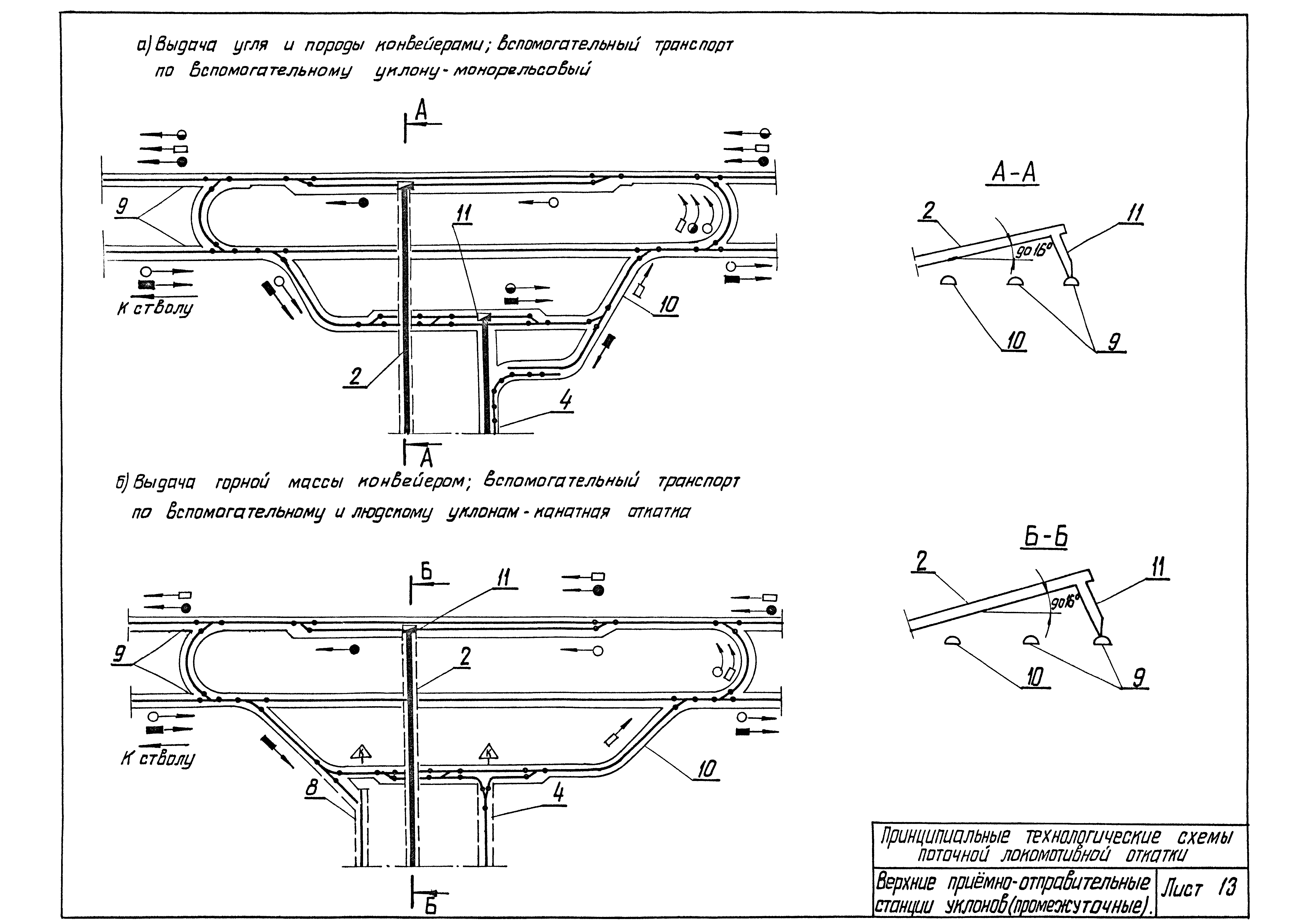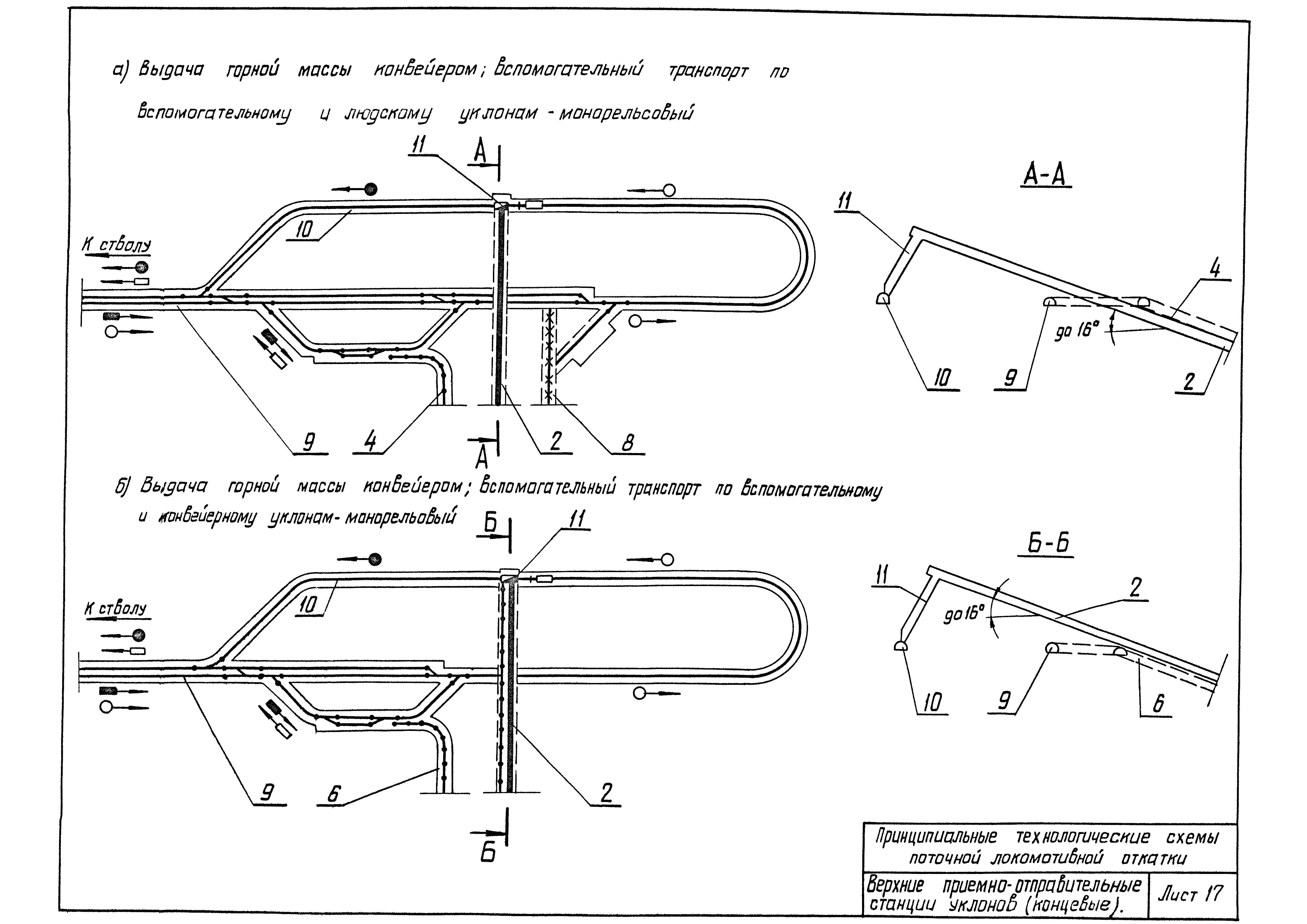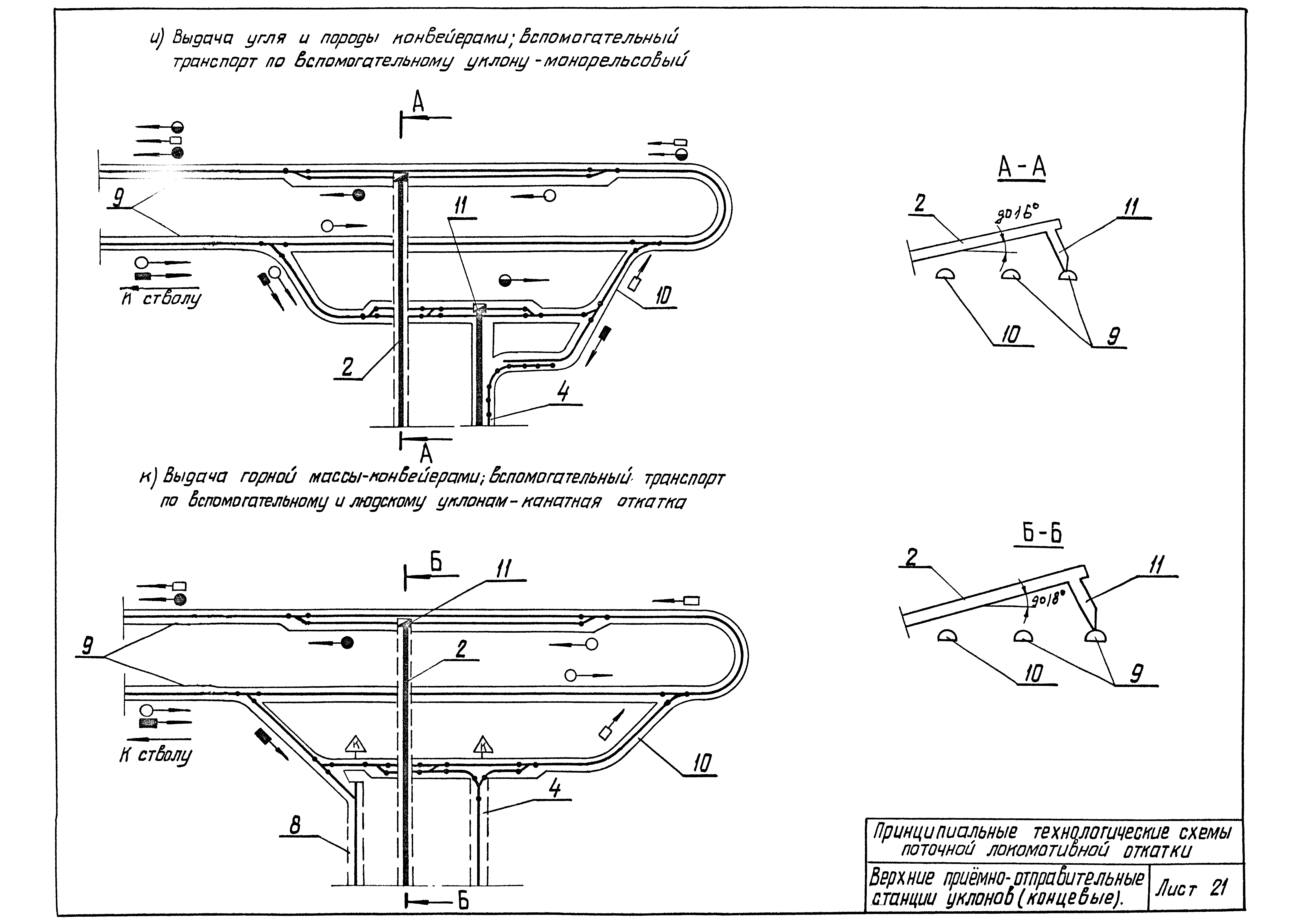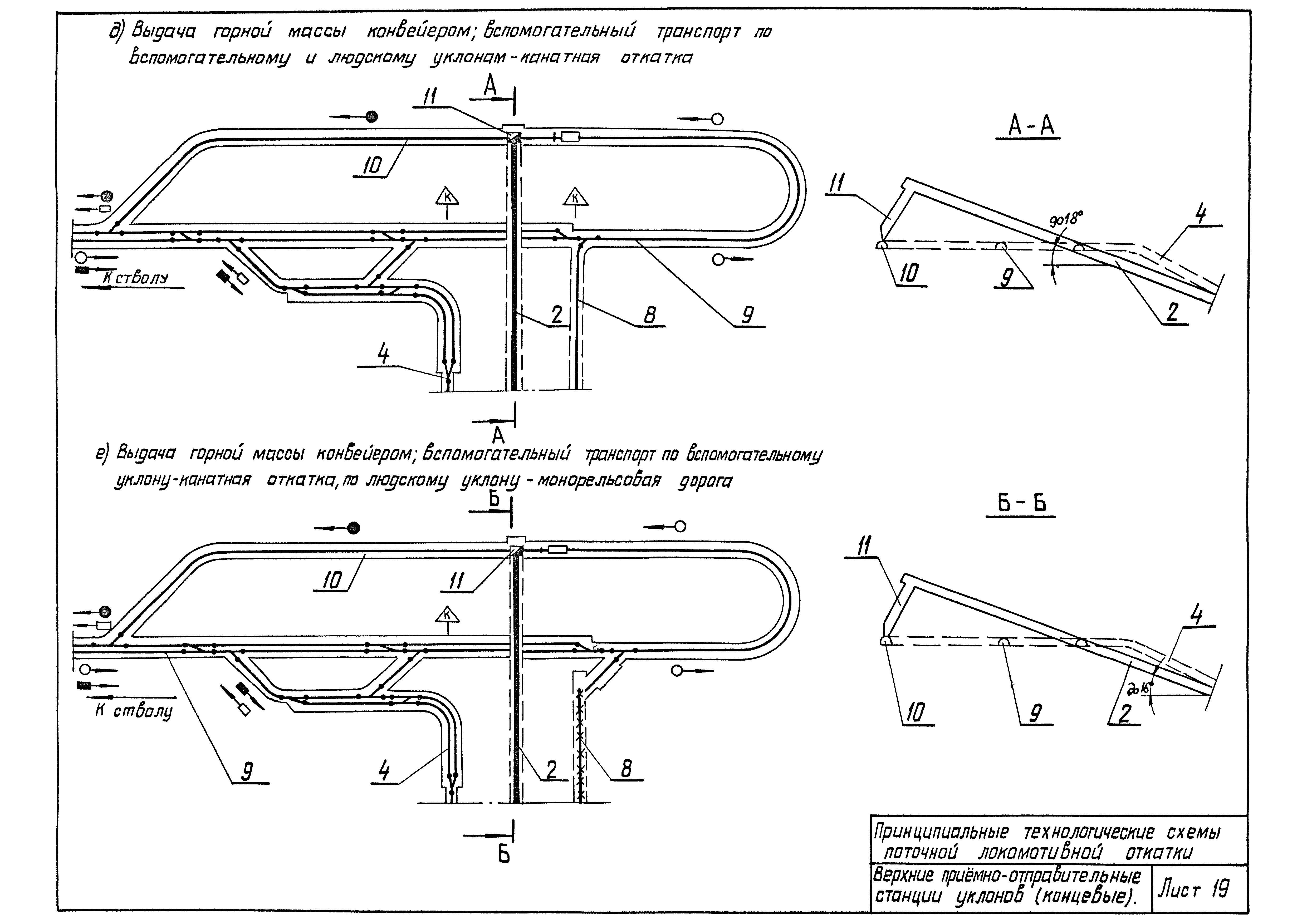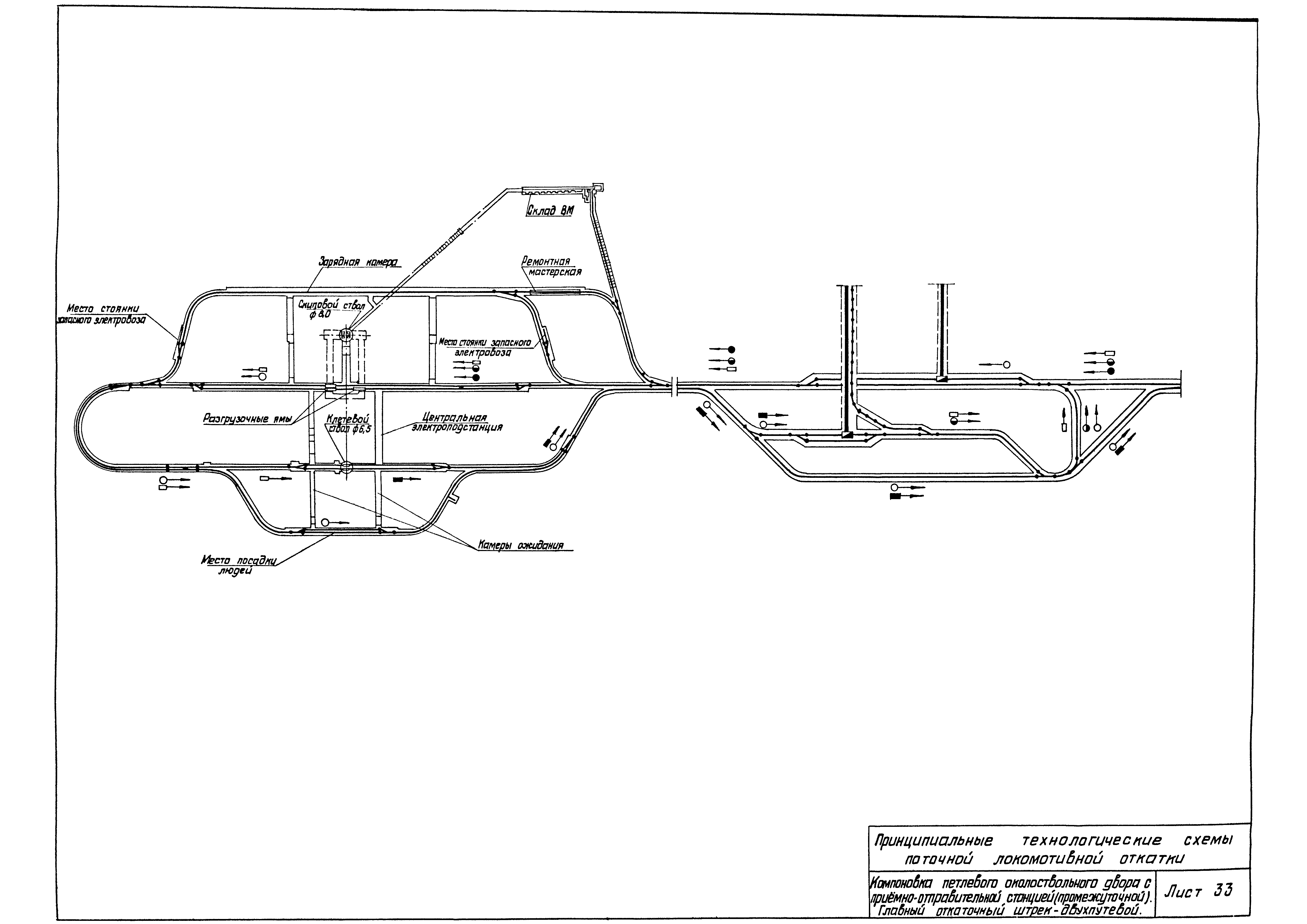 | Название рус.: | Принципиальные технологические схемы поточной локомотивной откатки (Временные) |