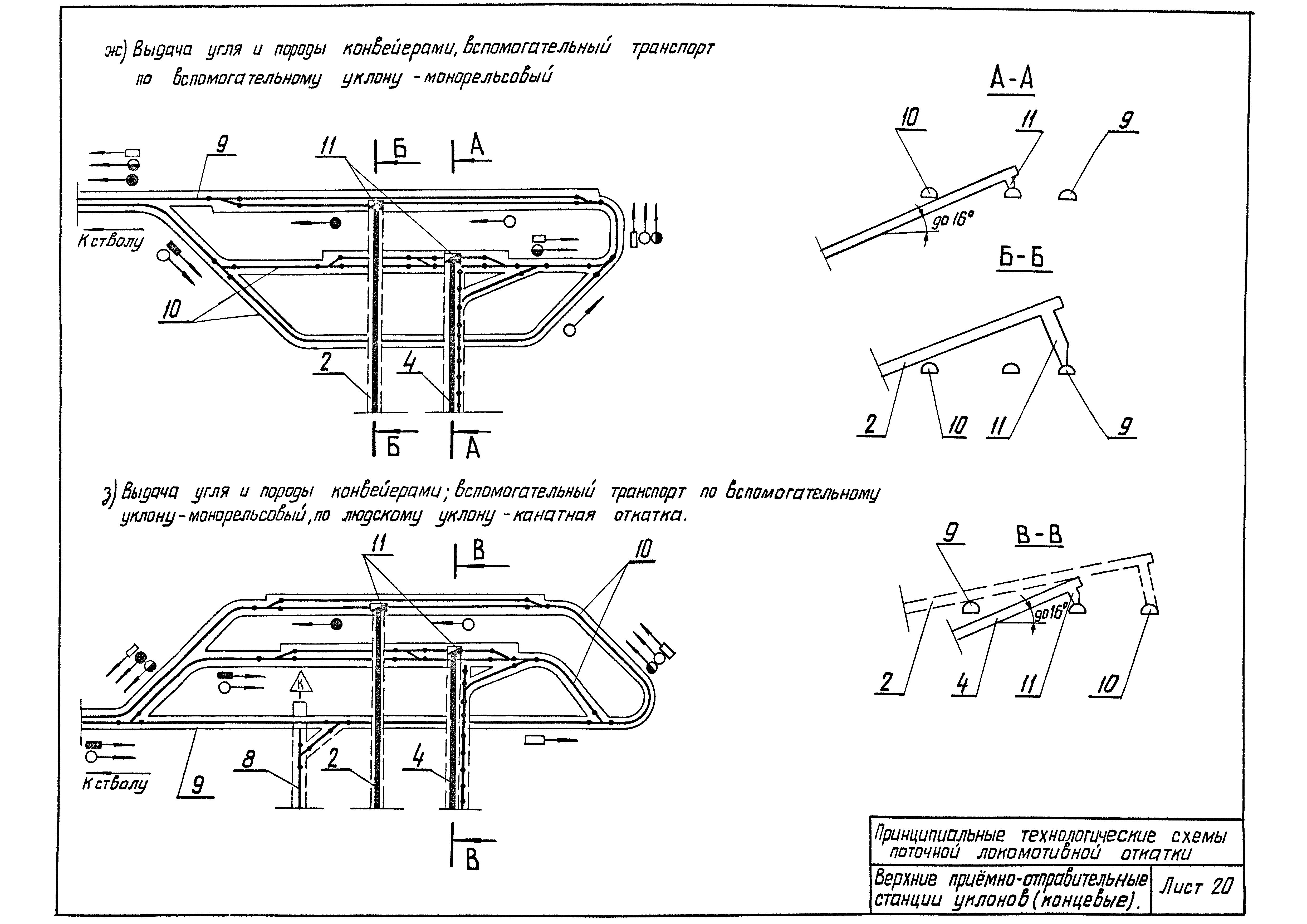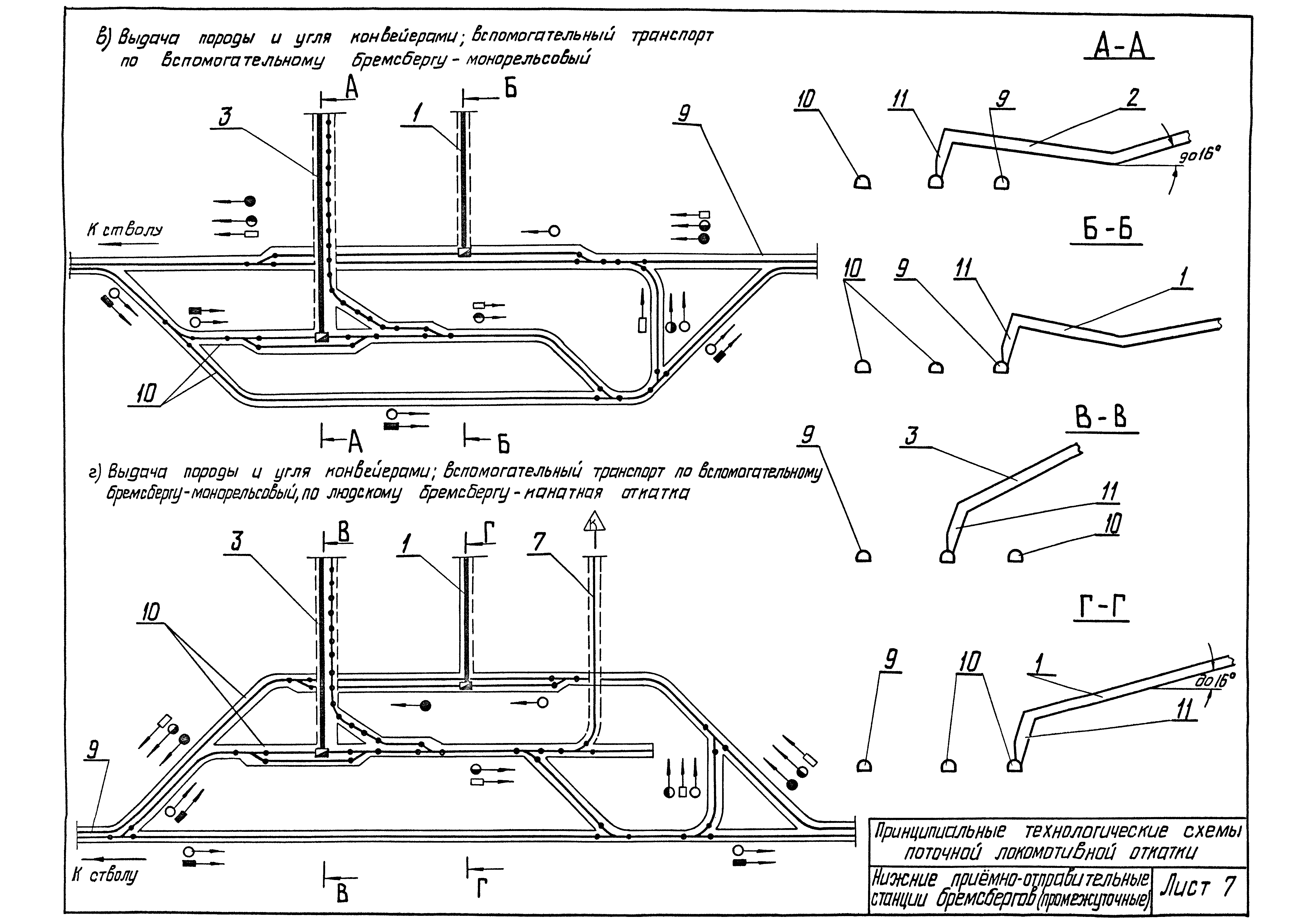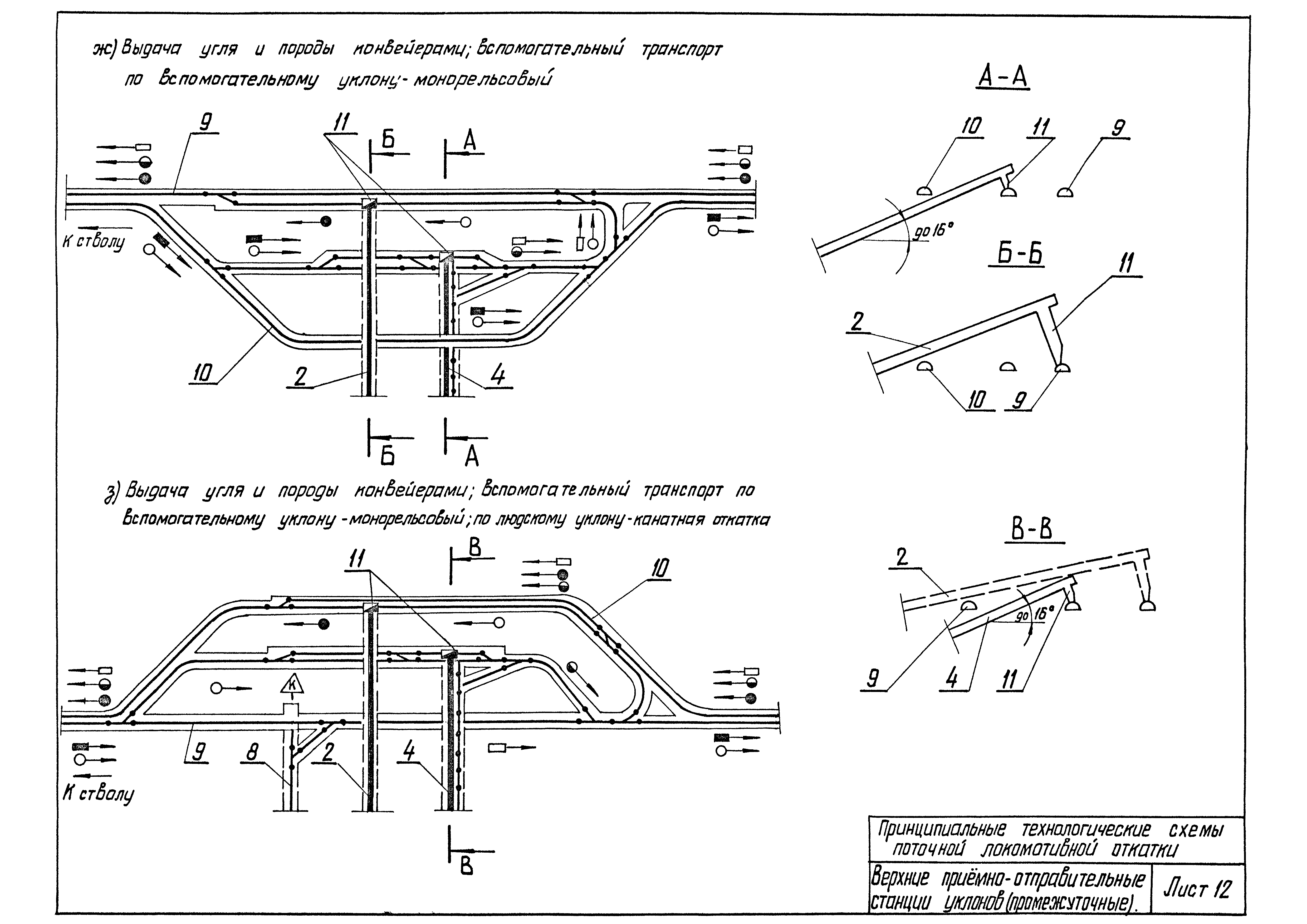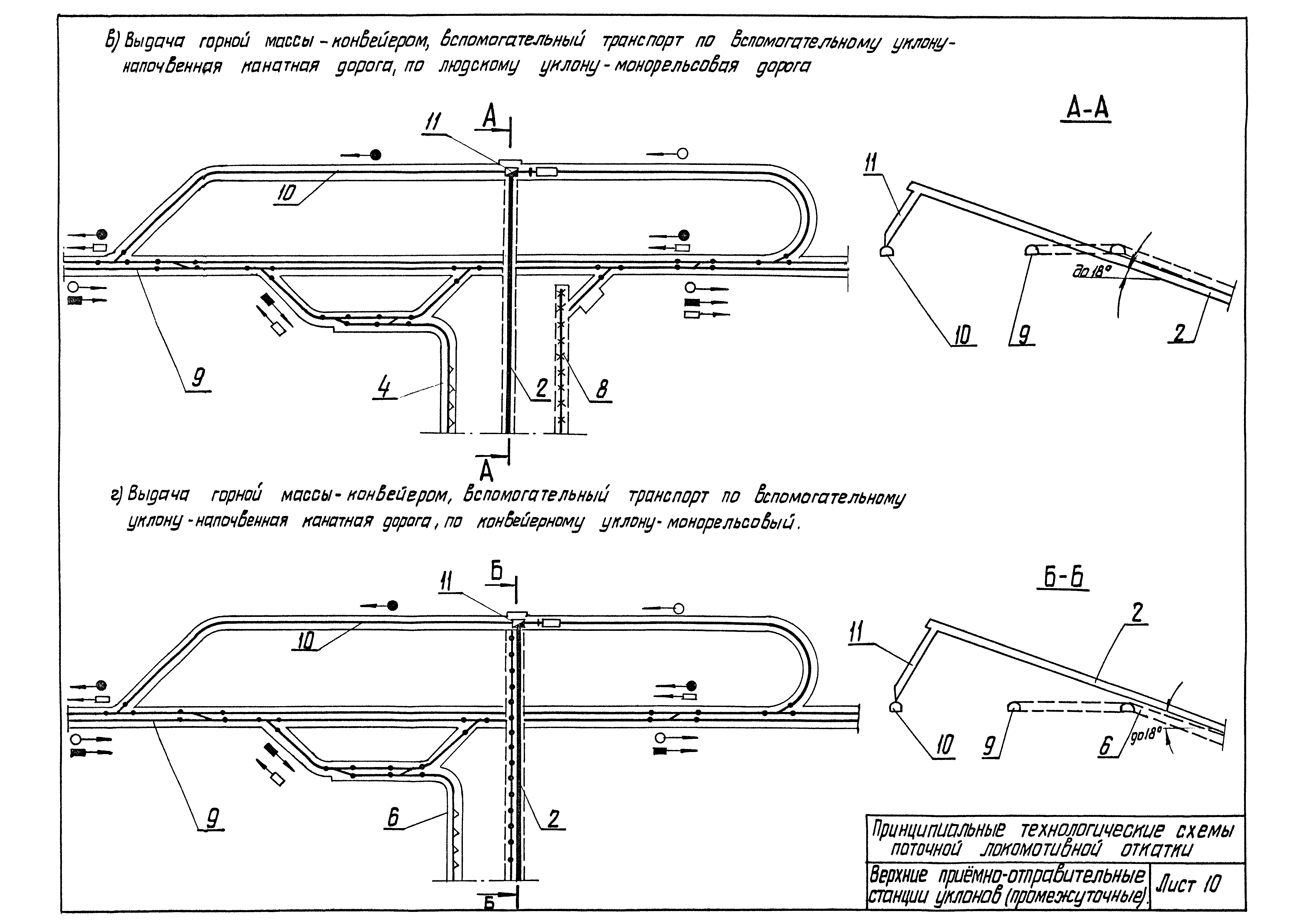 | Название рус.: | Принципиальные технологические схемы поточной локомотивной откатки (Временные) |