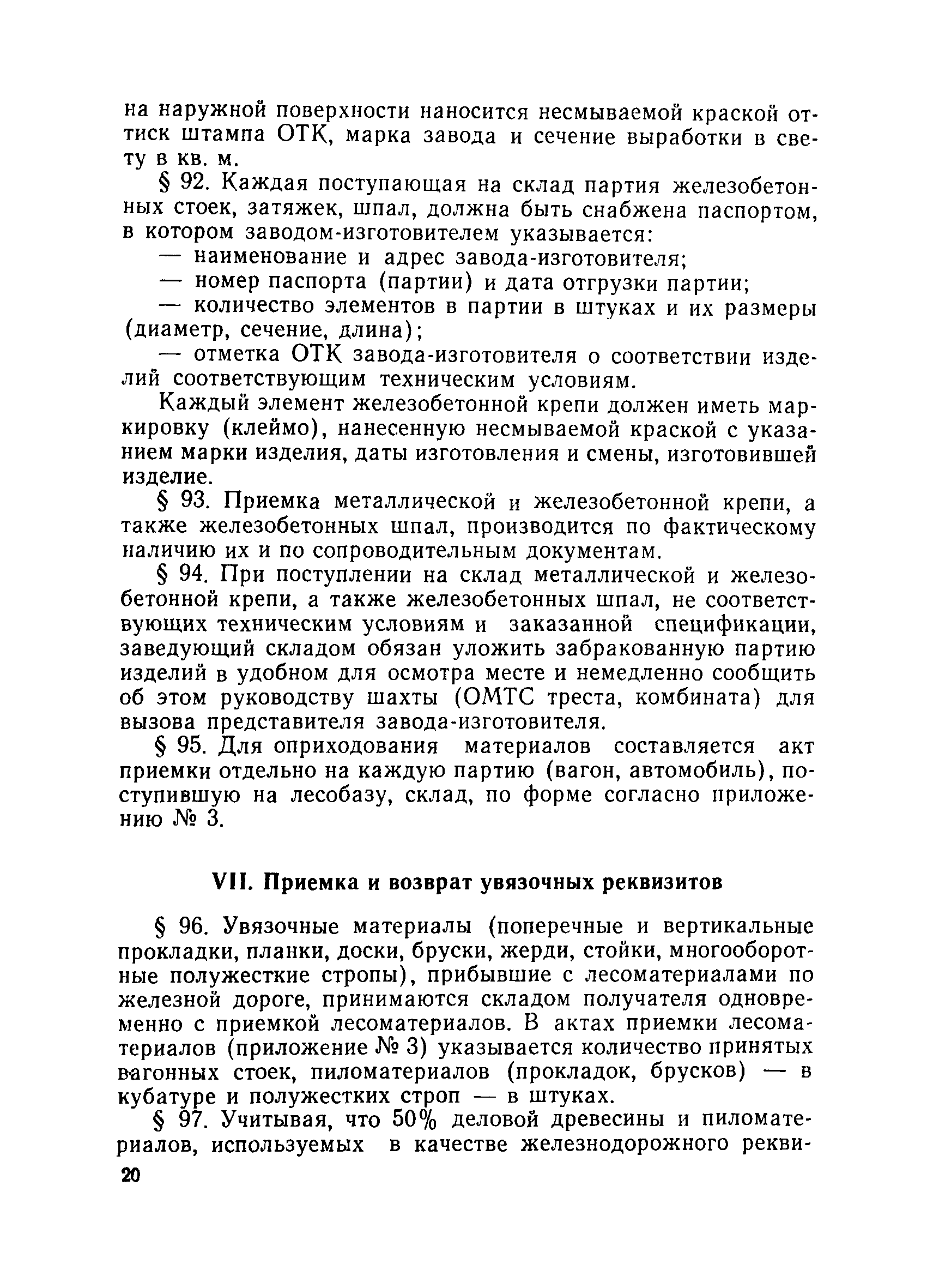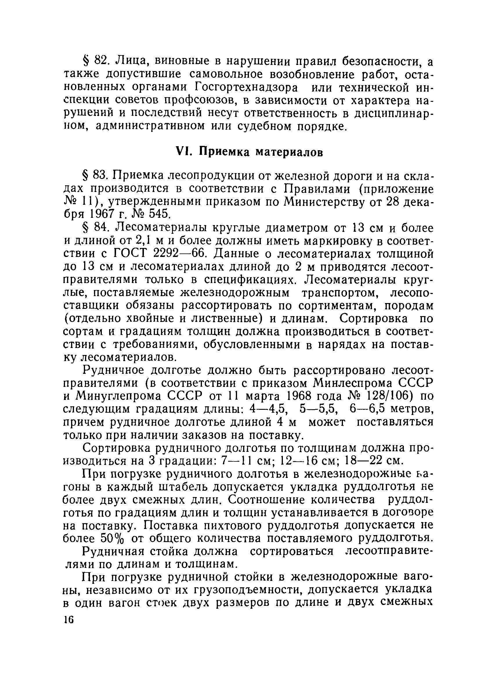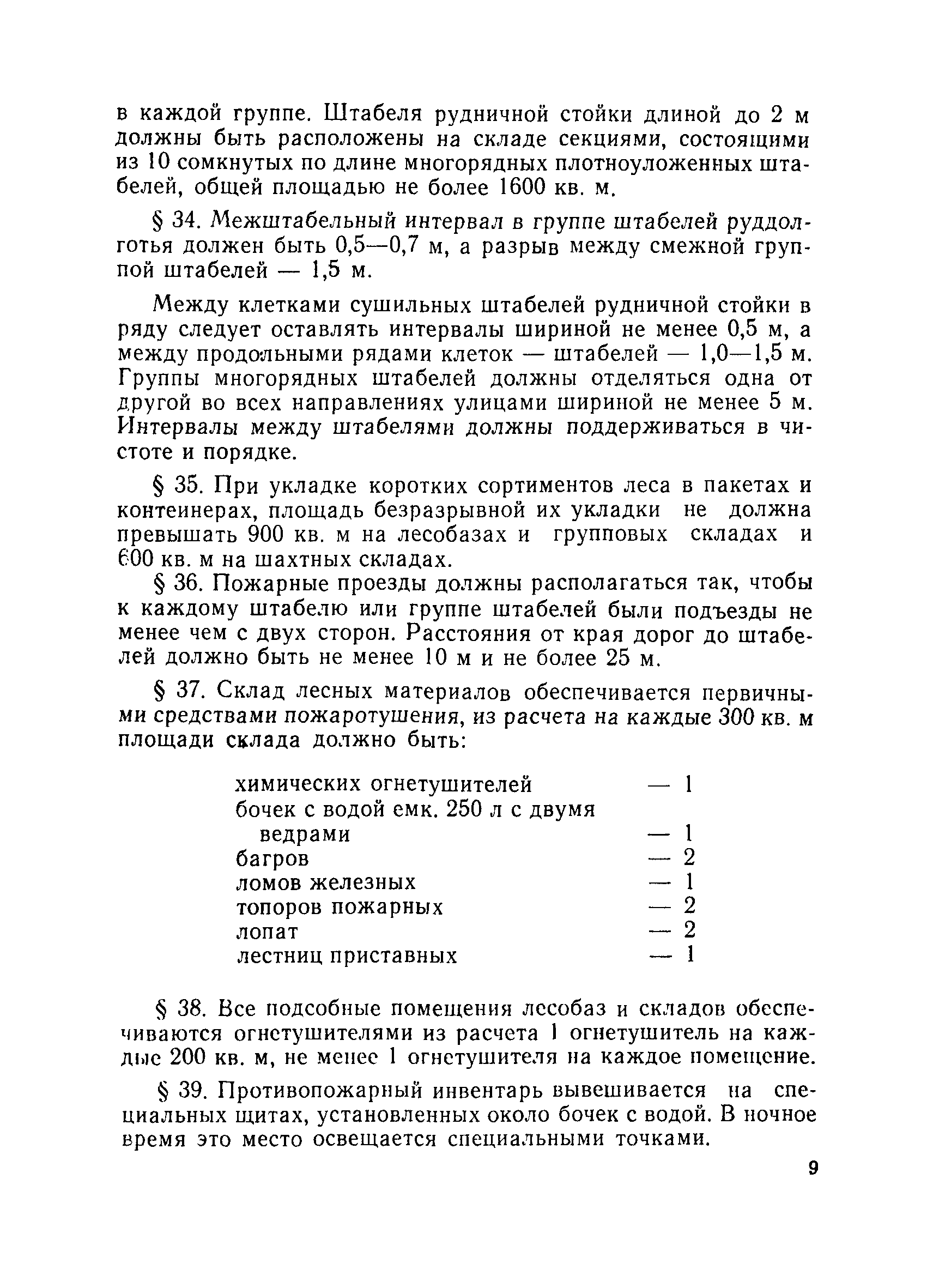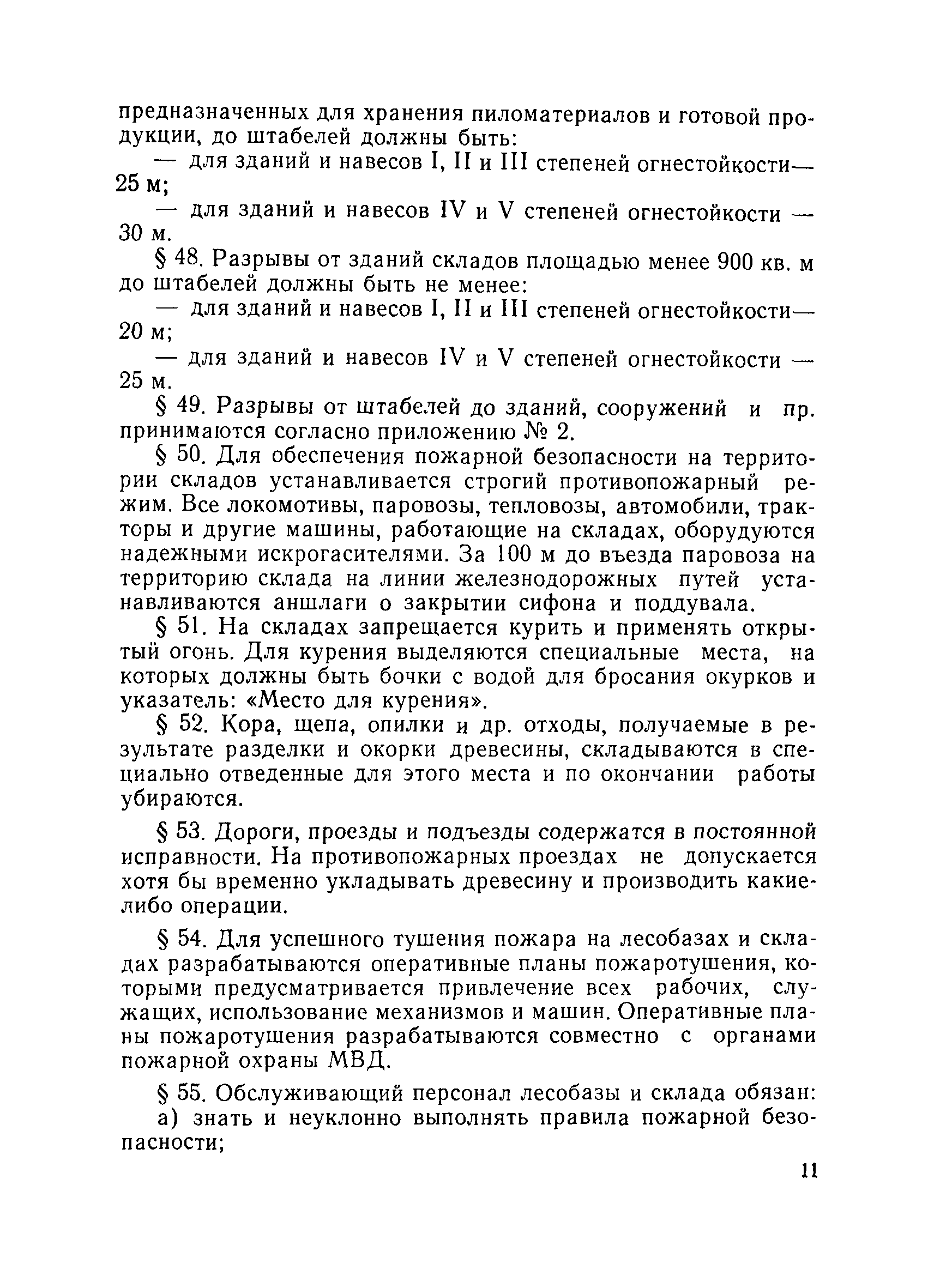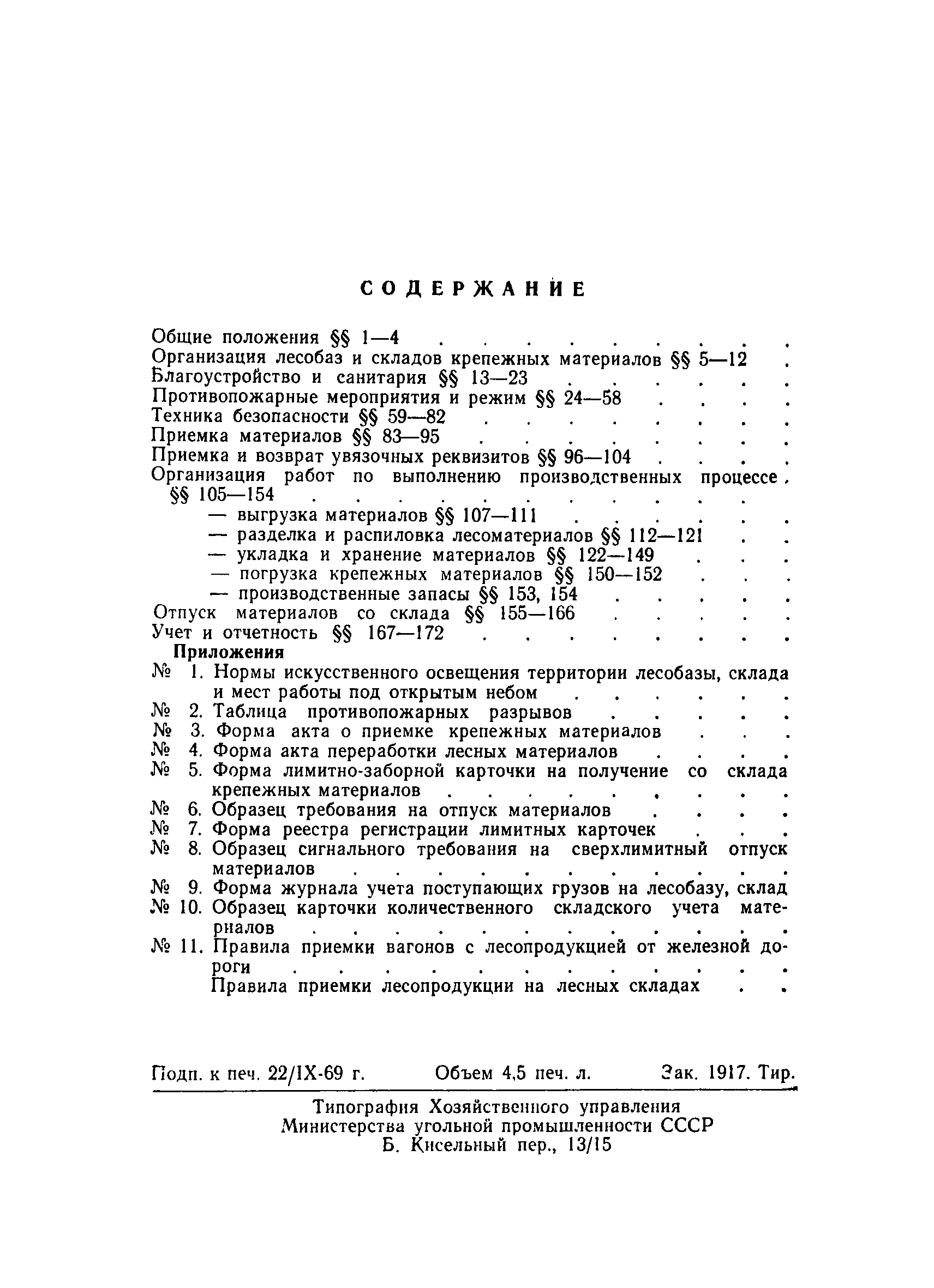 | Оглавление: | Общие положения Организация лесобаз и складов крепежных материалов Благоустройство и санитария Противопожарные мероприятия и режим Техника безопасности Приемка материалов Приемка и возврат увязочных реквизитов Организация работ по выполнению производственных процессе выгрузка материалов разделка и распиловка лесоматериалов укладка и хранение материалов погрузка крепежных материалов производственные запасы Отпуск материалов со склада Учет и отчетность Приложение 1. Нормы искусственного освещения территории лесобазы, склада и мест работы под открытым небом Приложение 2. Таблица противопожарных разрывов Приложение 3. Форма акта о приемке крепежных материалов Приложение 4. Форма акта переработки лесных материалов Приложение 5. Форма лимитно-заборной карточки на получение со склада крепежных материалов Приложение 6. Образец требования на отпуск материалов Приложение 7. Форма реестра регистрации лимитных карточек Приложение 8. Образец сигнального требования на сверхлимитный отпуск материалов Приложение 9. Форма журнала учета поступающих грузов на лесобазу, склад Приложение 10. Образец карточки количественного складского учета материалов Приложение 11. Правила приемки вагонов с лесопродукцией от железной дороги Правила приемки лесопродукции на лесных складах |