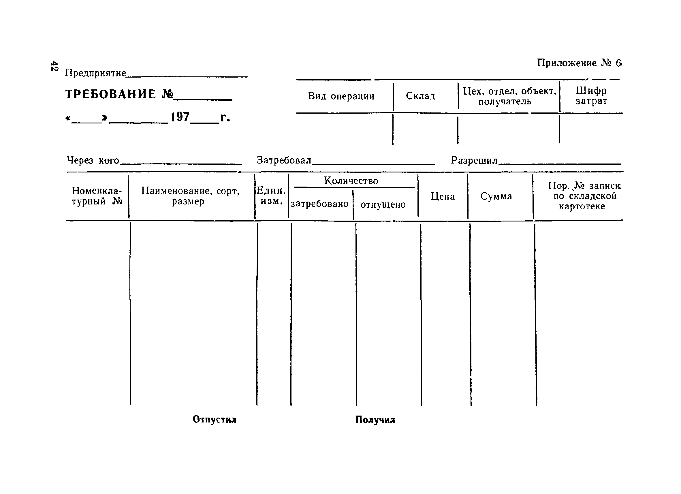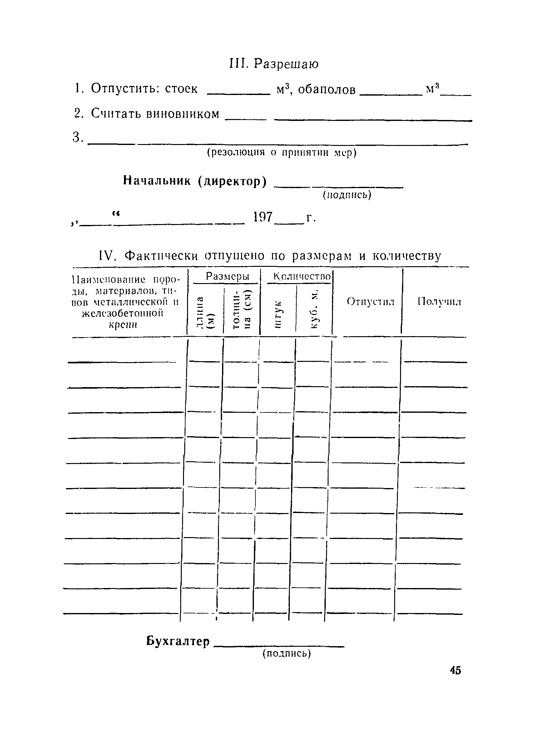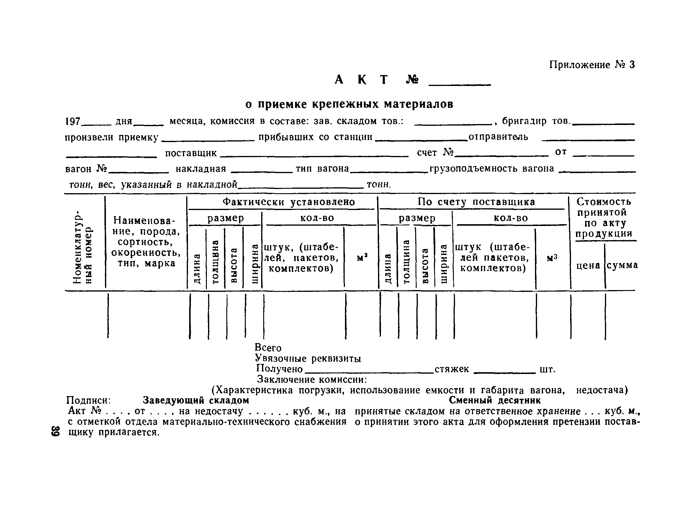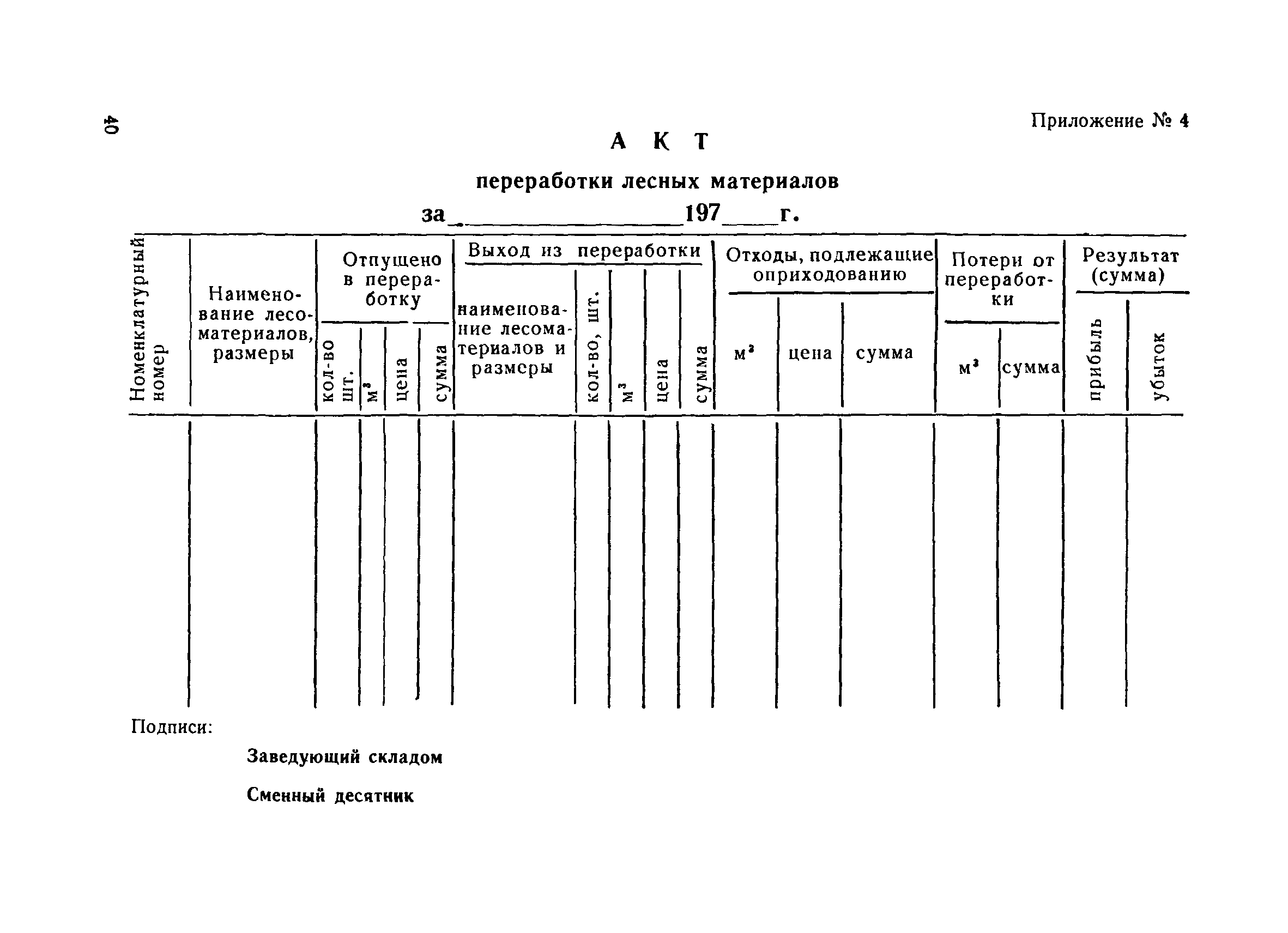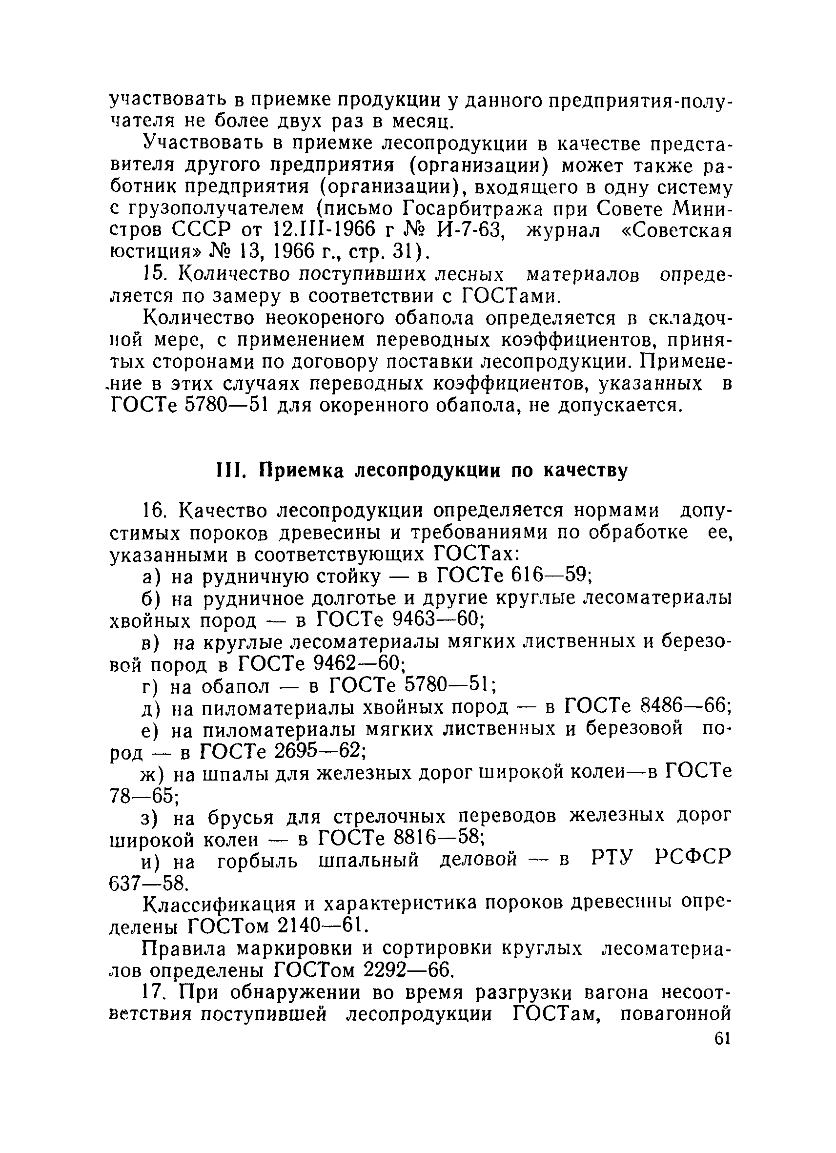 | Оглавление: | Общие положения Организация лесобаз и складов крепежных материалов Благоустройство и санитария Противопожарные мероприятия и режим Техника безопасности Приемка материалов Приемка и возврат увязочных реквизитов Организация работ по выполнению производственных процессе выгрузка материалов разделка и распиловка лесоматериалов укладка и хранение материалов погрузка крепежных материалов производственные запасы Отпуск материалов со склада Учет и отчетность Приложение 1. Нормы искусственного освещения территории лесобазы, склада и мест работы под открытым небом Приложение 2. Таблица противопожарных разрывов Приложение 3. Форма акта о приемке крепежных материалов Приложение 4. Форма акта переработки лесных материалов Приложение 5. Форма лимитно-заборной карточки на получение со склада крепежных материалов Приложение 6. Образец требования на отпуск материалов Приложение 7. Форма реестра регистрации лимитных карточек Приложение 8. Образец сигнального требования на сверхлимитный отпуск материалов Приложение 9. Форма журнала учета поступающих грузов на лесобазу, склад Приложение 10. Образец карточки количественного складского учета материалов Приложение 11. Правила приемки вагонов с лесопродукцией от железной дороги Правила приемки лесопродукции на лесных складах |