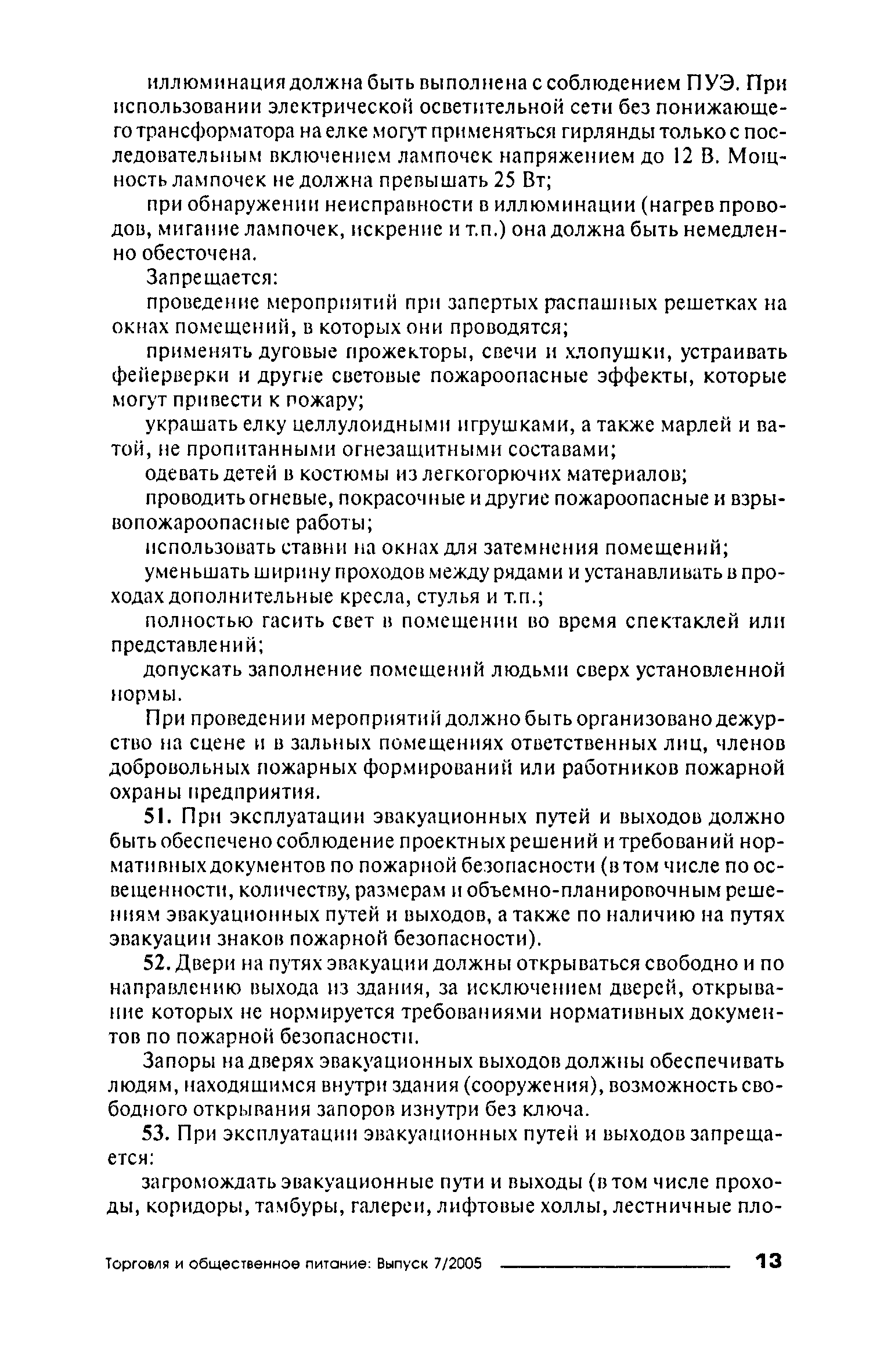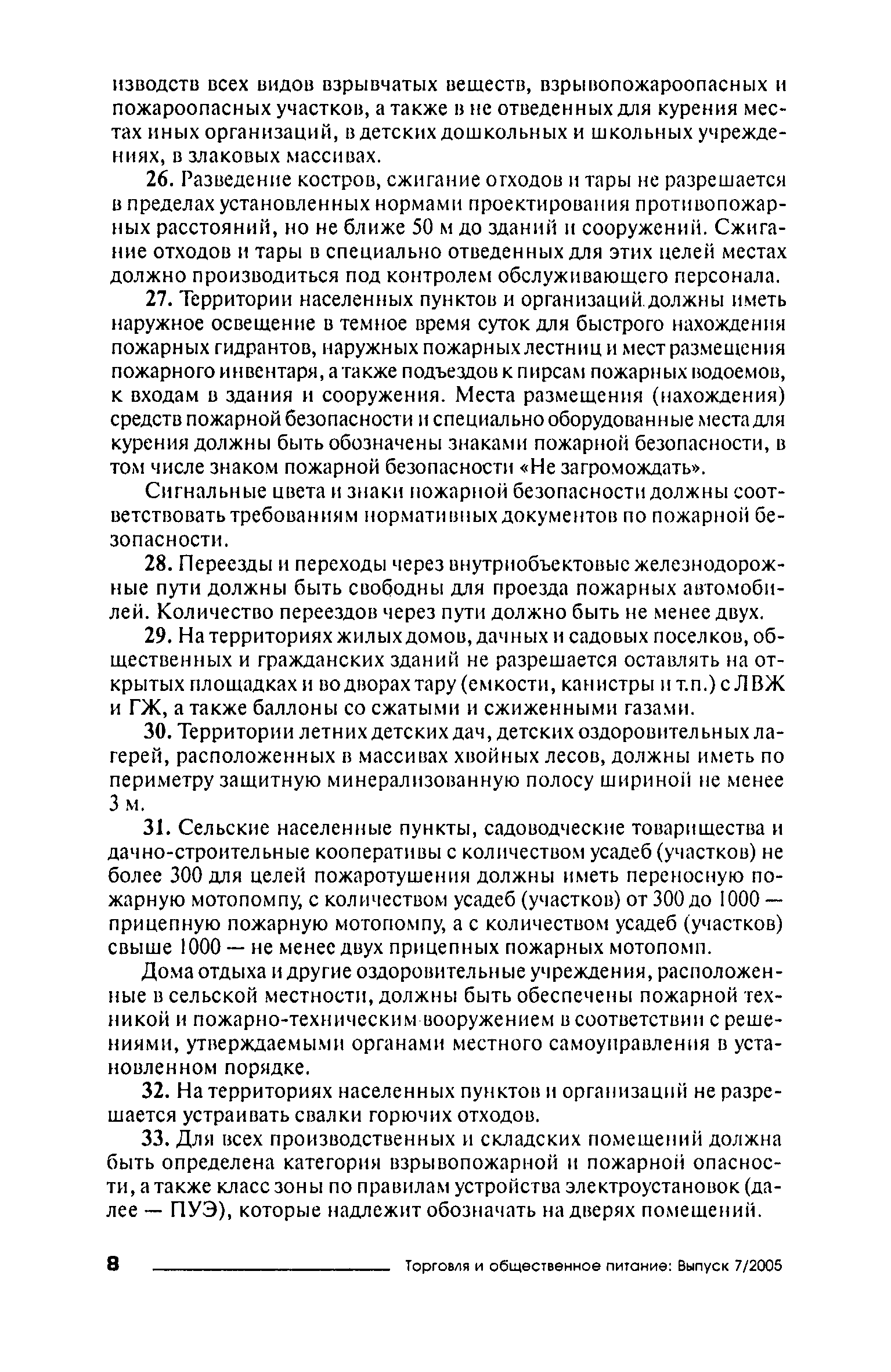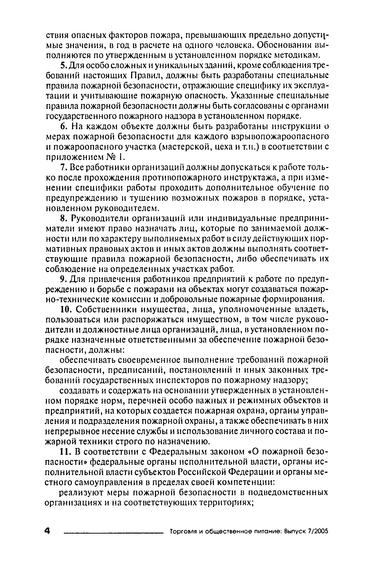Правила пожарной безопасности для объектов торговли| Статус: | справочные материалы, мп, тпр | | Название рус.: | Правила пожарной безопасности для объектов торговли | | Дата добавления в базу: | 01.02.2020 | | Дата актуализации: | 01.01.2021 | | Область применения: | Правила пожарной безопасности в Российской Федерации устанавливают требования пожарной безопасности, обязательные для применения и исполнения органами государственной власти, органами местного самоуправления, организациями независимо от их организационно-правовых форм и форм собственности, их должностными лицами, предпринимателями без образования юридического лица, гражданами Российской Федерации, иностранными гражданами, лицами без гражданства в целях защиты жизни или здоровья граждан, имущества физических или юридических лиц, государственного или муниципального имущества, охраны окружающей среды. | | Оглавление: | I. Общие требования VII. Объекты торговли Приложение № 1 Приложение № 3 | | Издан: | ИНФРА-М (2005 г. )