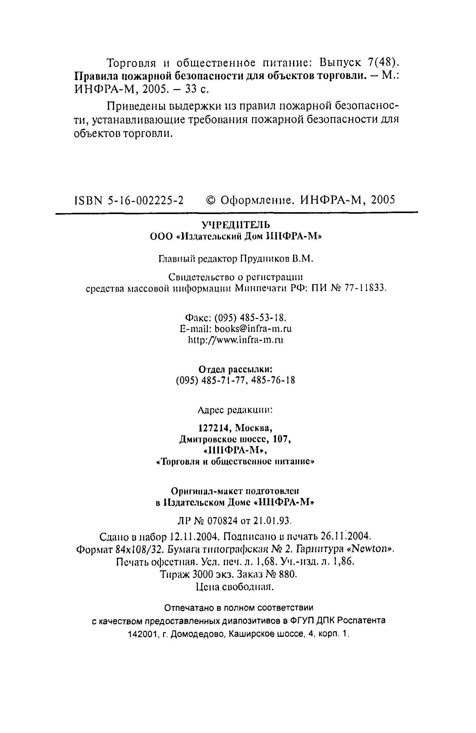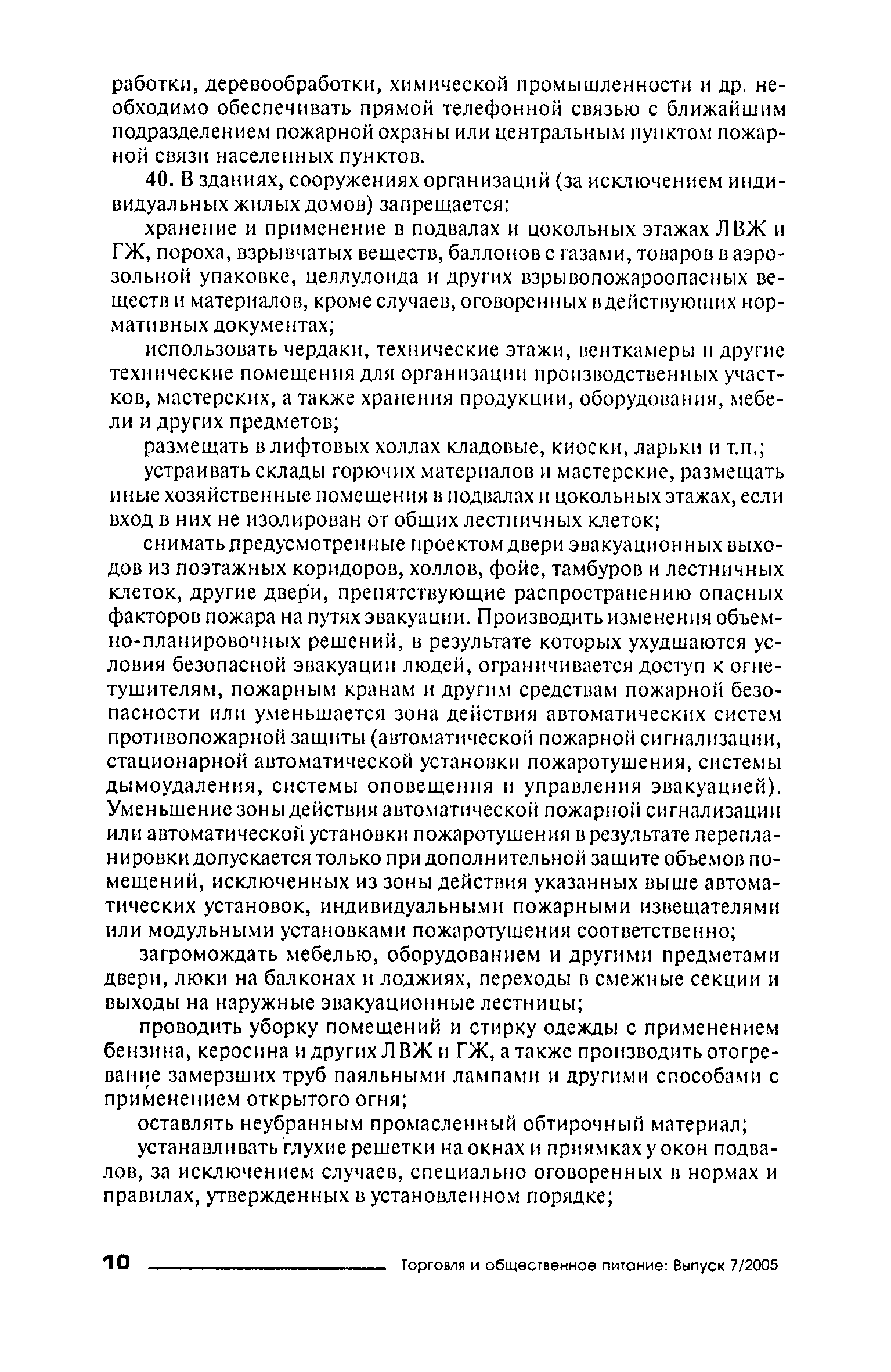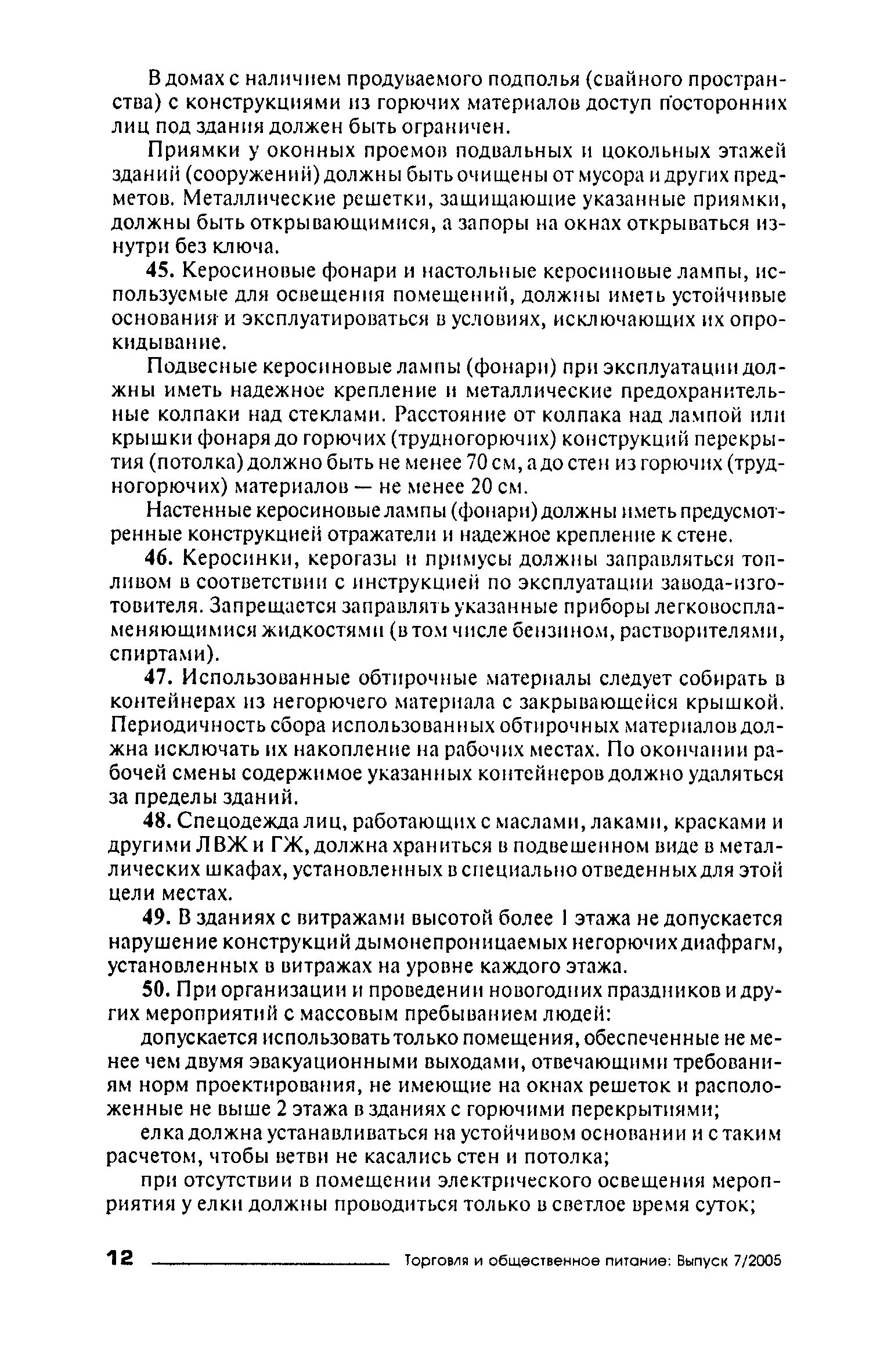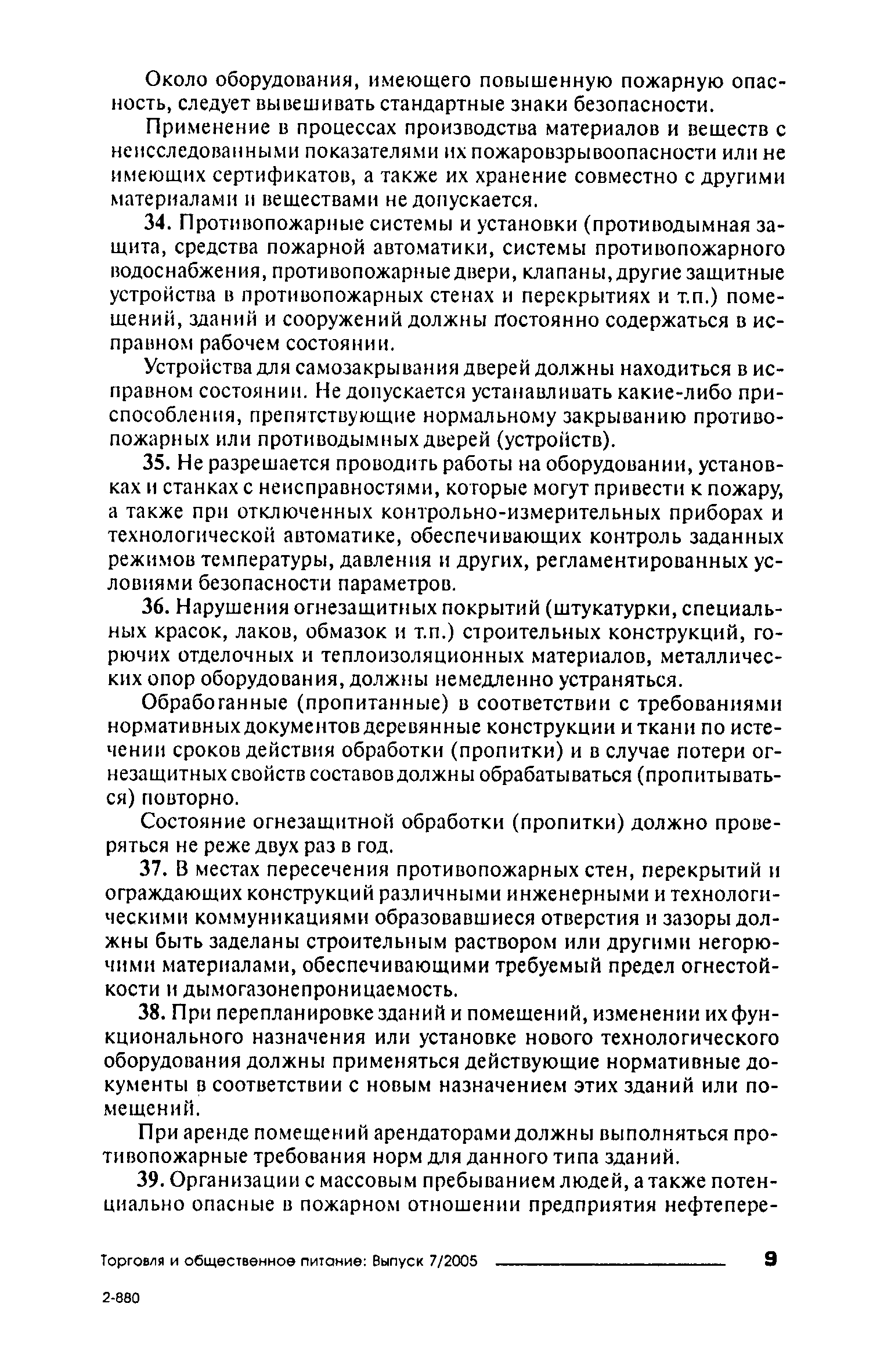 Правила пожарной безопасности для объектов торговли| Статус: | справочные материалы, мп, тпр | | Название рус.: | Правила пожарной безопасности для объектов торговли | | Дата добавления в базу: | 01.02.2020 | | Дата актуализации: | 01.01.2021 | | Область применения: | Правила пожарной безопасности в Российской Федерации устанавливают требования пожарной безопасности, обязательные для применения и исполнения органами государственной власти, органами местного самоуправления, организациями независимо от их организационно-правовых форм и форм собственности, их должностными лицами, предпринимателями без образования юридического лица, гражданами Российской Федерации, иностранными гражданами, лицами без гражданства в целях защиты жизни или здоровья граждан, имущества физических или юридических лиц, государственного или муниципального имущества, охраны окружающей среды. | | Оглавление: | I. Общие требования VII. Объекты торговли Приложение № 1 Приложение № 3 | | Издан: | ИНФРА-М (2005 г. )