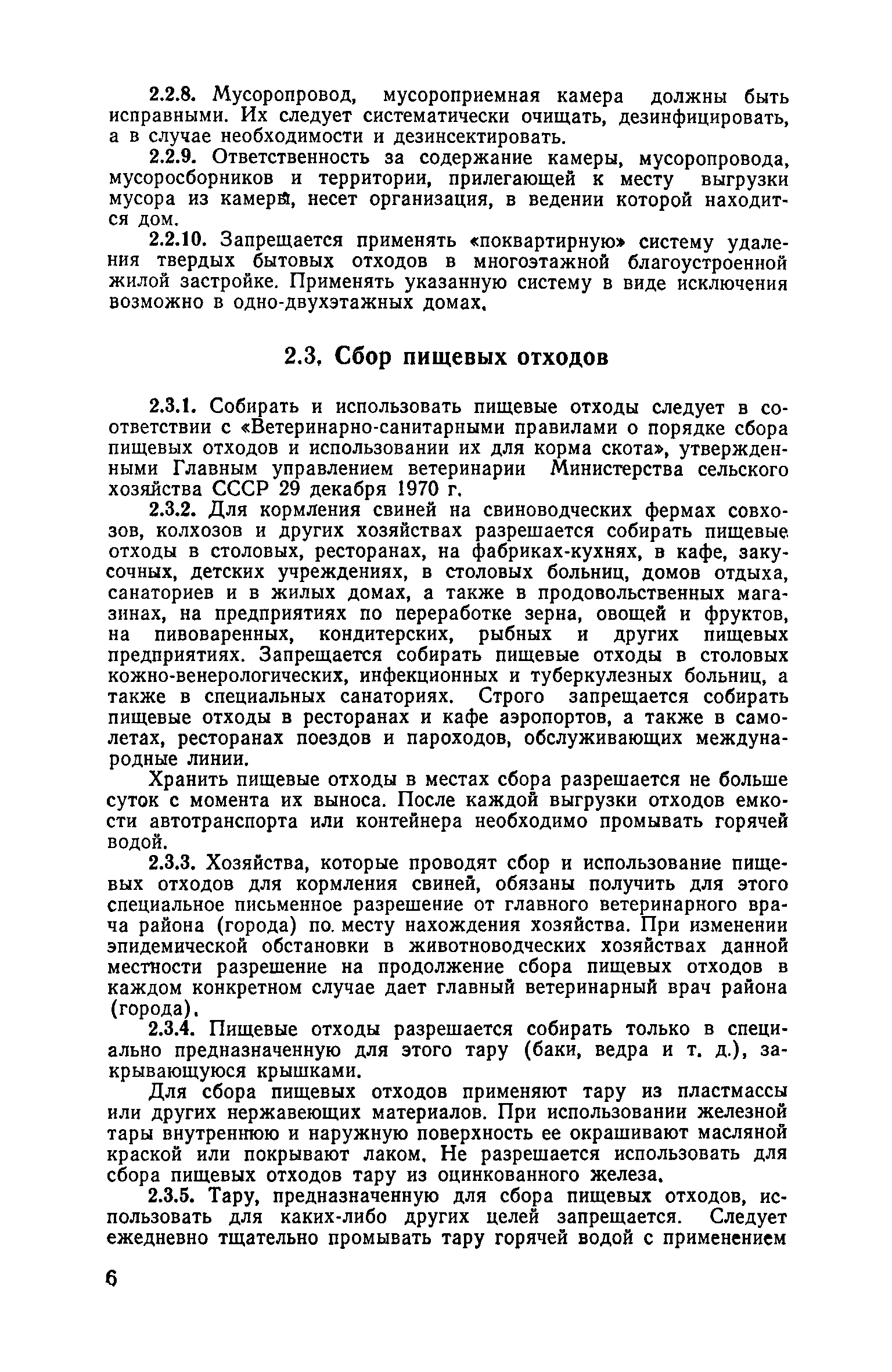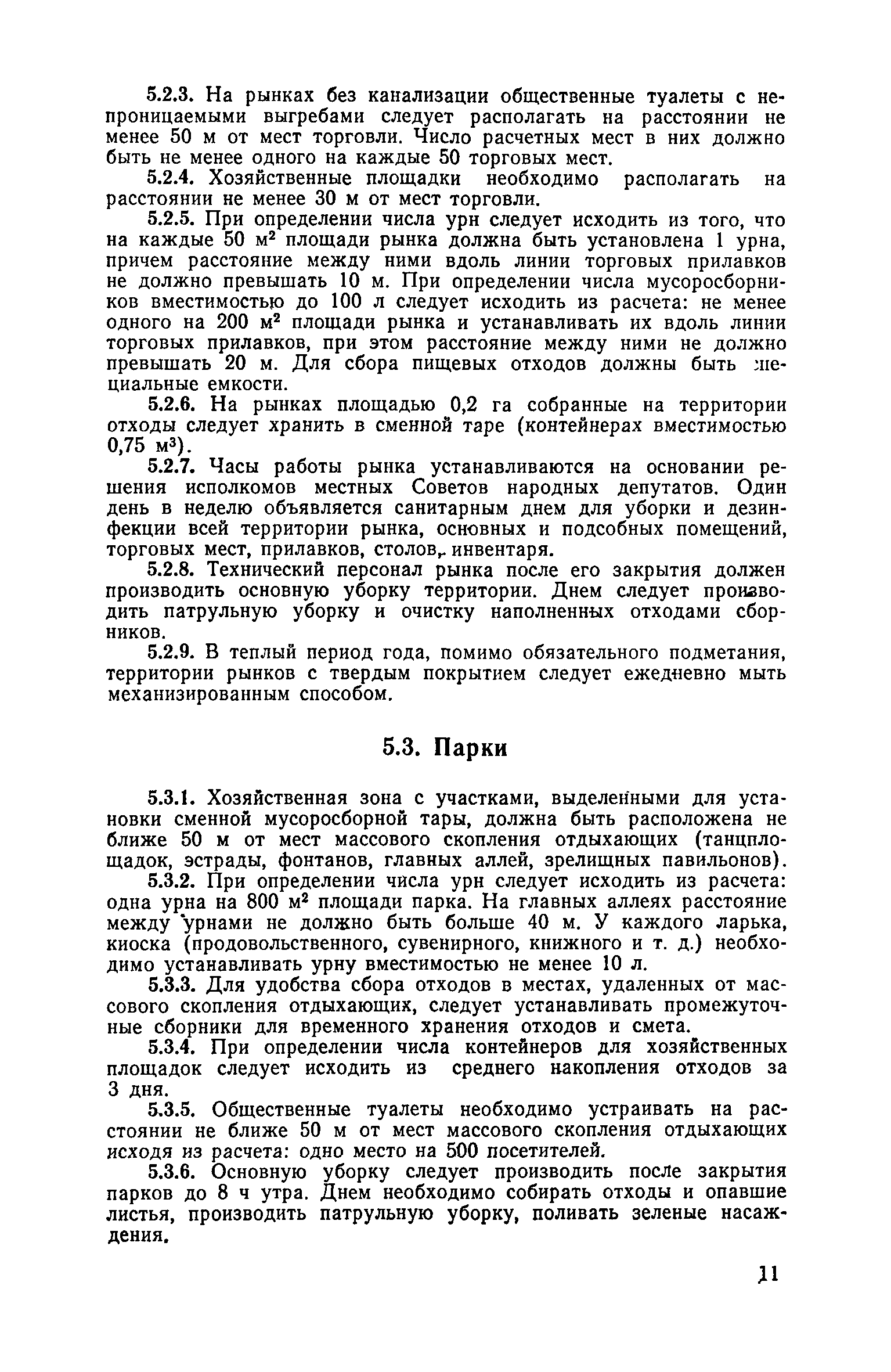 | Оглавление: | Введение 1 Общие положения 2 Сбор твердых и жидких бытовых отходов 2.1. Общие требования 2.2. Сбор твердых бытовых отходов 2.3. Сбор пищевых отходов 2.4. Сбор жидких отходов 3 Обезвреживание отходов 4 Уборка населенных мест 5 Уборка объектов с обособленной территорией 5.1. Пляжи 5.2. Рынки 5.3. Парки 5.4. Лечебно-профилактические учреждения 6 Ответственность за санитарное содержание территорий населенных мест |