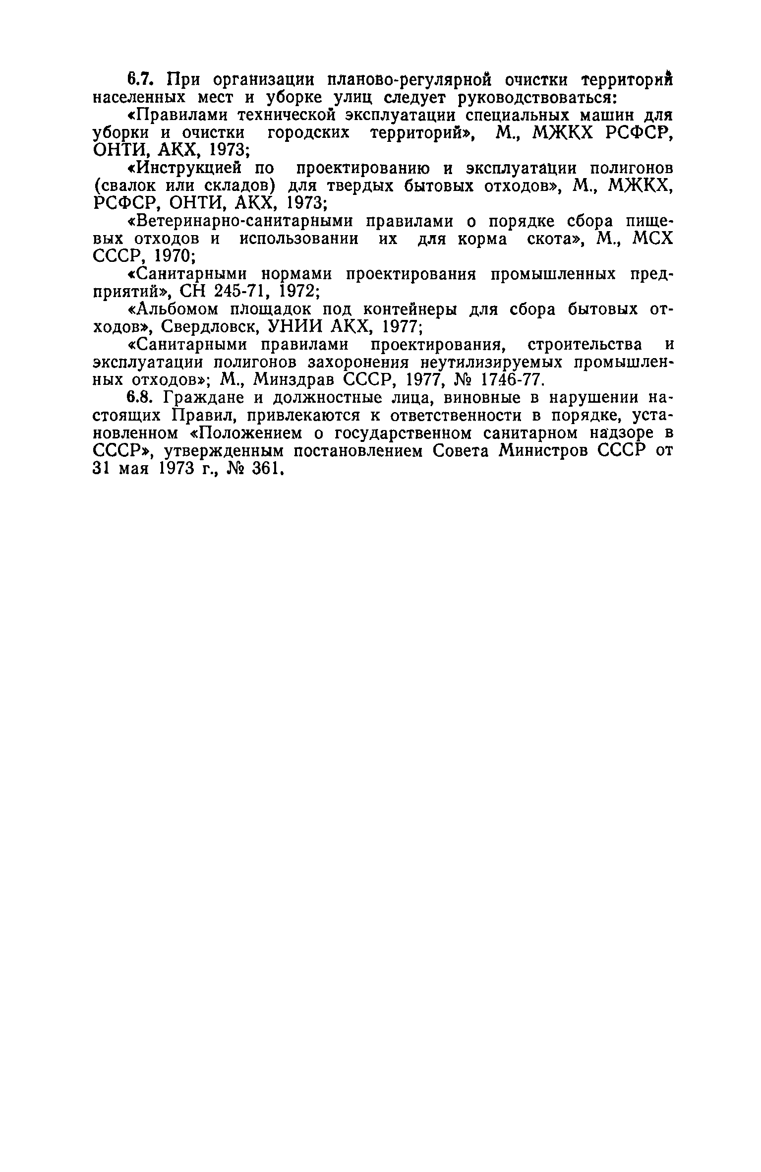 | Название рус.: | Правила санитарного содержания территорий населенных мест |