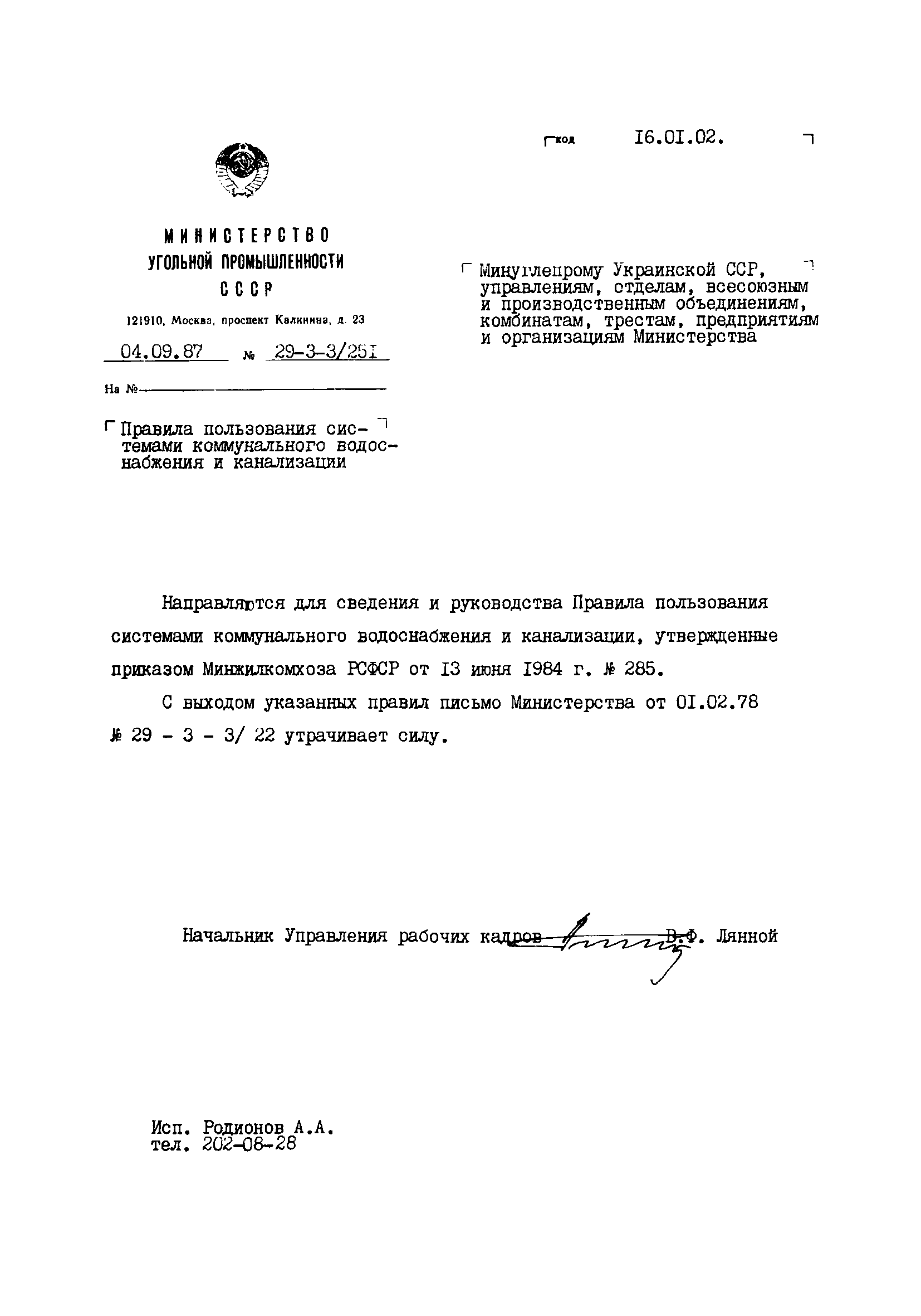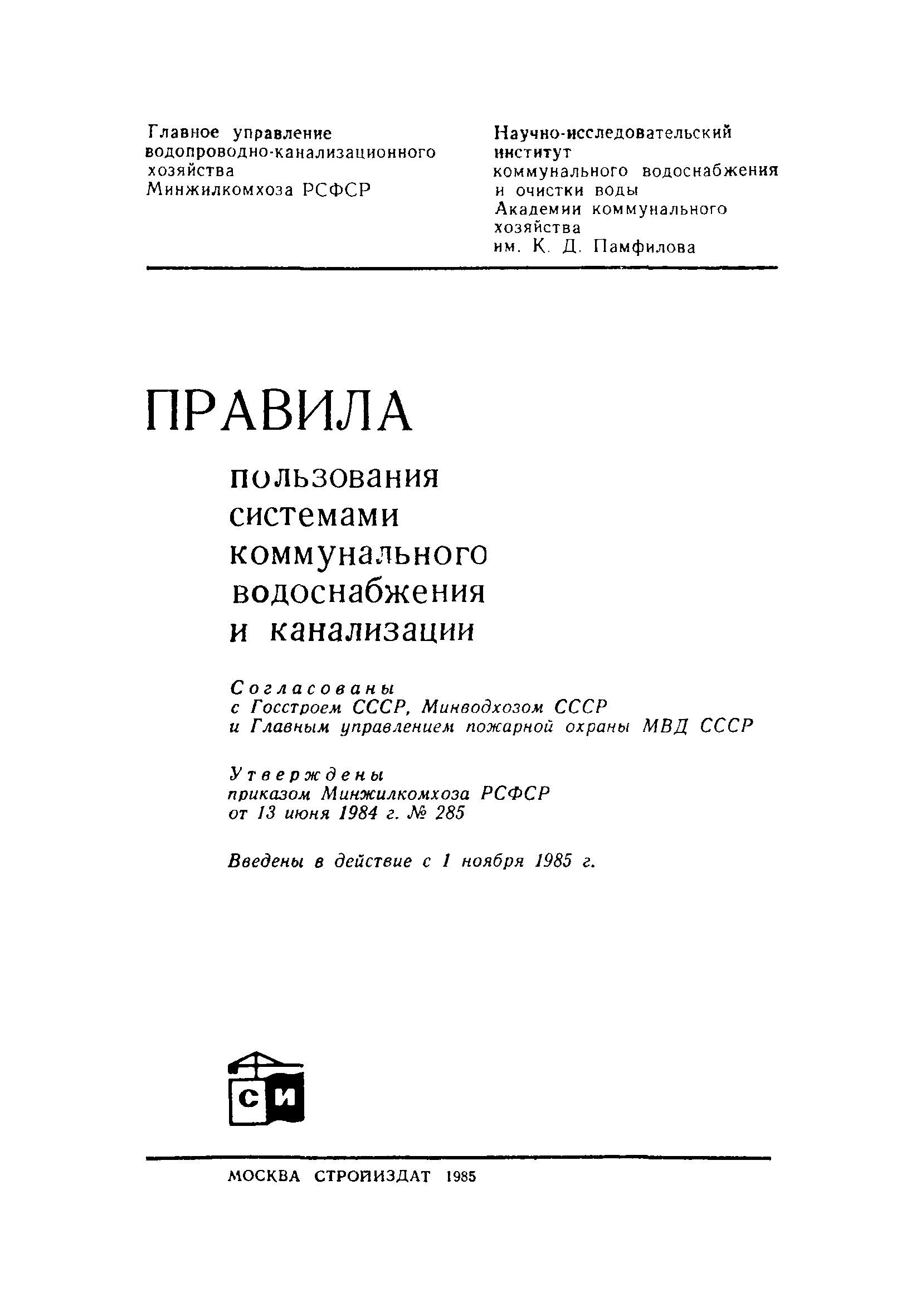 | Утверждён: | 13.06.1984 Минжилкомхоз РСФСР (Russian Federation Minzhilkomkhoz 285)