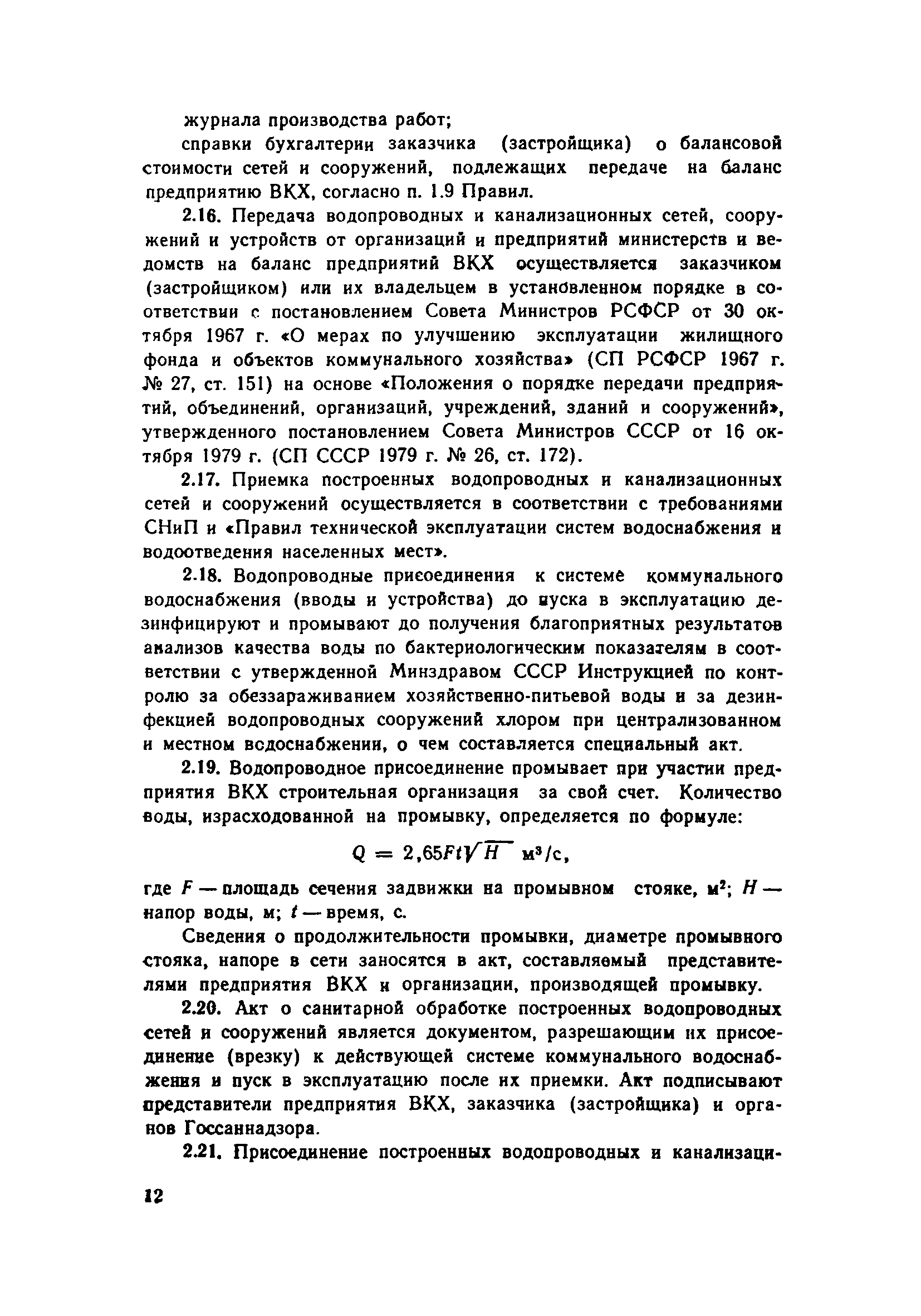 | Область применения: | Правила определяют взаимоотношения между коммунальными предприятиями водопроводно-канализационного хозяйства системы Министерства жилищно-коммунального хозяйства РСФСР. |